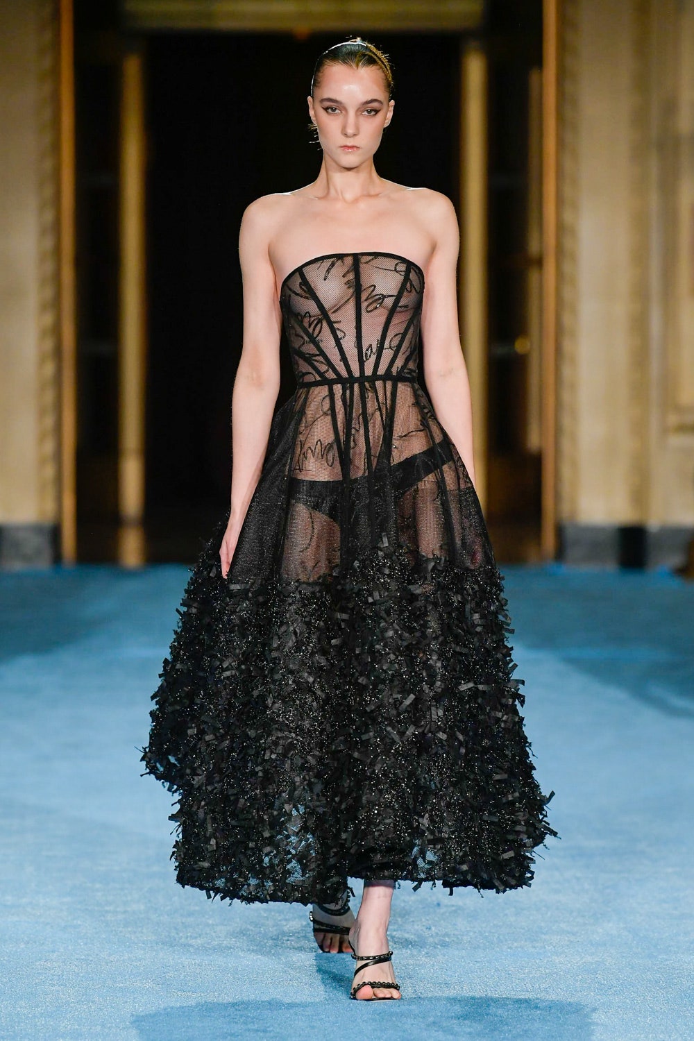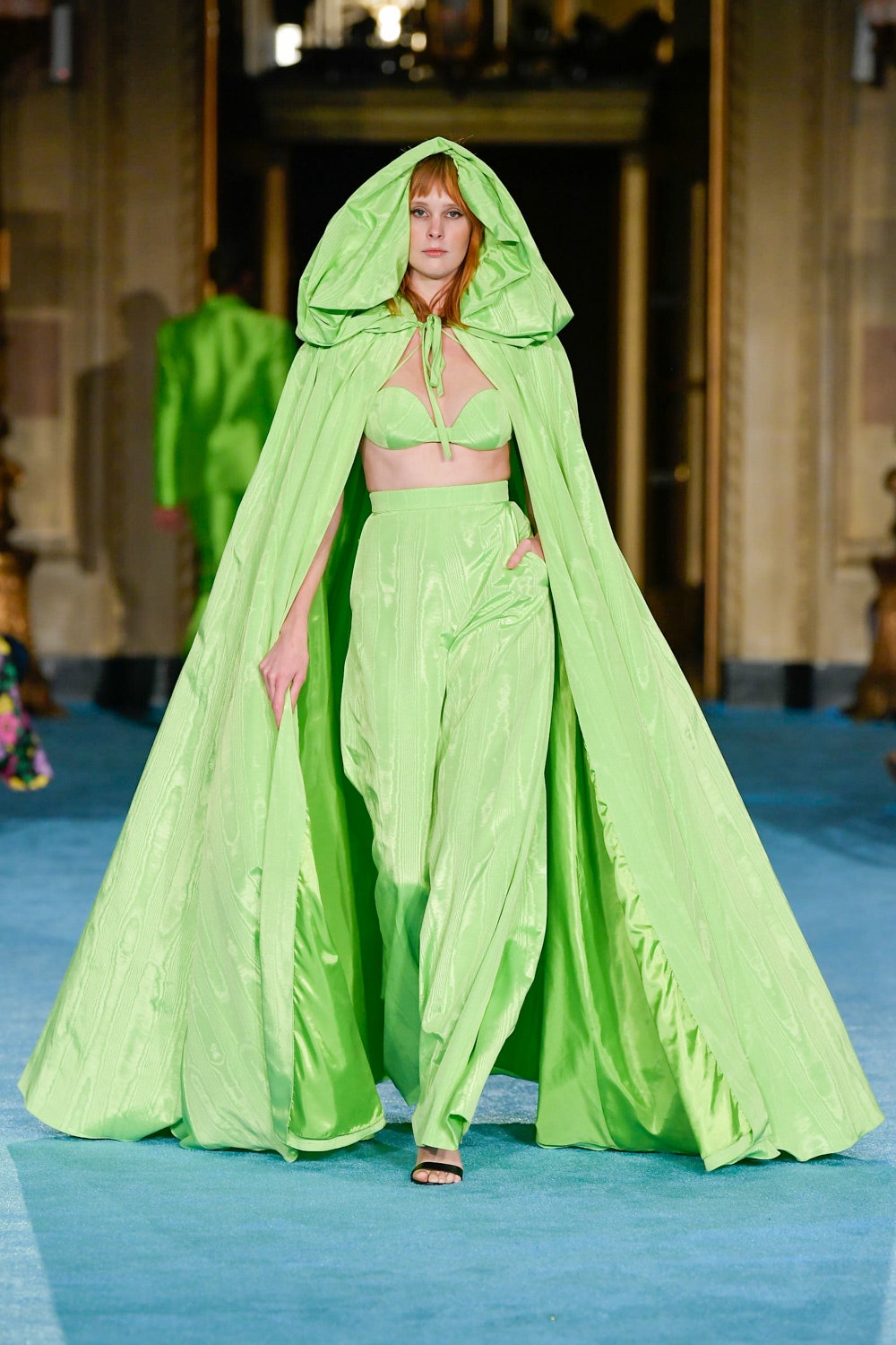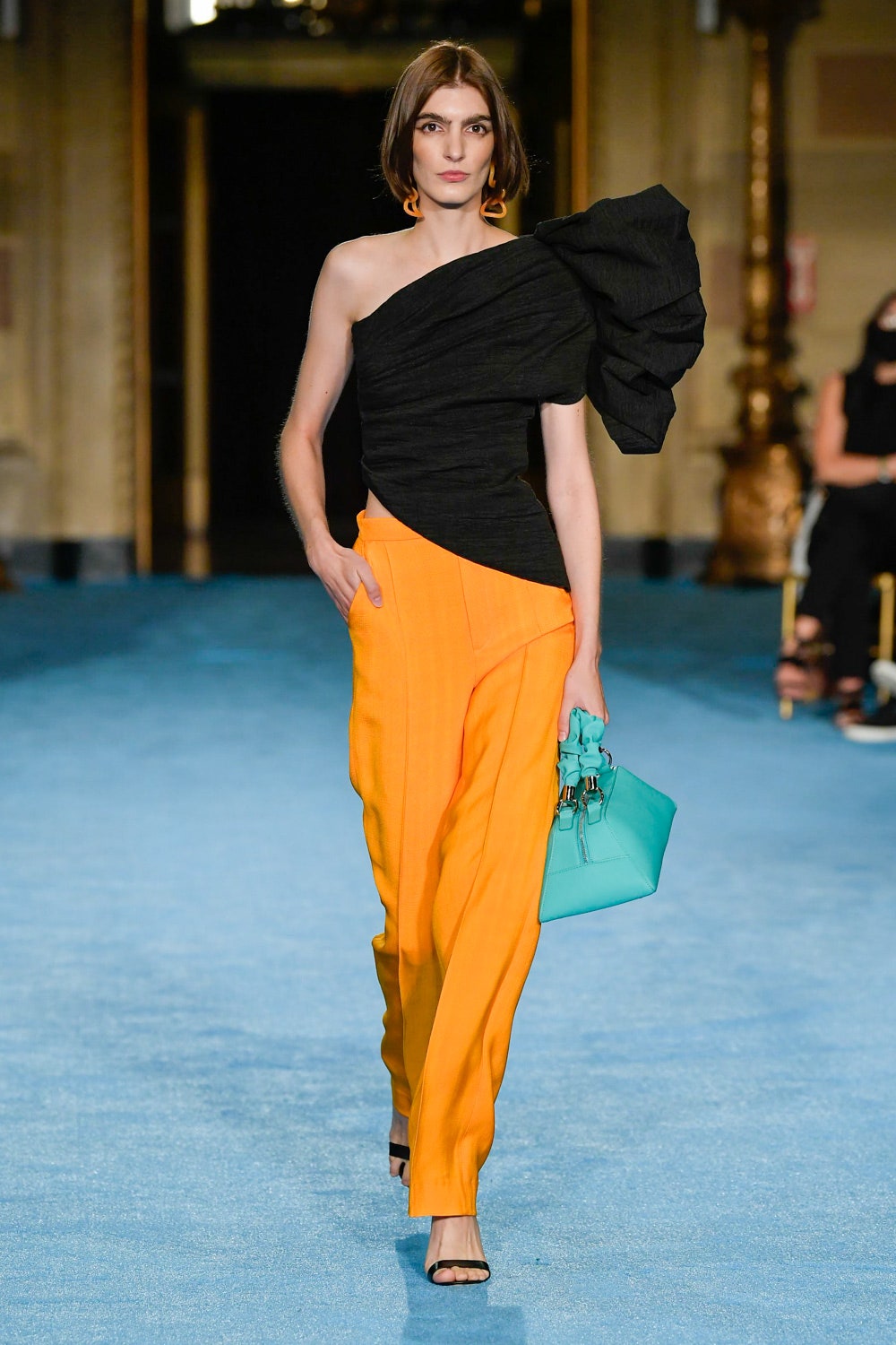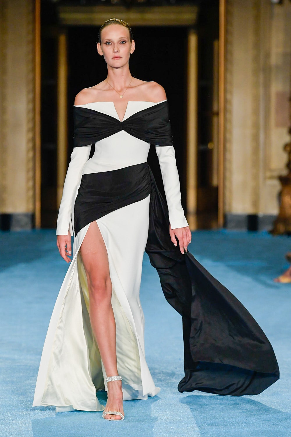 Показ дизайнера Кристиана Сириано прошел в нью-йоркском Готэм-холле, здании бывшего Гринвичского банка, строившегося вместе с бизнес-империями и модными домами в конце 1920-х. В коллекции будущей весны Сириано позволил себе еще больше чрезмерности и пышности. Шоу открыла модель Precious Lee в соблазнительном костюме сочного оранжевого цвета — его дизайнер заимствовал из памяти о гардеробе своей итальянской бабушки. Данью роскошным образам прошлого стали сияющие атласные бюстье и пышные юбки, изящные костюмы с юбками и декором из оборок, струящиеся слоистые платья в горошек и силуэтные наряды с контрастными палантинами. Мода 30-х годов, времени юности бабушки Кристиана, стала главным нарративом коллекции и придала вещам тот самый лоск, который мы с жадностью высматриваем в последних сезонах. Гигантские, почти сокрушительные оборки соседствовали на подиуме с утонченными линиями, прозрачный гипюр — с тяжелой тафтой, а корсеты на косточках — с расслабленными платьями-смокингами и шелковыми баллонами.