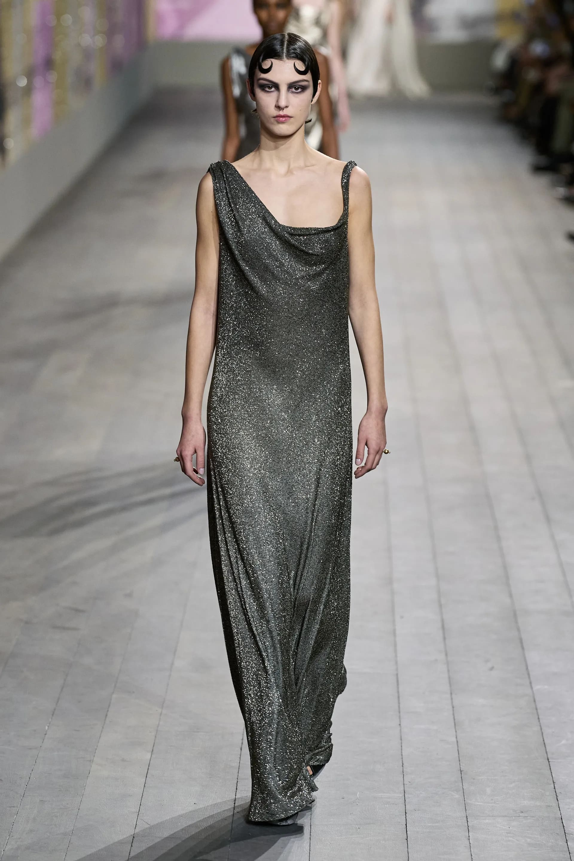 Осучаснення торкнулося й архівів Dior. Марія Грація позбавляє нарочитості культовий жакет Bar 1947, прибираючи корсетну основу, аби річ не сковувала рухи й ніби ковзала по тілу. Розкішної безтурботності дизайнерка також додає й максі сукням з відкритою спиною. У кутюрній колекції їх прикрашають гофрований атлас сріблястих і золотих кольорів. Так, Кьюрі вдалося створити образи, які можна сховати в фамільний саквояж і передавати поколіннями.