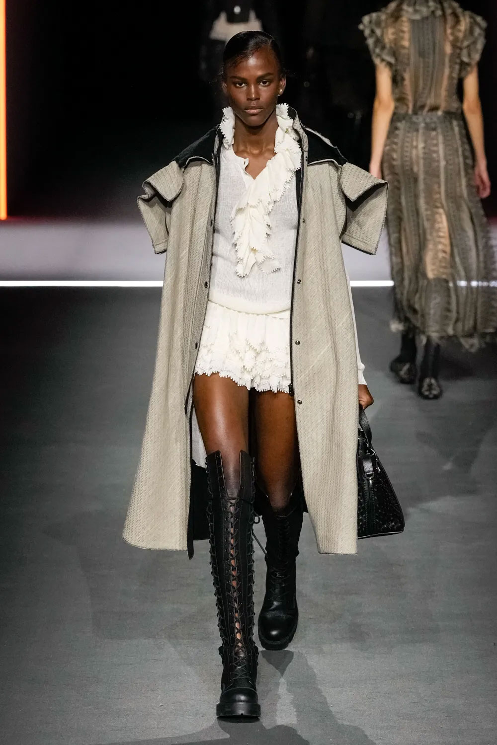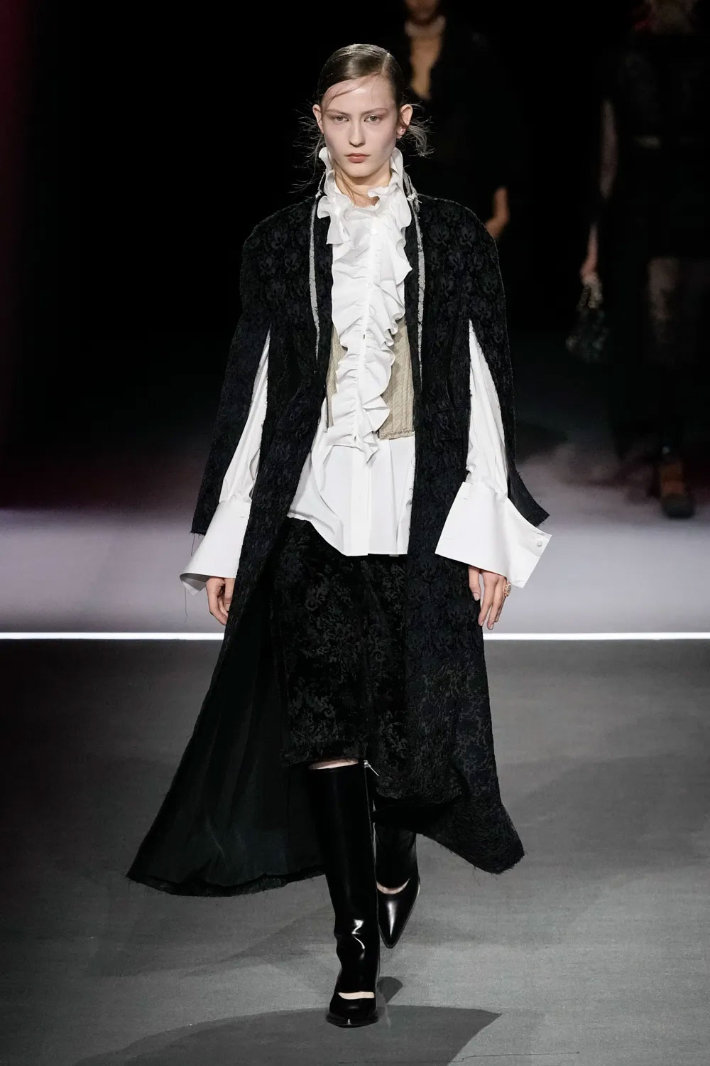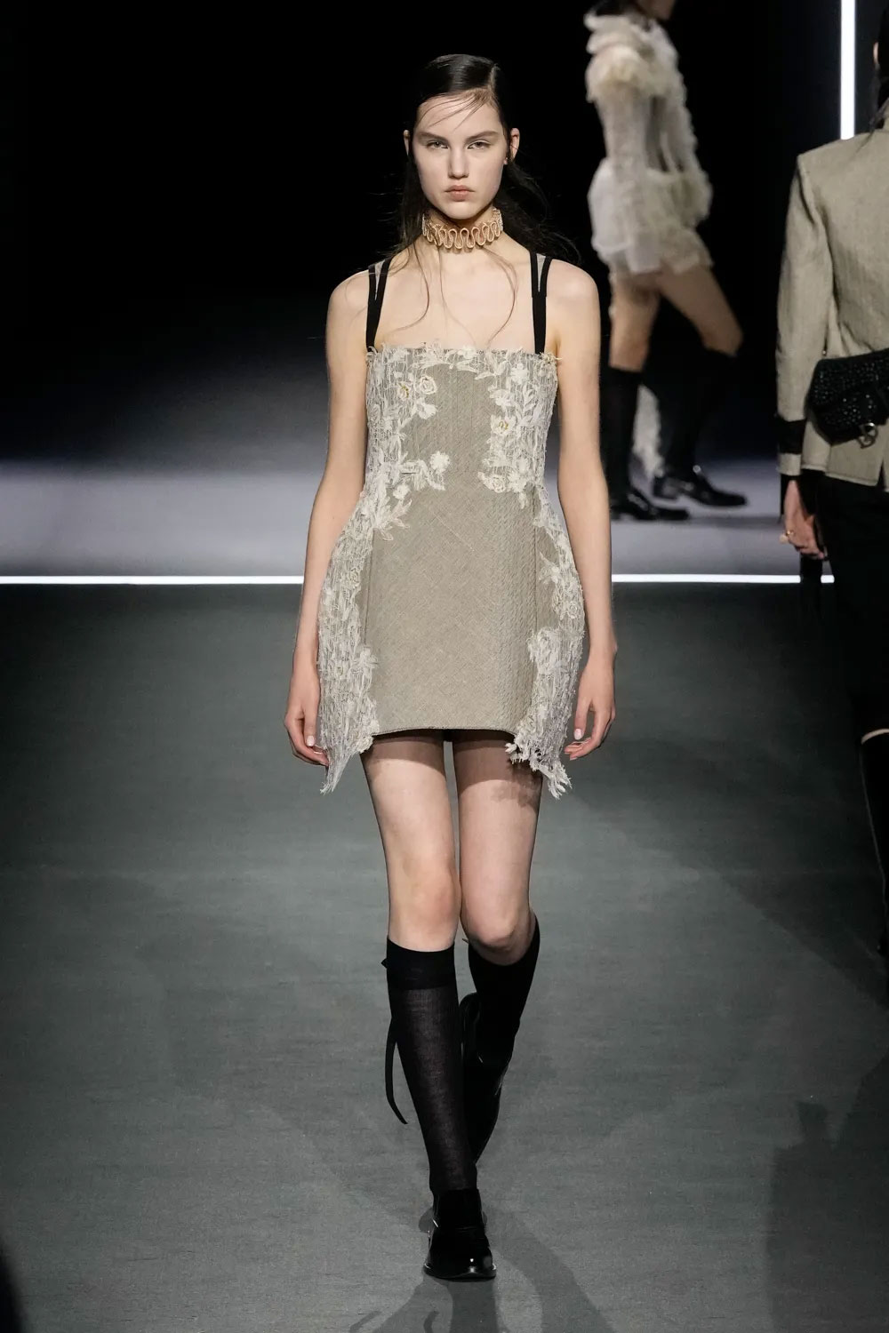 Шоу Dior розпочалось появою однієї з моделей на дерев’яній гойдалці — такий перформанс відкрив показ сезону fall-winter — 2025. Нова колекція модного Дому досліджувала, як герой «Орландо», оповідь про якого триває з XV до XIX століття, виглядав би сьогодні. На подіумі Марія Грація представила знакові історичні коди – від моди Відродження до Вікторіанської епохи.