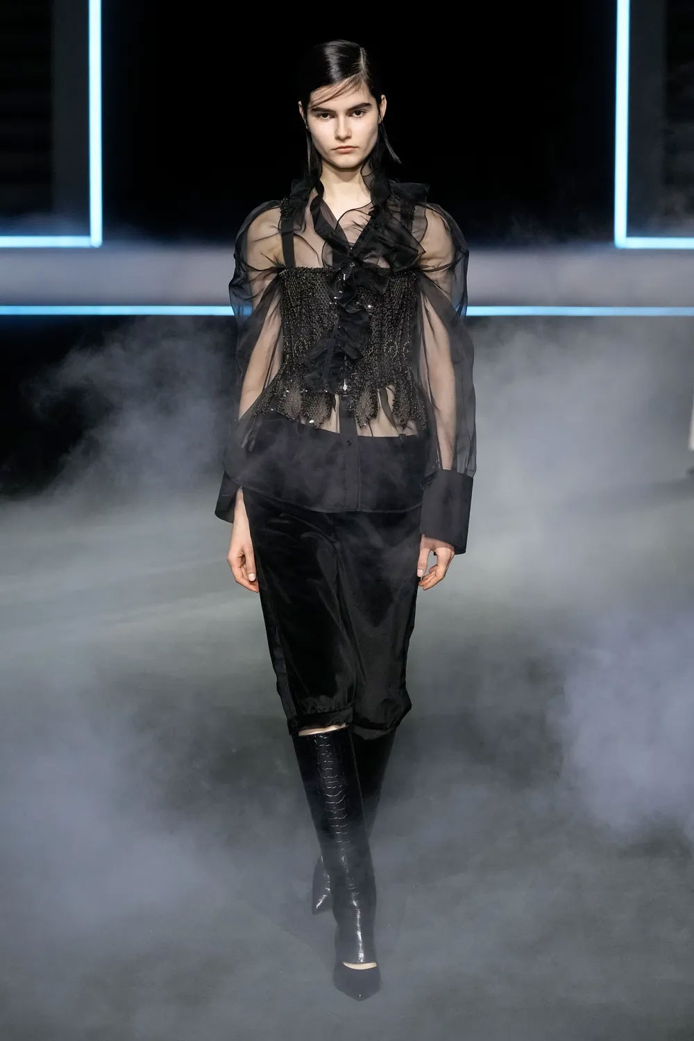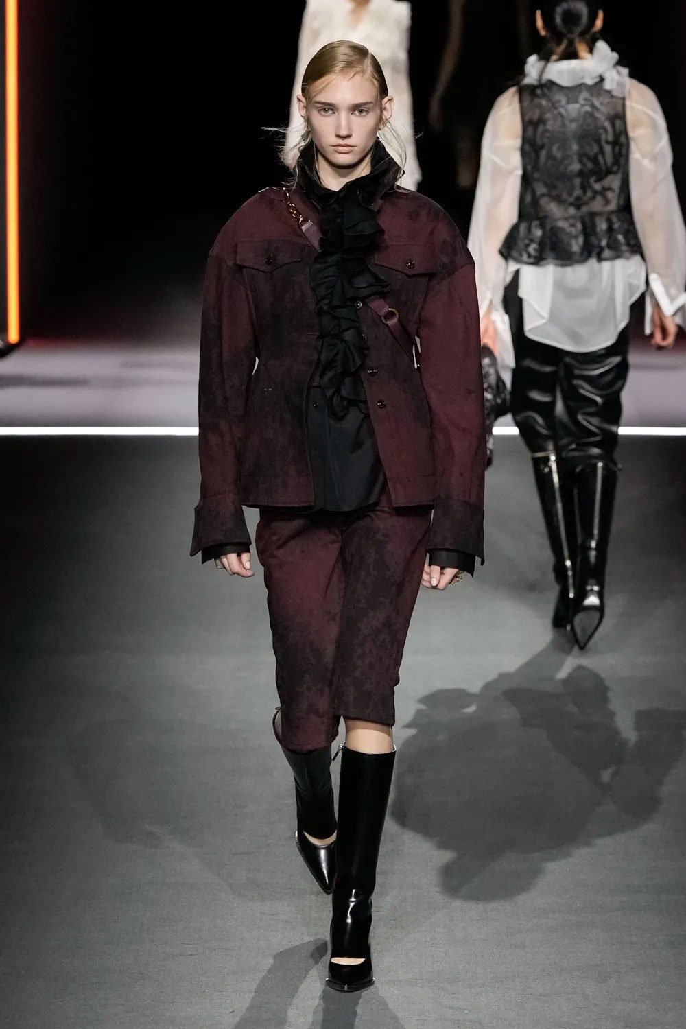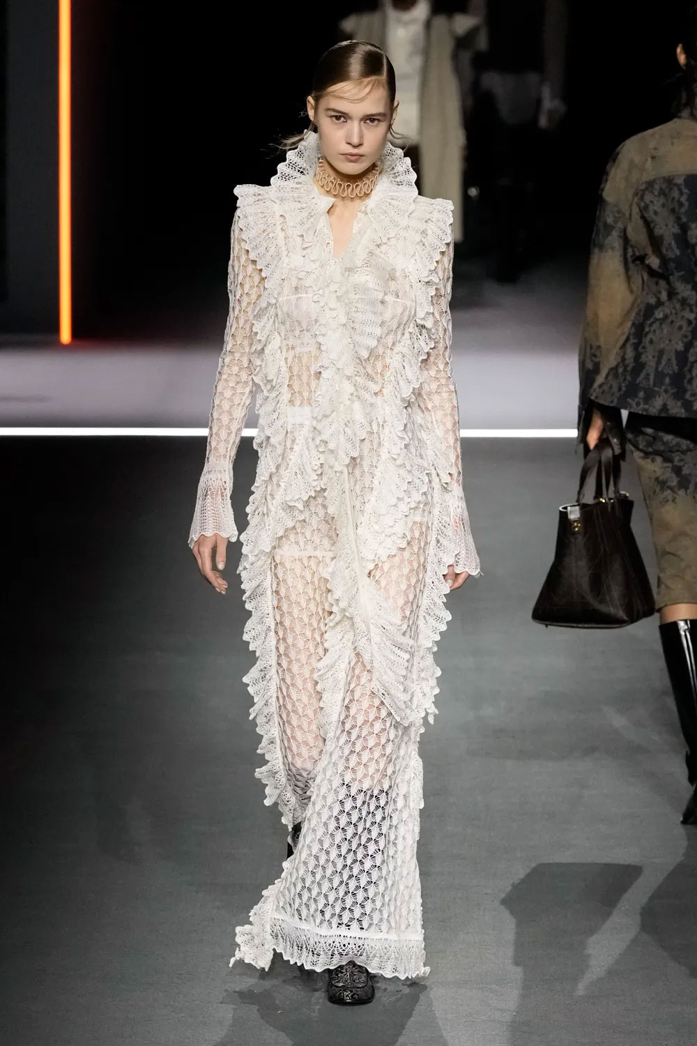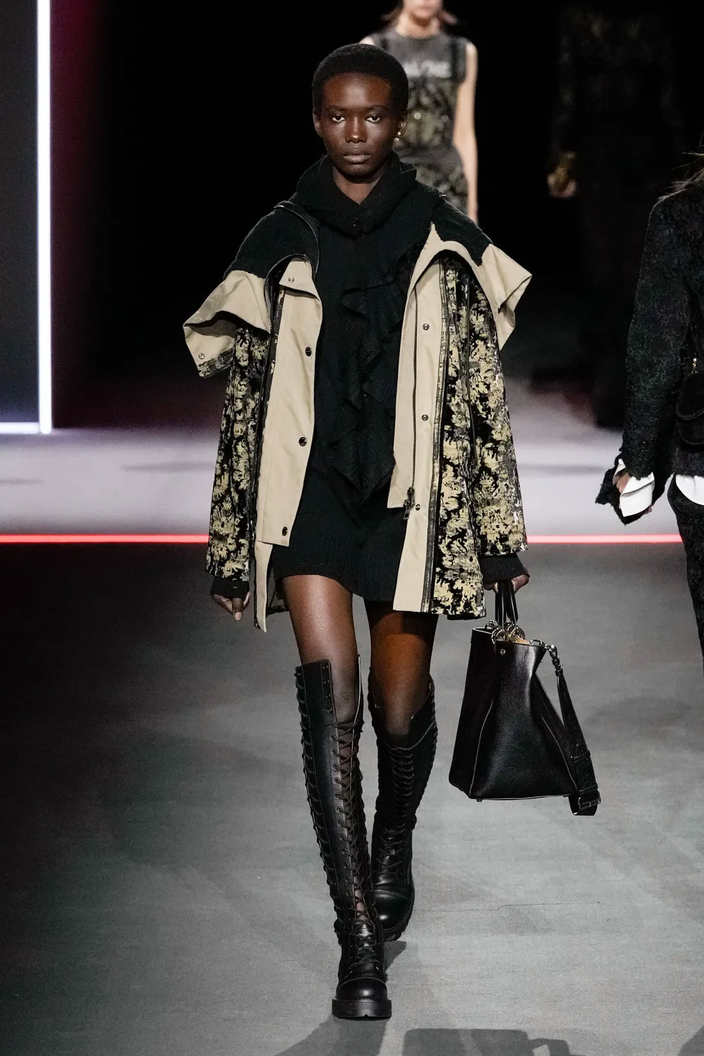 Шоу Dior розпочалось появою однієї з моделей на дерев’яній гойдалці — такий перформанс відкрив показ сезону fall-winter — 2025. Нова колекція модного Дому досліджувала, як герой «Орландо», оповідь про якого триває з XV до XIX століття, виглядав би сьогодні. На подіумі Марія Грація представила знакові історичні коди – від моди Відродження до Вікторіанської епохи.