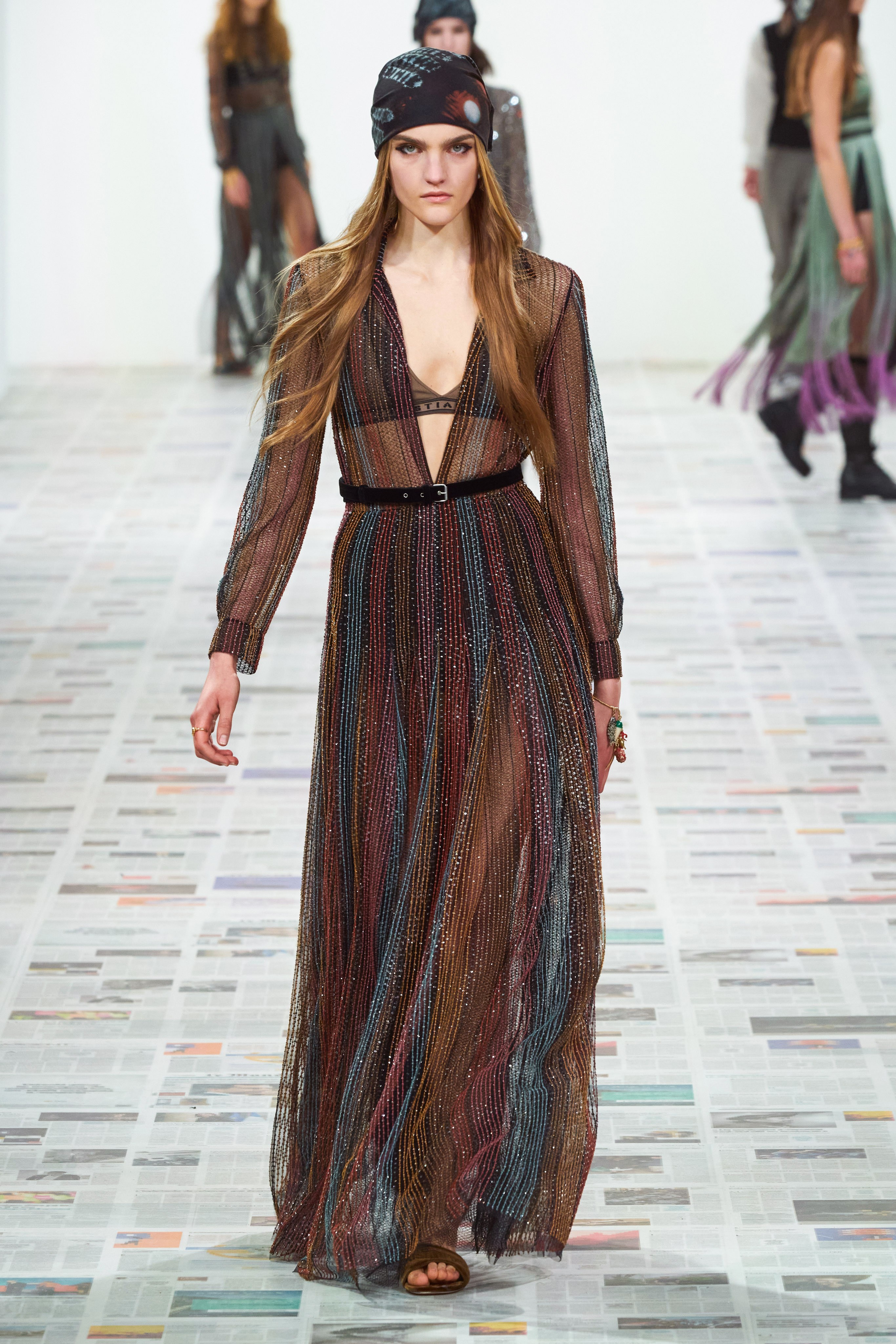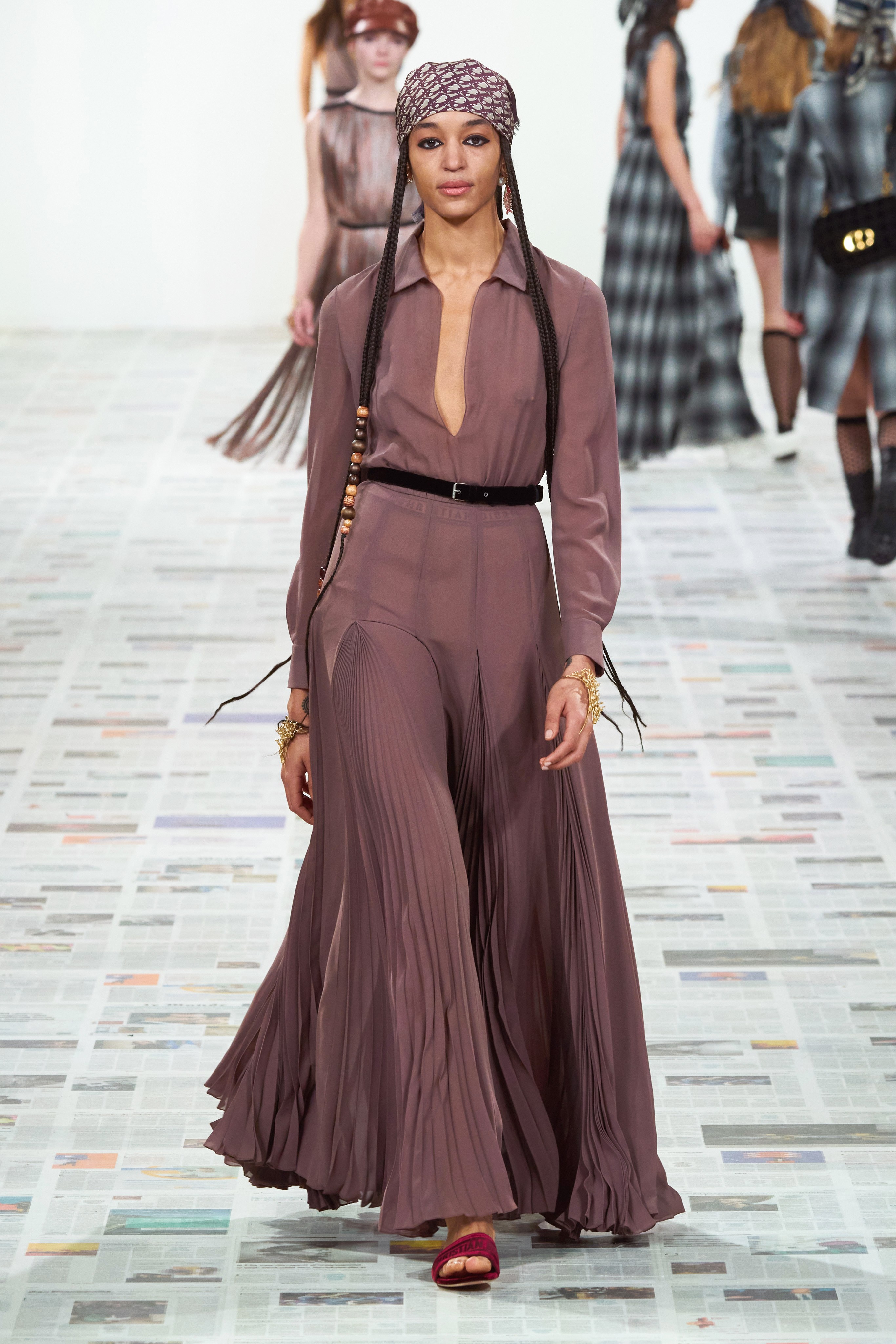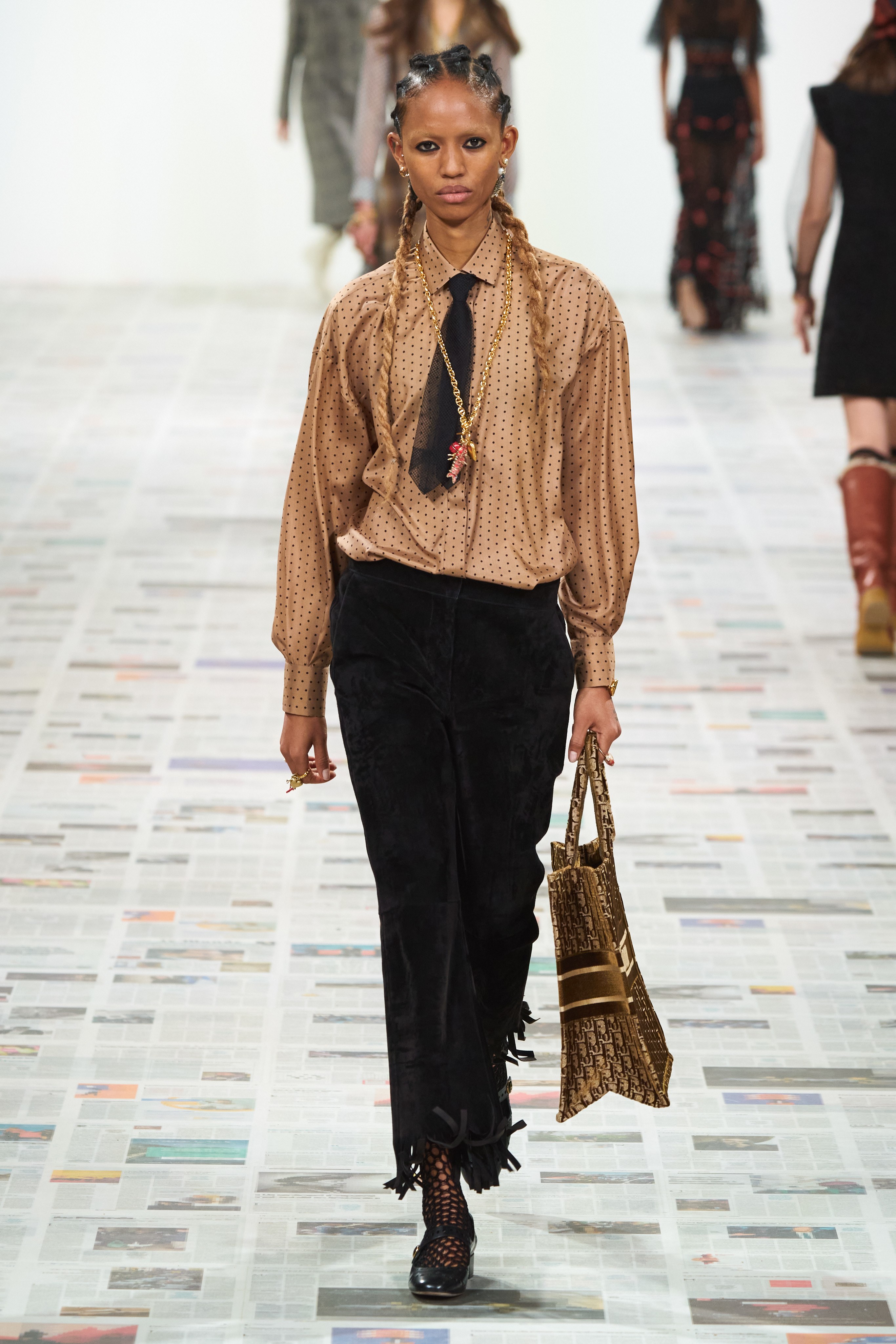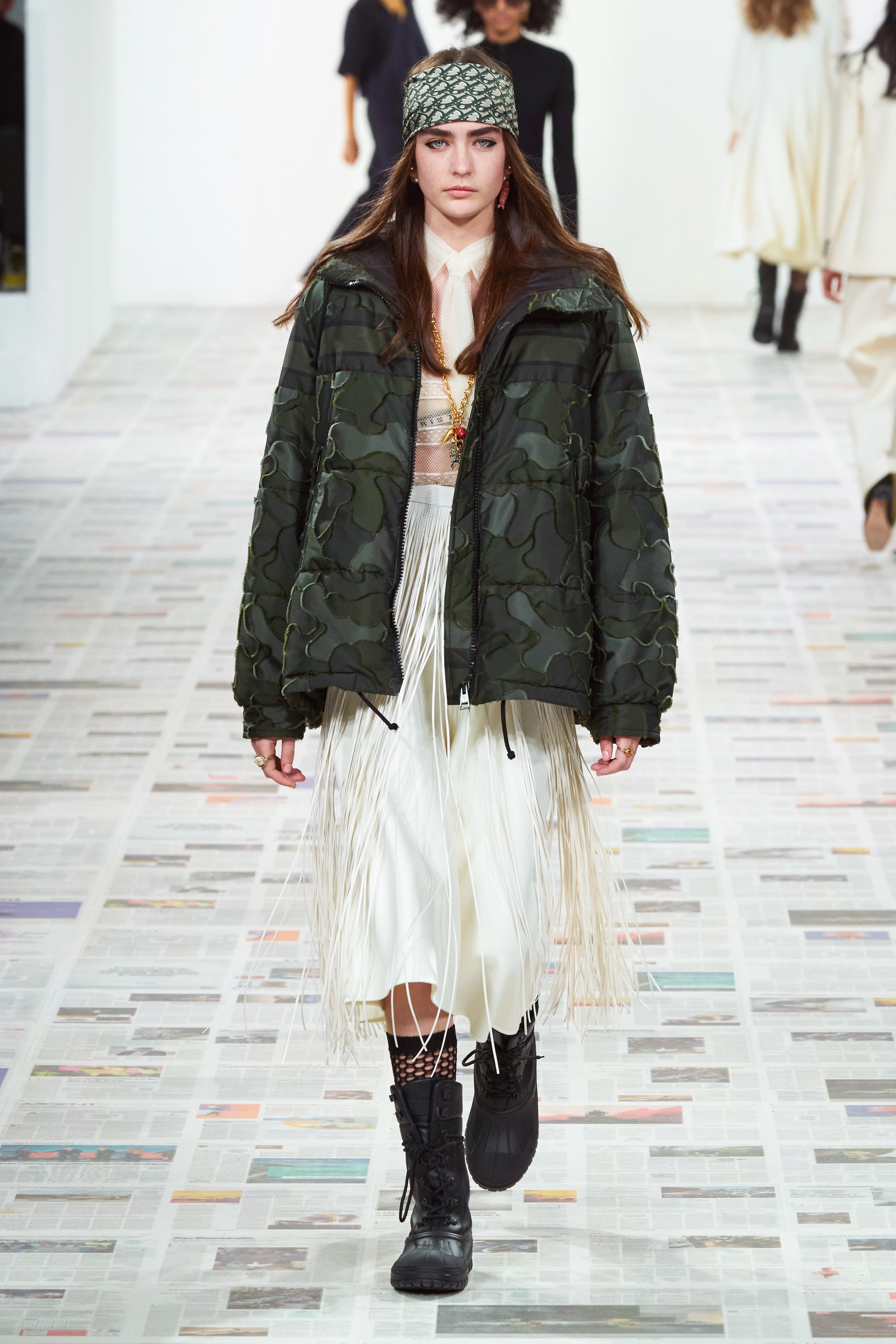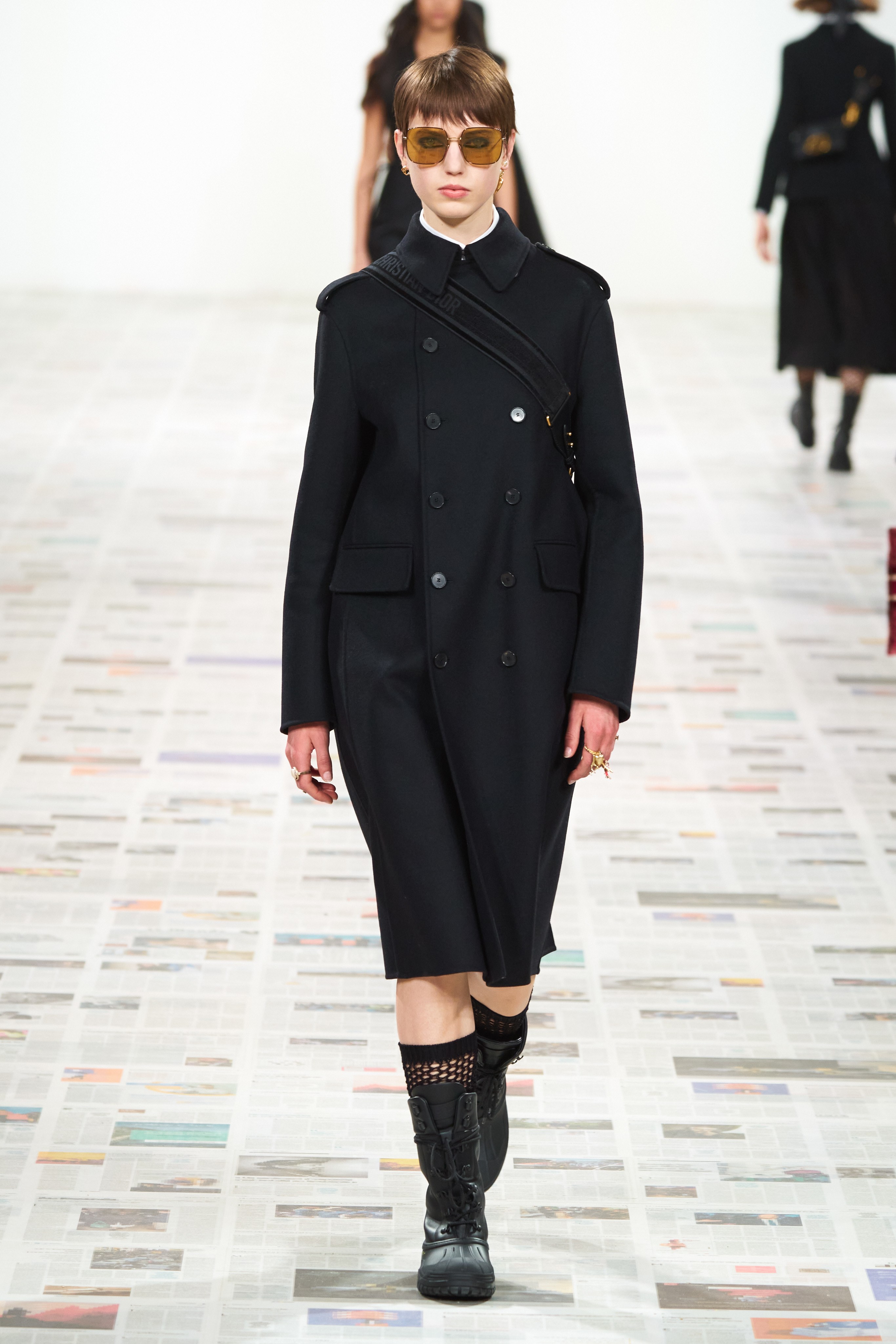 Креативный директор дома Dior Мария Грация Кьюри из сезона в сезон находит способы говорить о значимости и величии современной женщины в мире. На этот раз дизайнер пригласила к сотрудничеству художницу Клэр Фонтен — её команда разработала для подиума неоновые вывески, гласящие: "Патриархат = экологическая угроза", "Любовь женщины — это неоплачиваемый труд", "Согласие", "Равенство" и прочее.