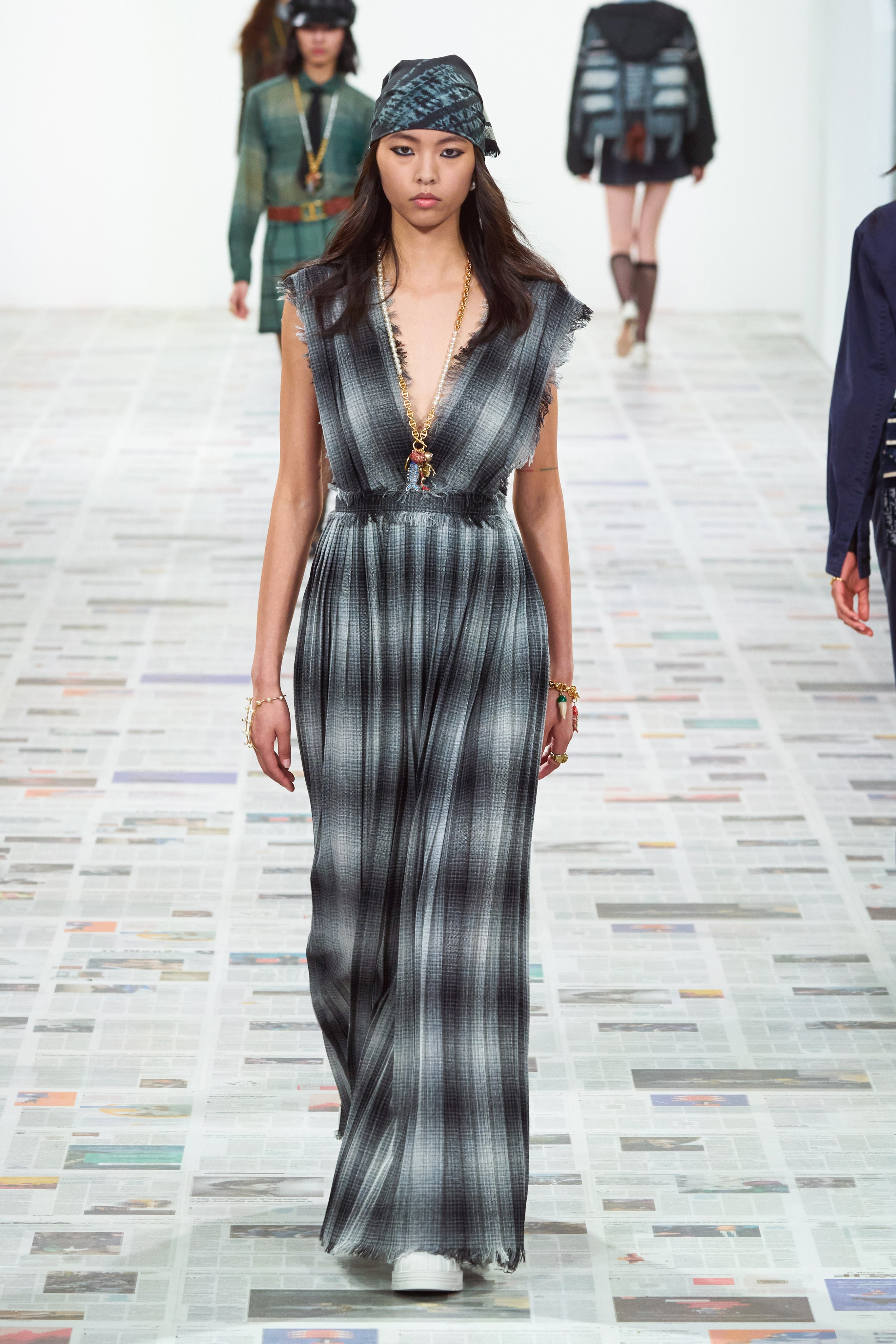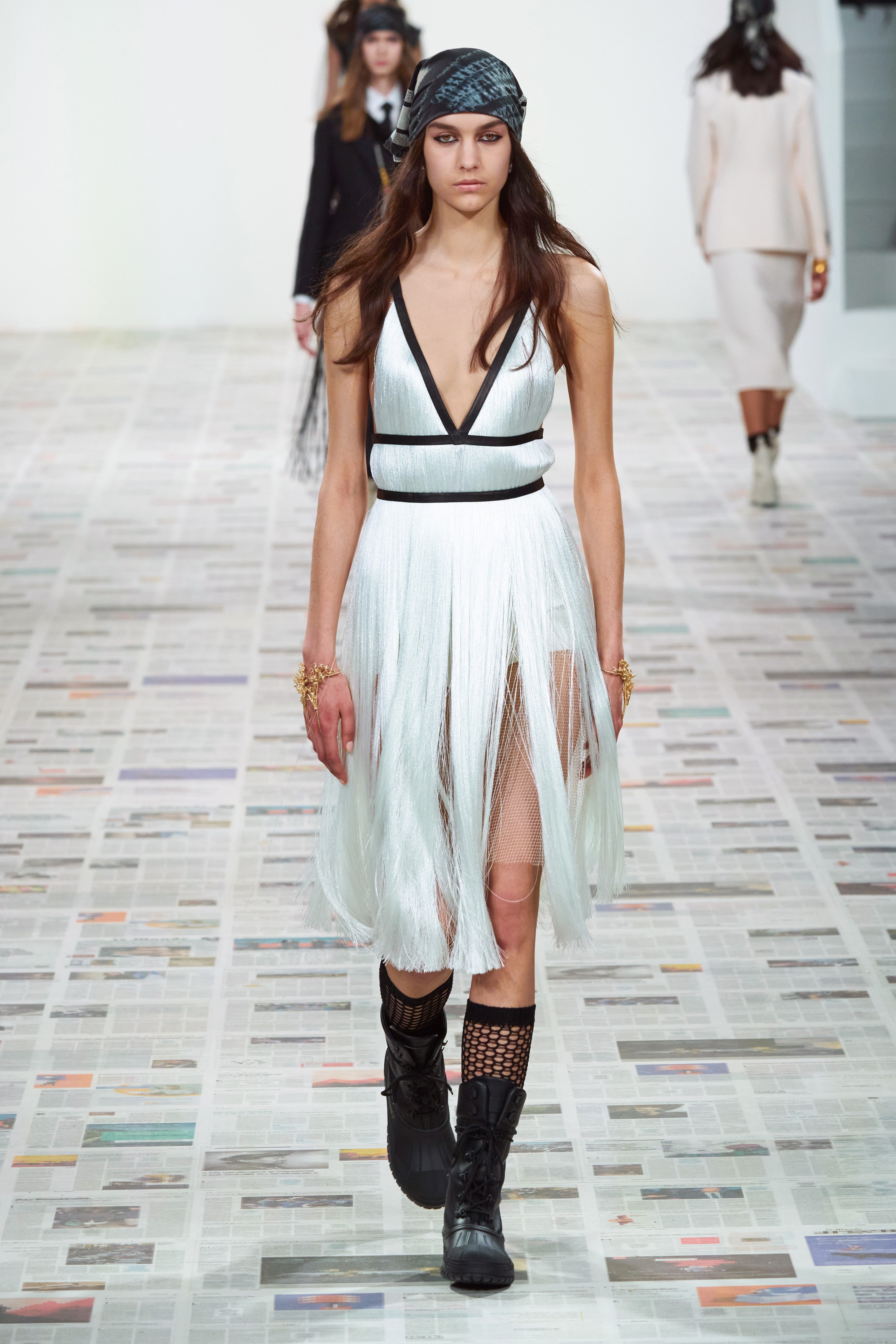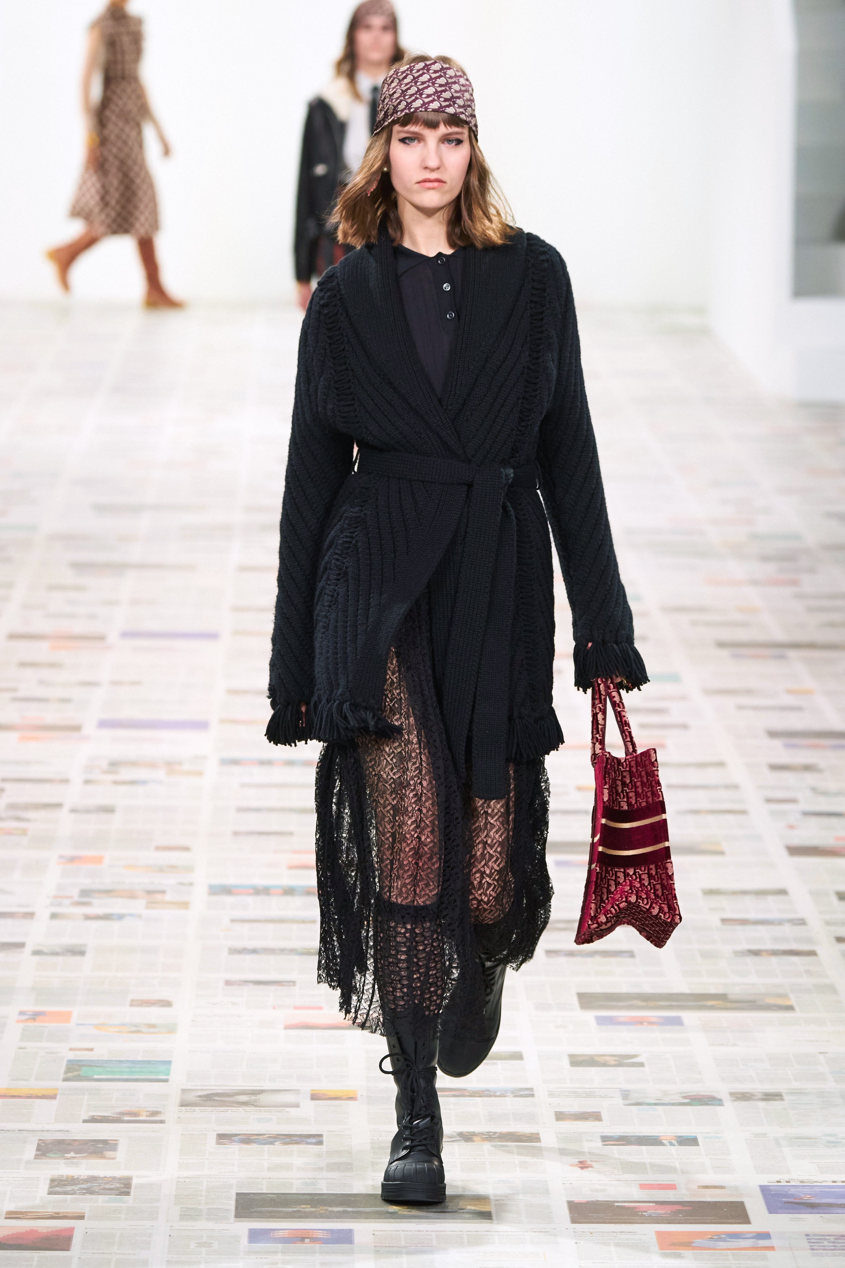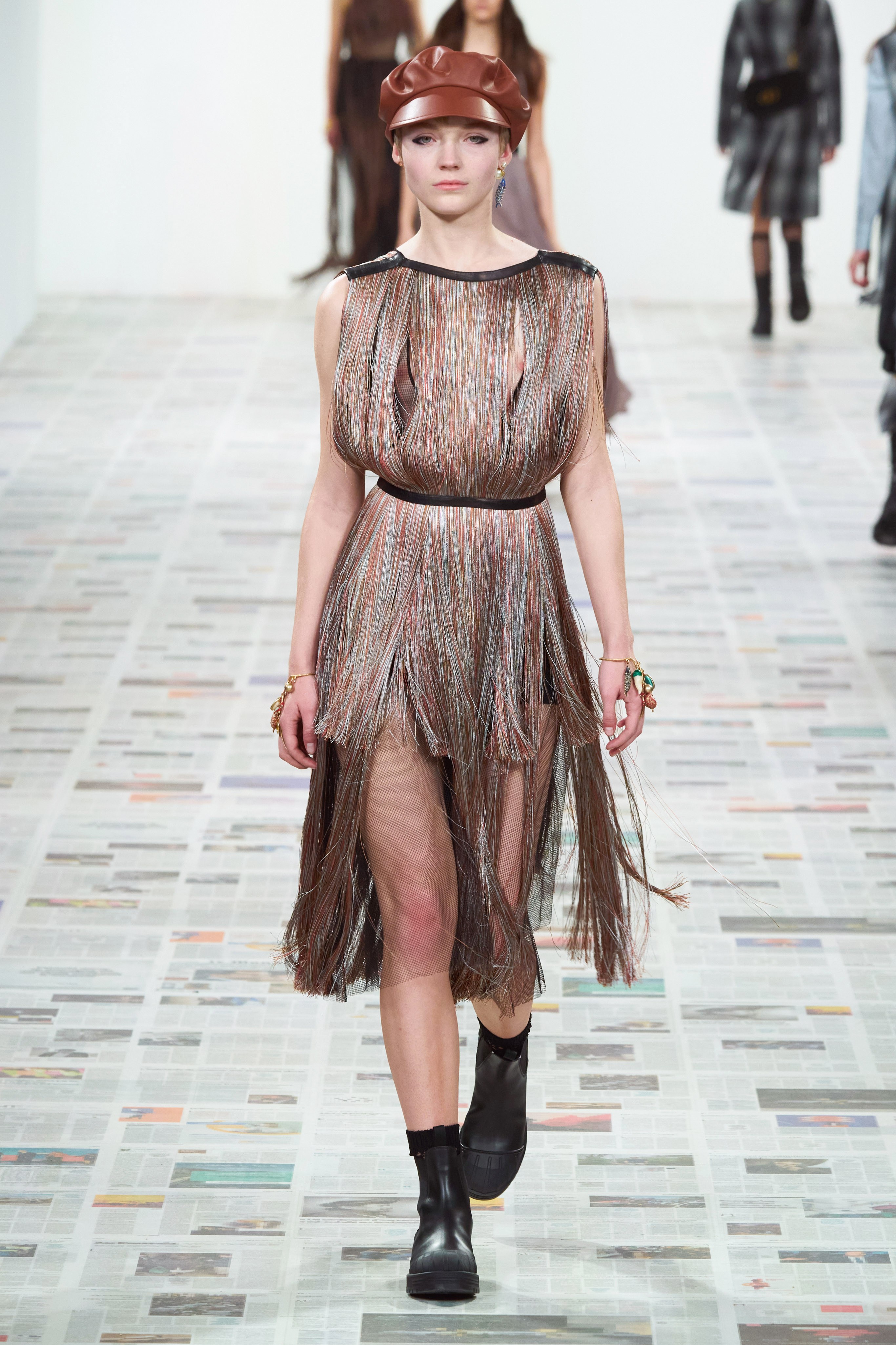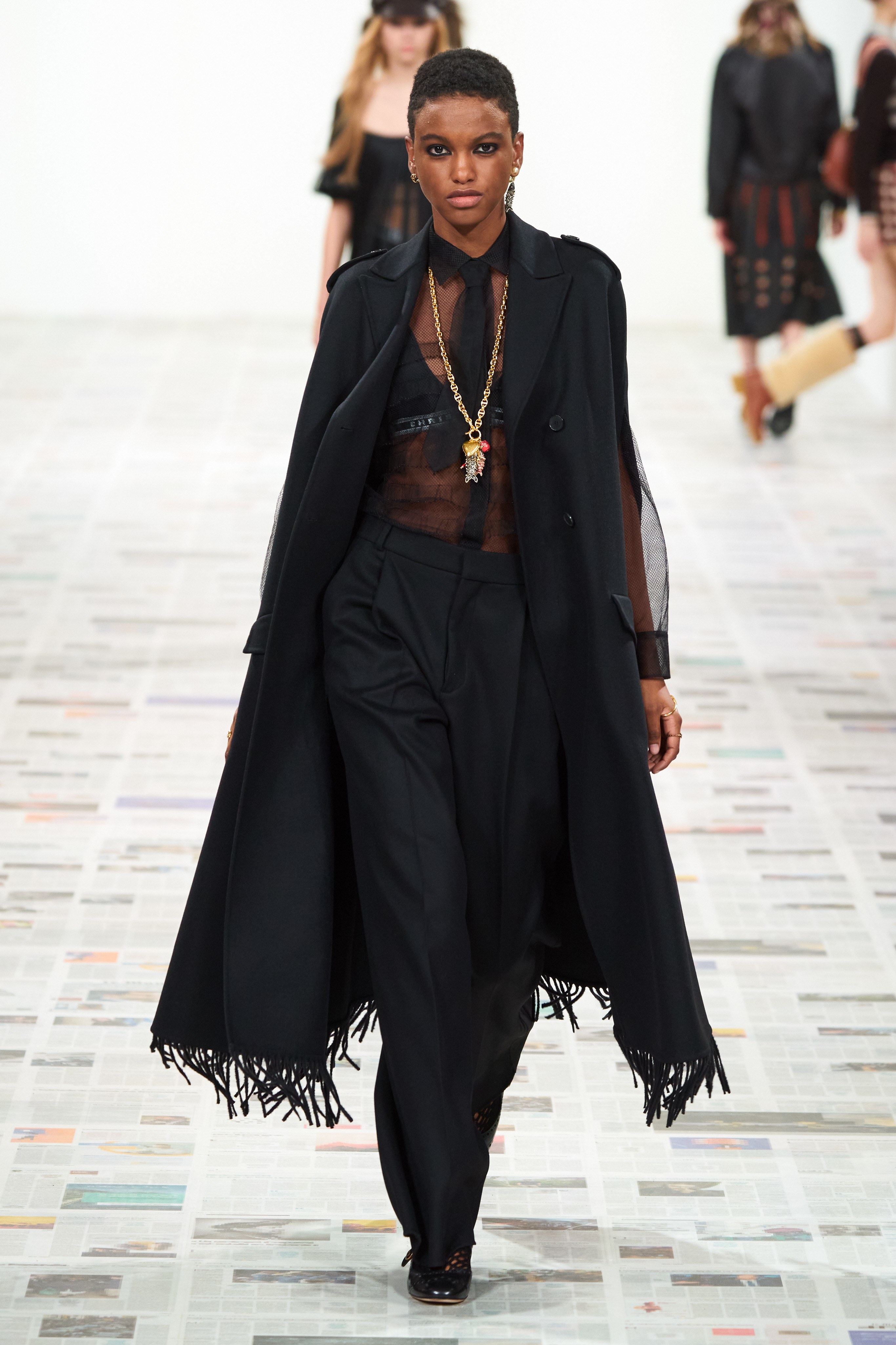 Креативный директор дома Dior Мария Грация Кьюри из сезона в сезон находит способы говорить о значимости и величии современной женщины в мире. На этот раз дизайнер пригласила к сотрудничеству художницу Клэр Фонтен — её команда разработала для подиума неоновые вывески, гласящие: "Патриархат = экологическая угроза", "Любовь женщины — это неоплачиваемый труд", "Согласие", "Равенство" и прочее.