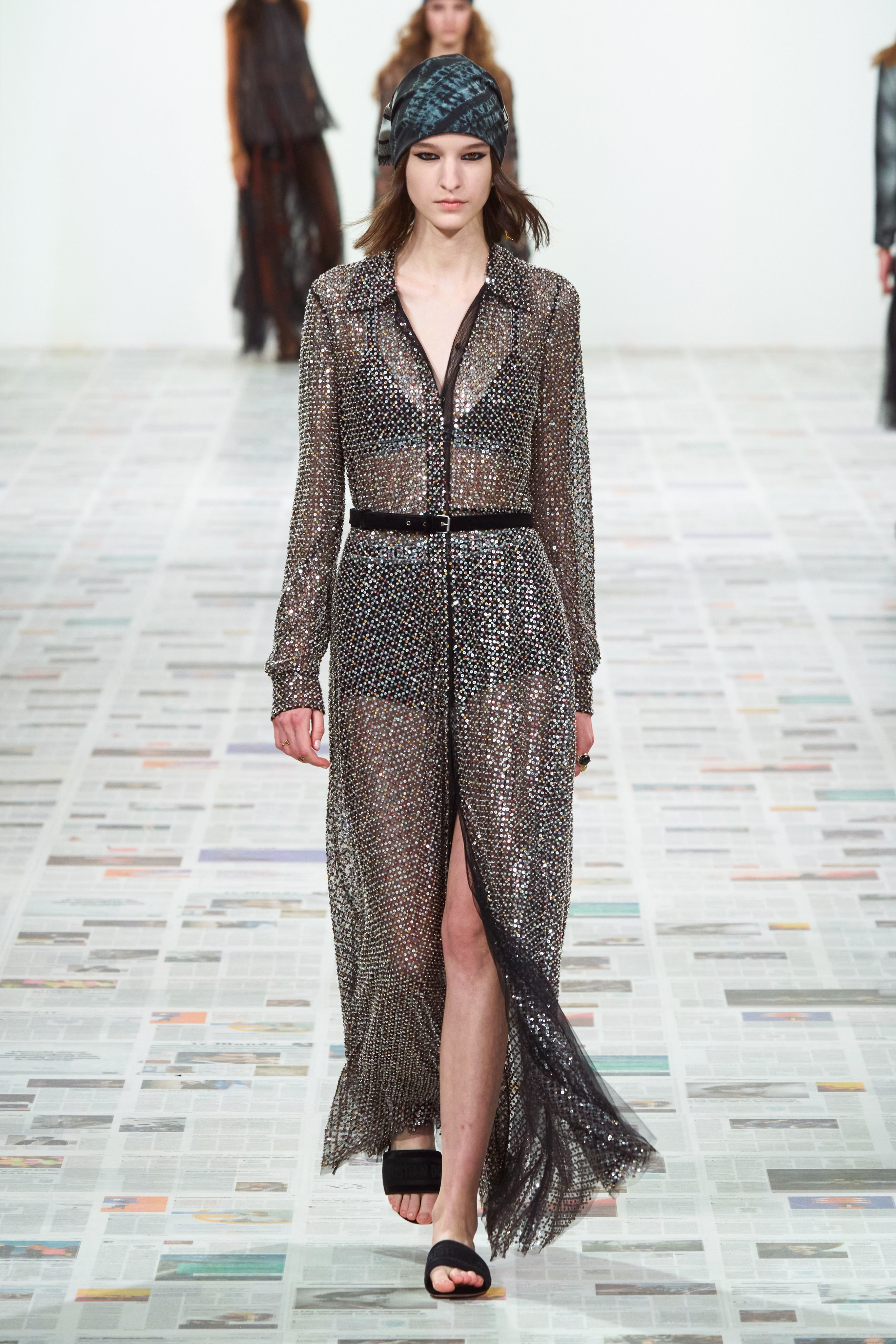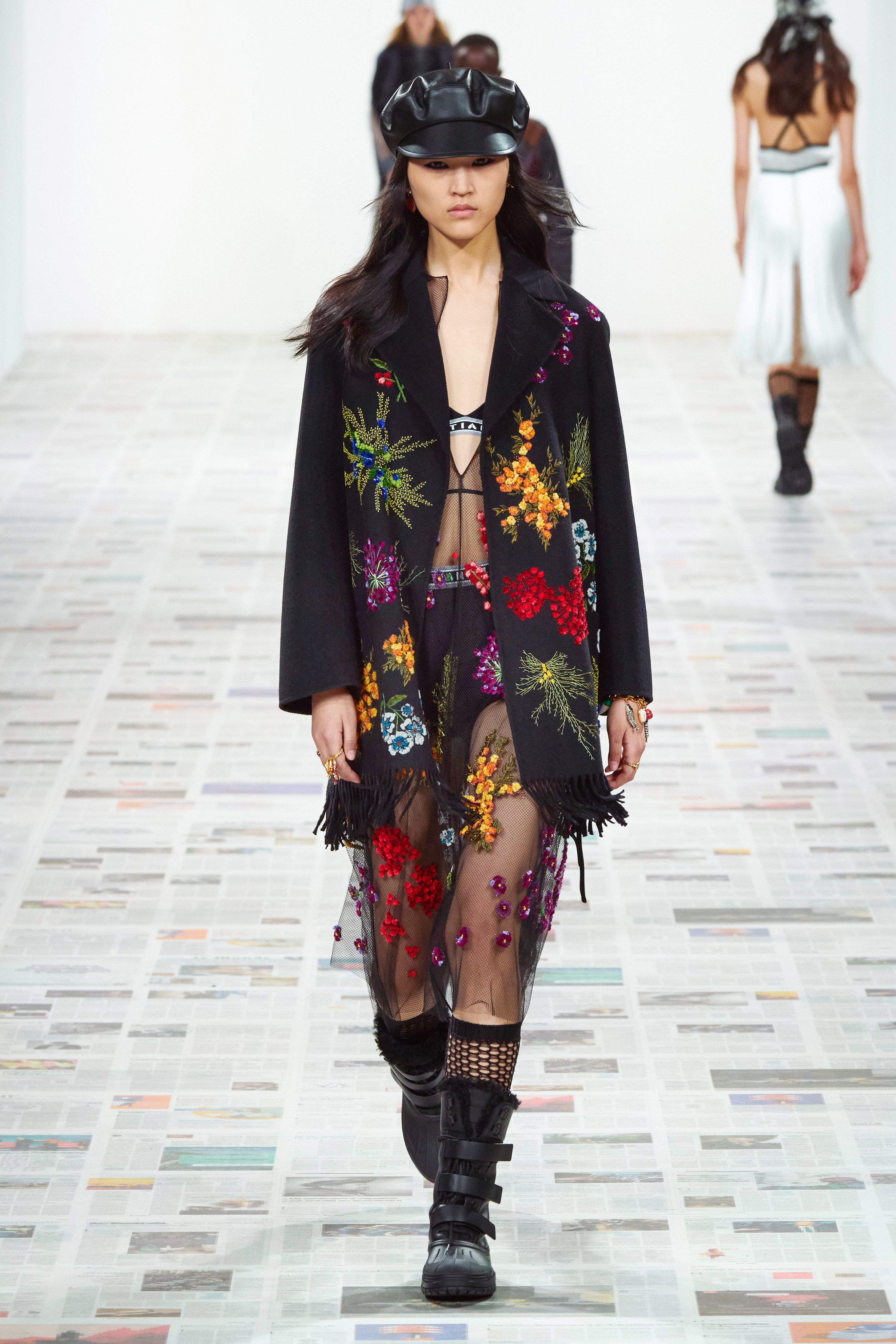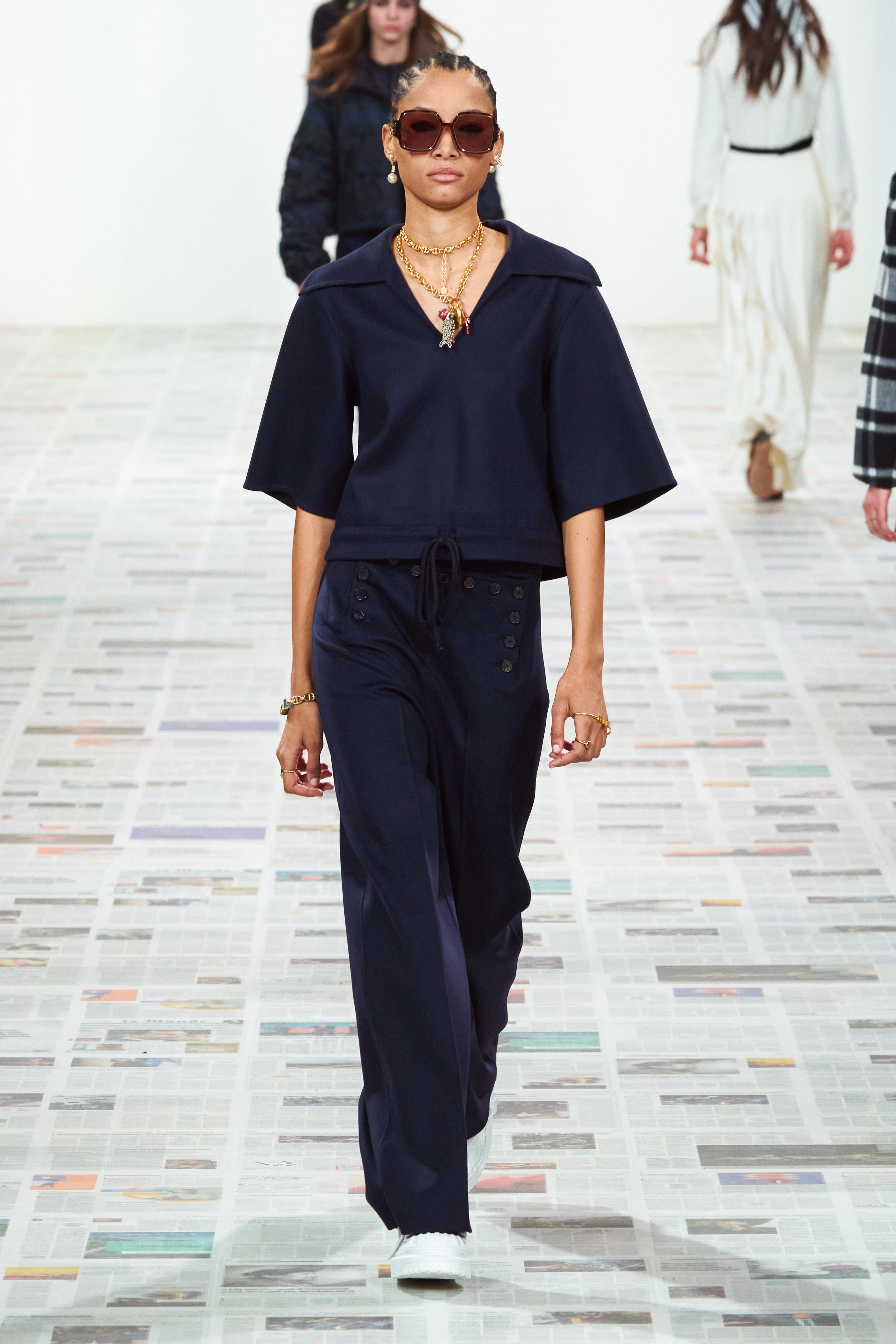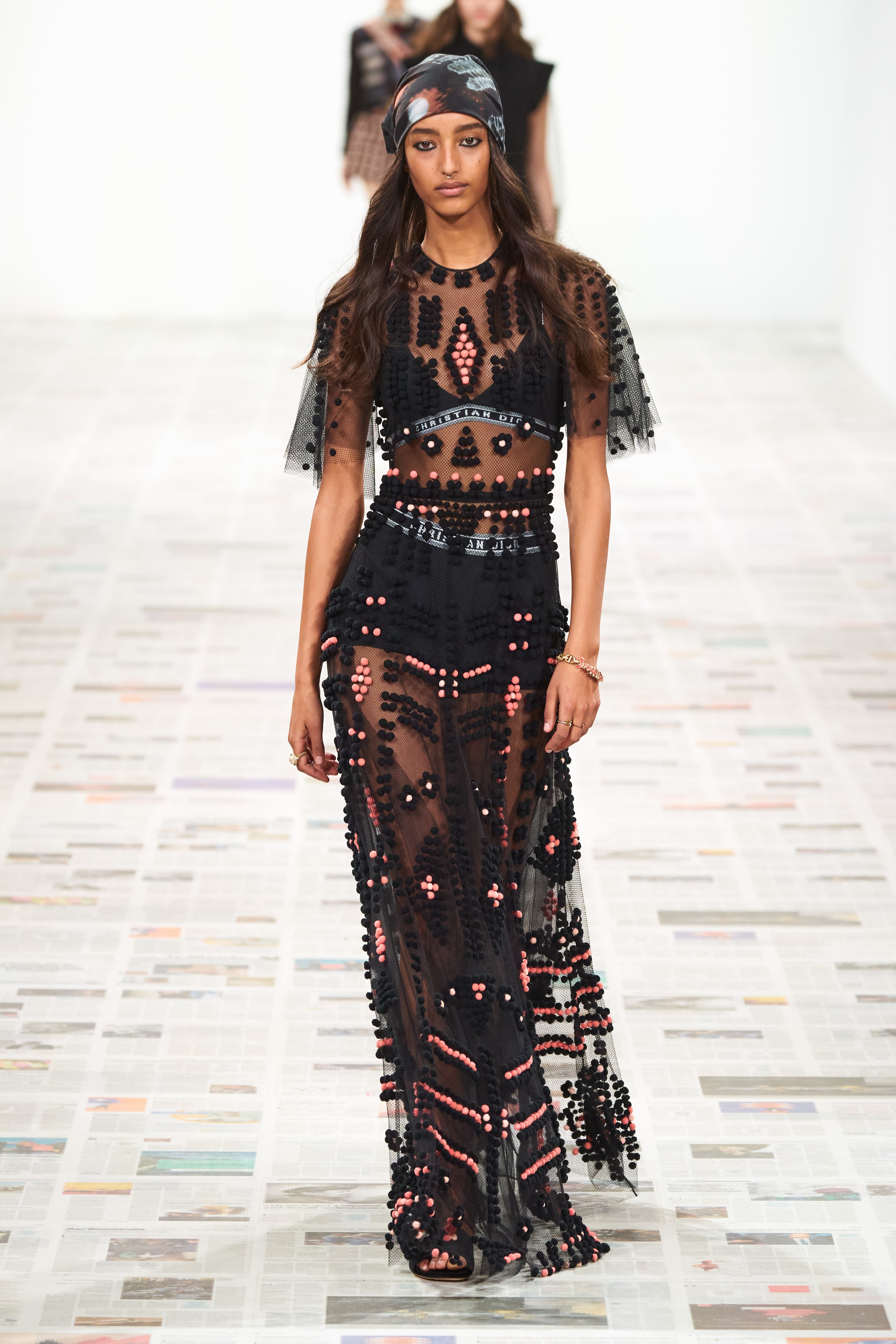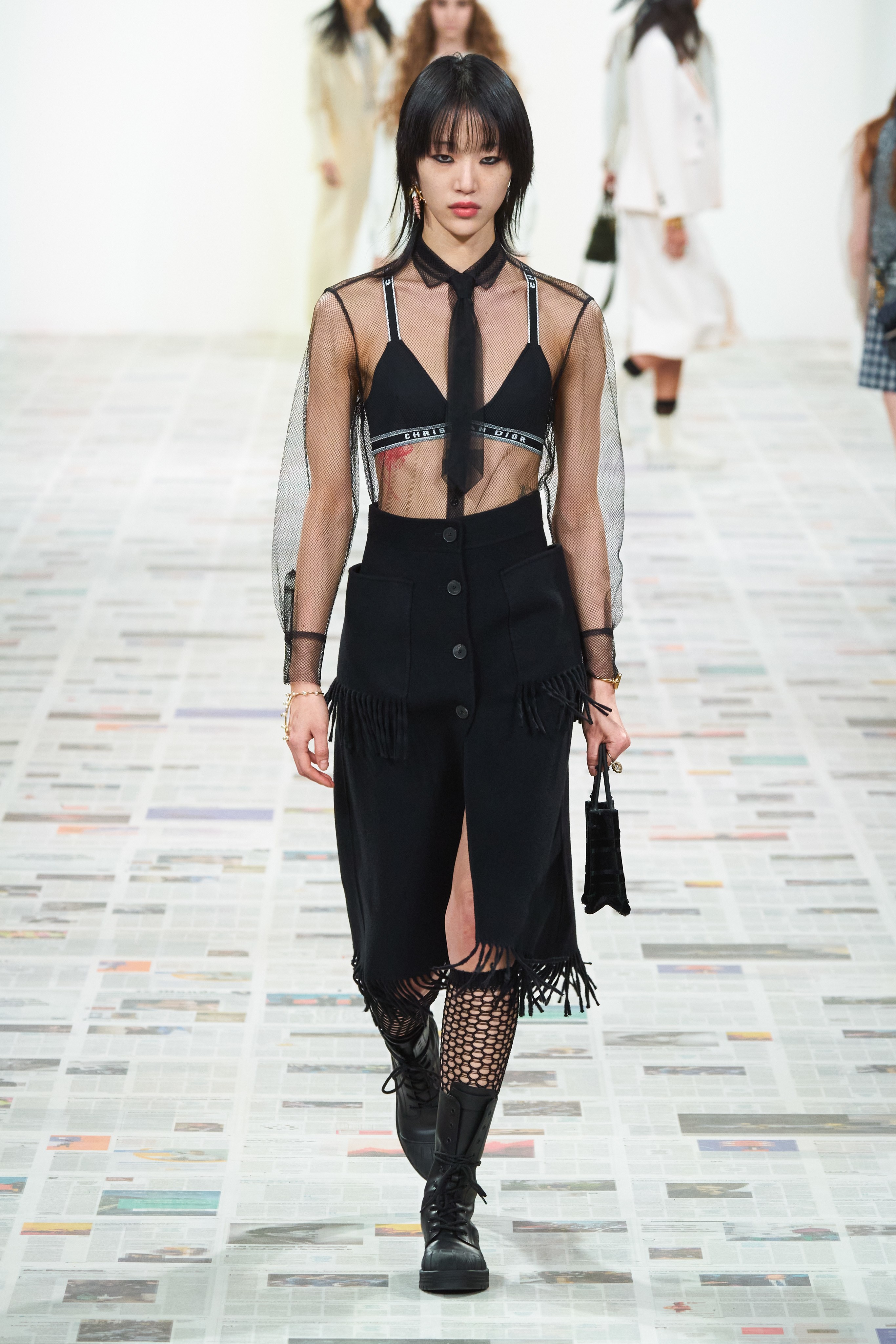 Креативный директор дома Dior Мария Грация Кьюри из сезона в сезон находит способы говорить о значимости и величии современной женщины в мире. На этот раз дизайнер пригласила к сотрудничеству художницу Клэр Фонтен — её команда разработала для подиума неоновые вывески, гласящие: "Патриархат = экологическая угроза", "Любовь женщины — это неоплачиваемый труд", "Согласие", "Равенство" и прочее.