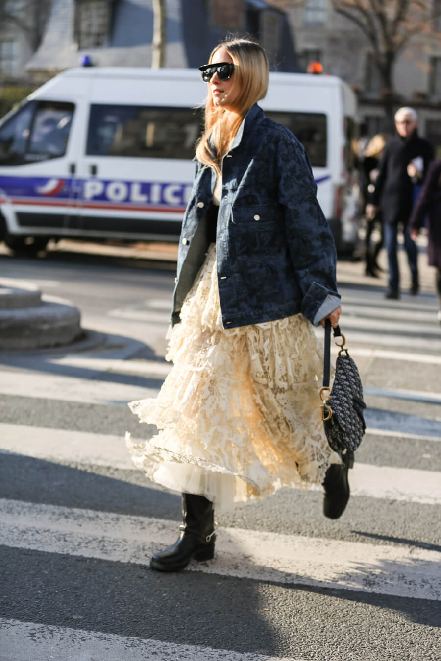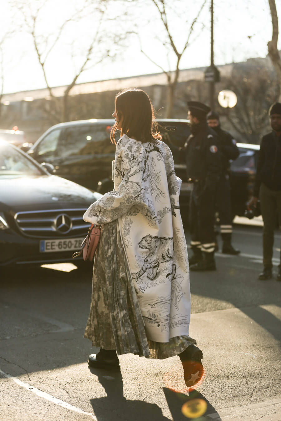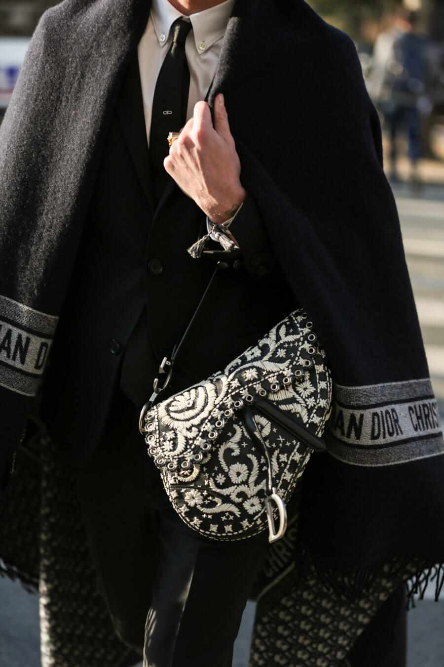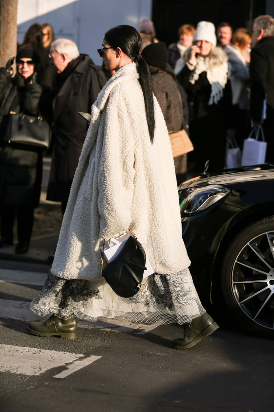 Среди гостей главных Недель моды есть негласное правило – одеваться на показ бренда в вещи предыдущих сезонов. Так и случилось в этот раз – стритстайл-модницы перед показом кутюрной коллекции Dior были замечены с saddle-bags в разных цветовых решениях, в платьях из круизной коллекции, которую Мария Грация Кьюри представила в Больших конюшнях усадьбы Шантийи в июне 2018-го.