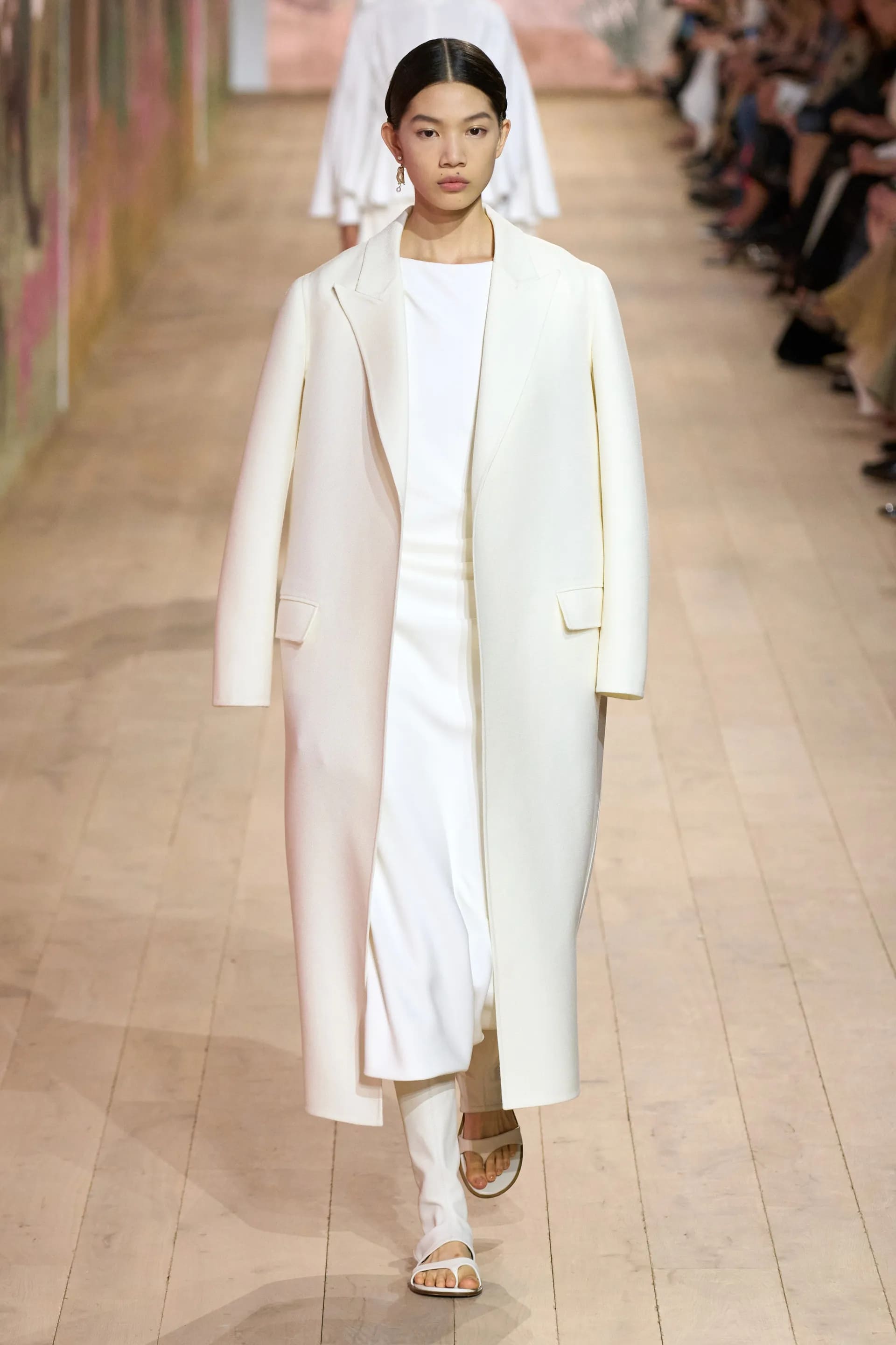 У дослідженні свого римського виховання креативна директорка Dior створила вільні, легкі вбрання на контрасті з щільними тканинами. Без традиційної баски не обійшлося: сорочки, затягнуті на талії, породили нову інтерпретацію. Лаконічність образів продемонструвало використання бавовни й шифону.
