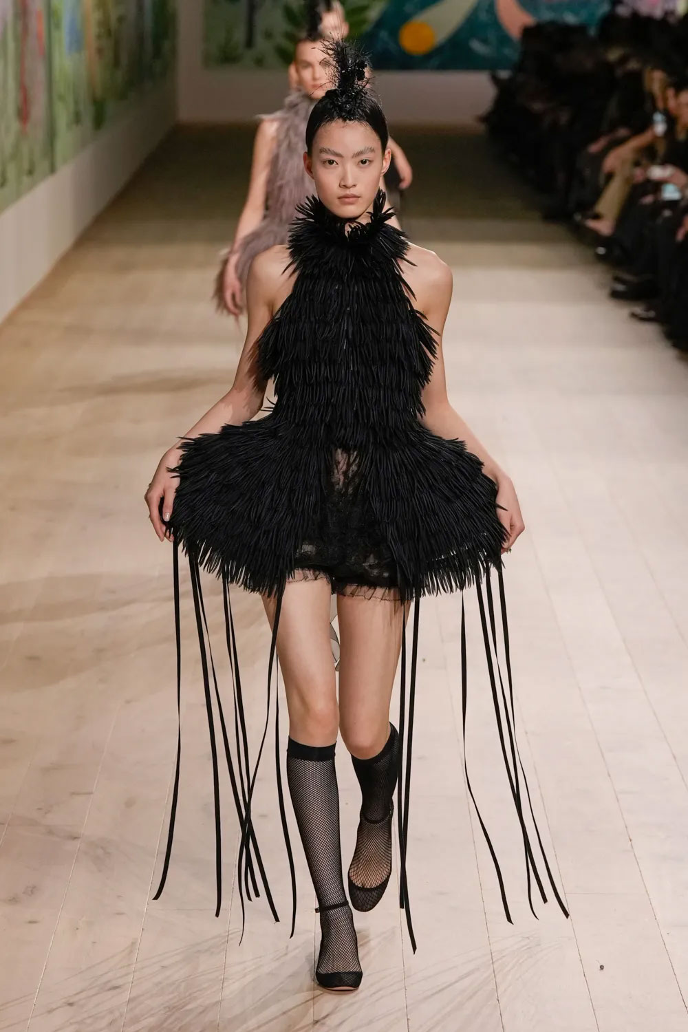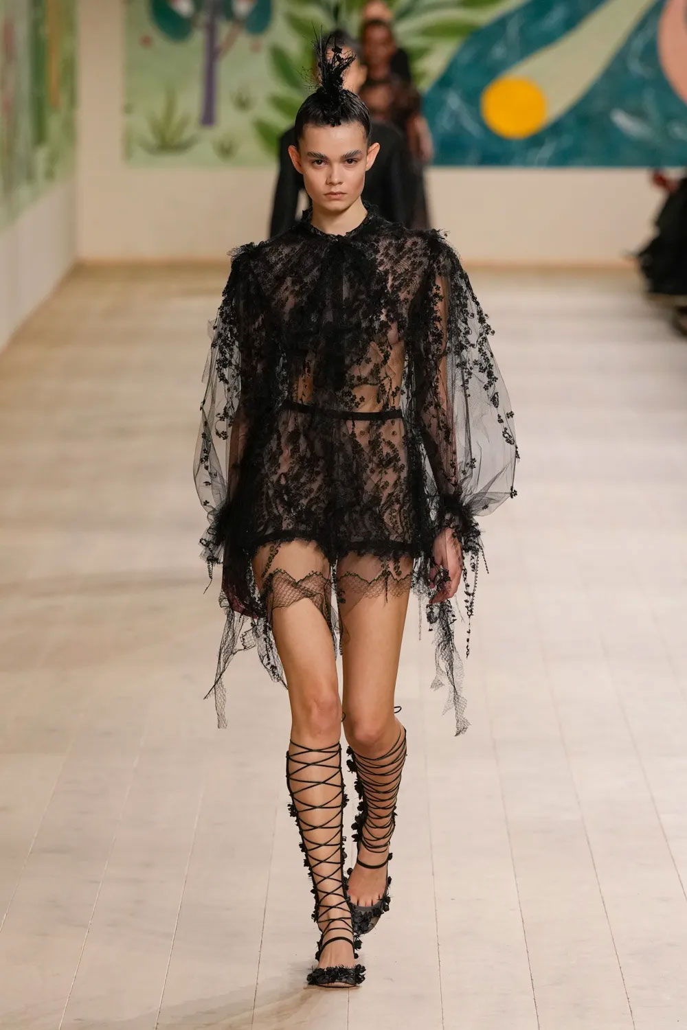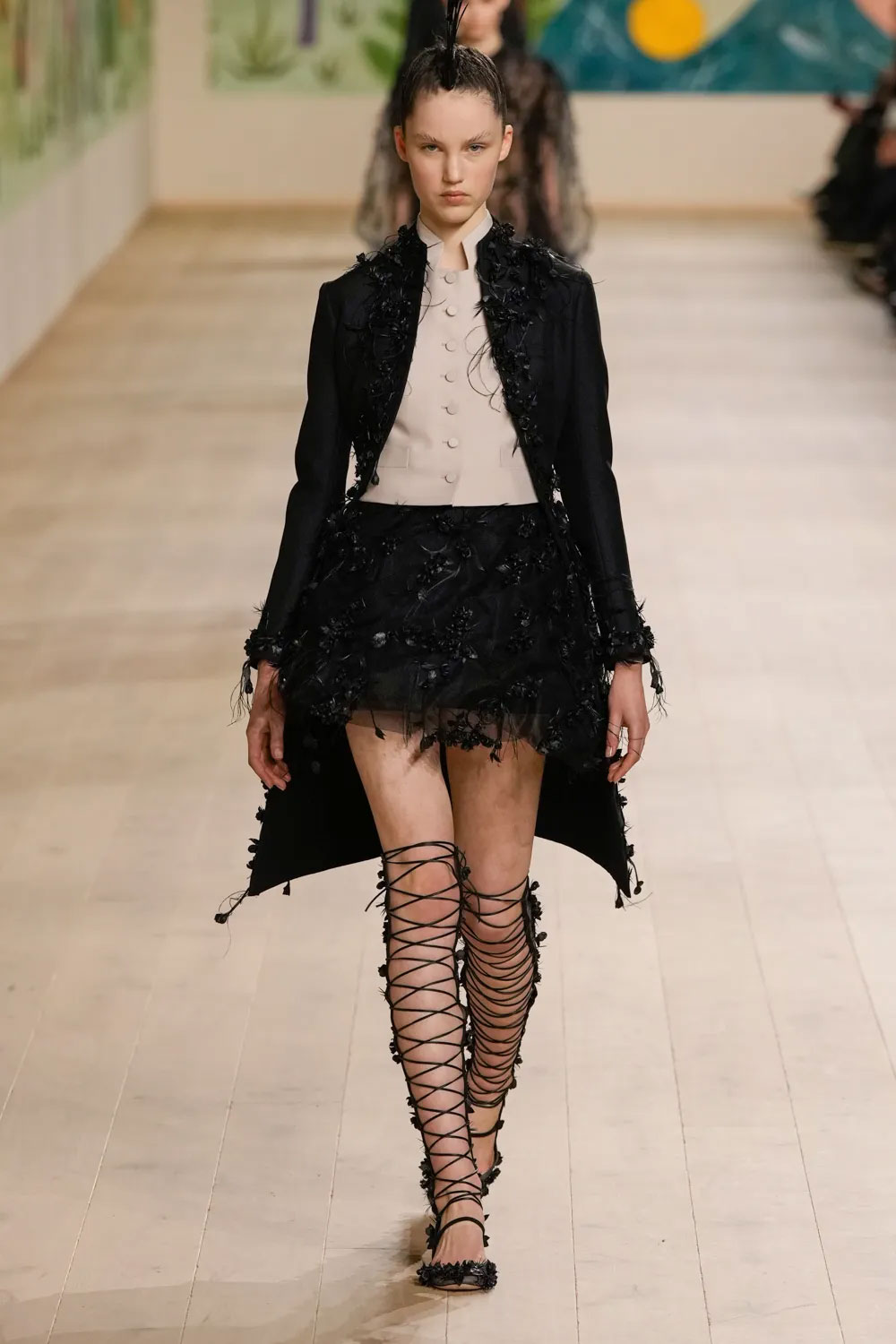 Моделі з іншої фантастичної реальності на показі Dior були одягнуті в панівній палітрі з бежевого, чорного, сірого й білого кольорів. Серед них були жінка-квітка або ж жінка-птаха, яку вирізняв гребенеподібний панківський головний убір. Їхні вбрання — це квіткові мотиви та сучасний кринолін, з якого до підлоги сягали стрічки чи торочки, схожі на гілки, а також оборки, банти й об’ємні рюші на шортах-блумерах і сукнях різної довжини. Жінка-квітка та жінка птаха Dior до того ж убралися в срібну вишивку, пір’я з органзи, мереживо, транслюючи невагомість із прозорими тканинами та крокуючи в гладіаторських балетках.