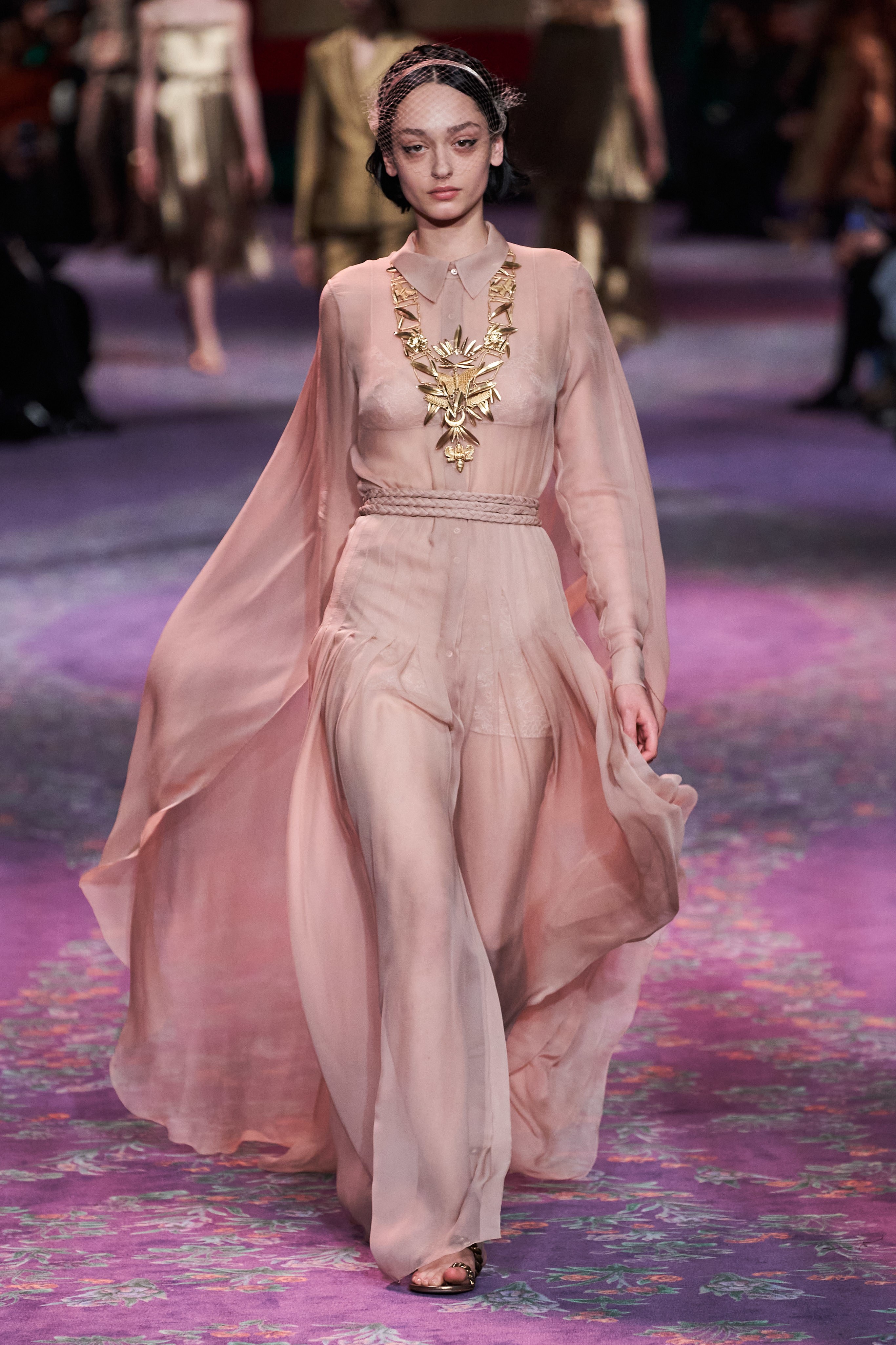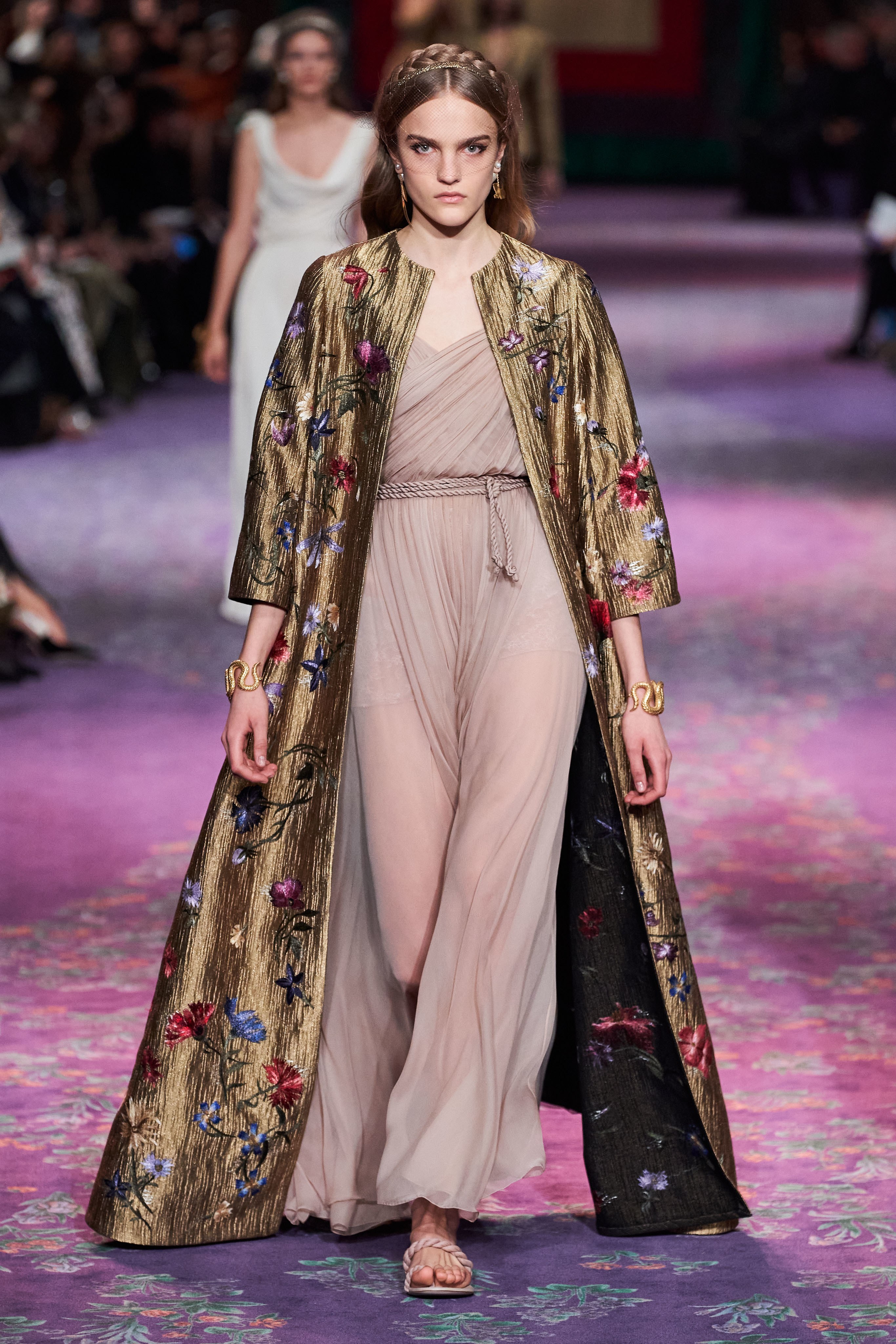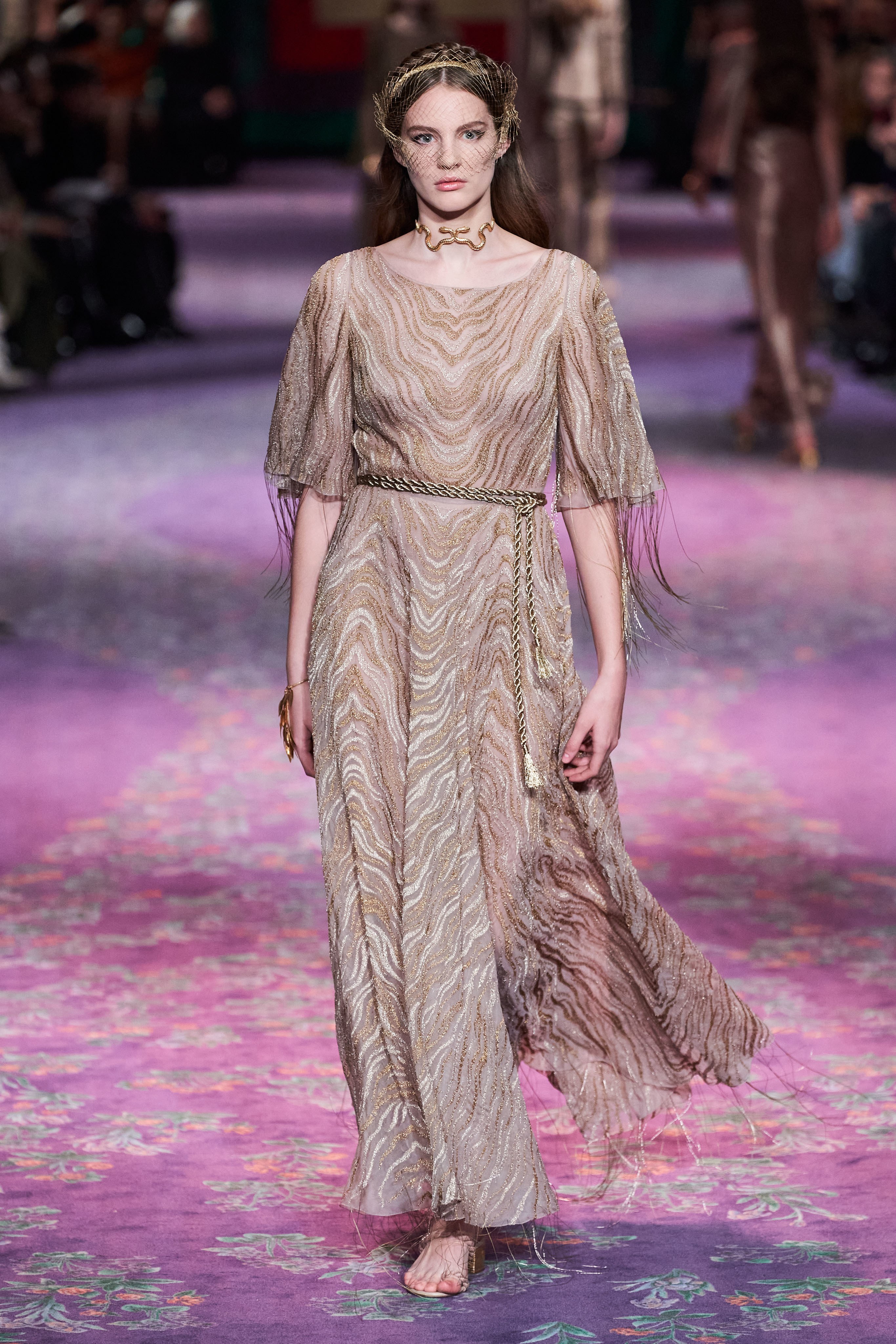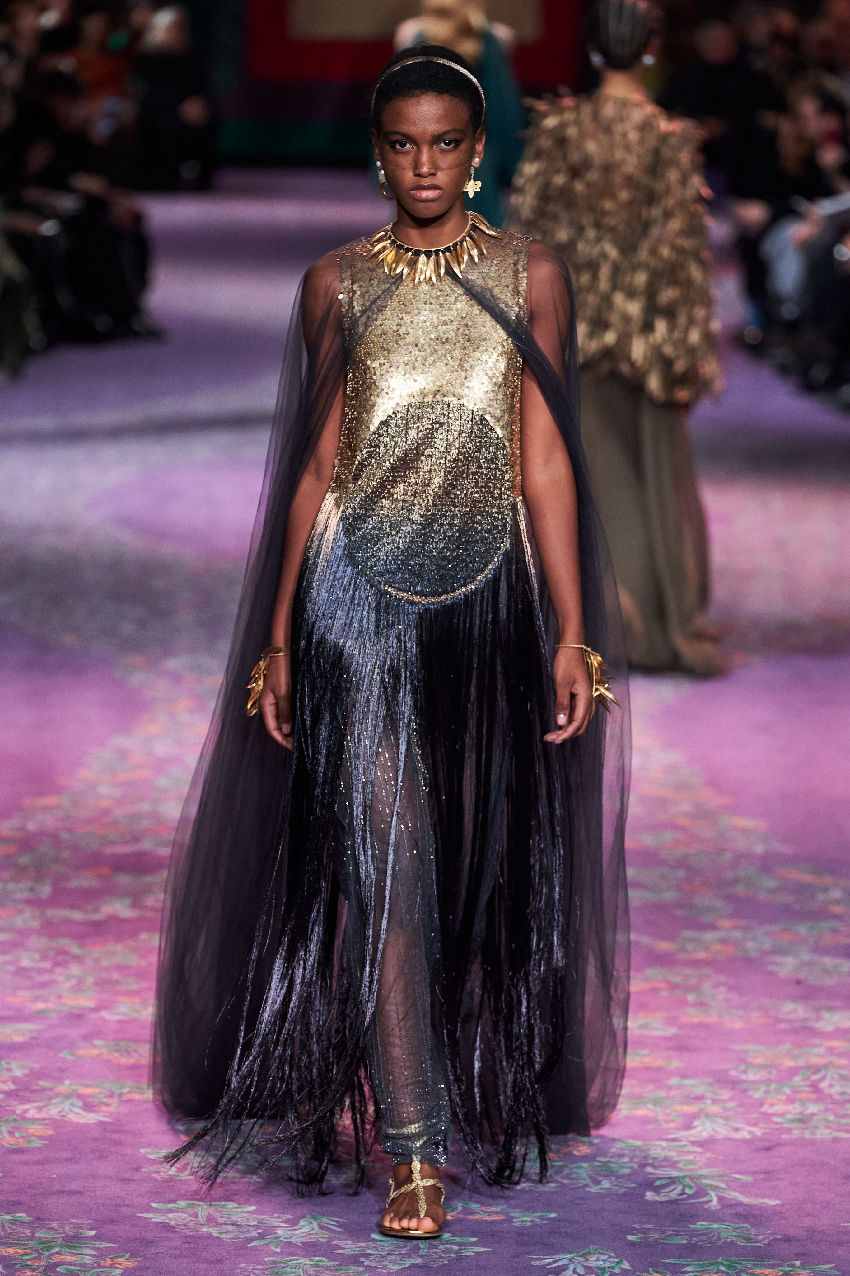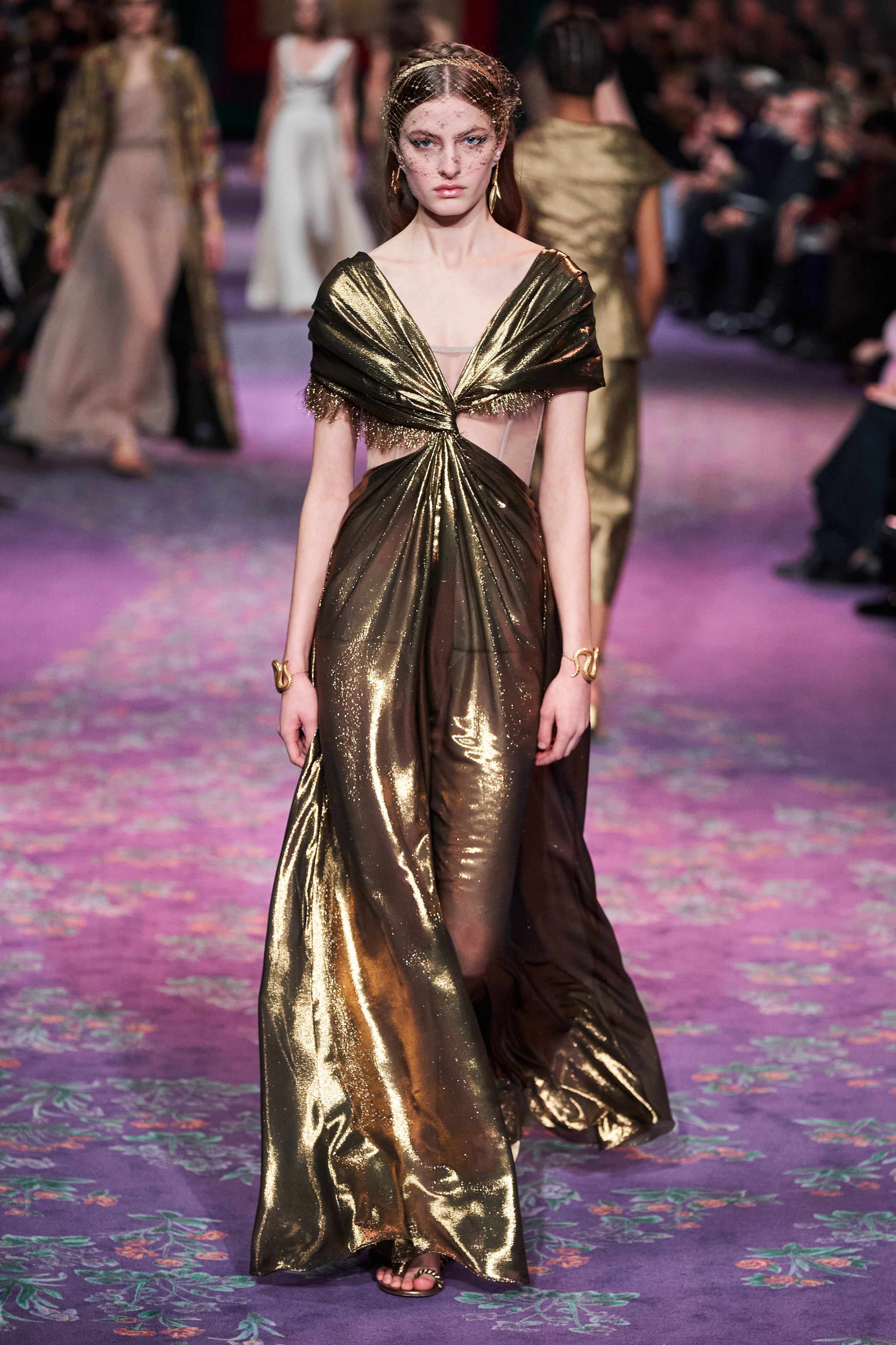 Основным цветовым лейтмотивом коллекции стало золото. Мария Грация Кьюри дополнила летящие платья из бахромы и невесомых тканей увесистыми браслетами, колье, фигурными золотыми поясами и открытыми босоножками на плоском ходу. Платья в пол, которые легли в основу коллекции, дизайнер разбавила брючными вечерними костюмами, приталенными жилетами и пальто-халатами.