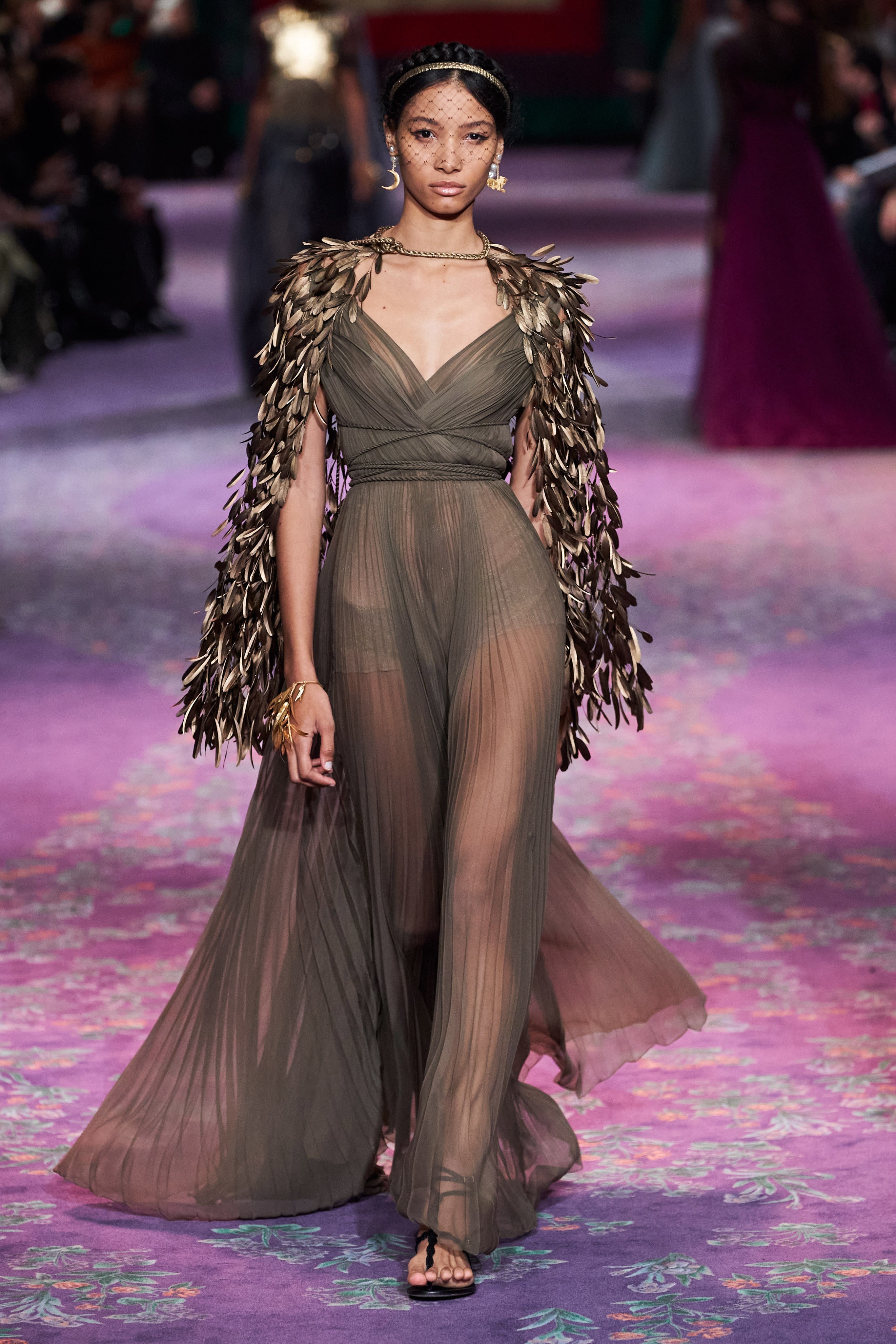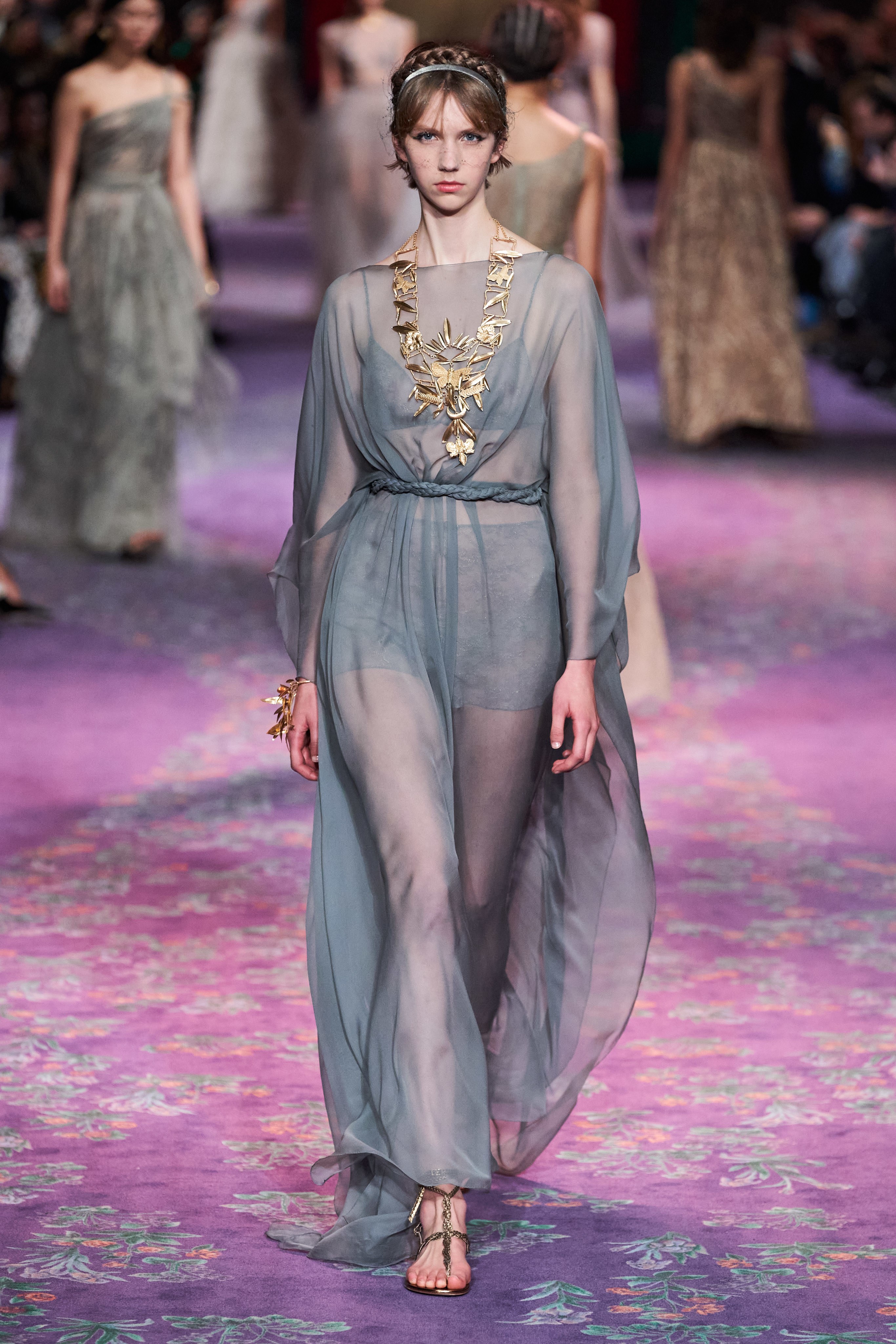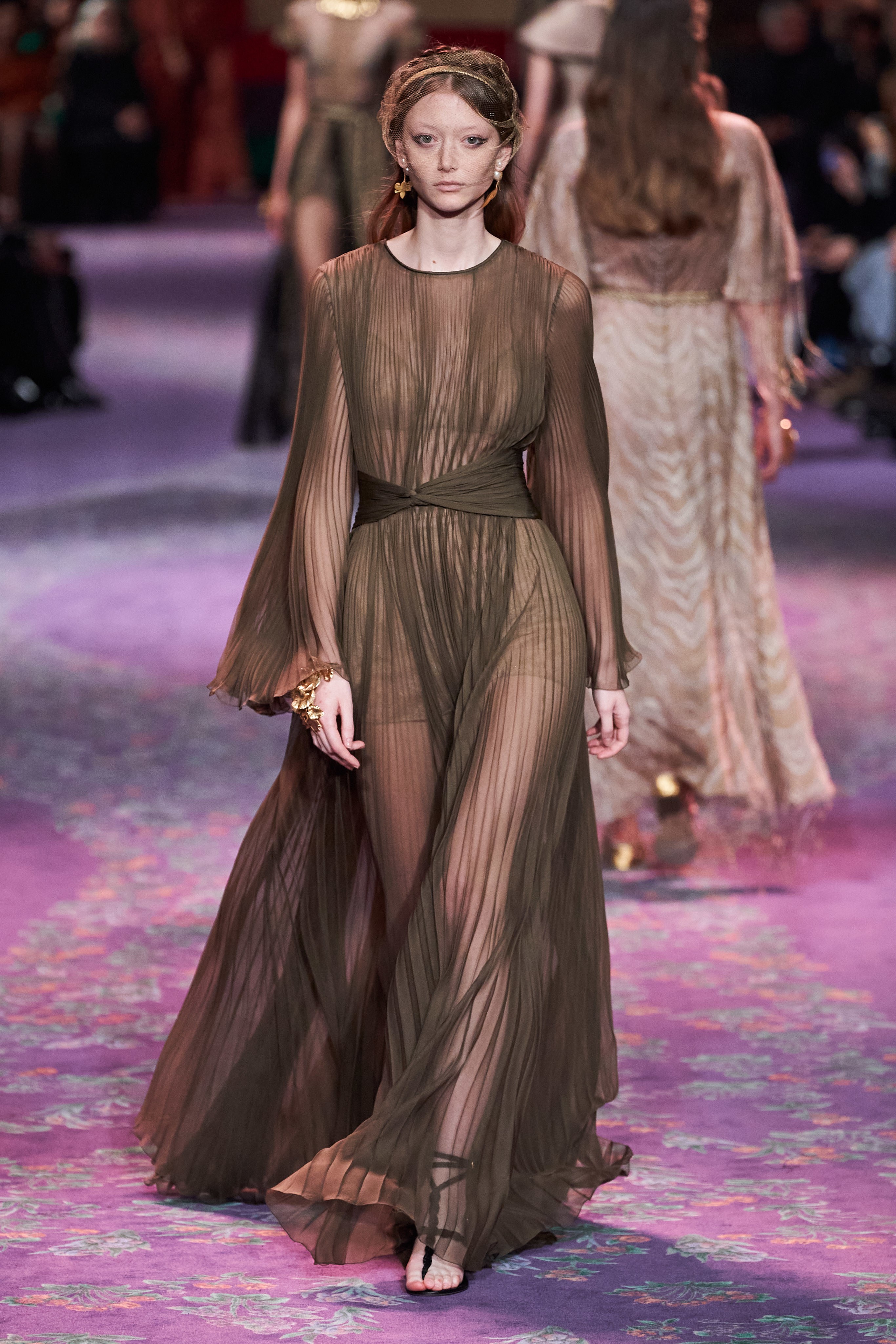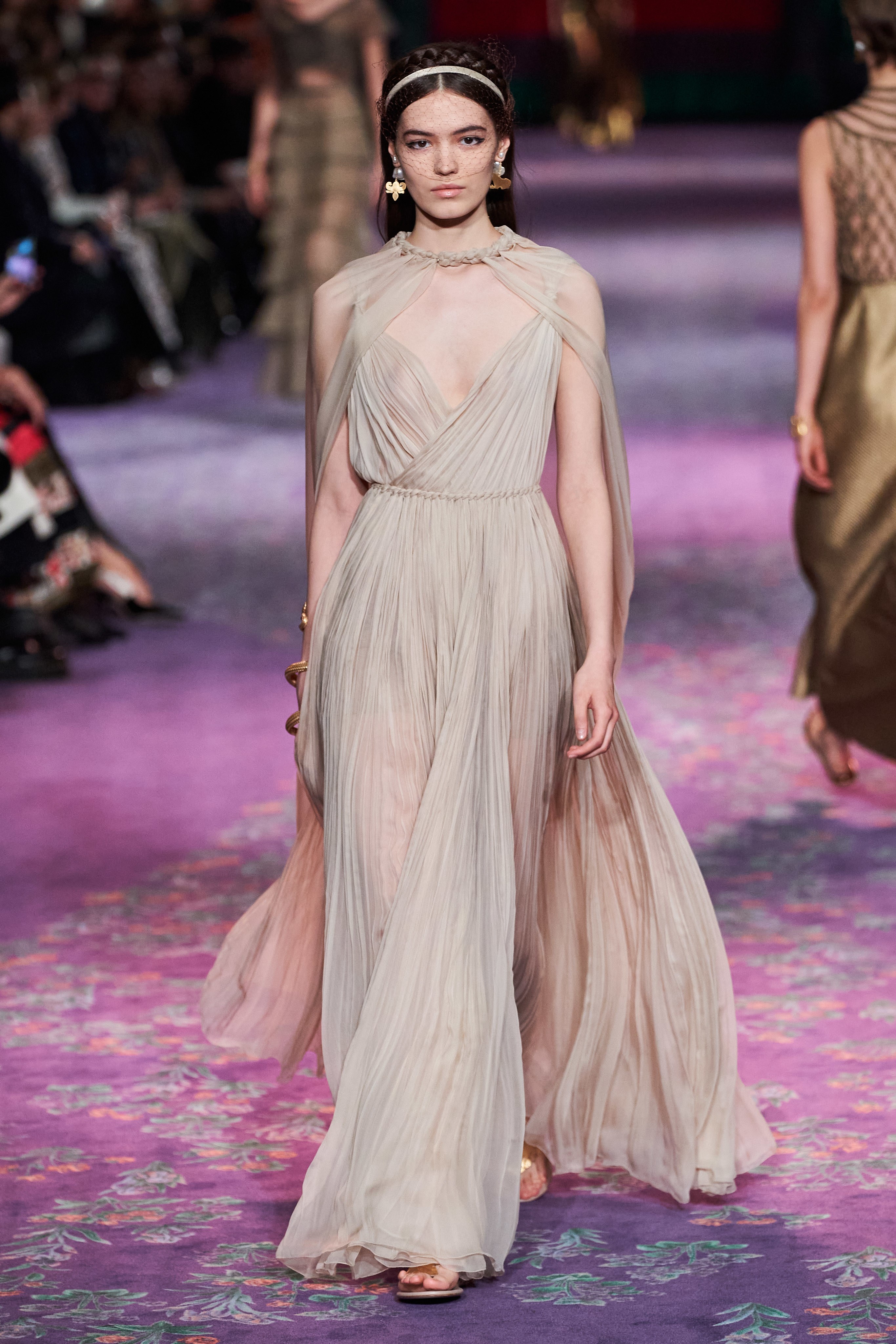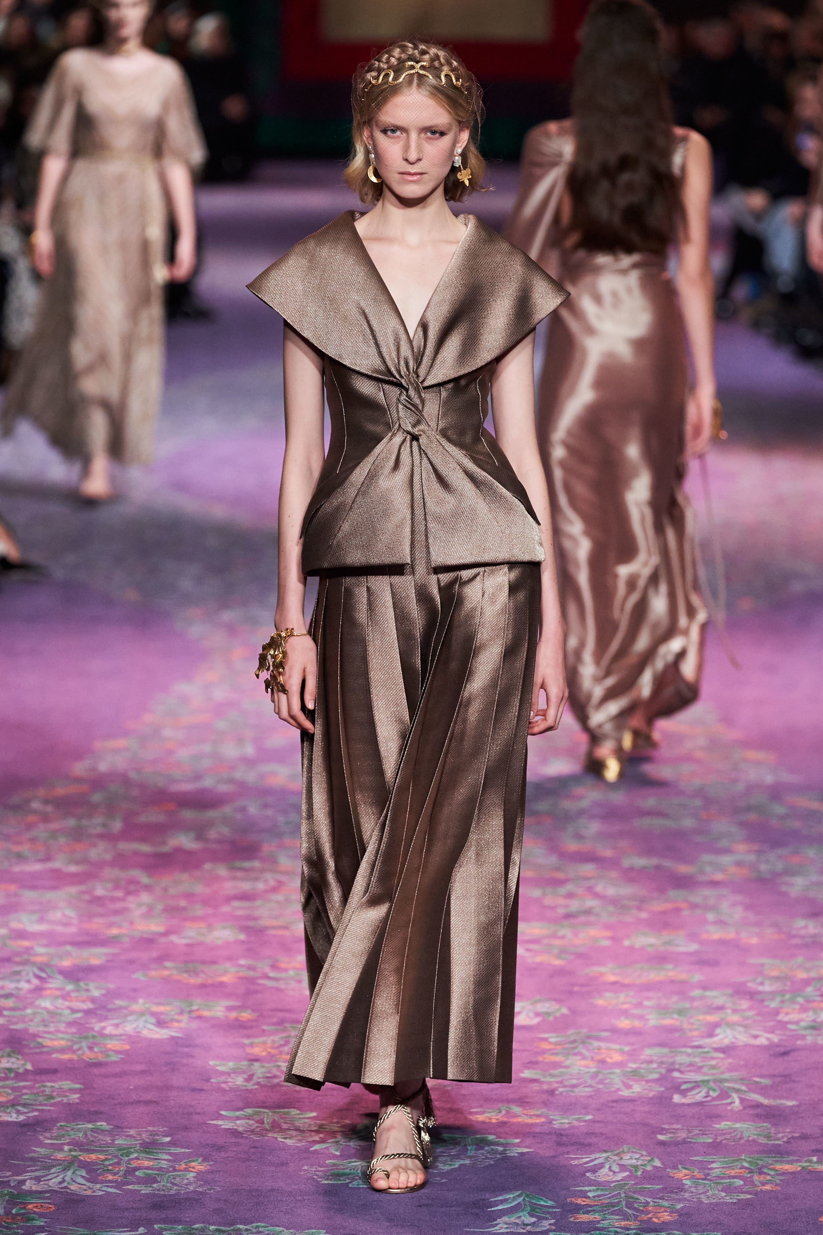 Основным цветовым лейтмотивом коллекции стало золото. Мария Грация Кьюри дополнила летящие платья из бахромы и невесомых тканей увесистыми браслетами, колье, фигурными золотыми поясами и открытыми босоножками на плоском ходу. Платья в пол, которые легли в основу коллекции, дизайнер разбавила брючными вечерними костюмами, приталенными жилетами и пальто-халатами.