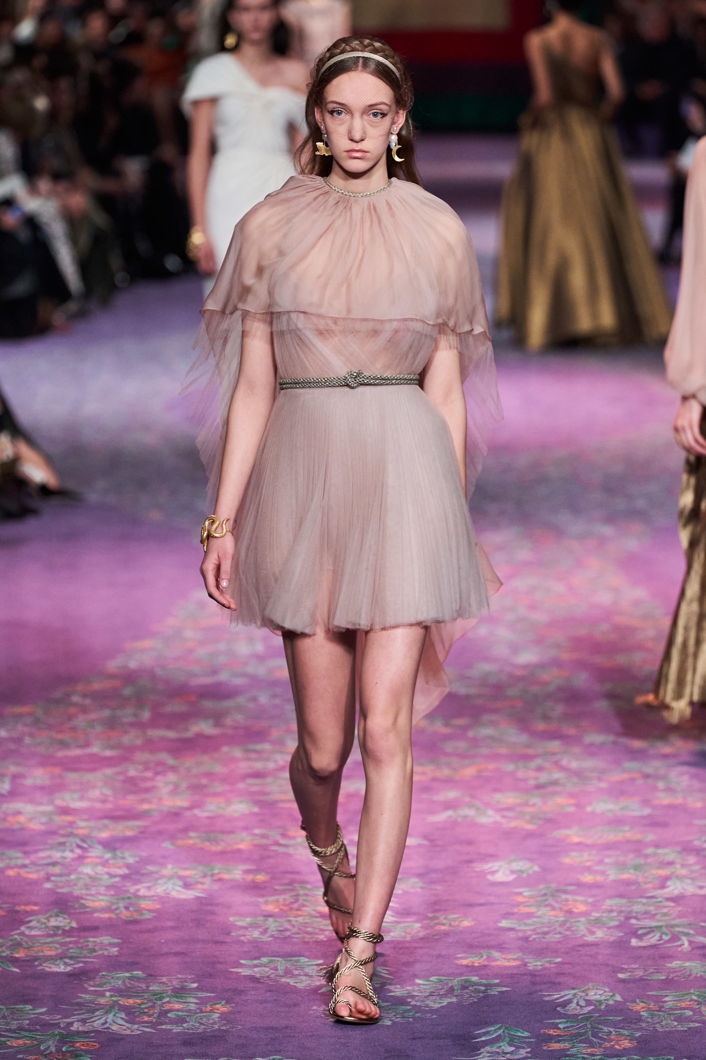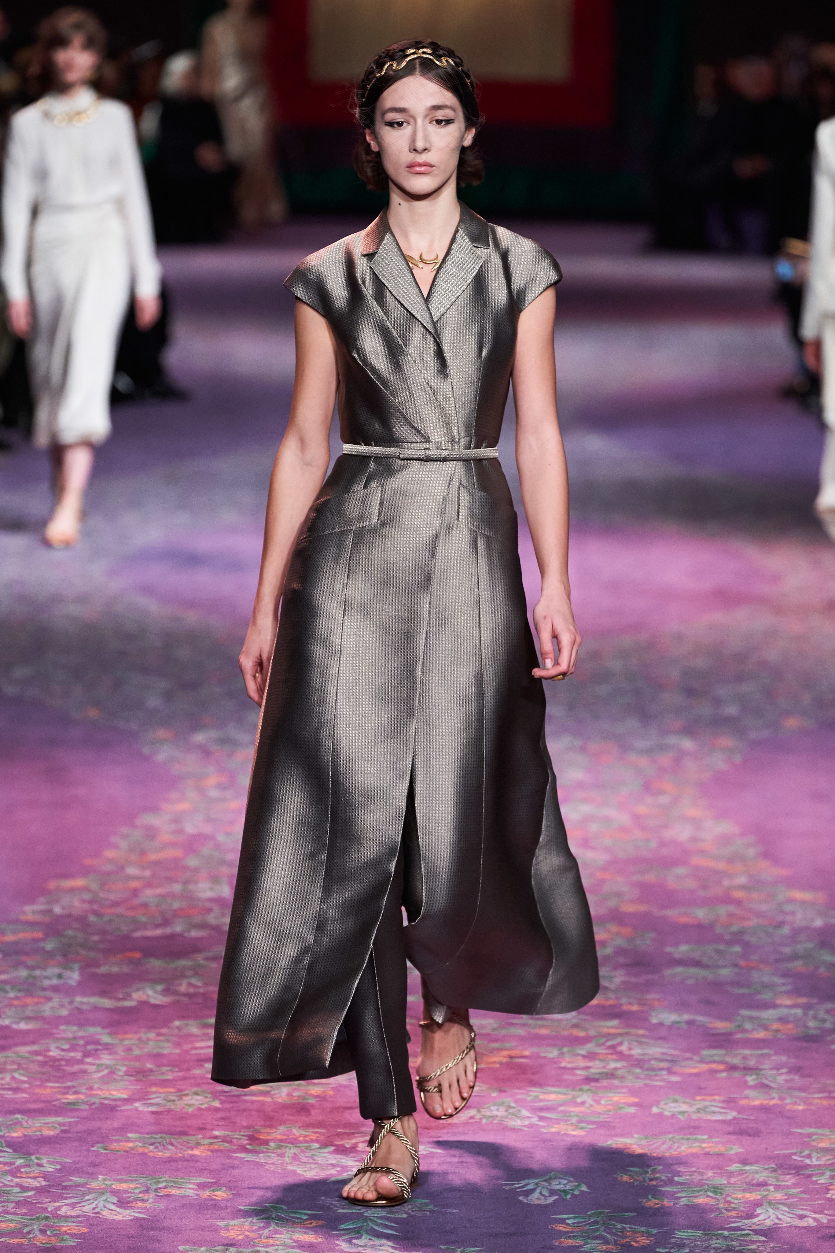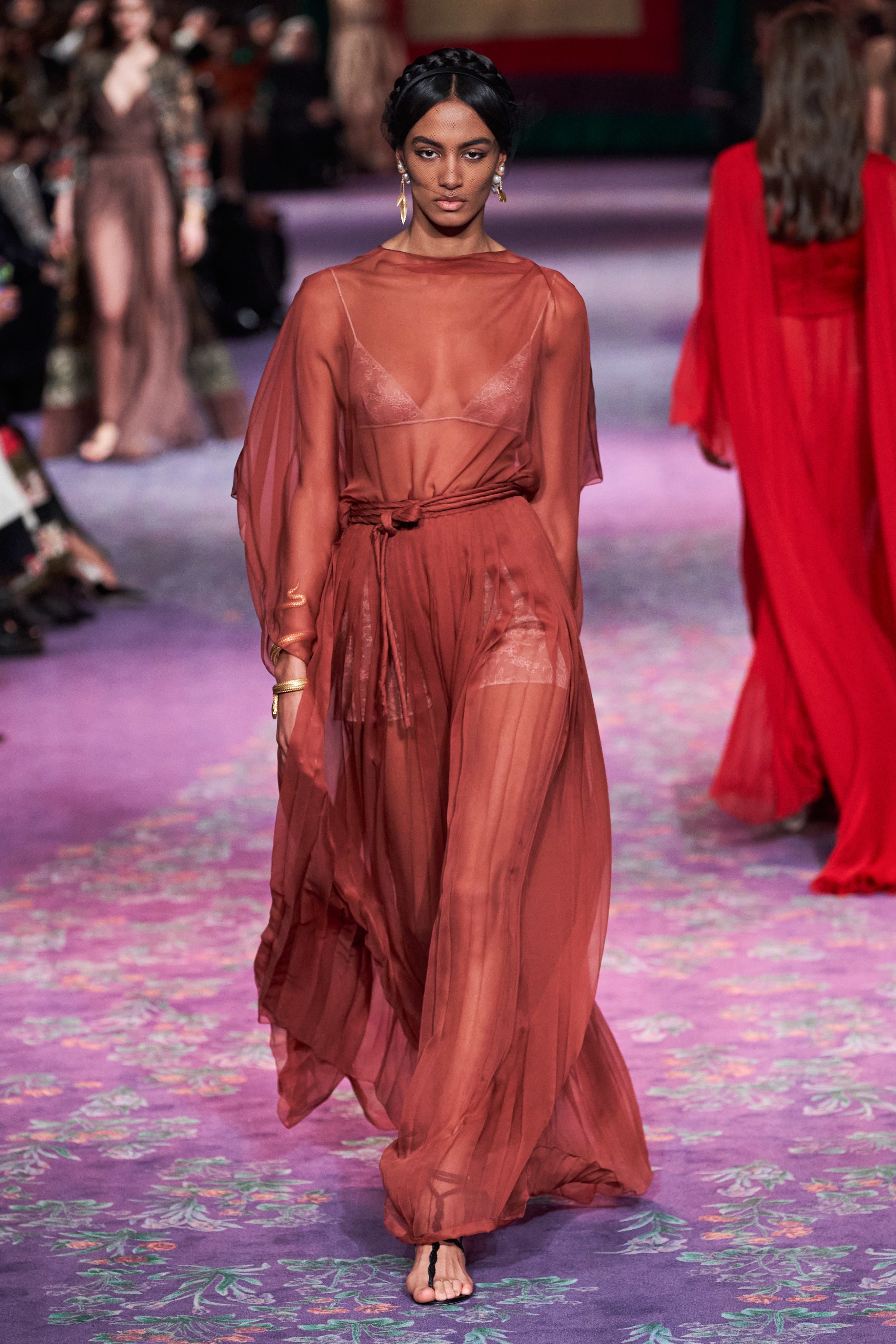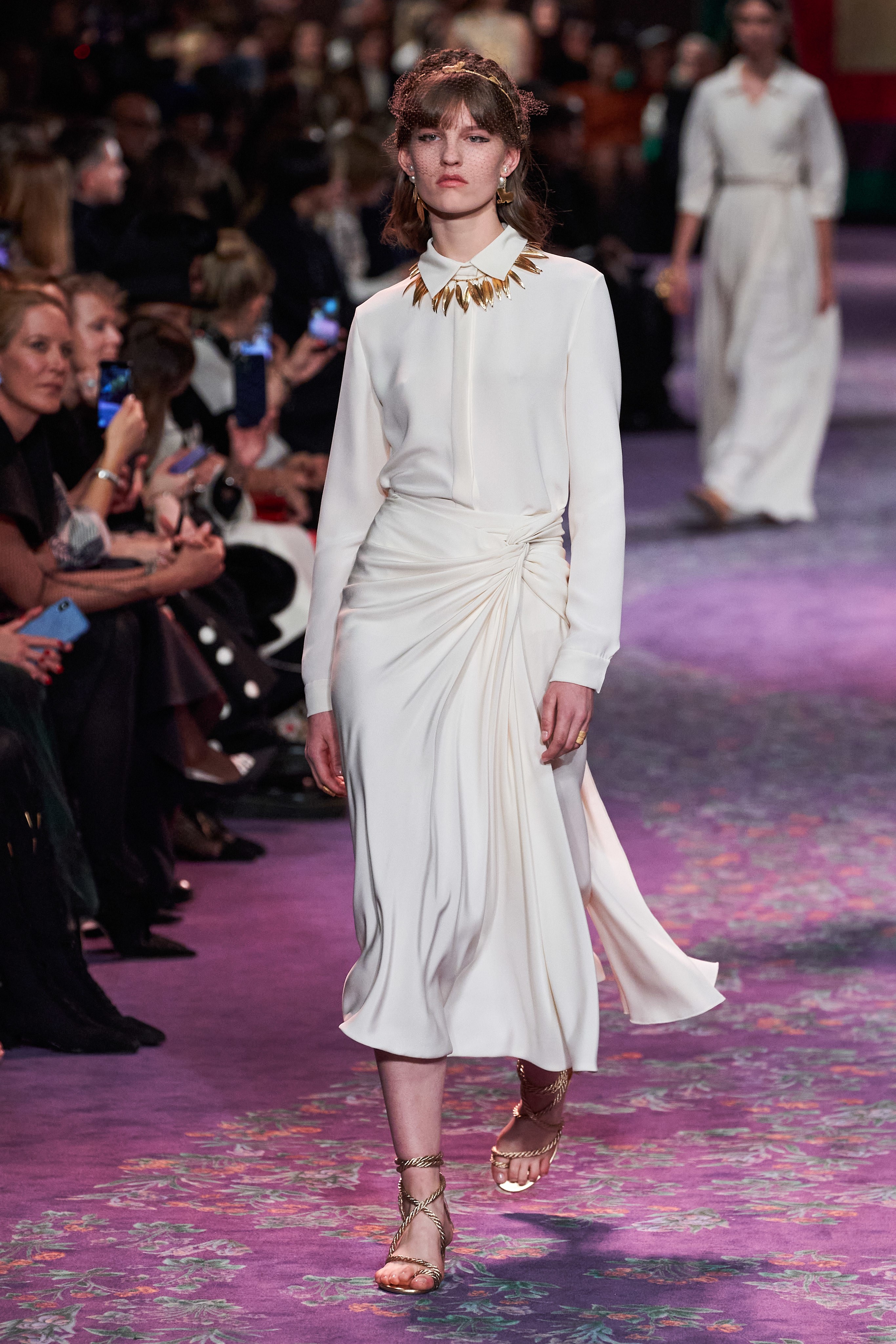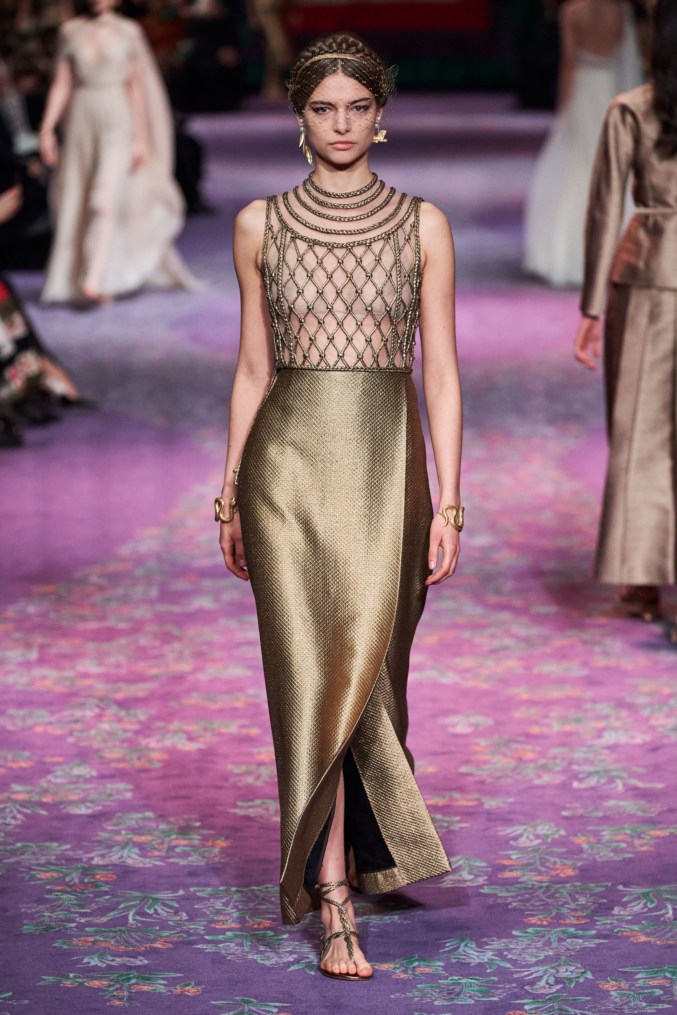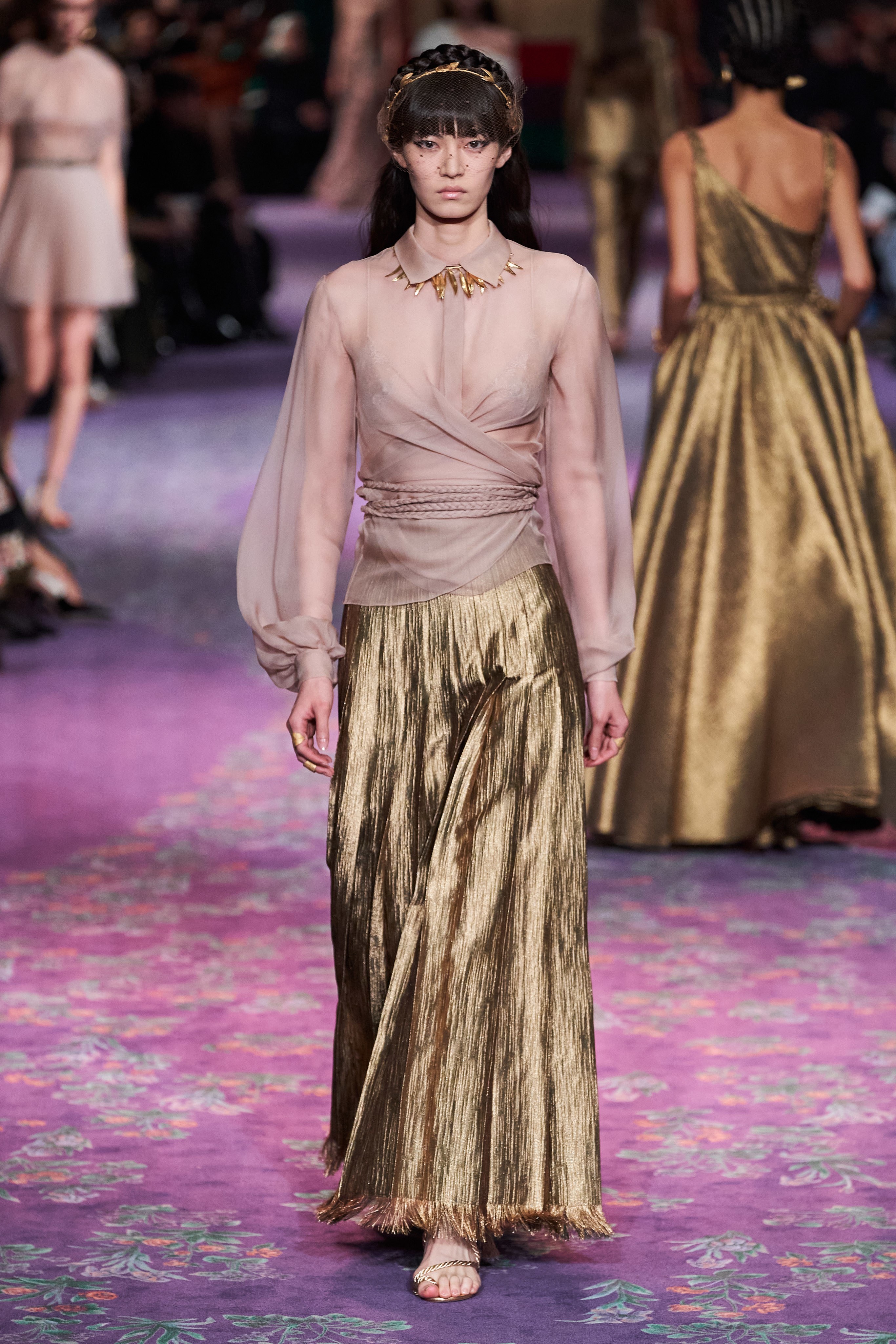 Основным цветовым лейтмотивом коллекции стало золото. Мария Грация Кьюри дополнила летящие платья из бахромы и невесомых тканей увесистыми браслетами, колье, фигурными золотыми поясами и открытыми босоножками на плоском ходу. Платья в пол, которые легли в основу коллекции, дизайнер разбавила брючными вечерними костюмами, приталенными жилетами и пальто-халатами.