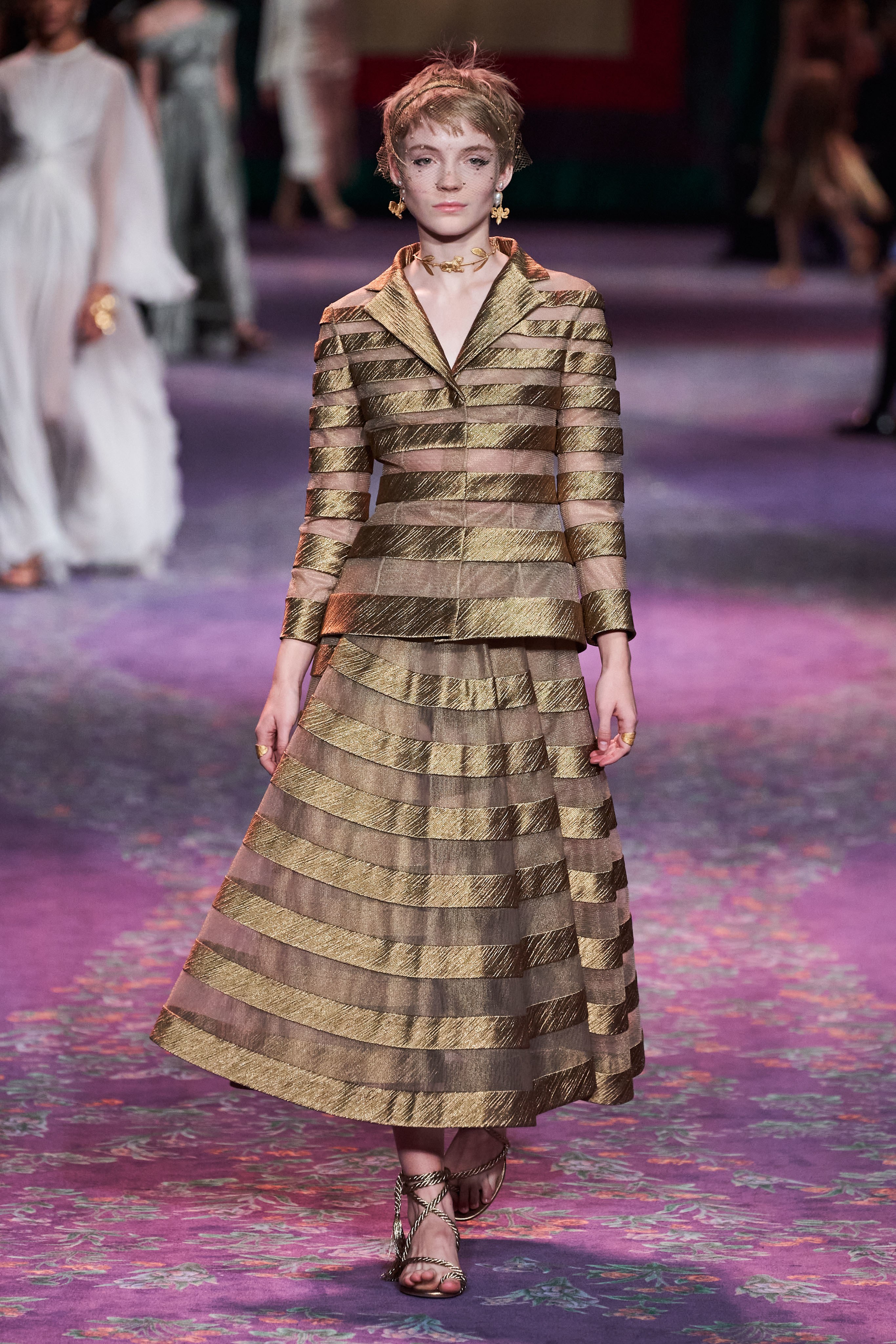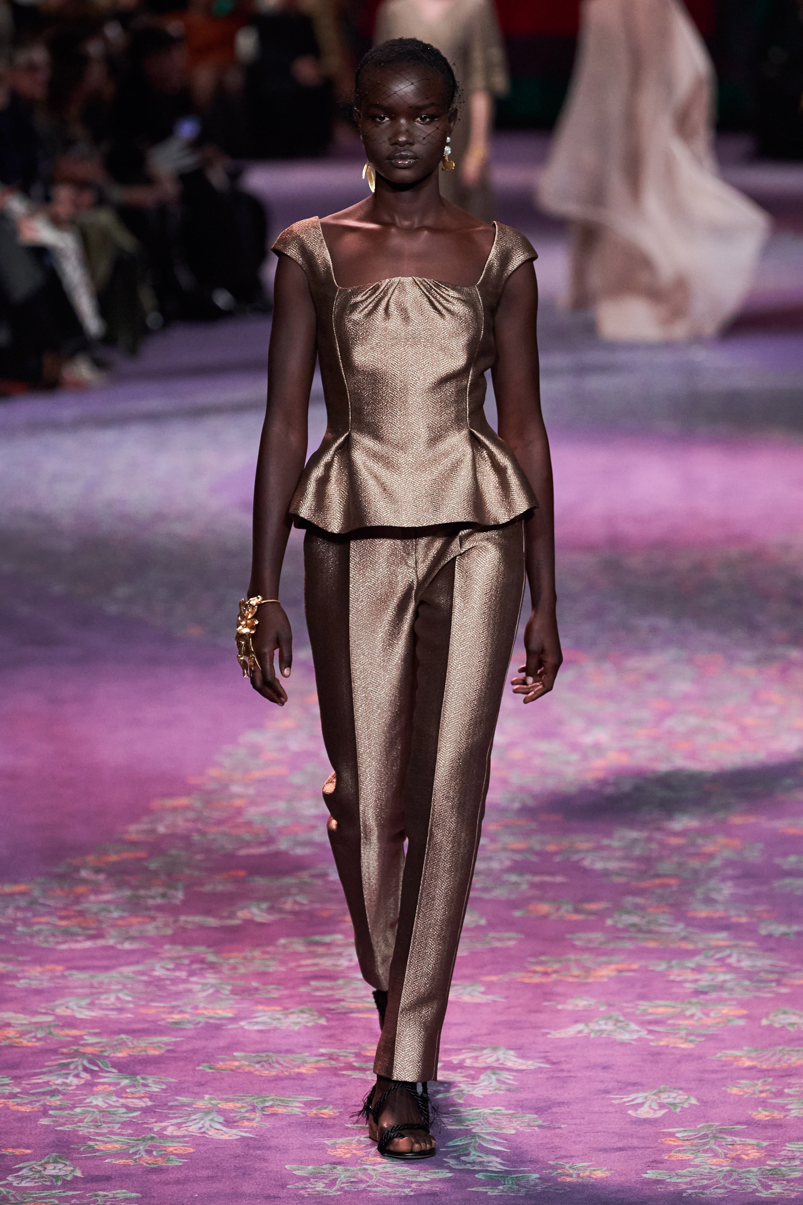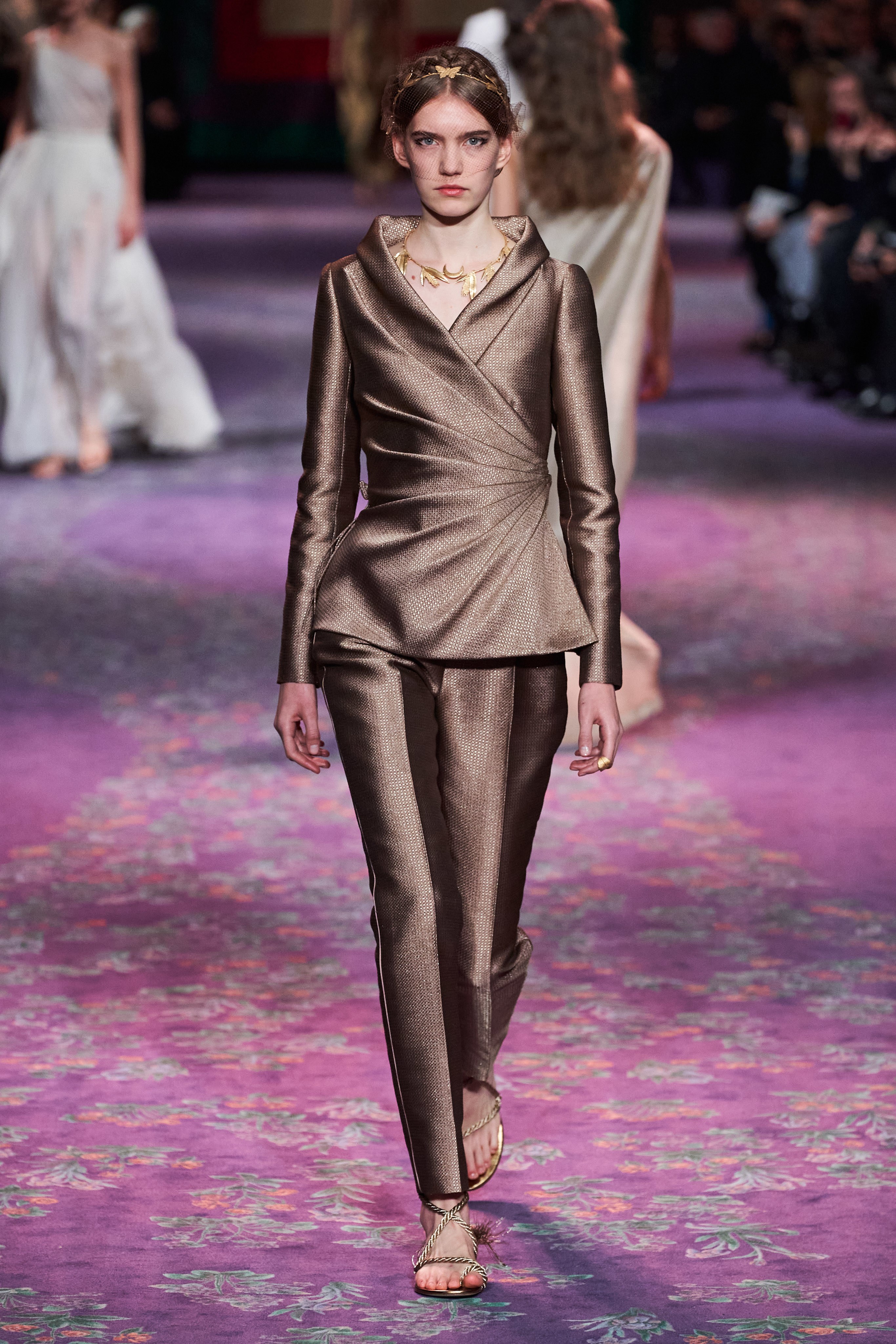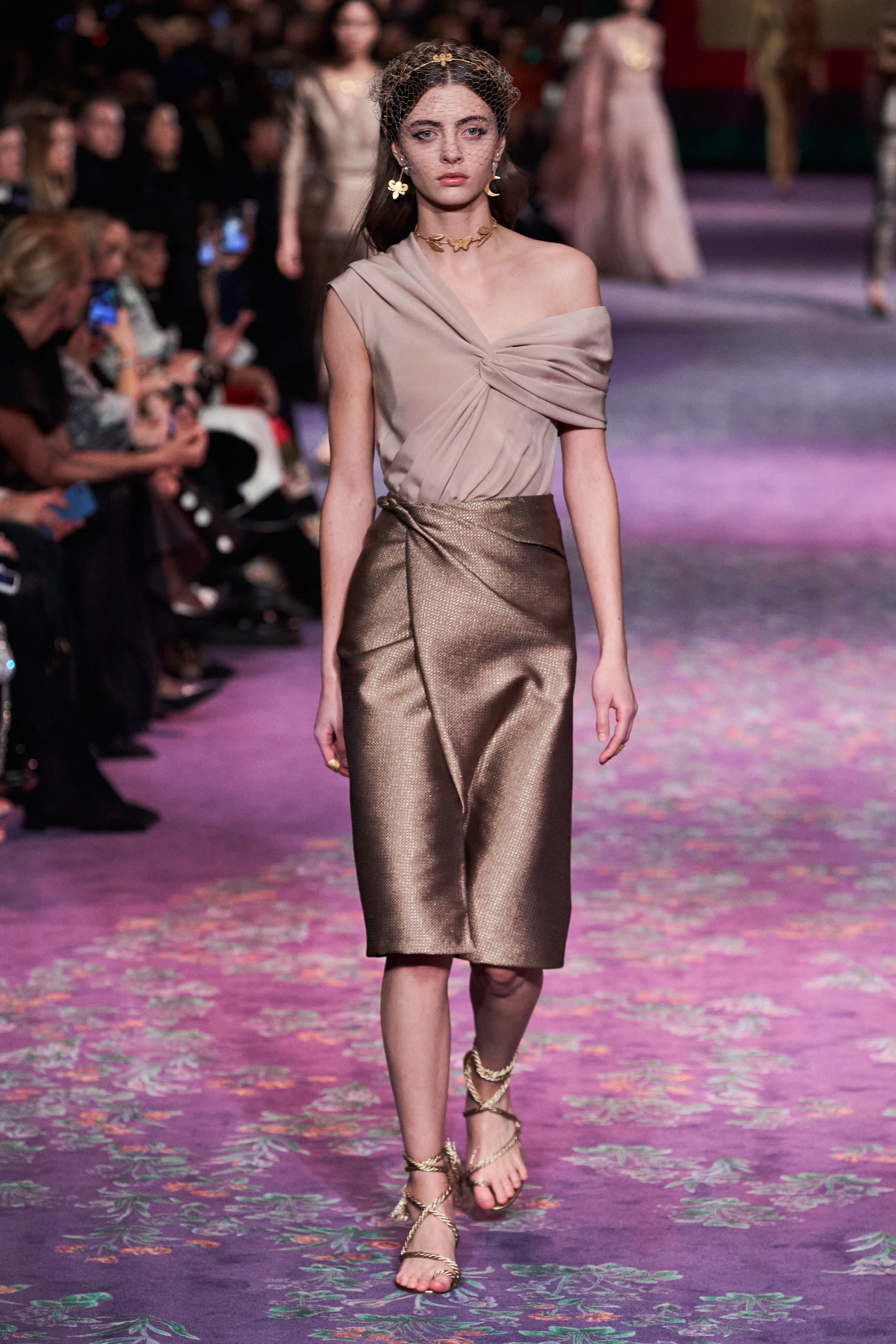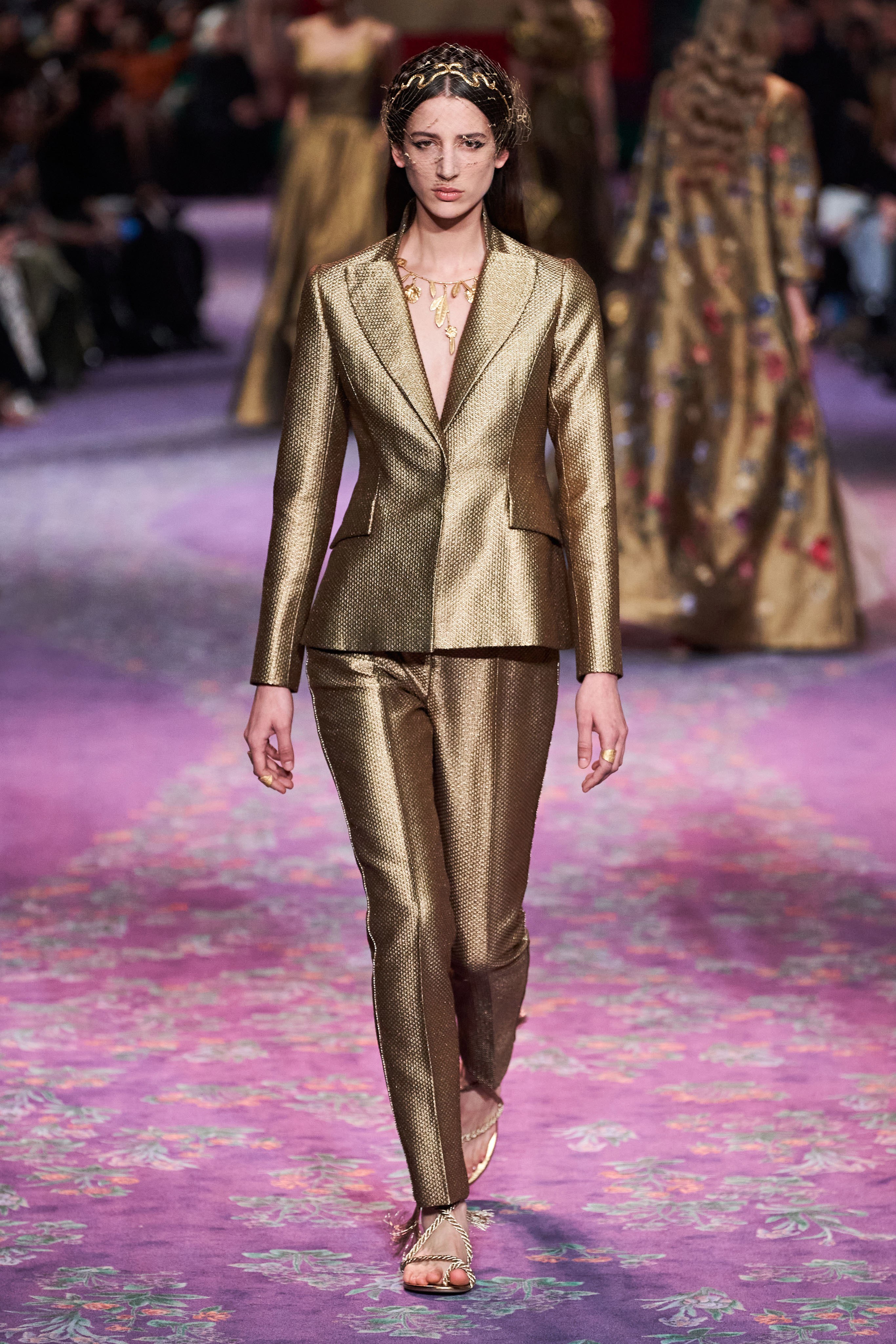 Основным цветовым лейтмотивом коллекции стало золото. Мария Грация Кьюри дополнила летящие платья из бахромы и невесомых тканей увесистыми браслетами, колье, фигурными золотыми поясами и открытыми босоножками на плоском ходу. Платья в пол, которые легли в основу коллекции, дизайнер разбавила брючными вечерними костюмами, приталенными жилетами и пальто-халатами.