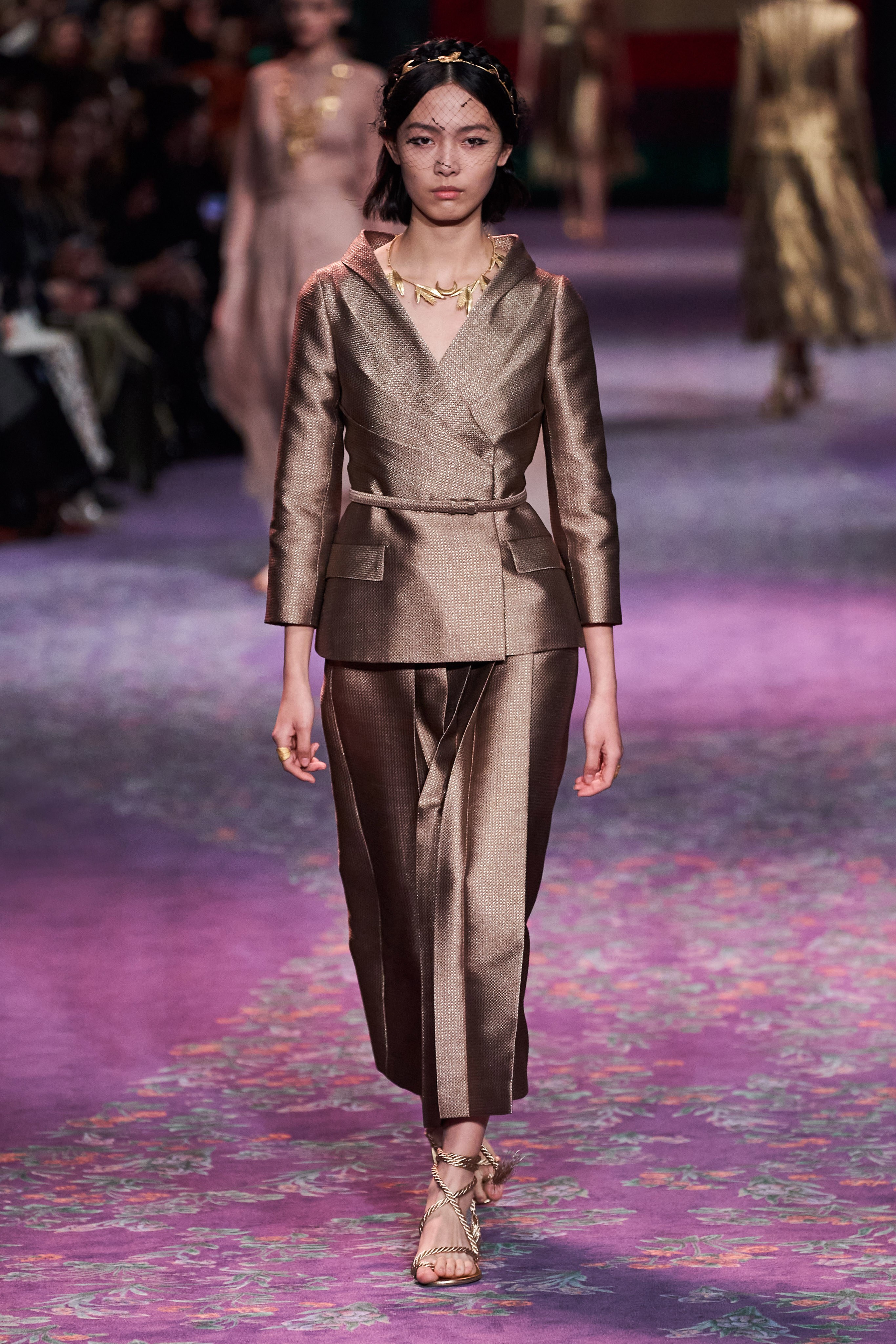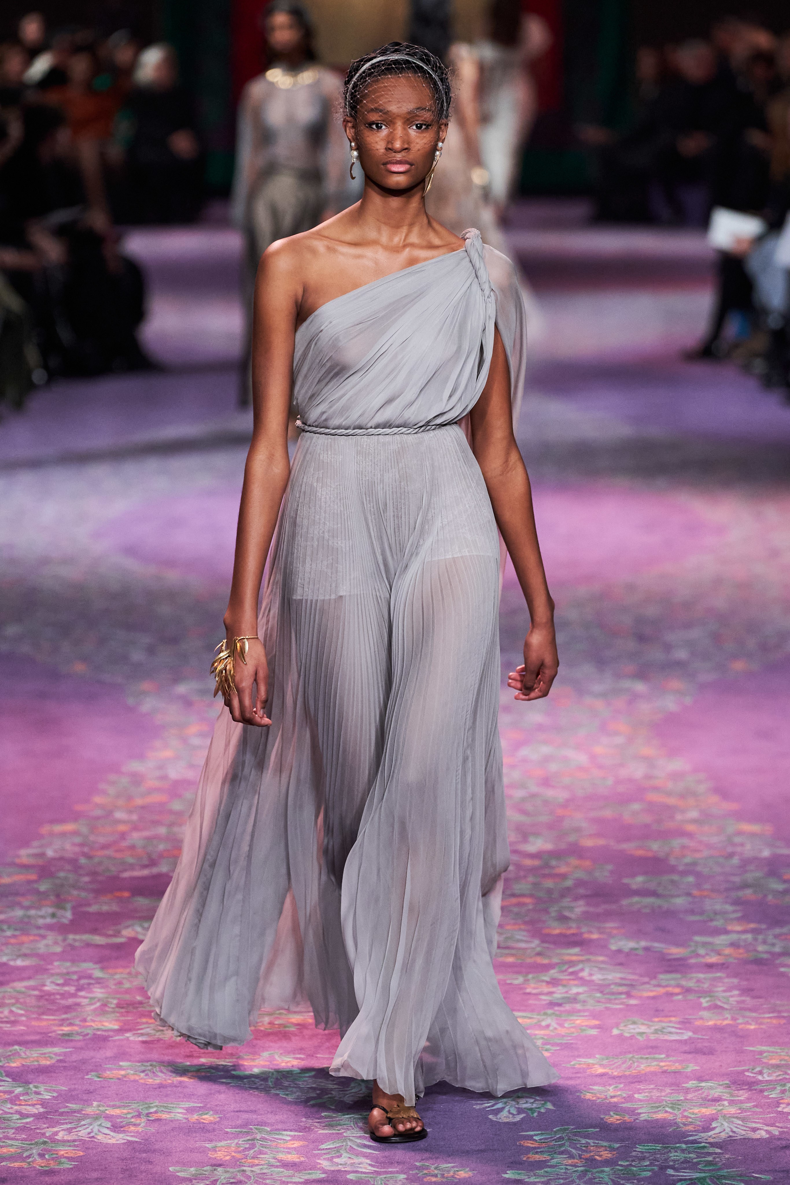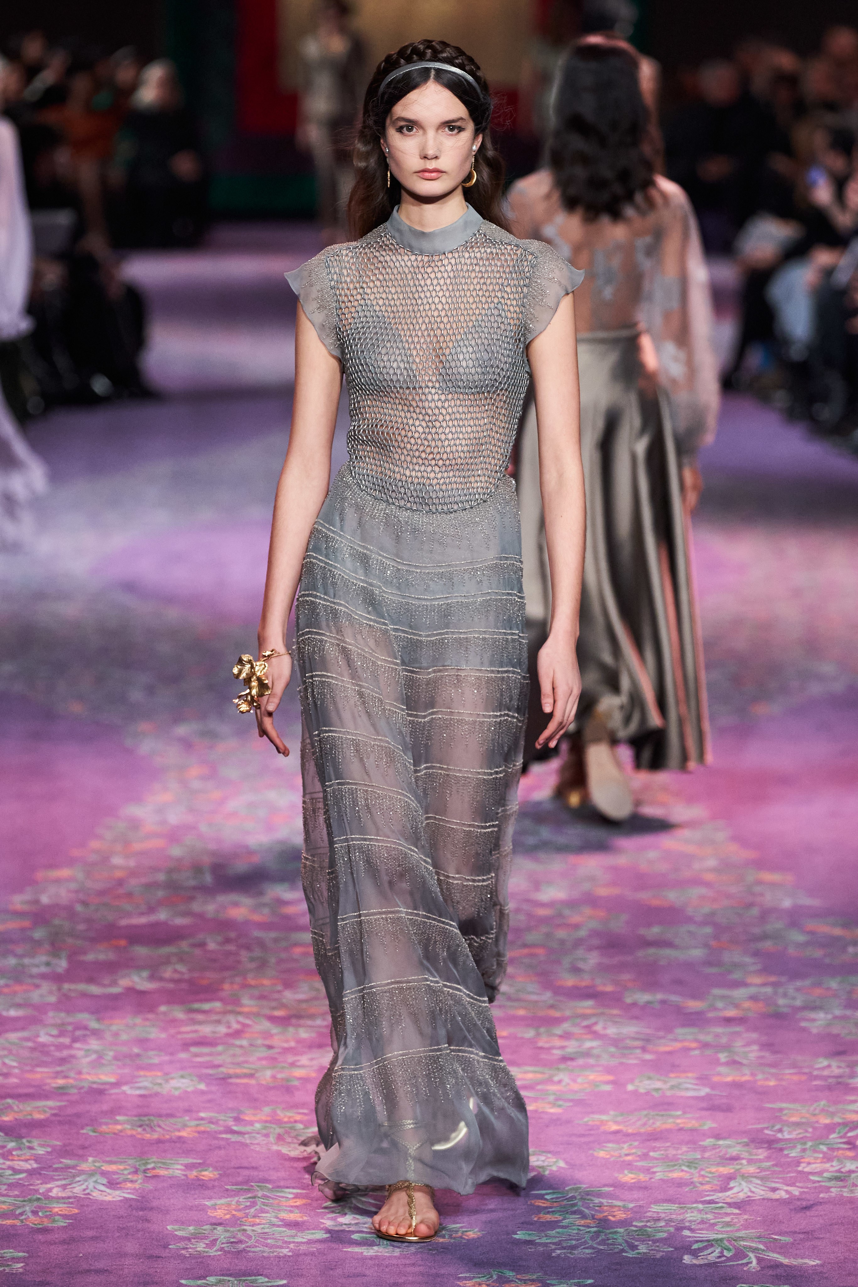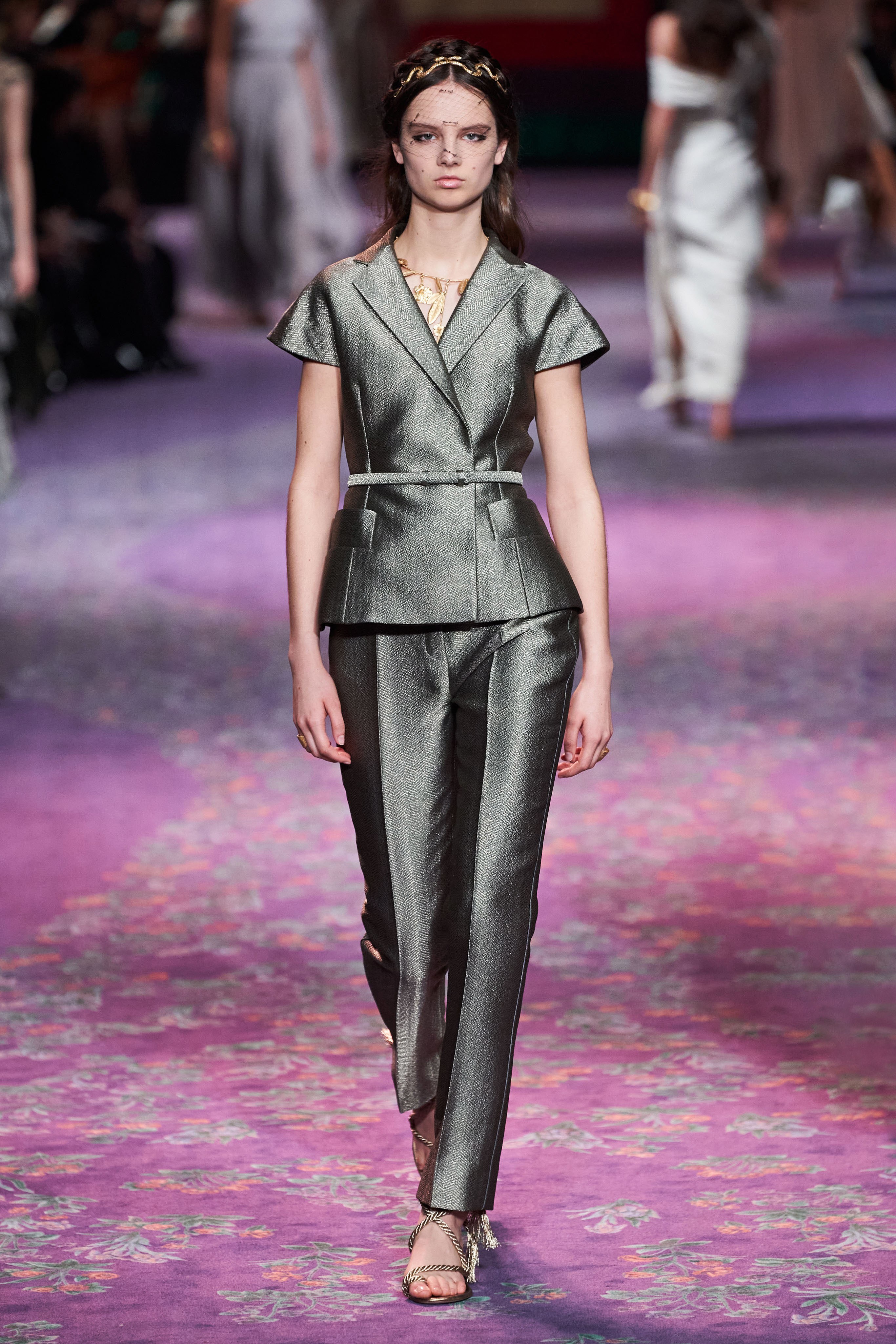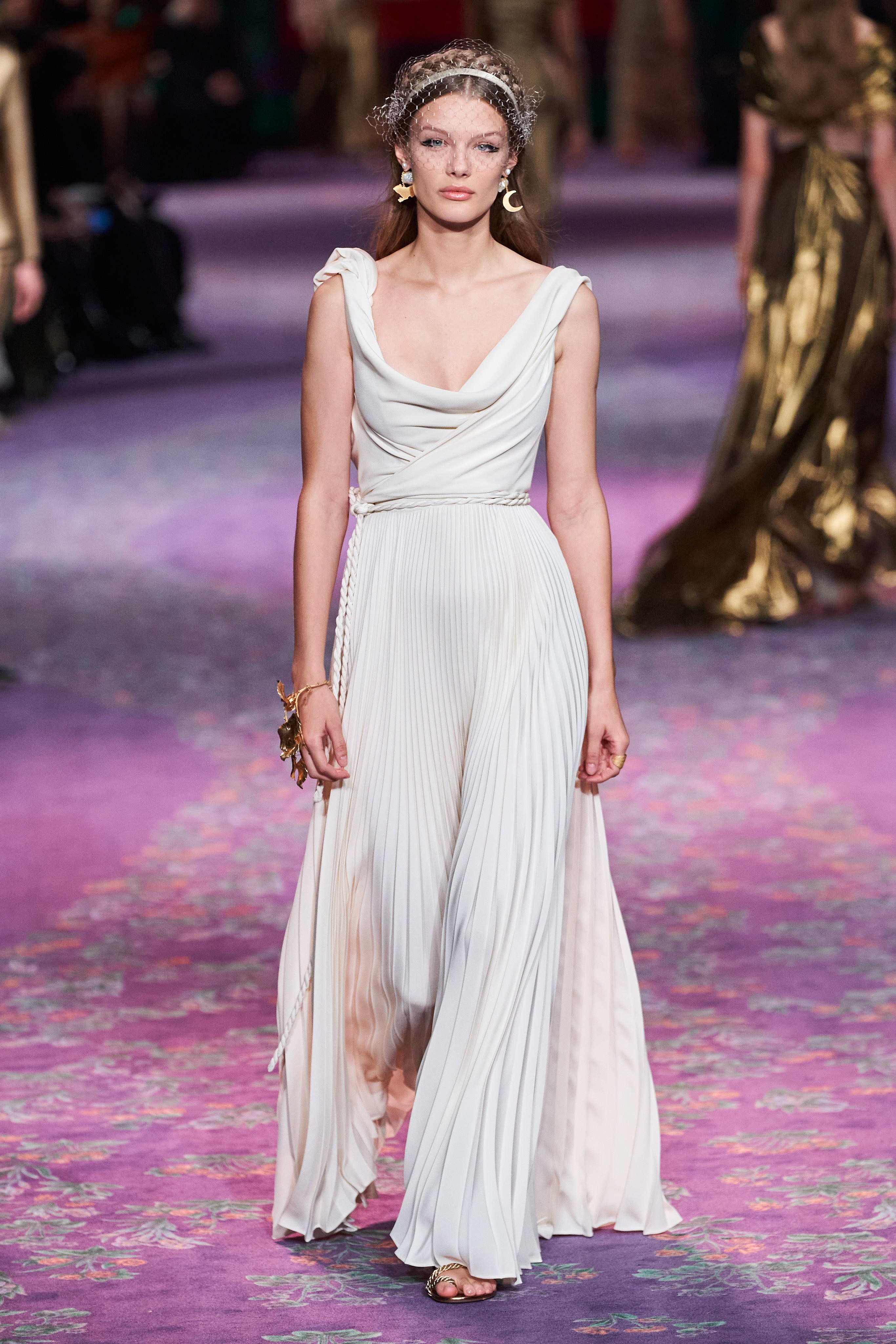 Основным цветовым лейтмотивом коллекции стало золото. Мария Грация Кьюри дополнила летящие платья из бахромы и невесомых тканей увесистыми браслетами, колье, фигурными золотыми поясами и открытыми босоножками на плоском ходу. Платья в пол, которые легли в основу коллекции, дизайнер разбавила брючными вечерними костюмами, приталенными жилетами и пальто-халатами.