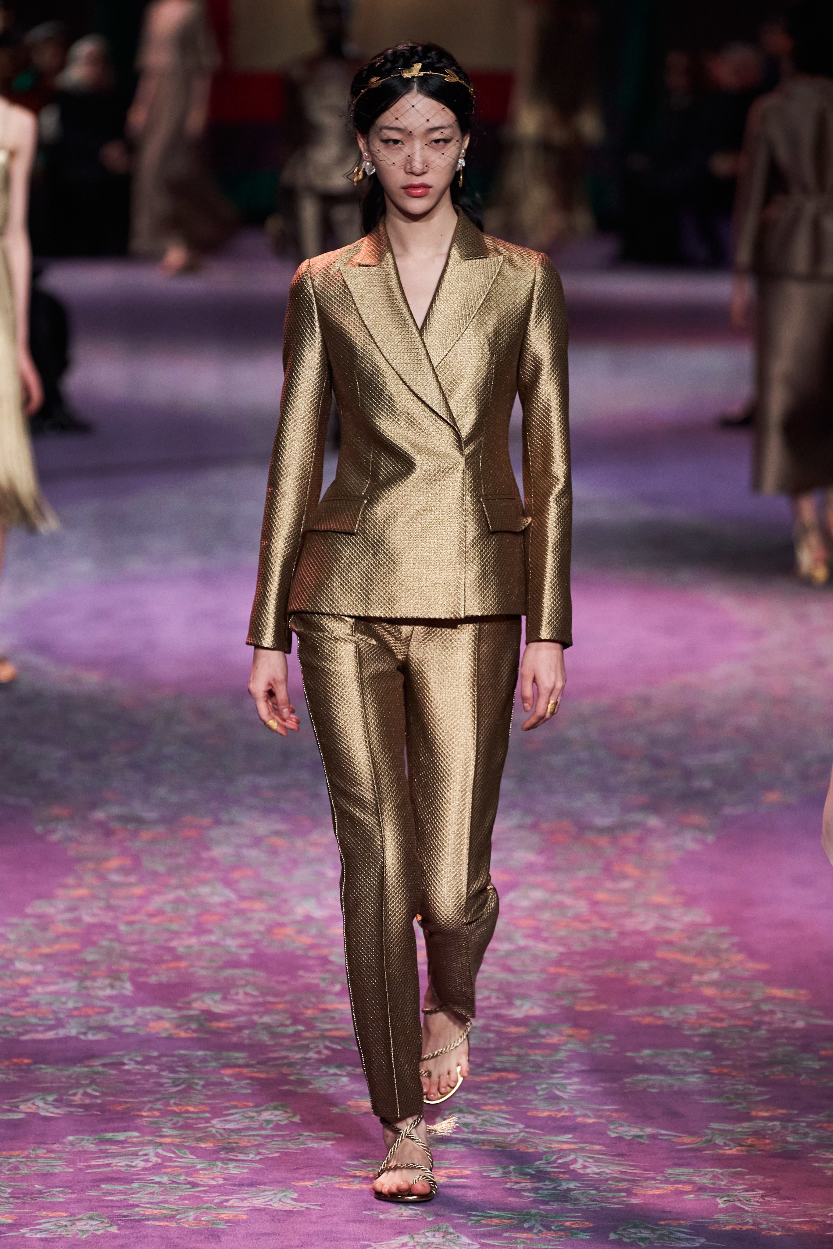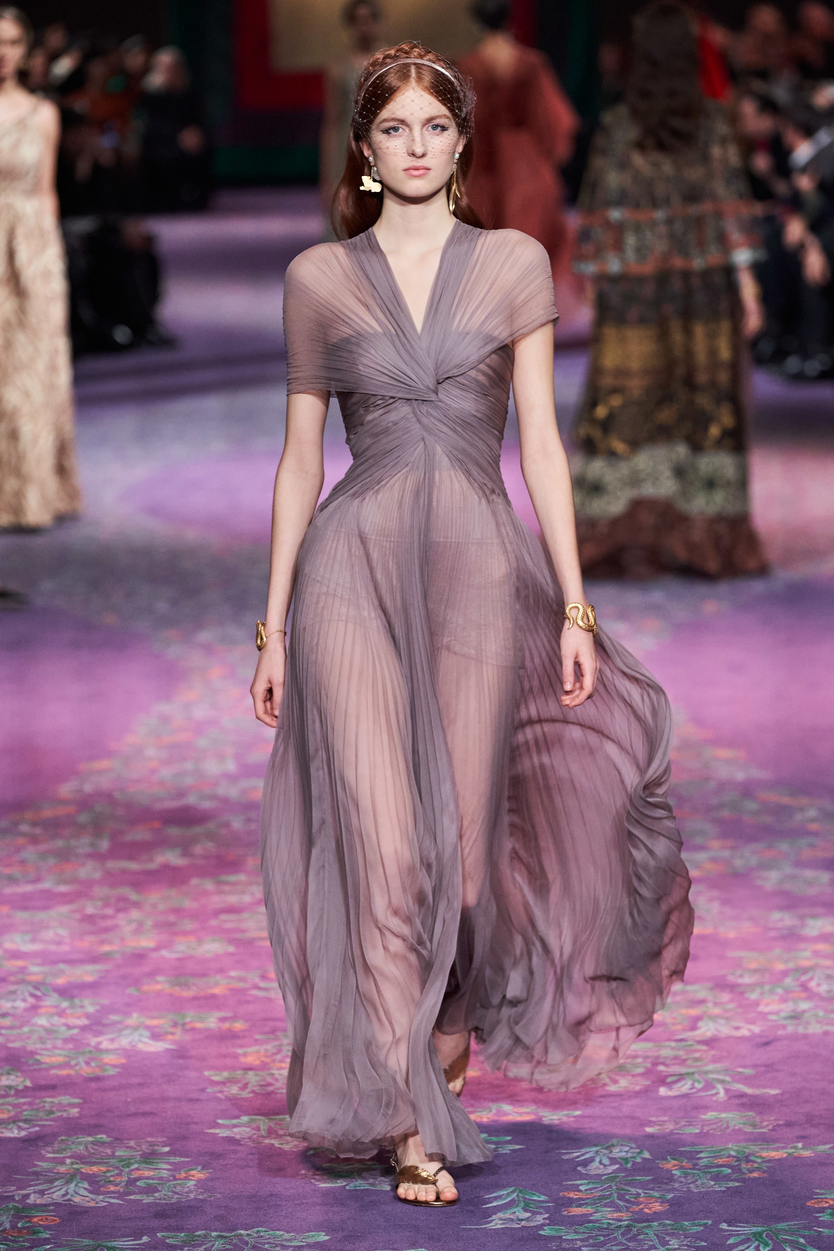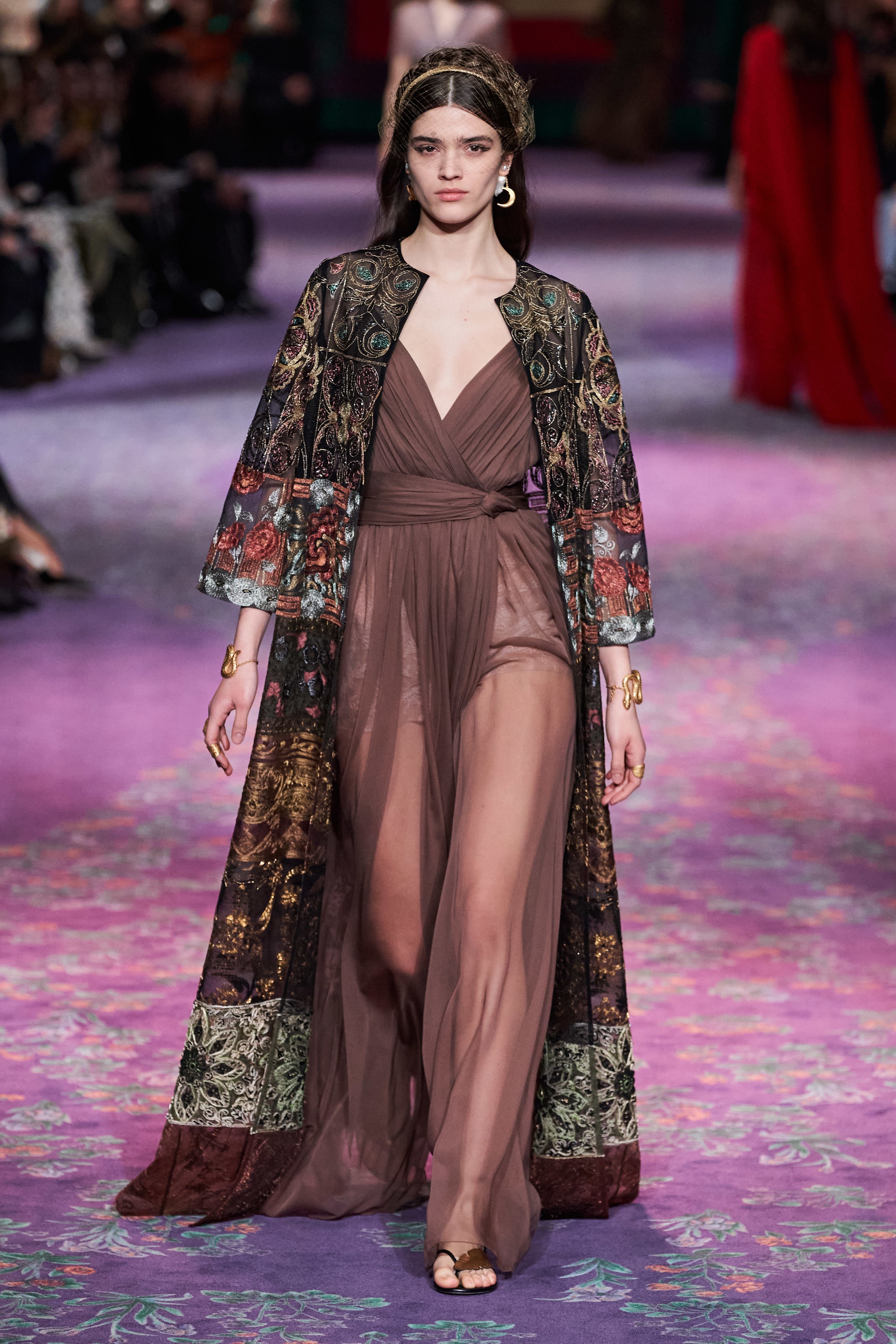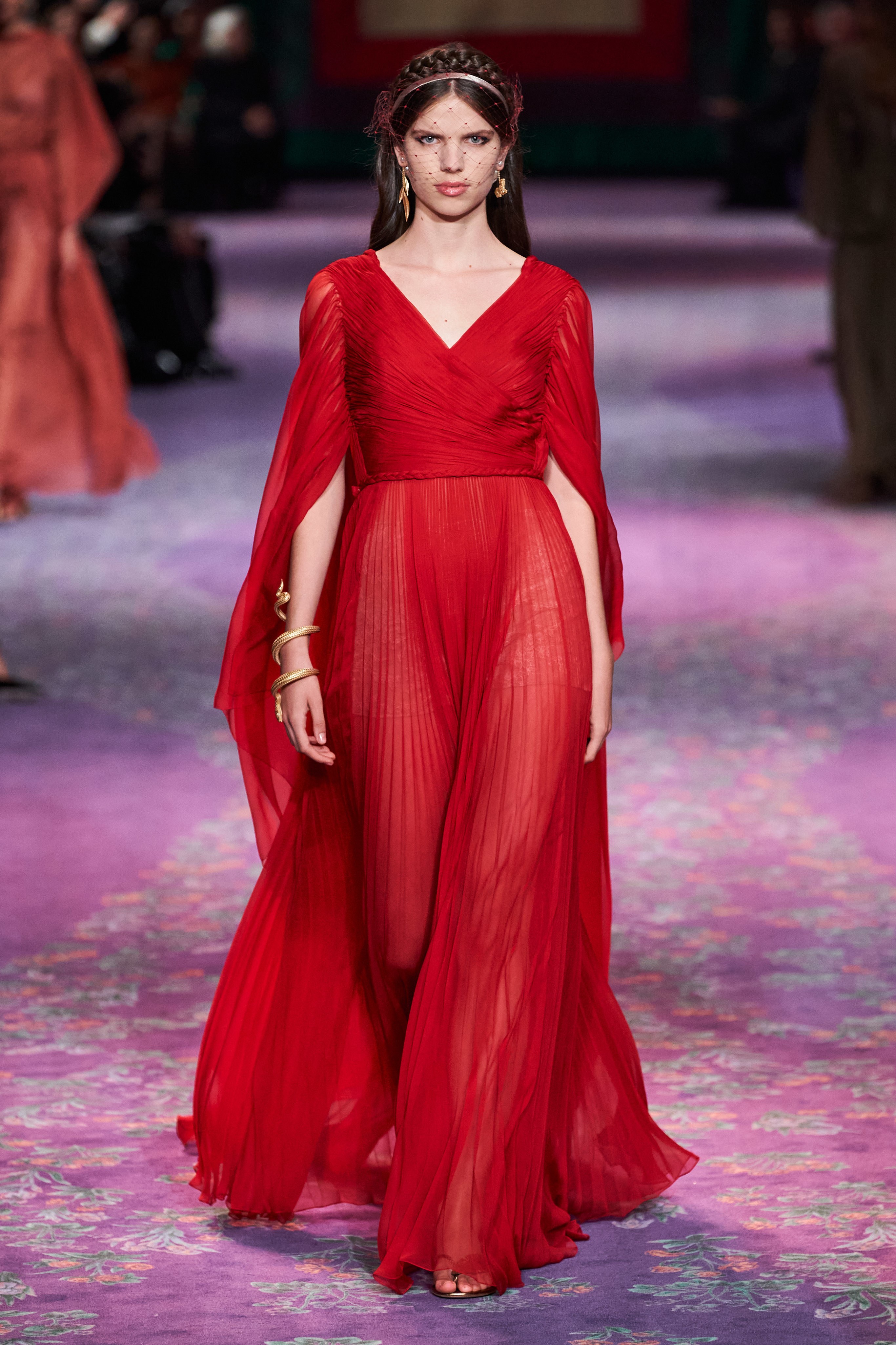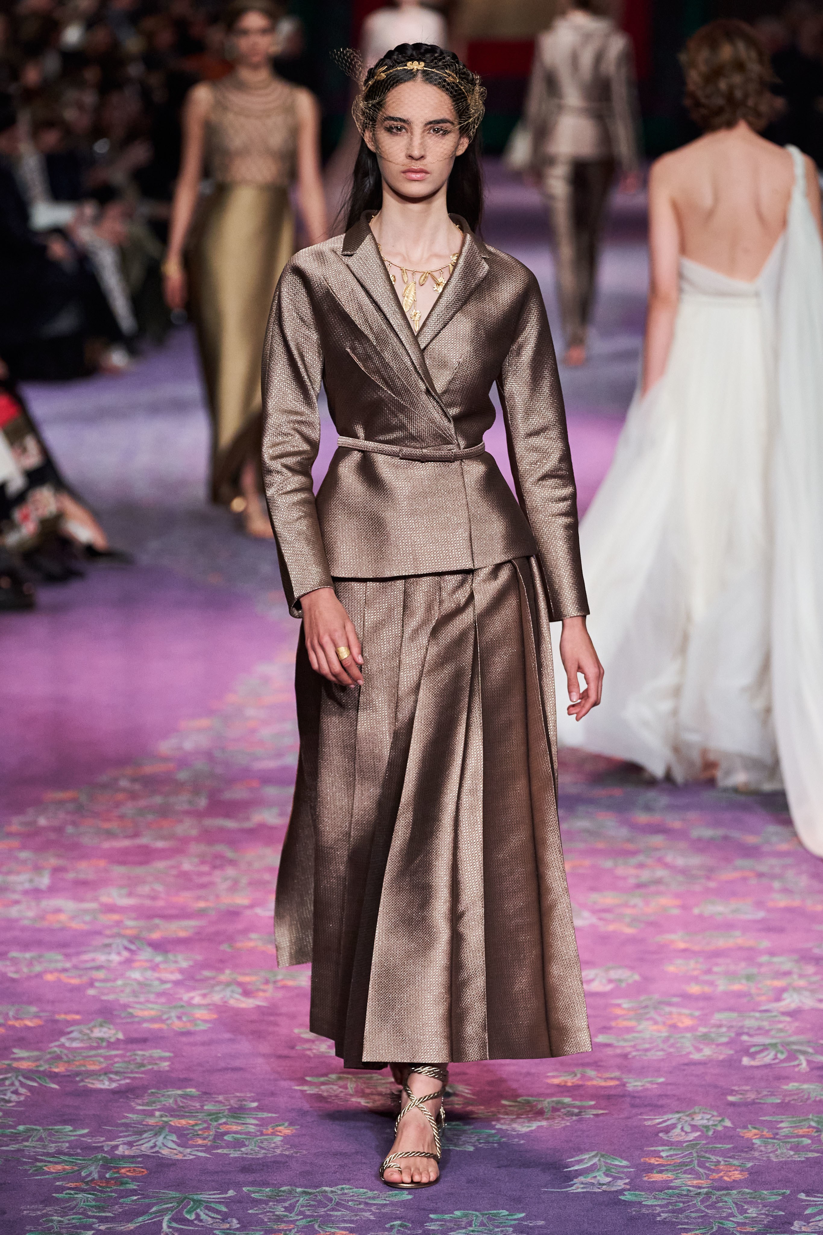 Основным цветовым лейтмотивом коллекции стало золото. Мария Грация Кьюри дополнила летящие платья из бахромы и невесомых тканей увесистыми браслетами, колье, фигурными золотыми поясами и открытыми босоножками на плоском ходу. Платья в пол, которые легли в основу коллекции, дизайнер разбавила брючными вечерними костюмами, приталенными жилетами и пальто-халатами.