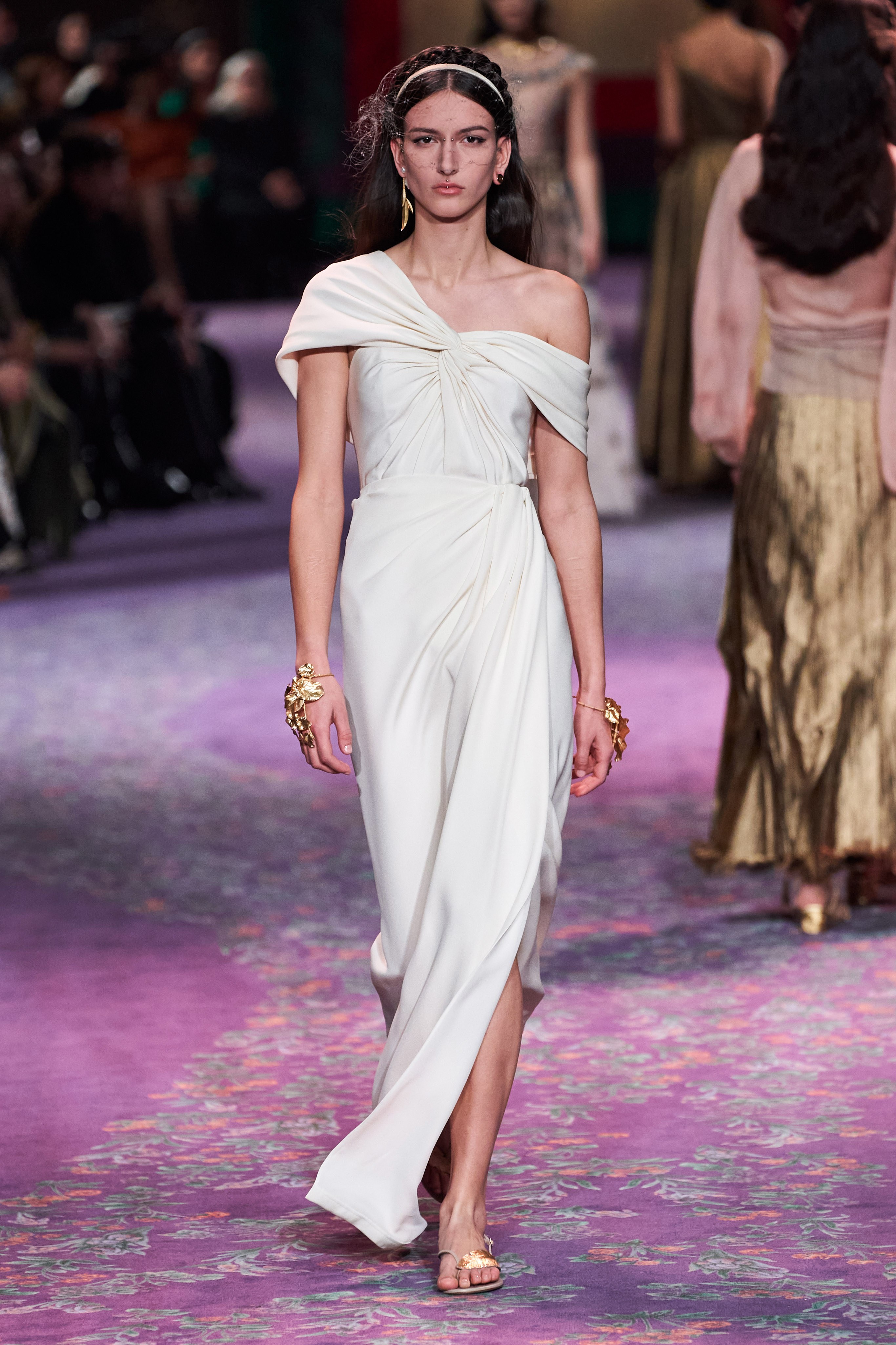 Актуальные тренды: простая обувь в сочетании с кутюрным платьем, драпировка, фиксируемая на талии, "голые" платья, золото и блестящие фактуры, струящиеся рукава.
