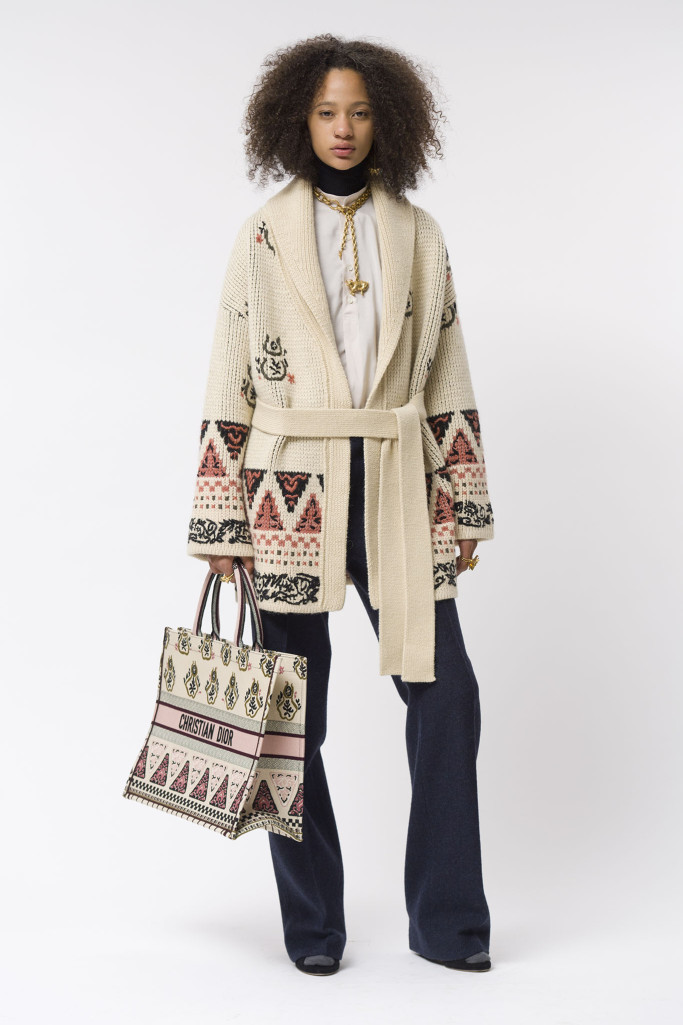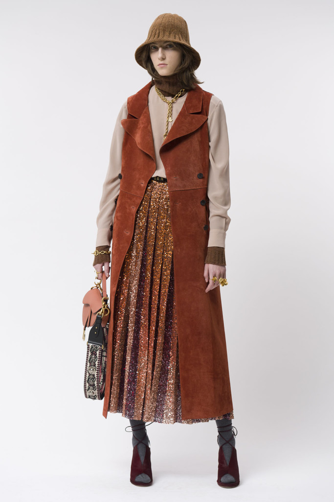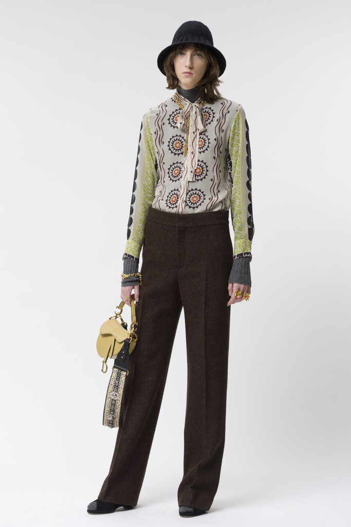 Узнаваемая маскулинность коллекций Марии Грации Кьюри на этот раз приобрела богемный оттенок и выглядит невероятно артистично – в коллекции представлены пальто-коконы и жакеты силуэта "песочные часы", женственные блузы в цветах и изящные вязаные панамы.
