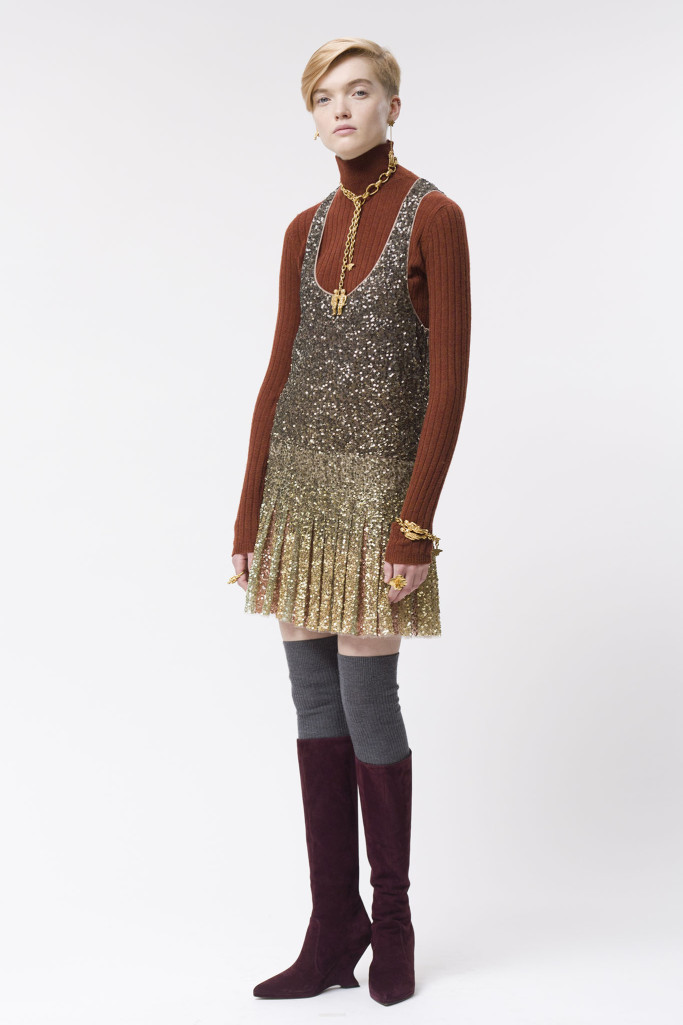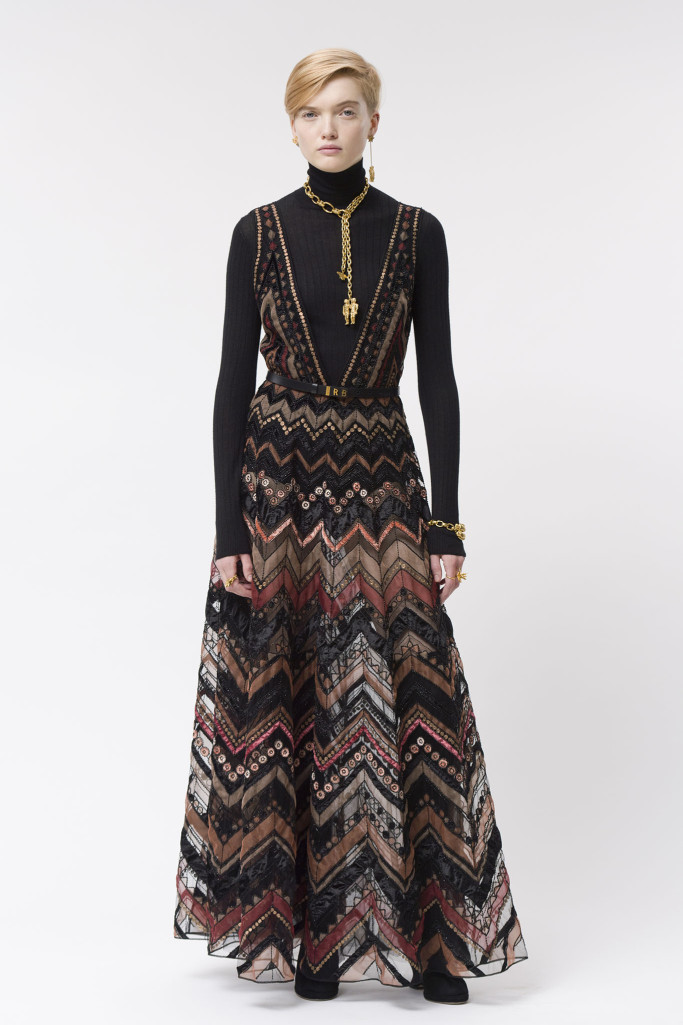 Ажурные платья, украшенные россыпями бисера и разноцветных кругов, прозрачные платья из тюля с V-образными горловинами и вытканными из вельвета и сатина зигзагами, графичные юбки и кардиганы, будто связанные из случайных клубков пряжи воплощают любовь дизайнера к деталям, высокому мастерству и технологичности.