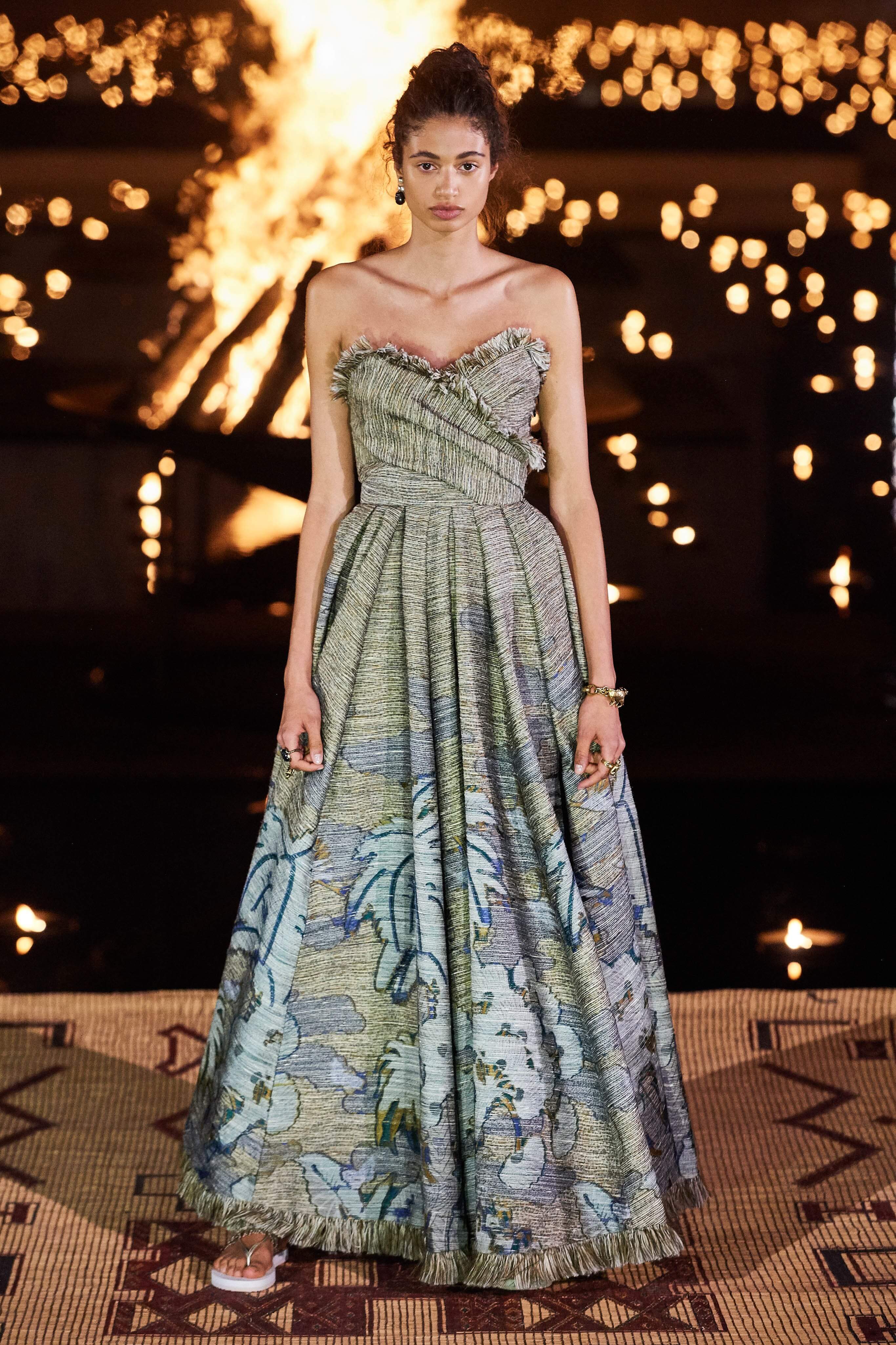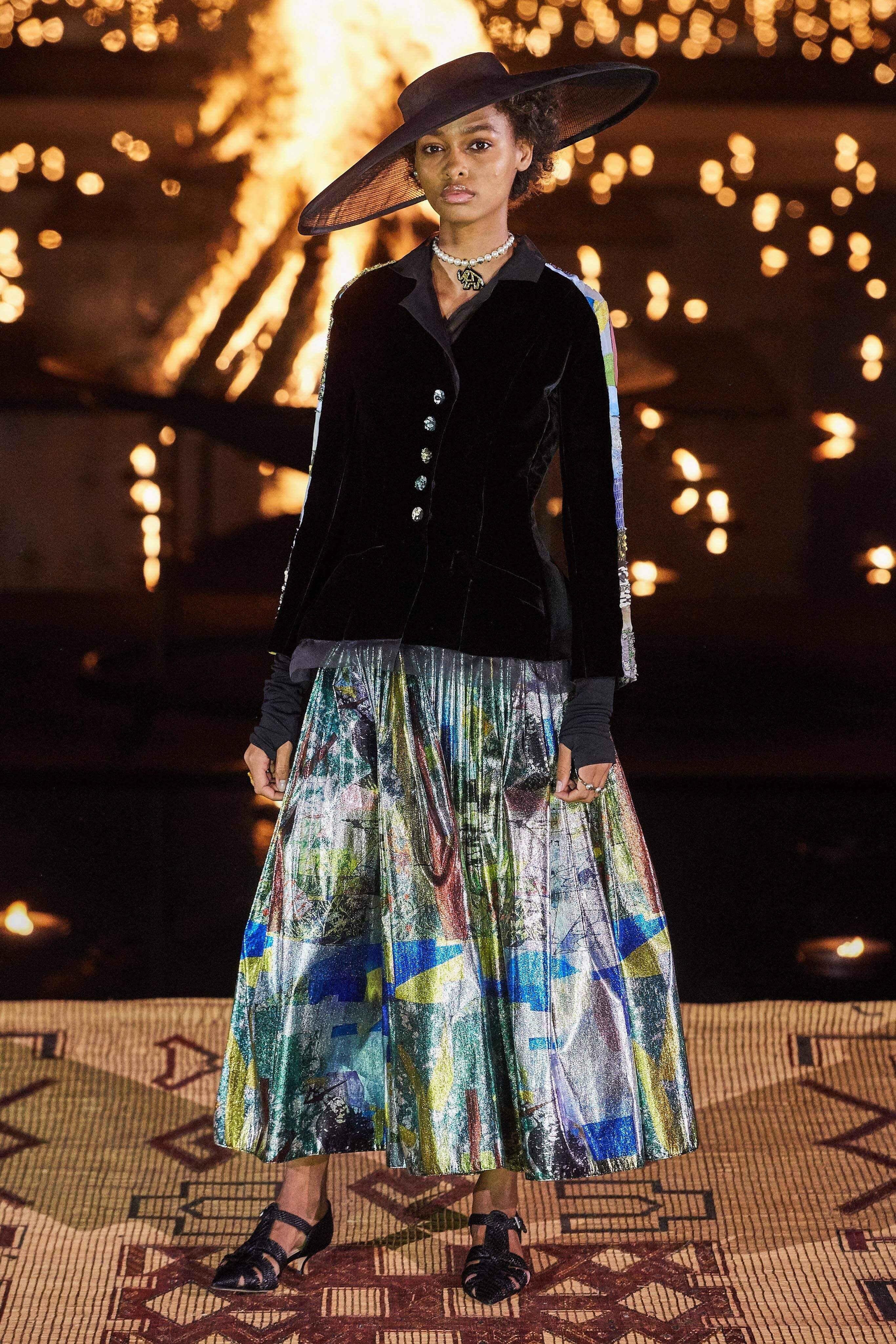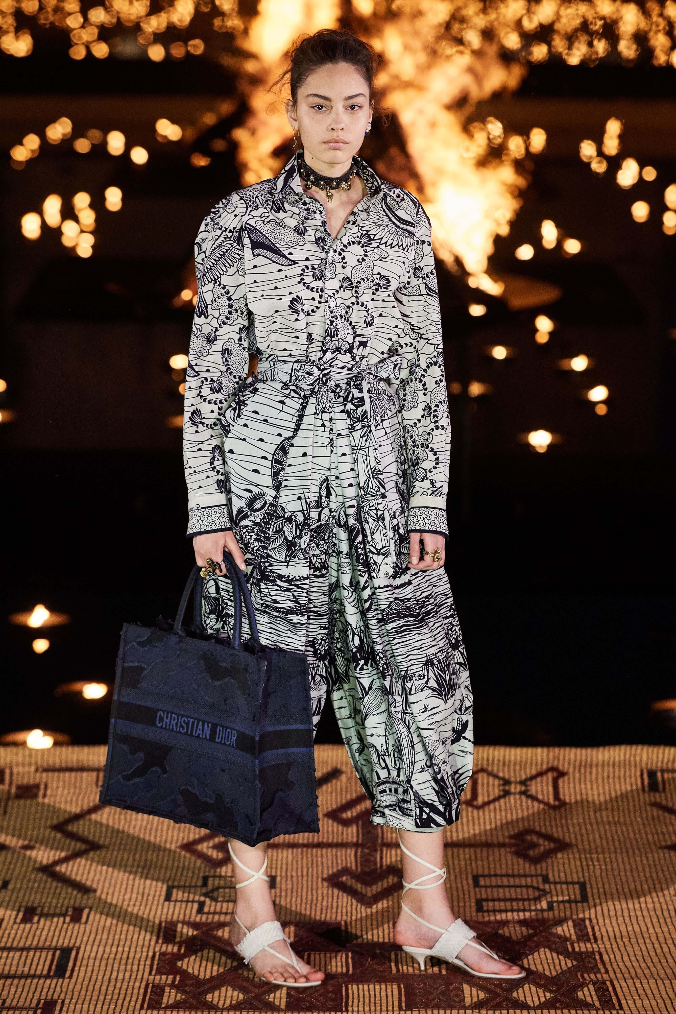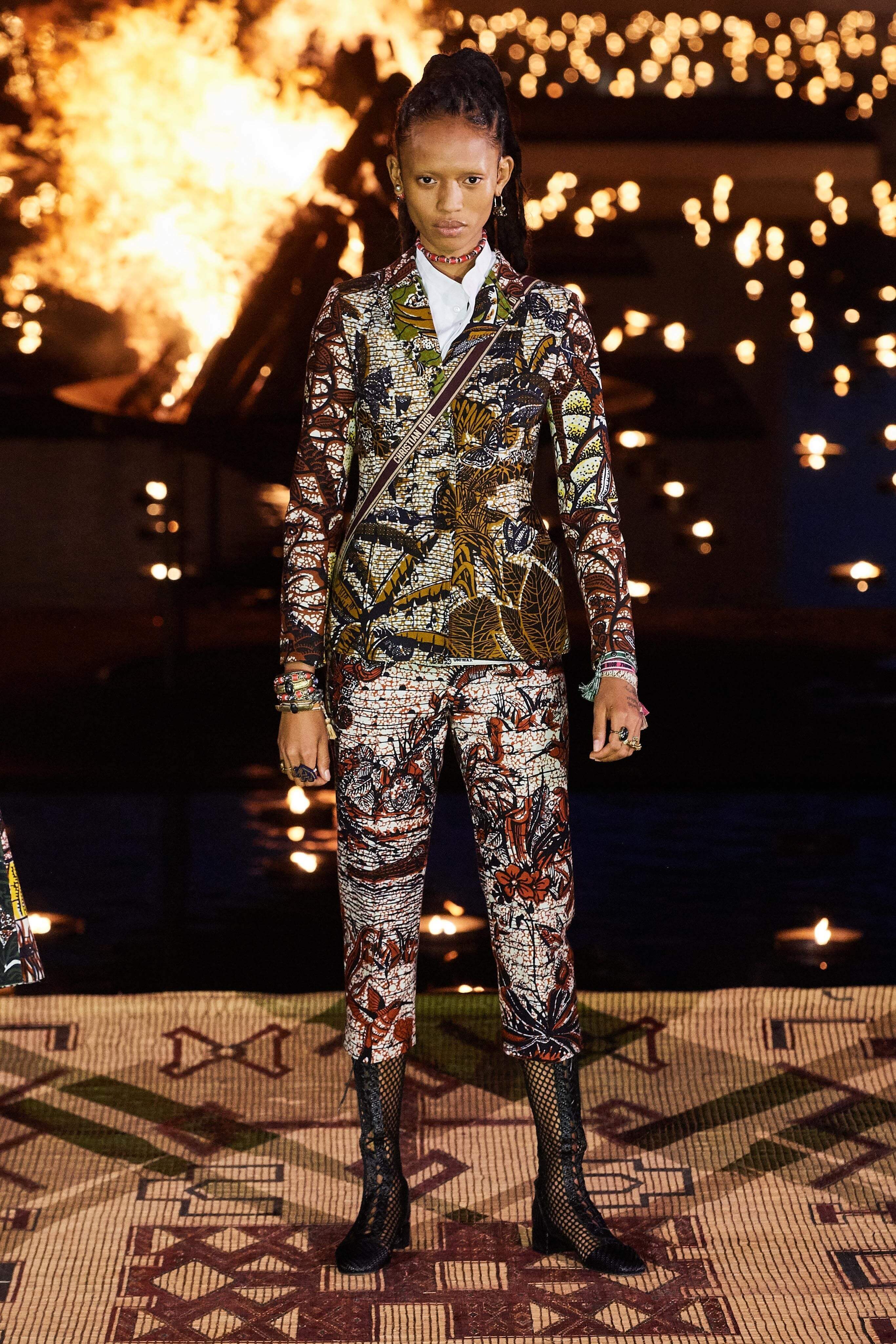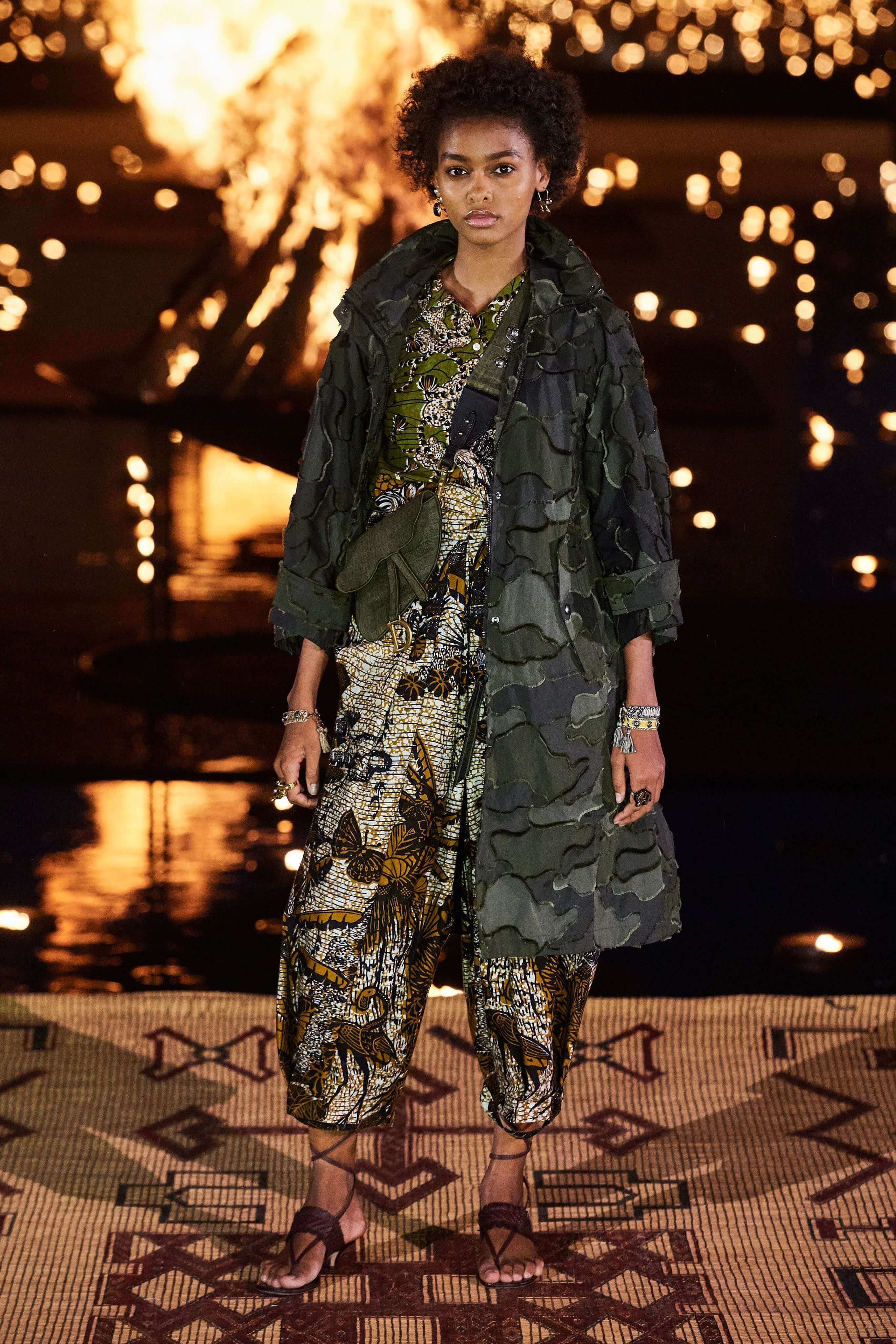 Создавая коллекцию, в которую вошли платья и костюмы из африканской ткани китэнгэ с набивным рисунком, жакеты знаковых для дома Dior силуэтов и лёгкие пальто, модельер вложила в свой труд не только эстетическое понимание культурного калейдоскопа - того буйства красок, что сходятся в одно целое в Марракеше, - но и важный посыл о том, что в африканских культурах существует целый пласт вдохновляющих идей и направлений, с которыми интересно и важно работать. Сама Мария Грация Кьюри вдохновлялась несколькими источниками: книгой франко-марокканского поэта Тахара Бенжеллуна "Расизм, объясненный моей дочери", работами о феминистической этике в разрезе расовых вопросов доктора философии Анны Зак, трудами антрополога и специалиста по африканскому текстилю Анн Просфилей, а также сотрудничеством с локальными текстильными производителями.