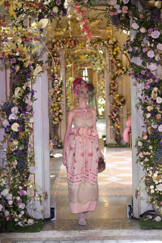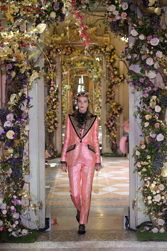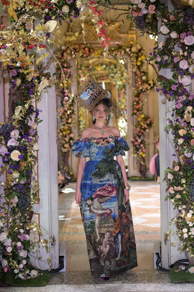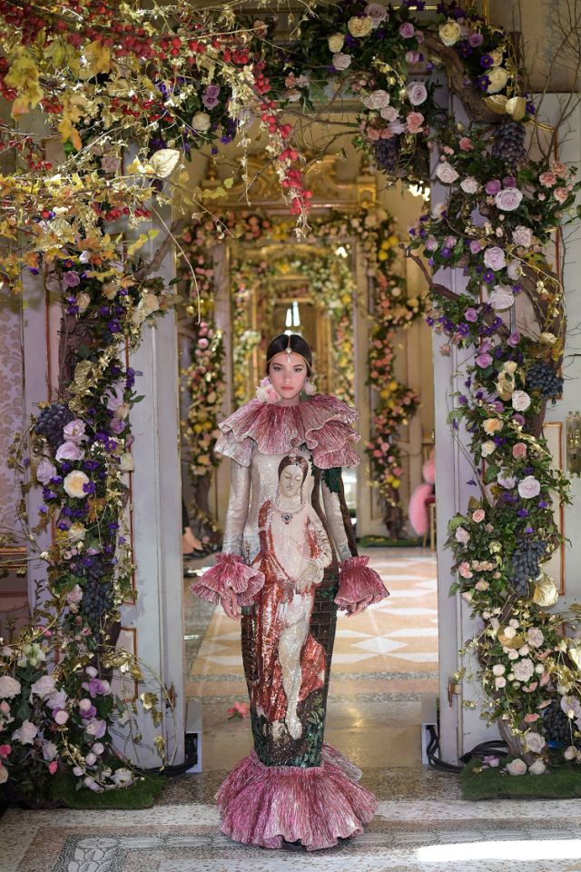 Грандиозный показ включил 200 выходов моделей в вещах, иллюстрирующих шедевры искусства Ренессанса, такие как полотна Леонардо да Винчи, Тициана, Рафаэля и Джорджоне.