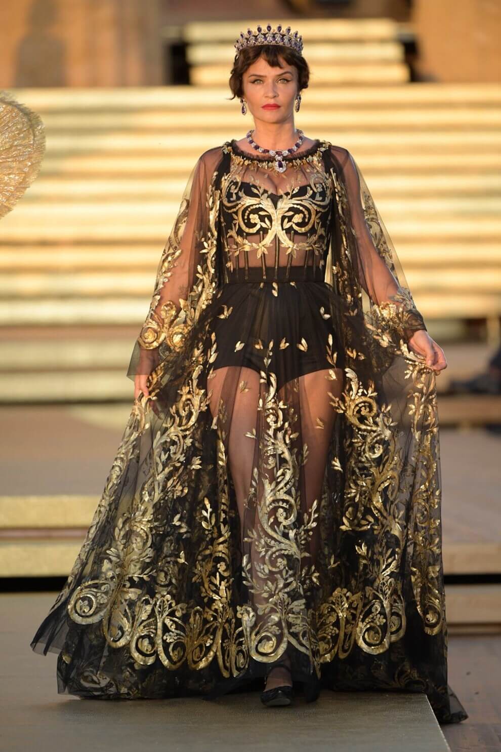Линию Alta Moda Доменико Дольче и Стефано Габбана основали на Сицилии в 2012 году, и недавнее шоу стало своеобразным праздником ностальгии и возвращения к истокам. Драматичное и блистательное шоу, ставшее, по словам Доменико Дольче, воплощенной мечтой и настоящей фантасмагорией, сопровождала музыка в исполнении женского оркестра, участницы которого были облачены в платья жриц богини Весты.