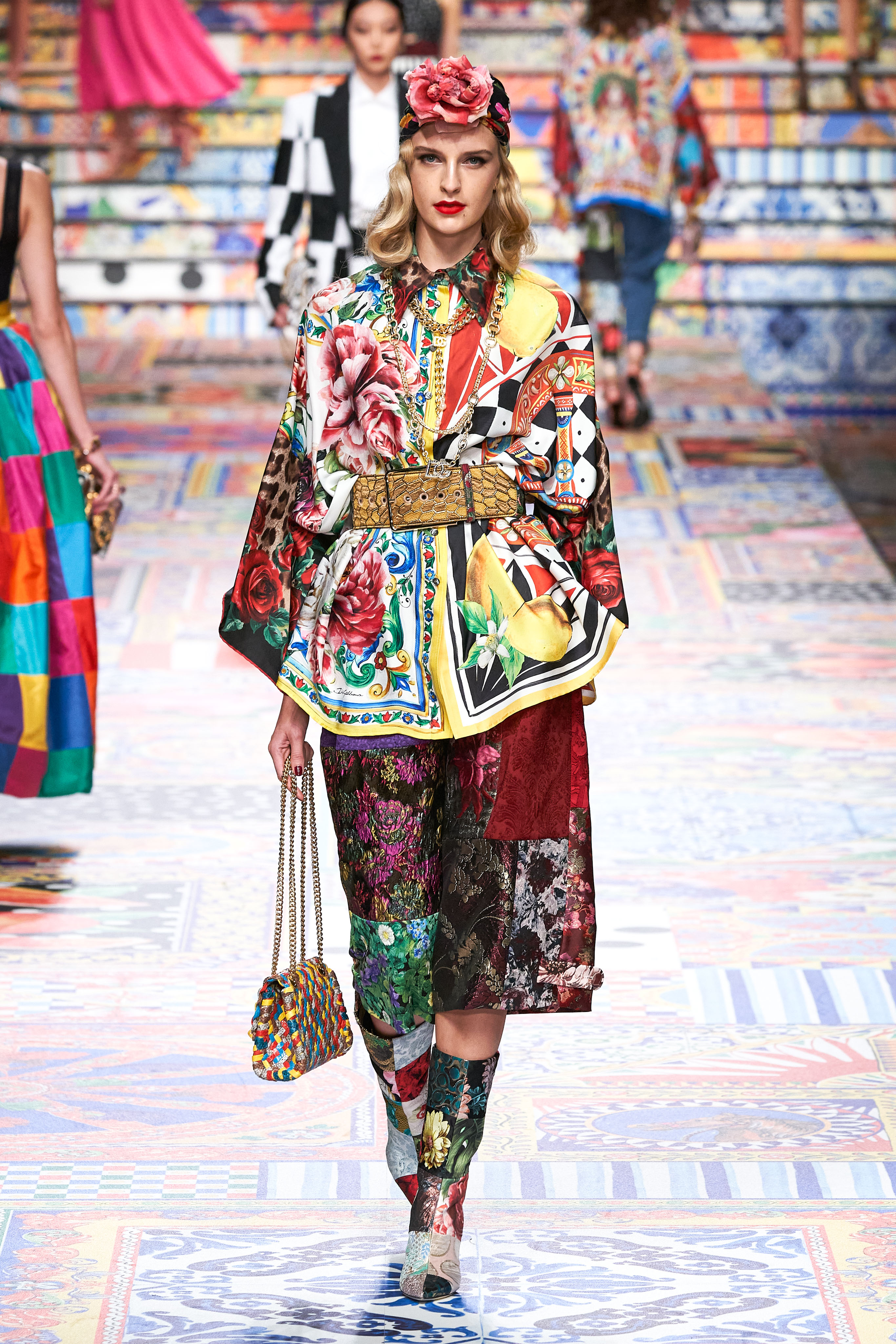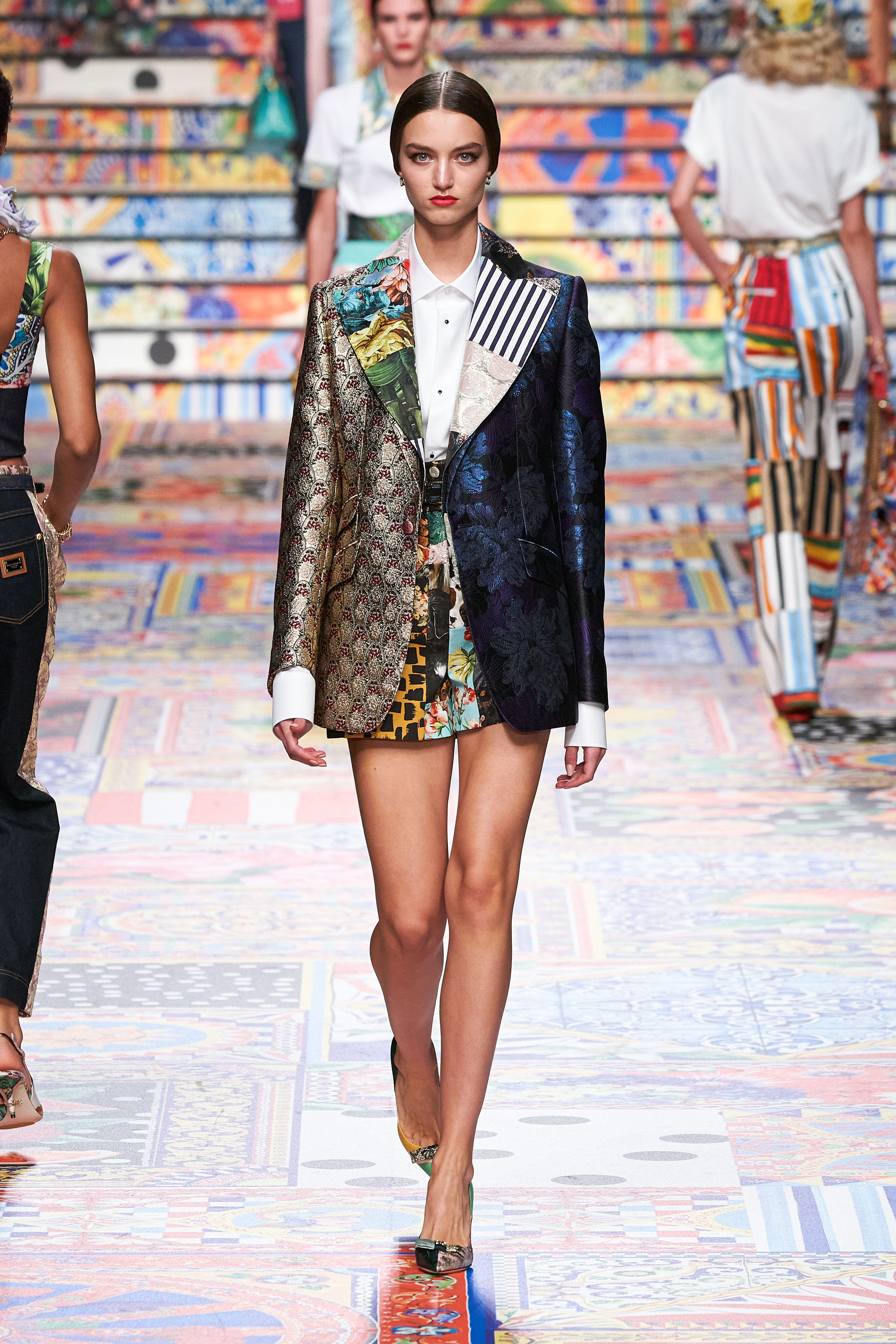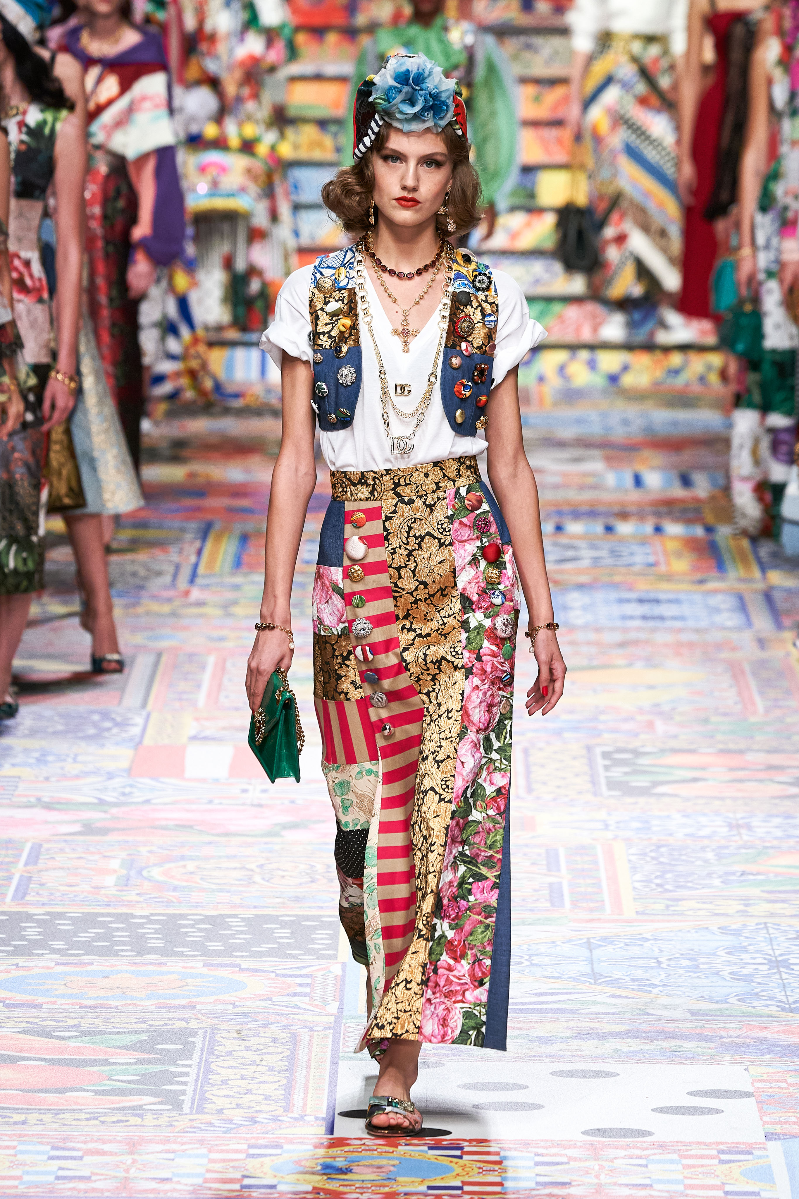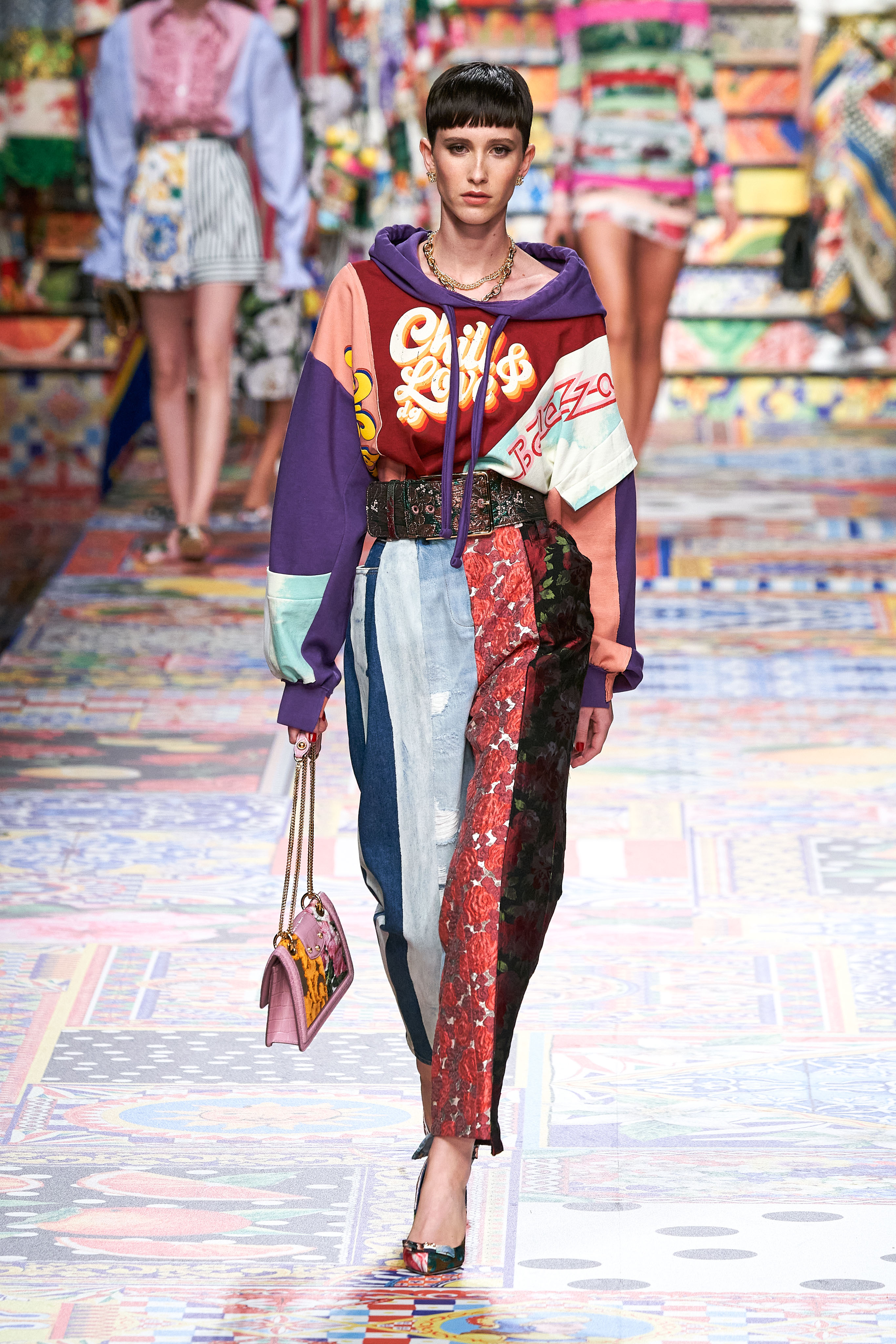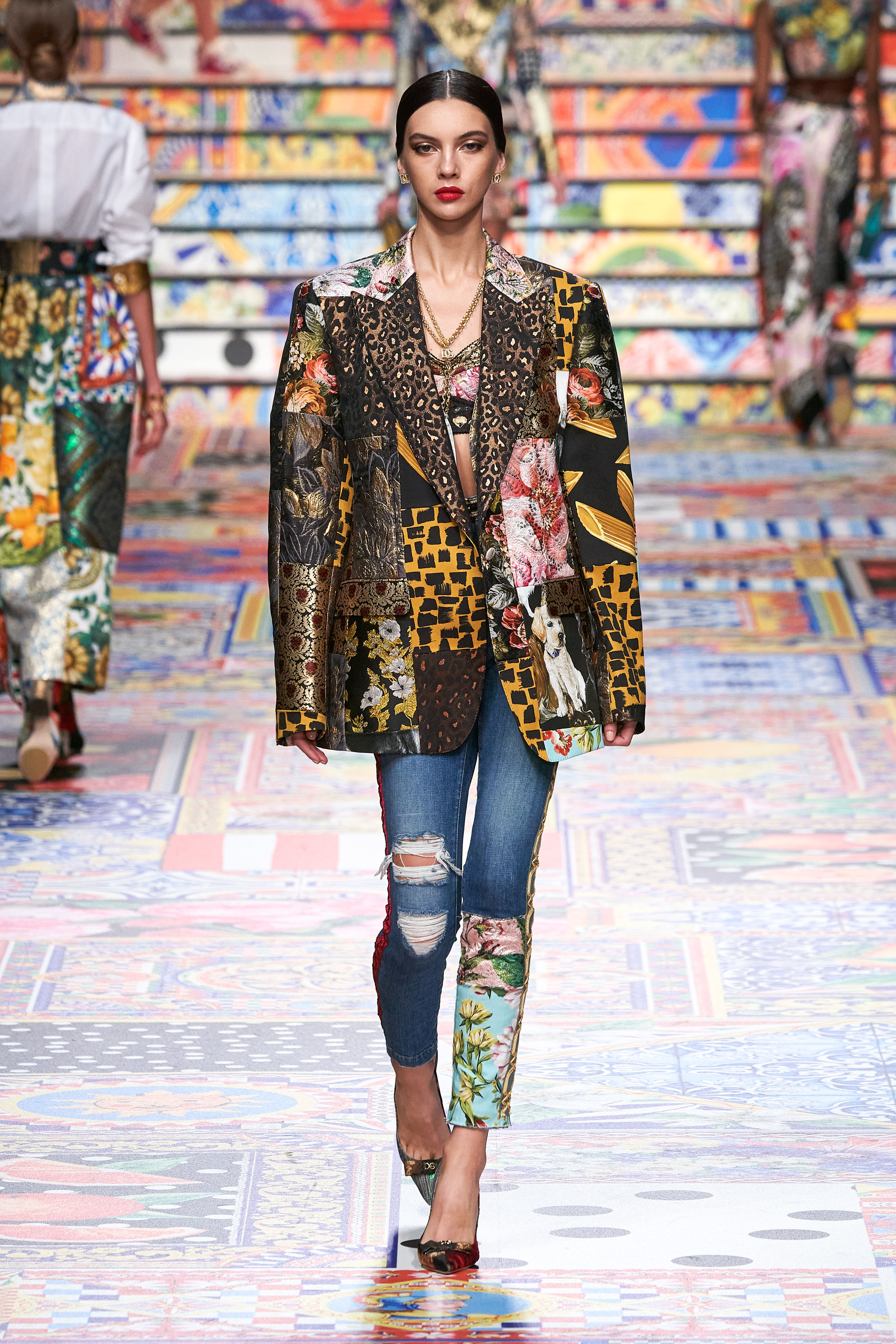 Доменико Дольче и Стефано Габбана в своей работе над весенней коллекцией, так же как и другие дизайнеры, размышляли над родной землей, домом и необходимостью находить баланс во время пандемии — как внутренний, так и производственный. Так, вся коллекция создана из текстильных остатков прошлых сезонов, а костюмы-тройки, плащи, юбки и даже джинсы выполнены в технике пэчворк.
