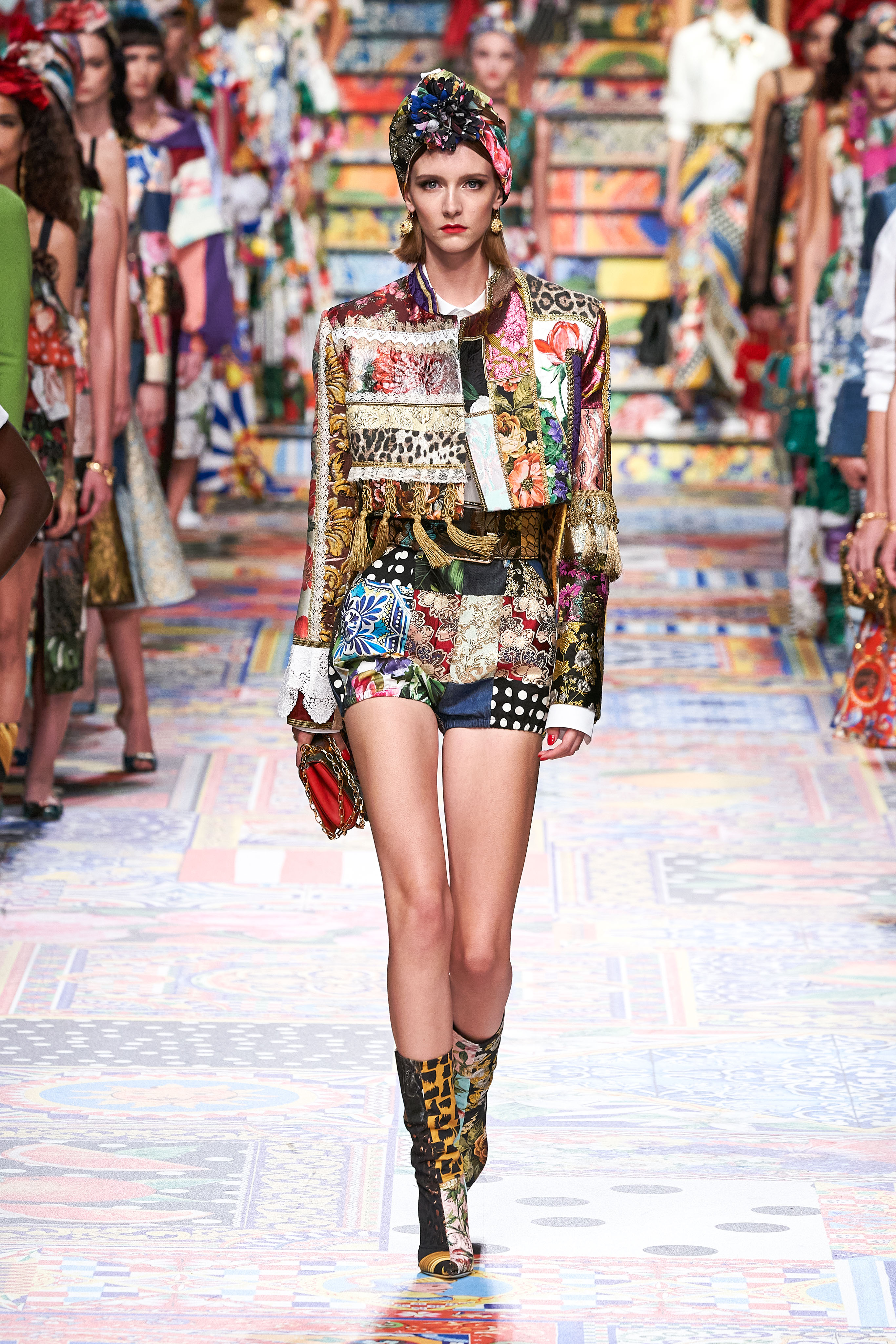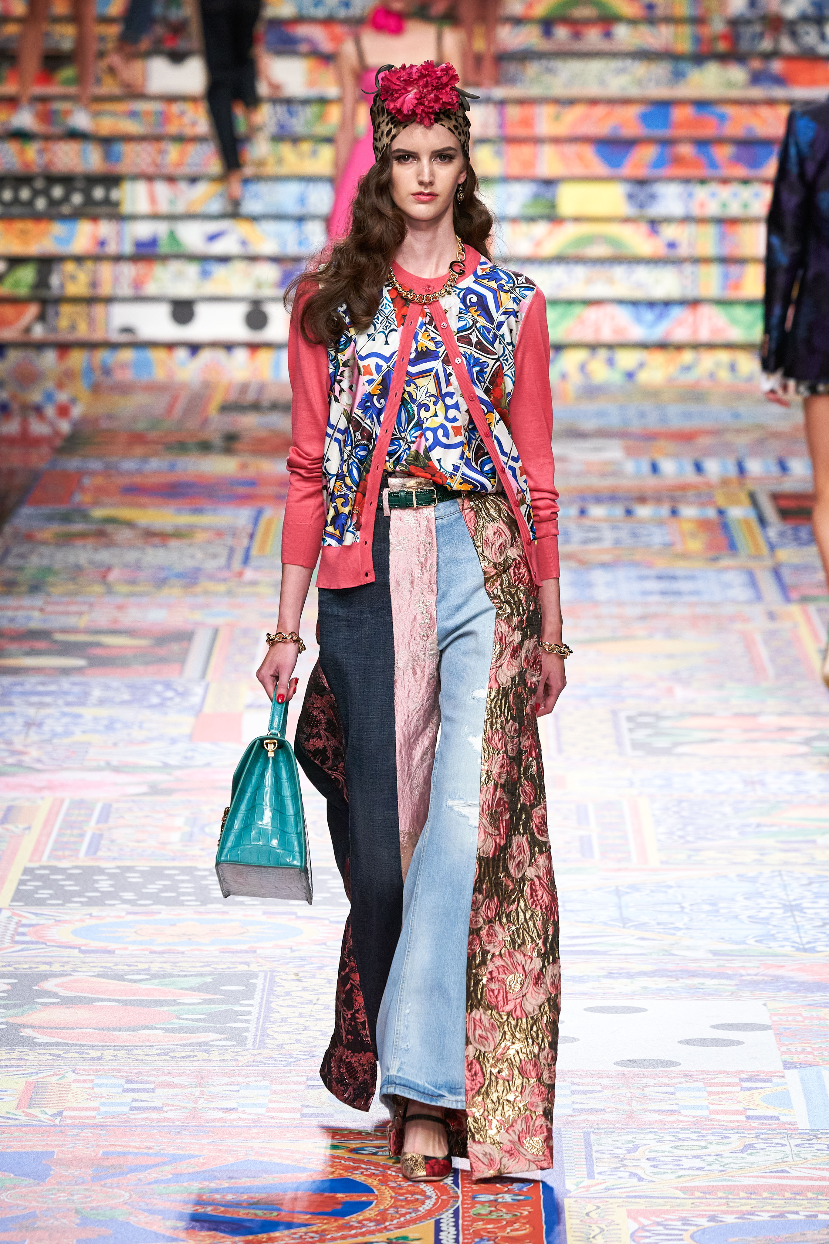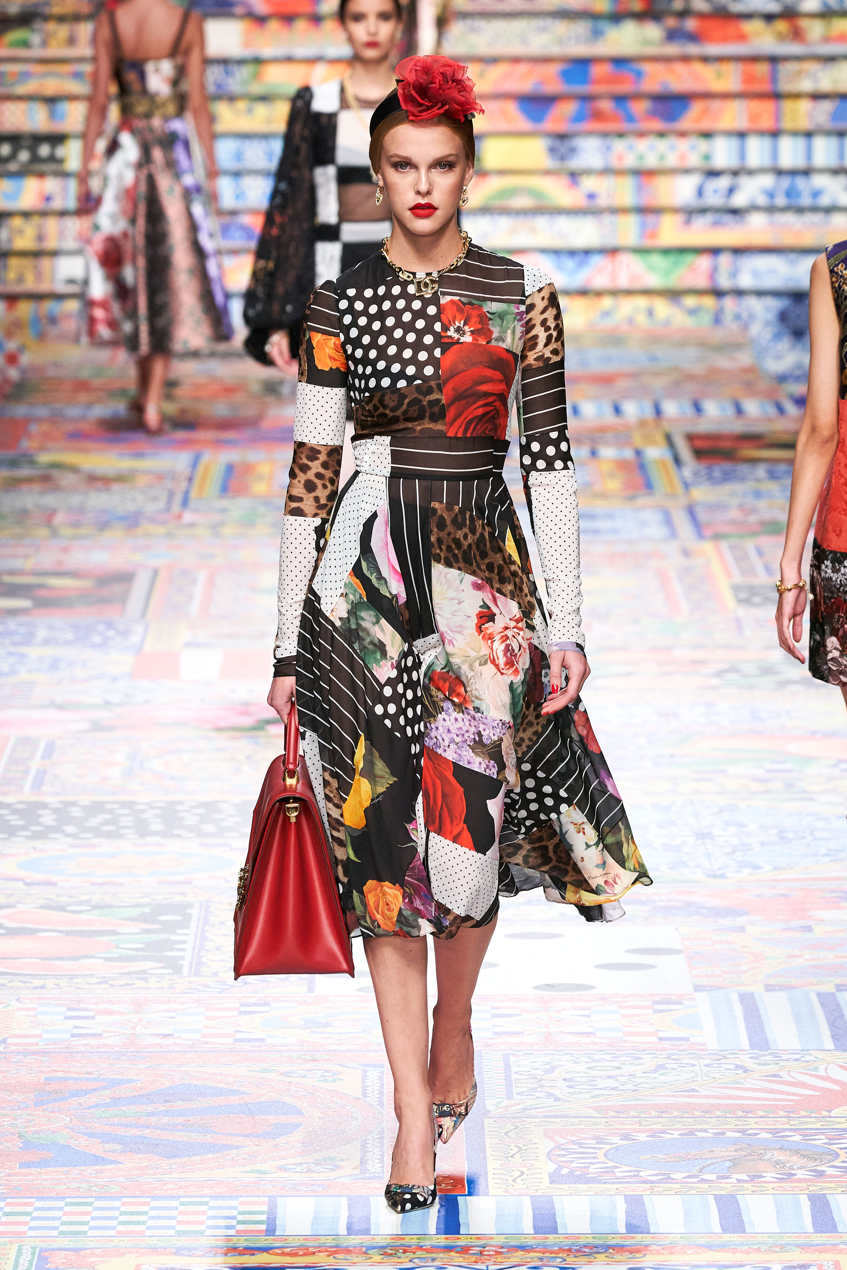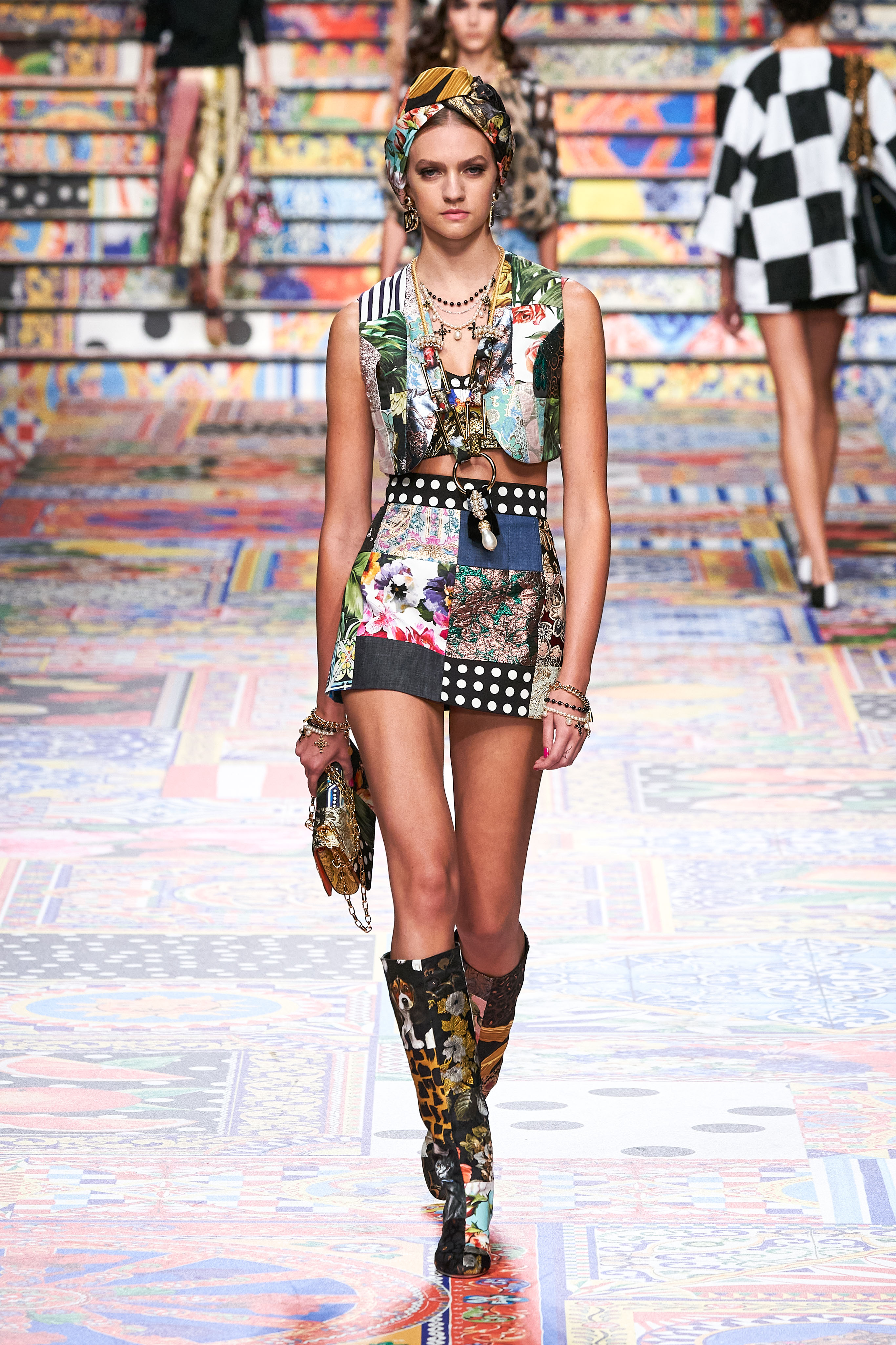 Доменико Дольче и Стефано Габбана в своей работе над весенней коллекцией, так же как и другие дизайнеры, размышляли над родной землей, домом и необходимостью находить баланс во время пандемии — как внутренний, так и производственный. Так, вся коллекция создана из текстильных остатков прошлых сезонов, а костюмы-тройки, плащи, юбки и даже джинсы выполнены в технике пэчворк.