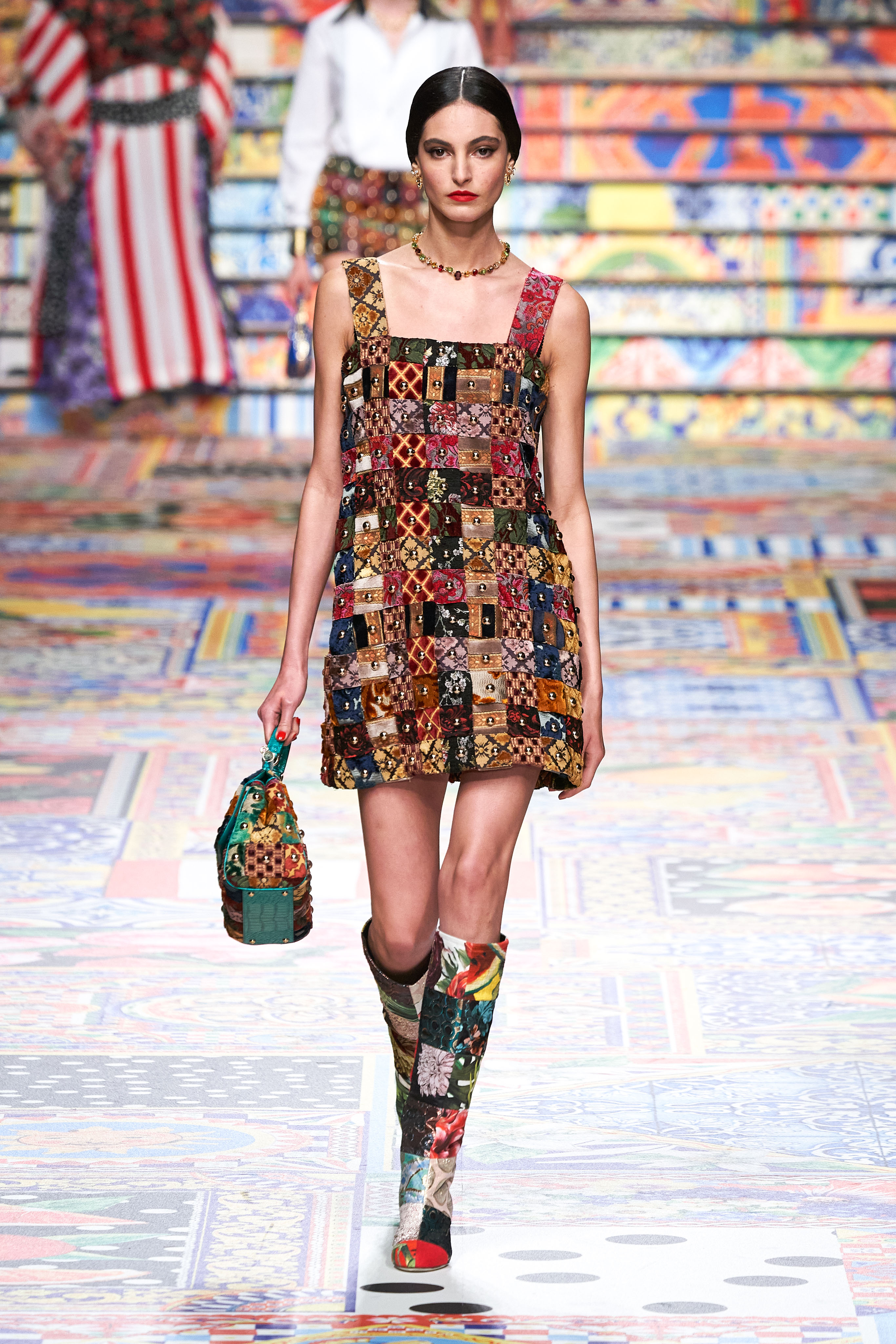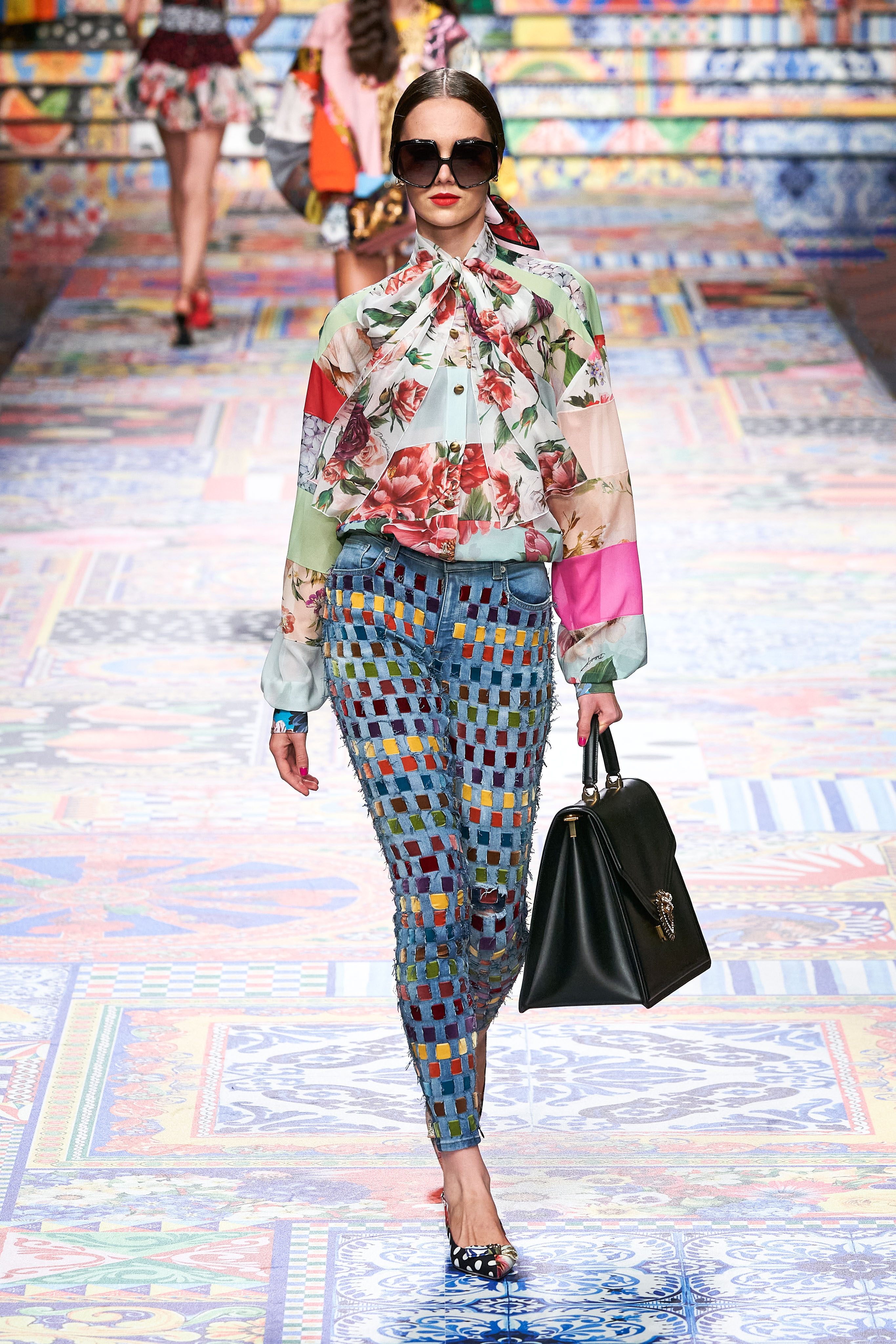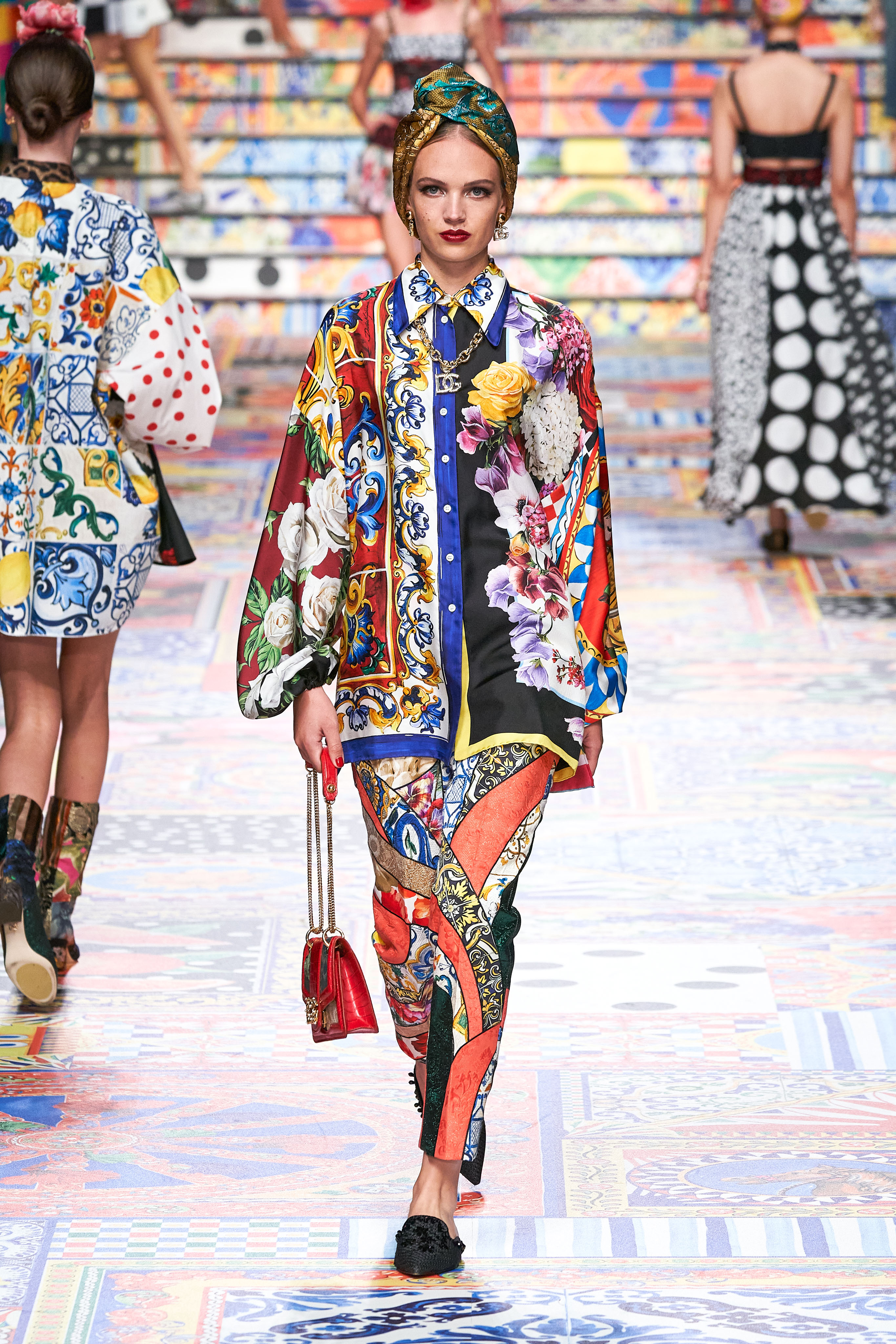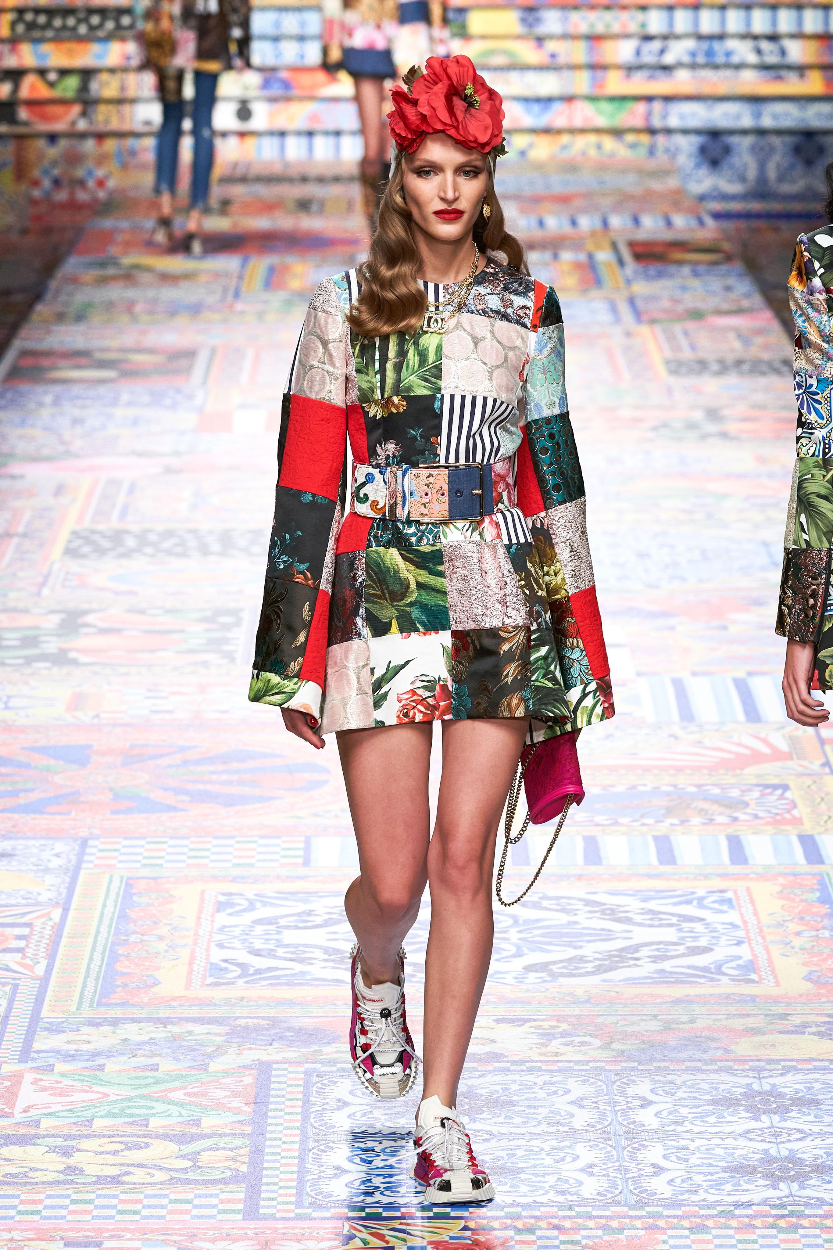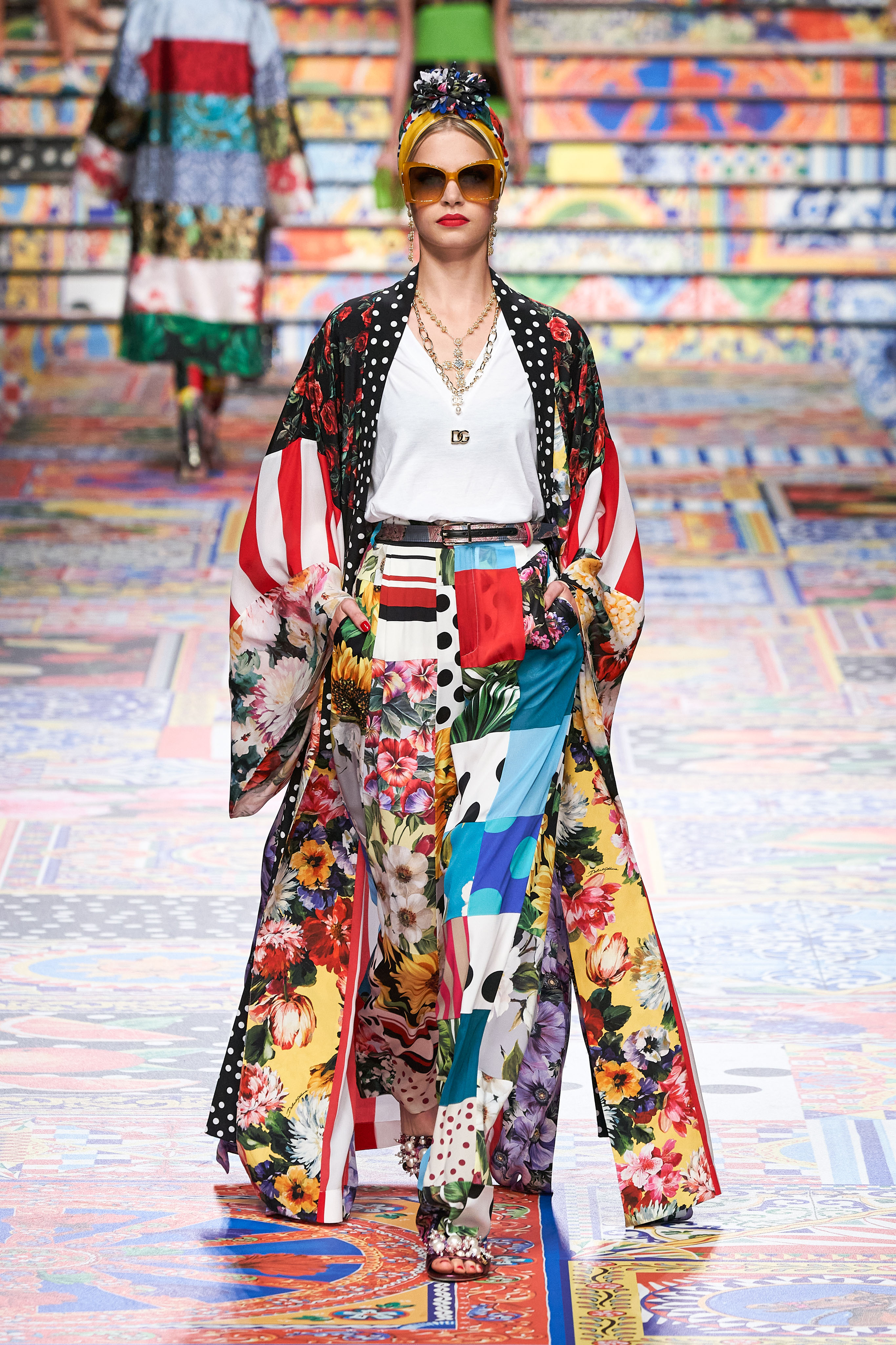 Доменико Дольче и Стефано Габбана в своей работе над весенней коллекцией, так же как и другие дизайнеры, размышляли над родной землей, домом и необходимостью находить баланс во время пандемии — как внутренний, так и производственный. Так, вся коллекция создана из текстильных остатков прошлых сезонов, а костюмы-тройки, плащи, юбки и даже джинсы выполнены в технике пэчворк.