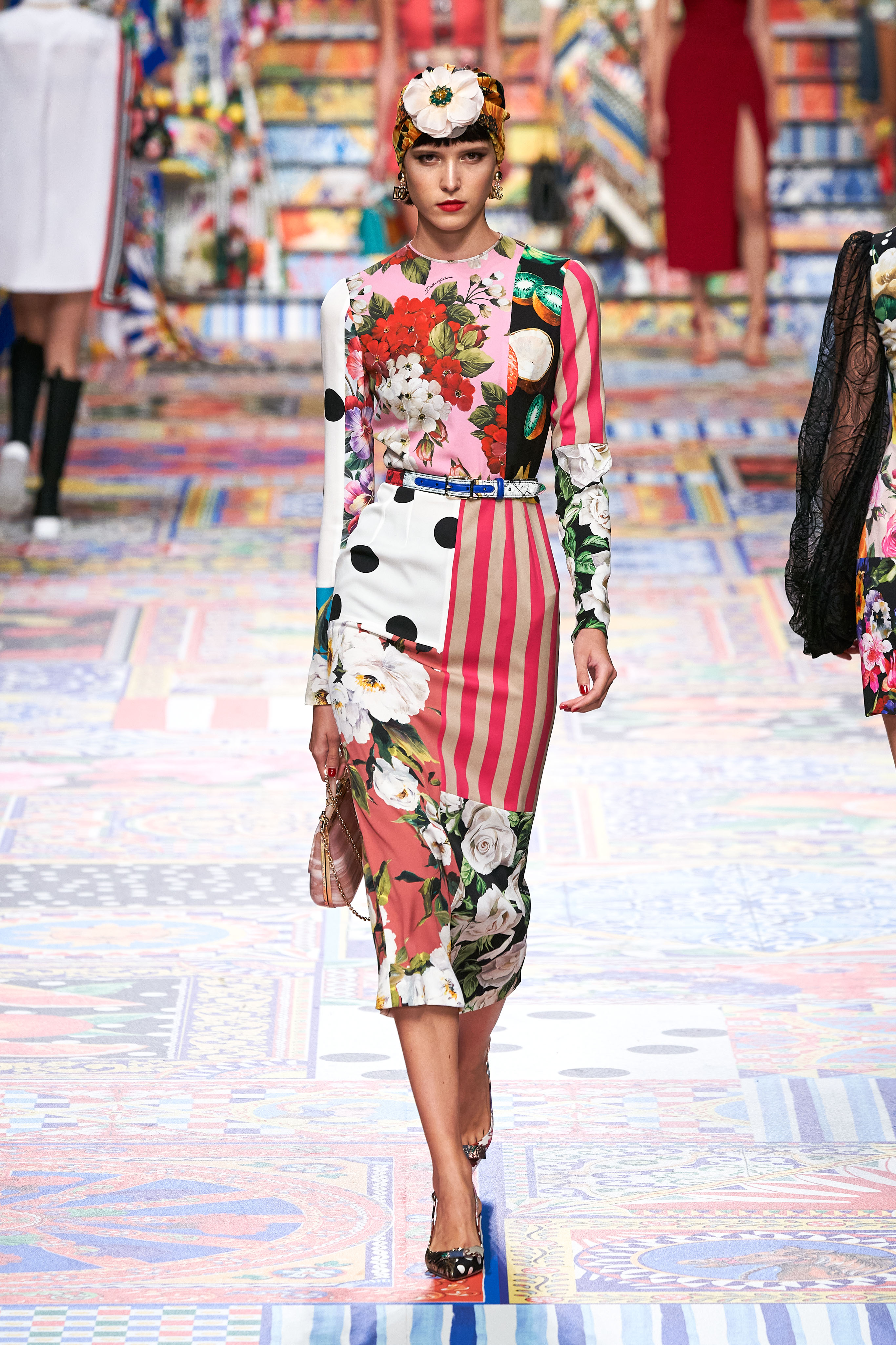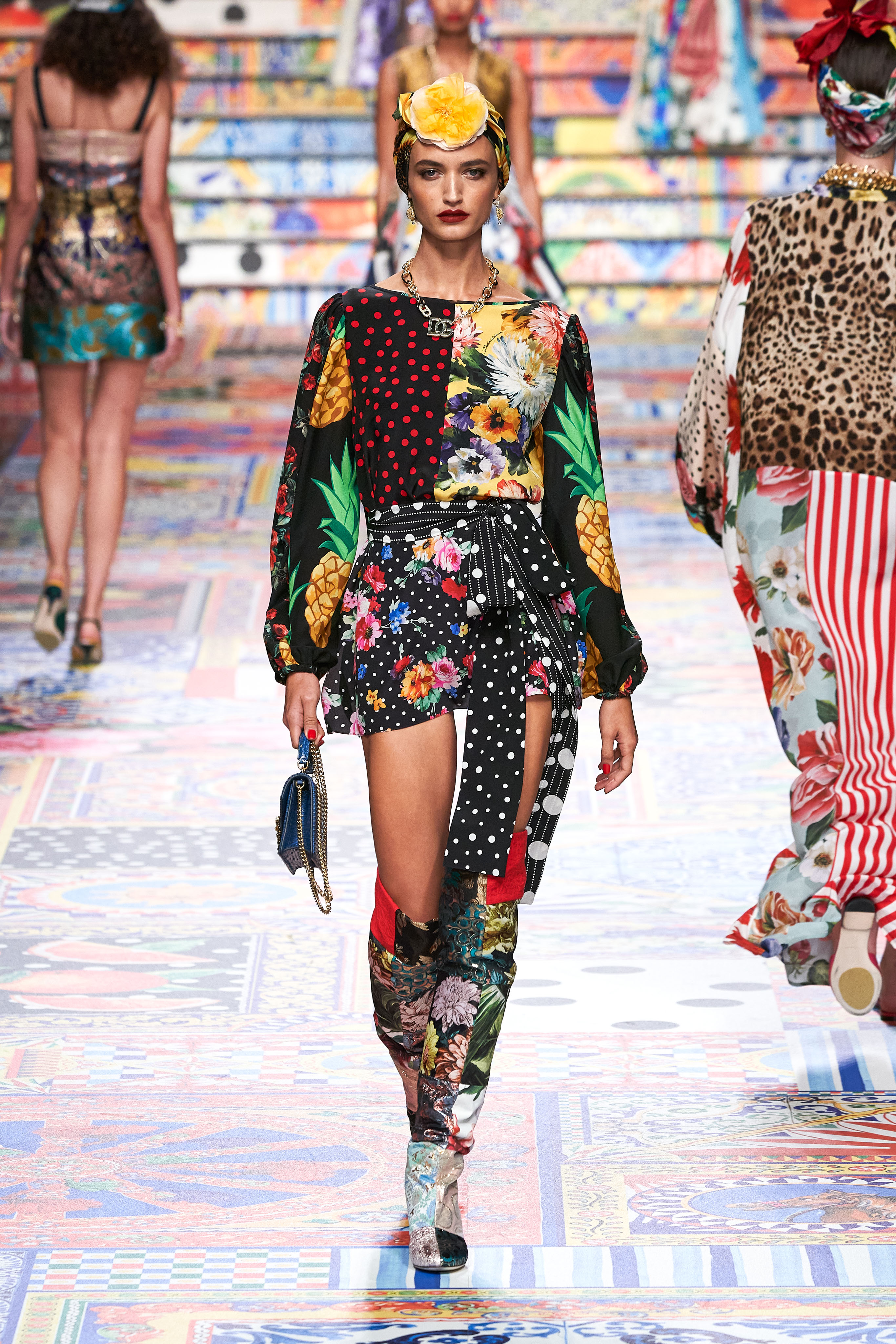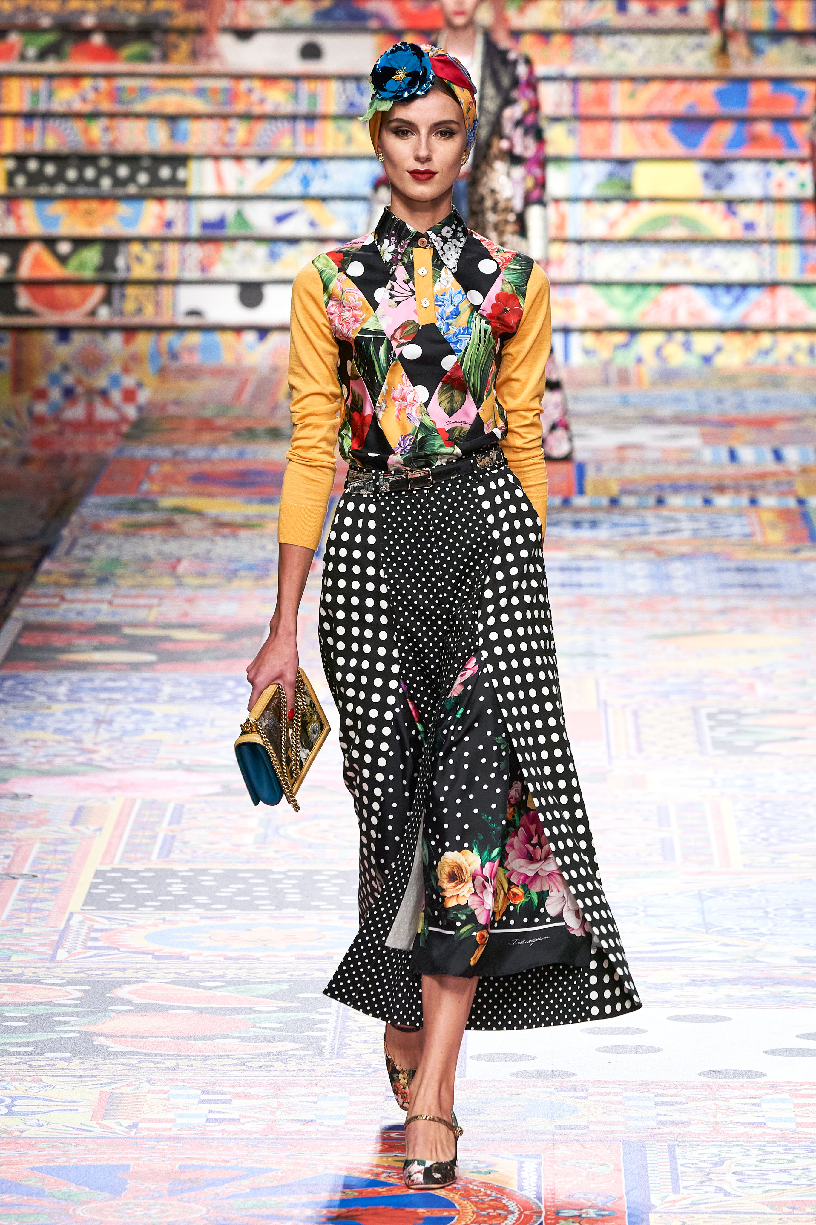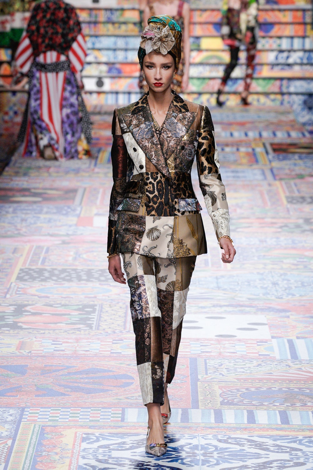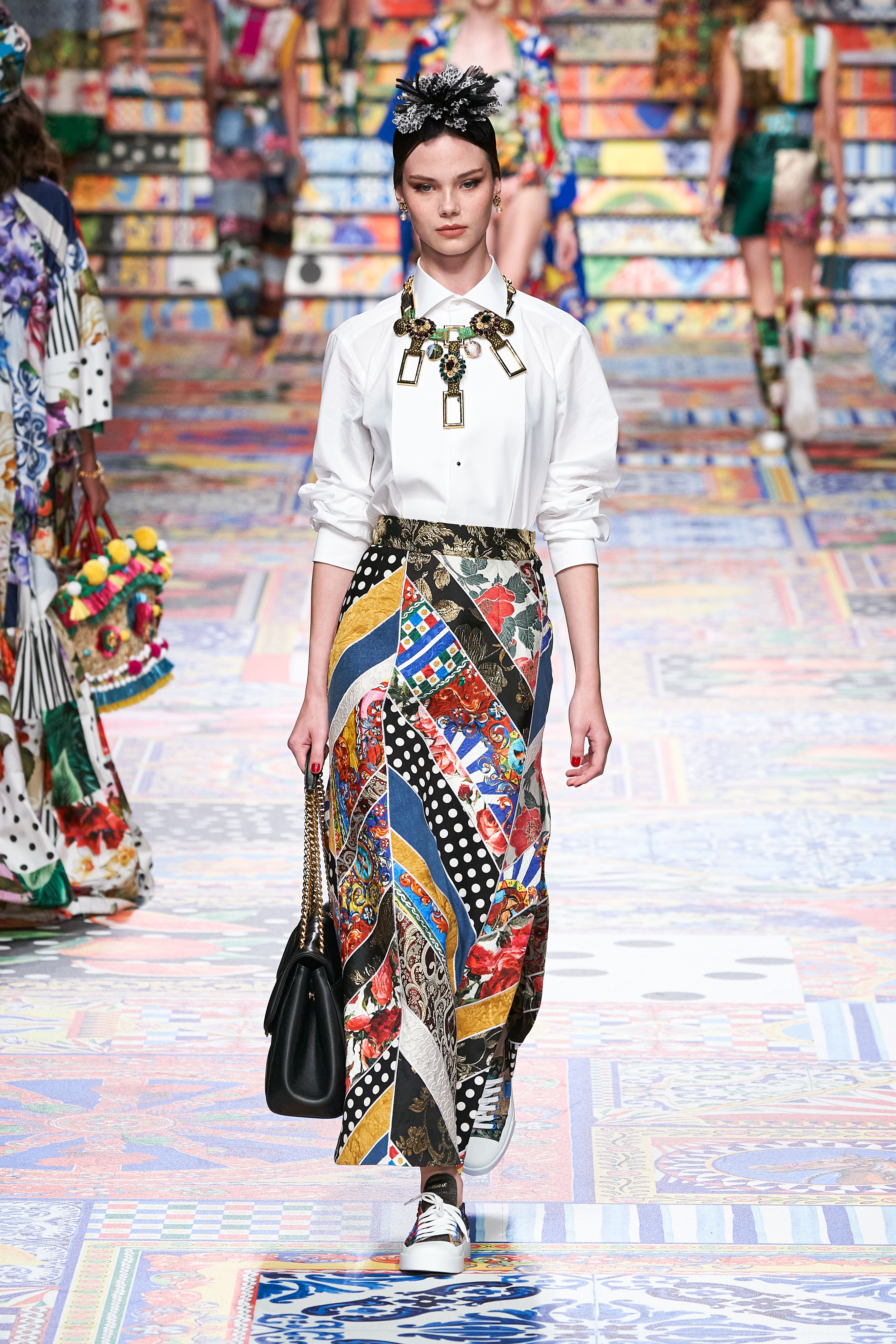 Доменико Дольче и Стефано Габбана в своей работе над весенней коллекцией, так же как и другие дизайнеры, размышляли над родной землей, домом и необходимостью находить баланс во время пандемии — как внутренний, так и производственный. Так, вся коллекция создана из текстильных остатков прошлых сезонов, а костюмы-тройки, плащи, юбки и даже джинсы выполнены в технике пэчворк.