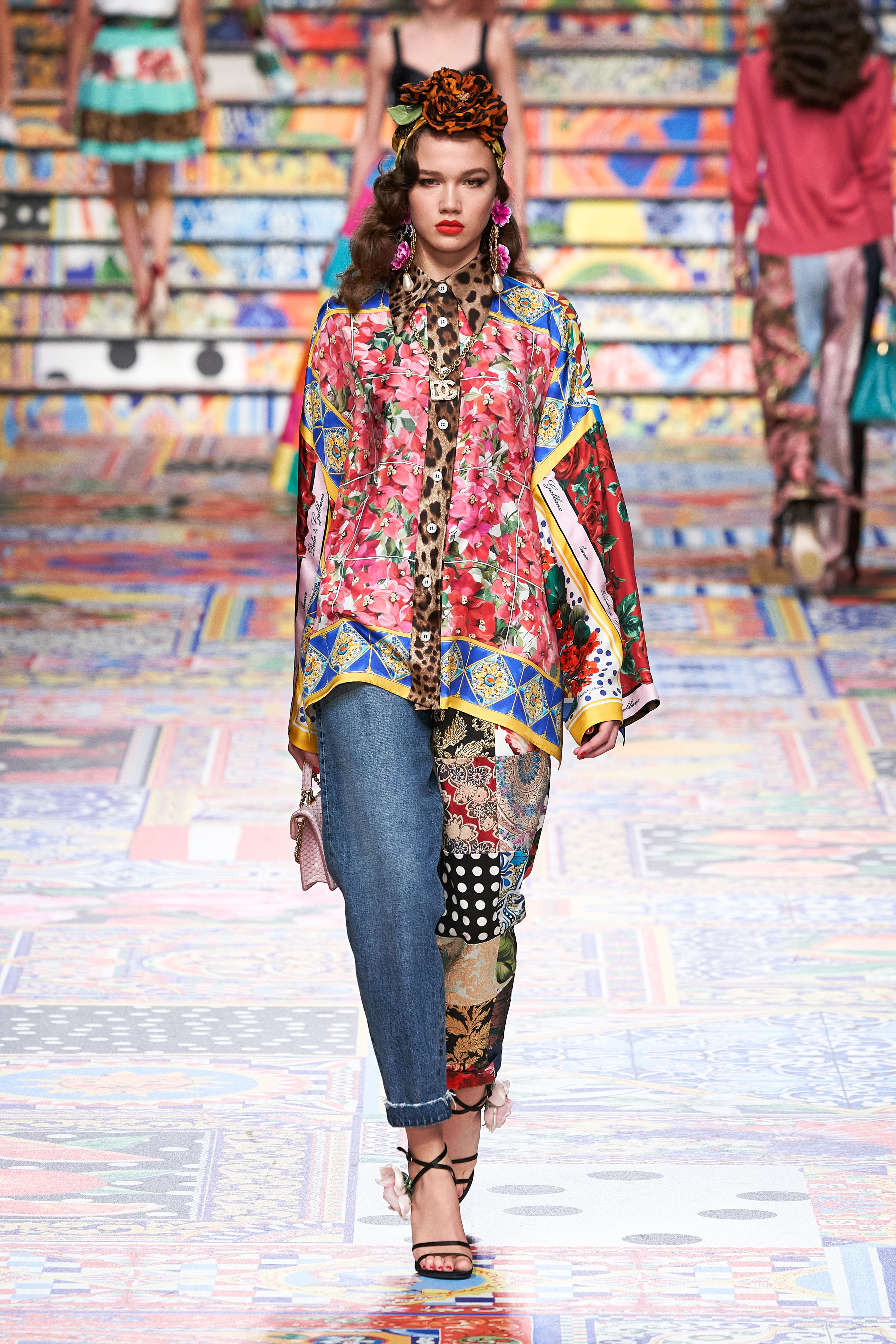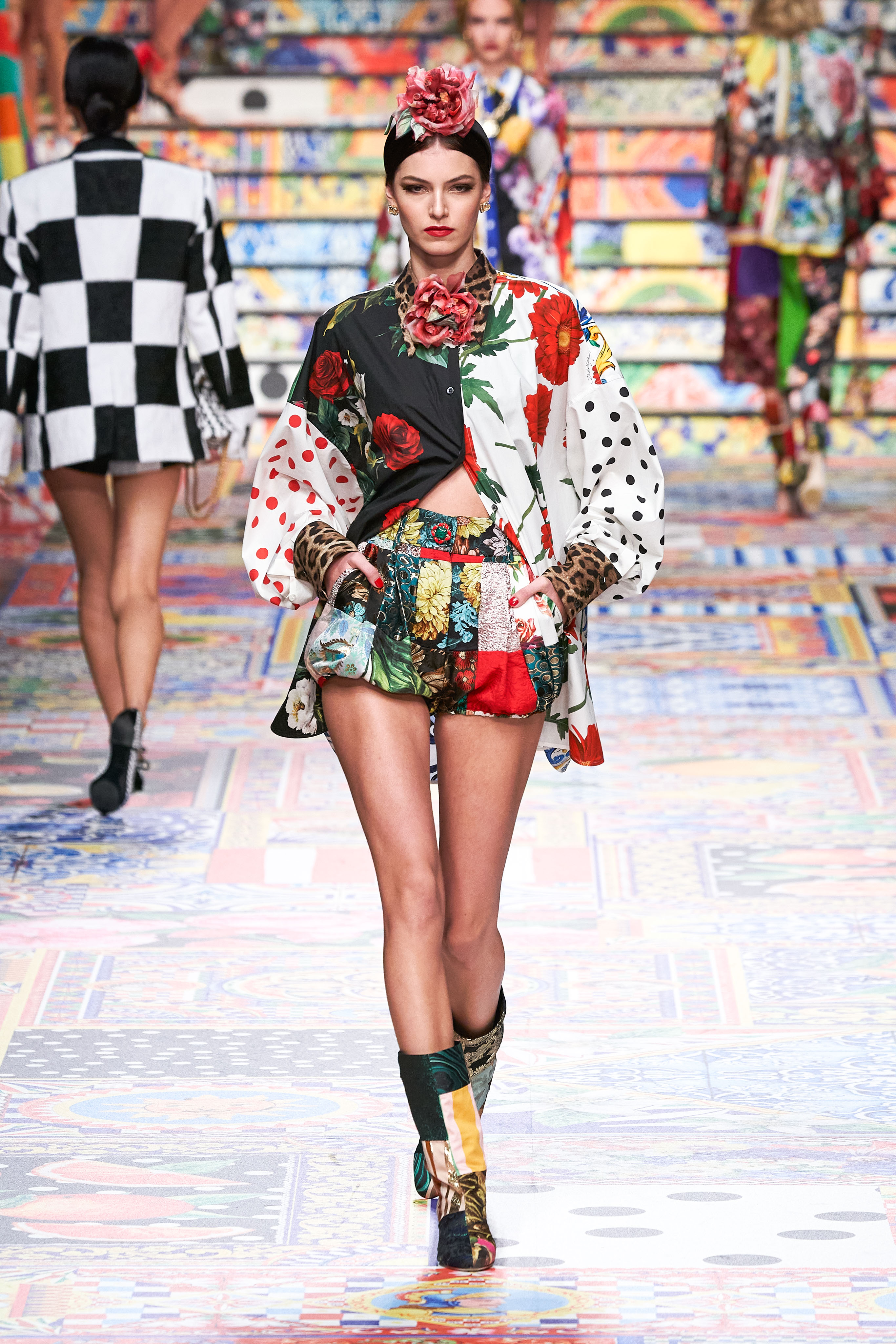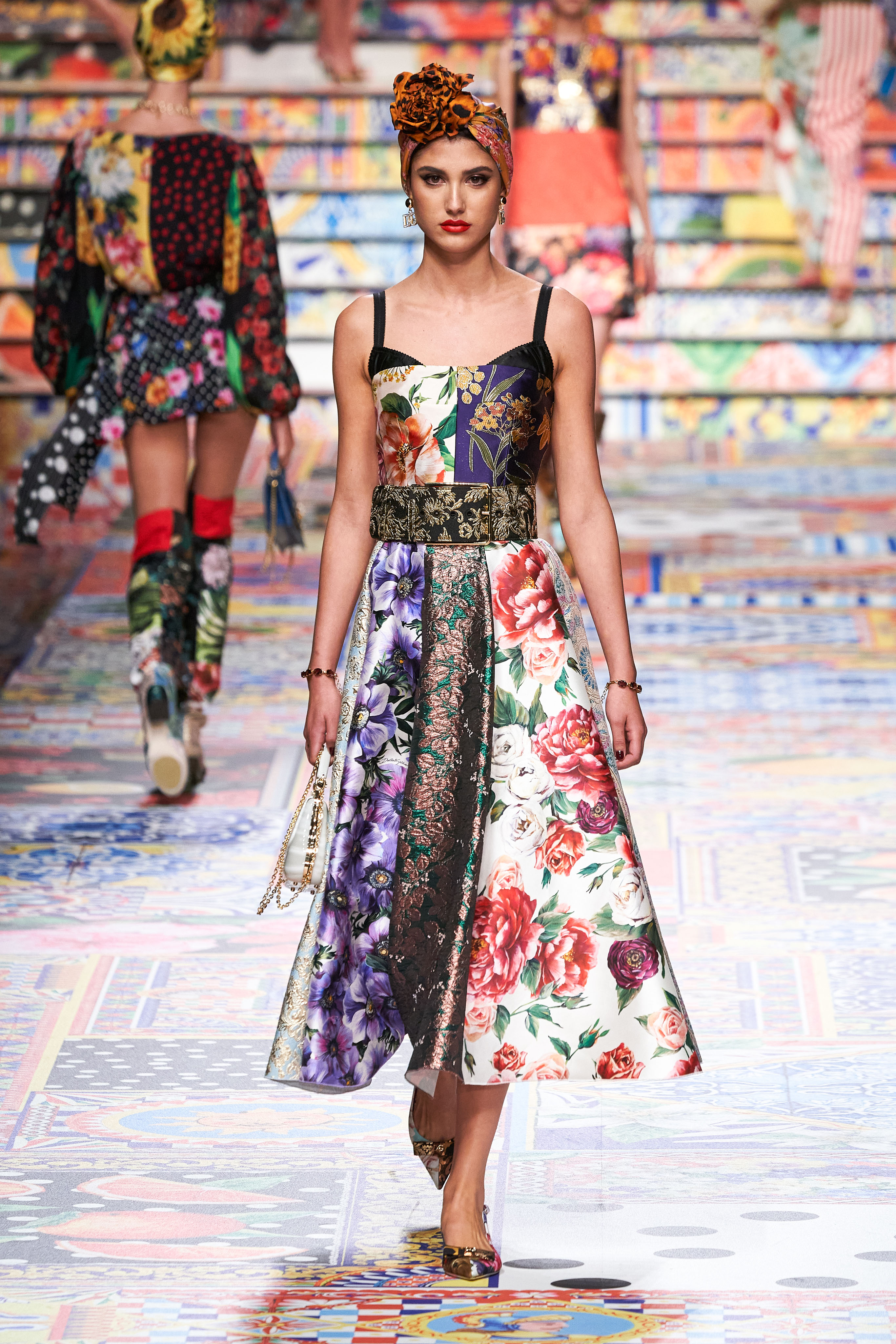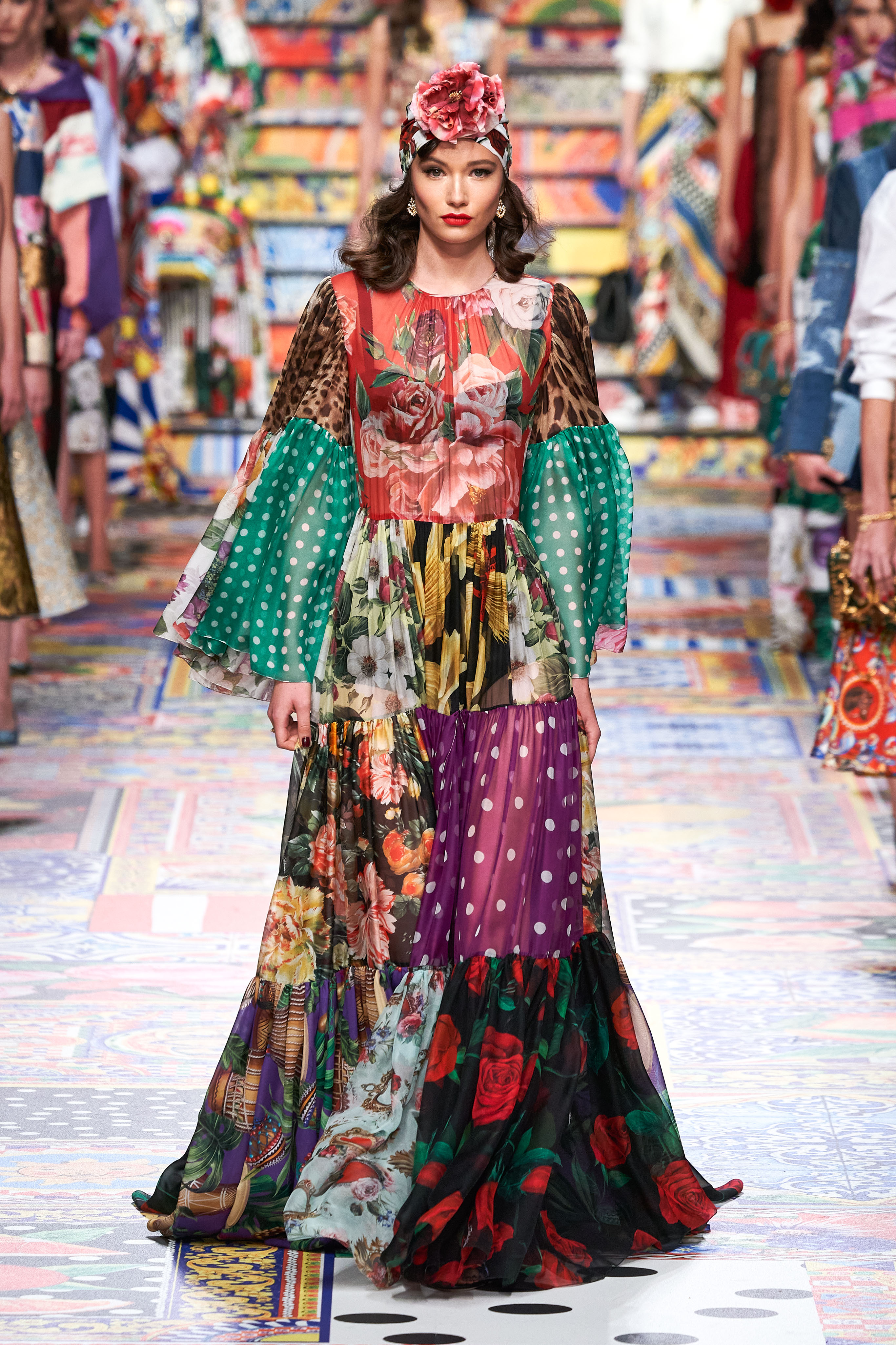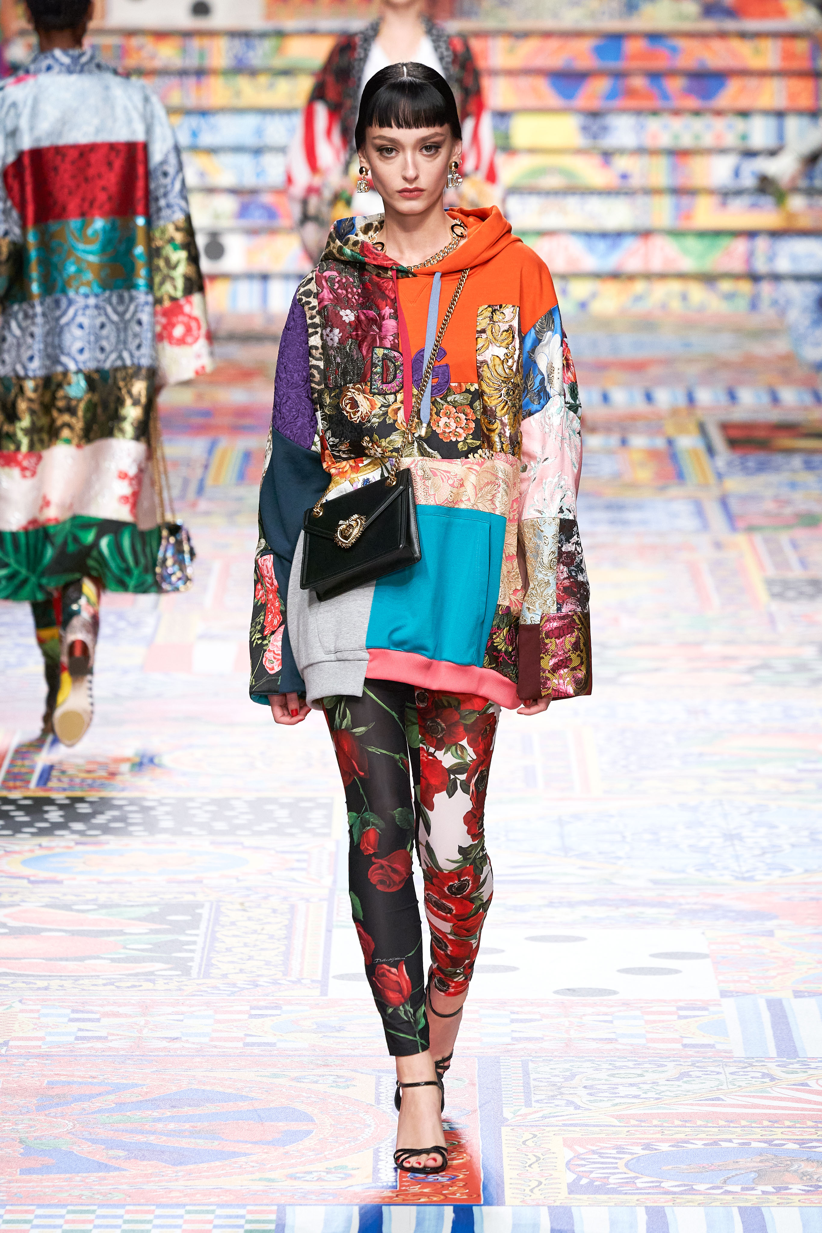 Доменико Дольче и Стефано Габбана в своей работе над весенней коллекцией, так же как и другие дизайнеры, размышляли над родной землей, домом и необходимостью находить баланс во время пандемии — как внутренний, так и производственный. Так, вся коллекция создана из текстильных остатков прошлых сезонов, а костюмы-тройки, плащи, юбки и даже джинсы выполнены в технике пэчворк.