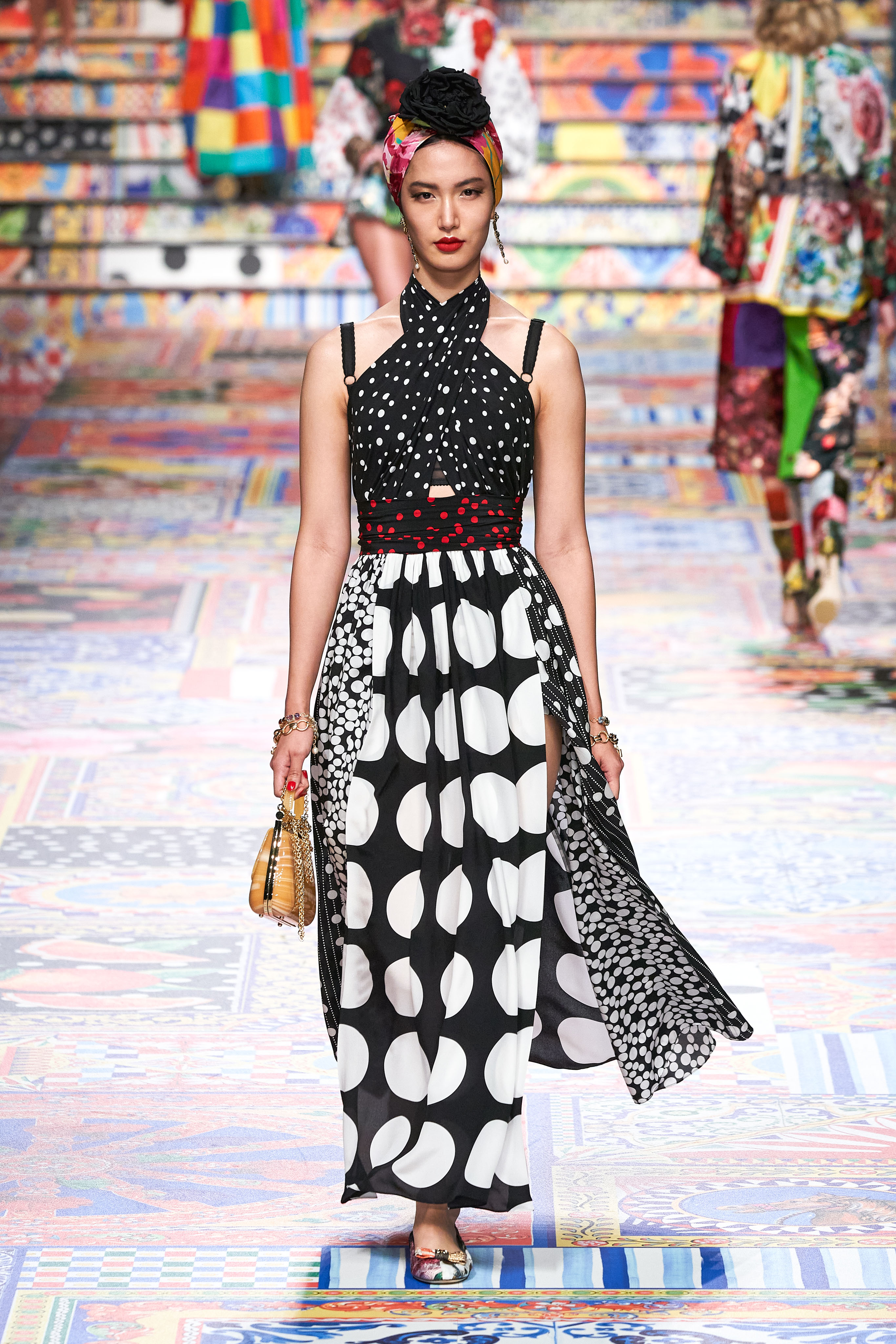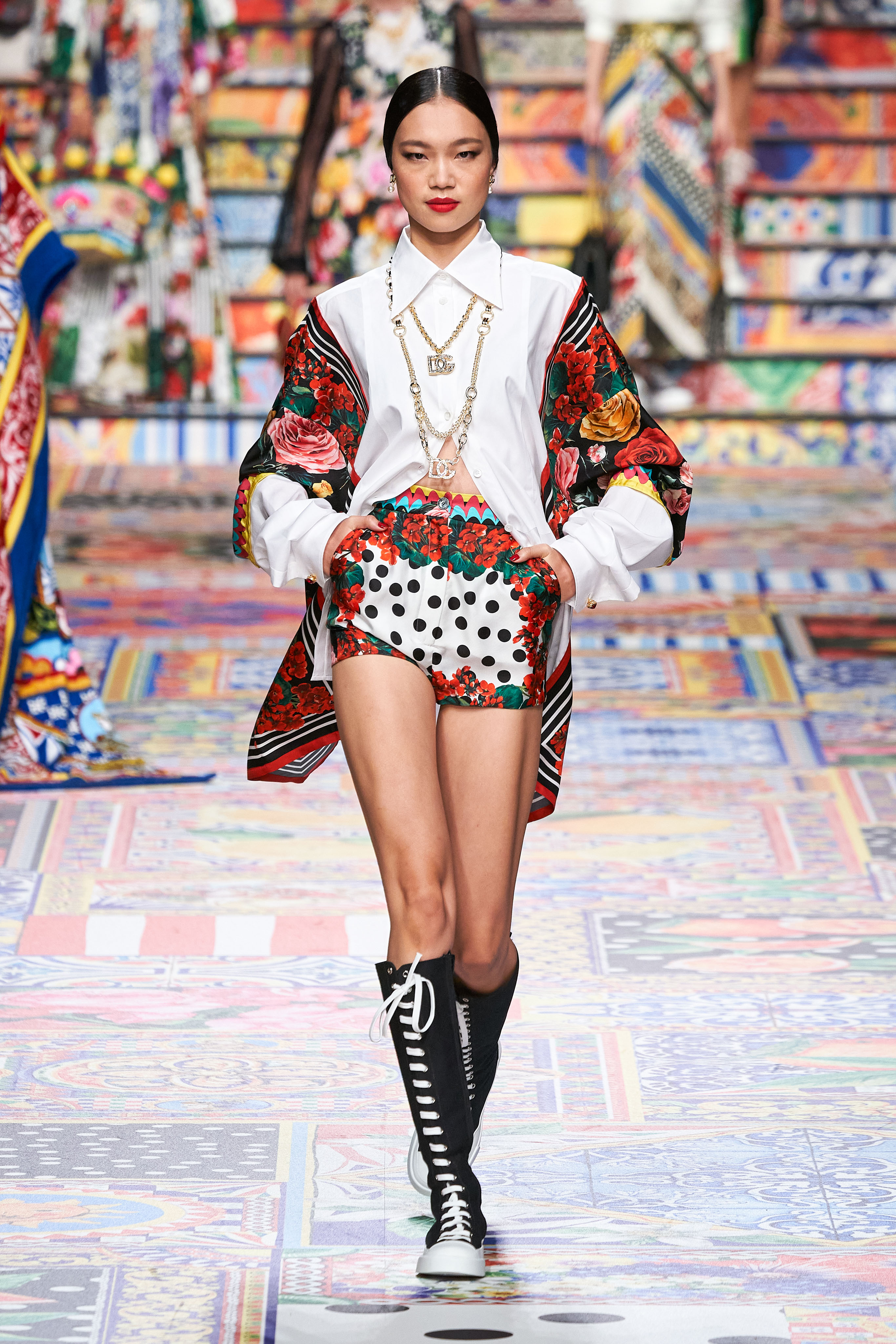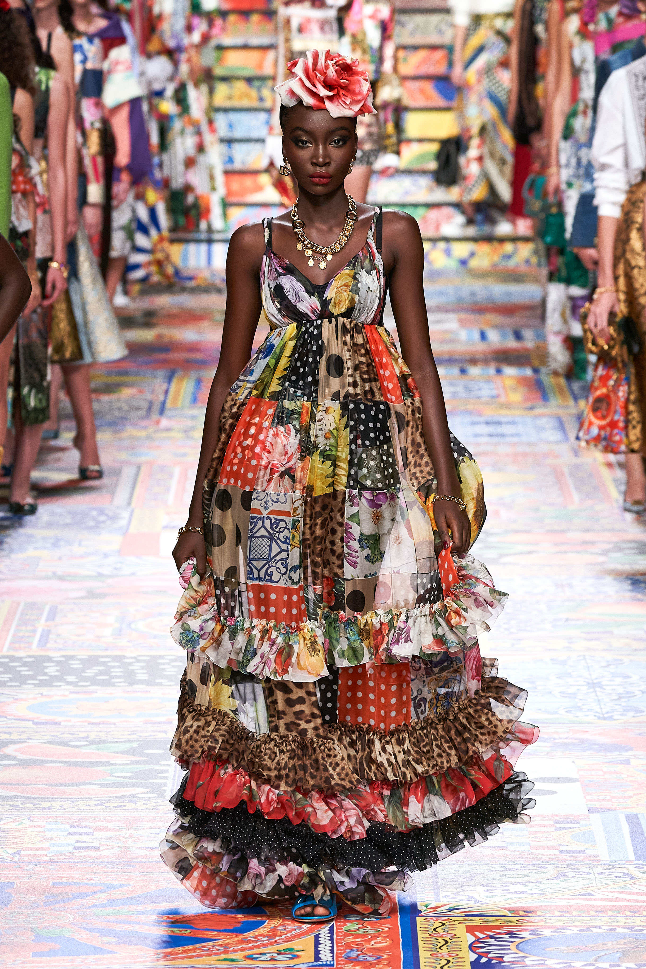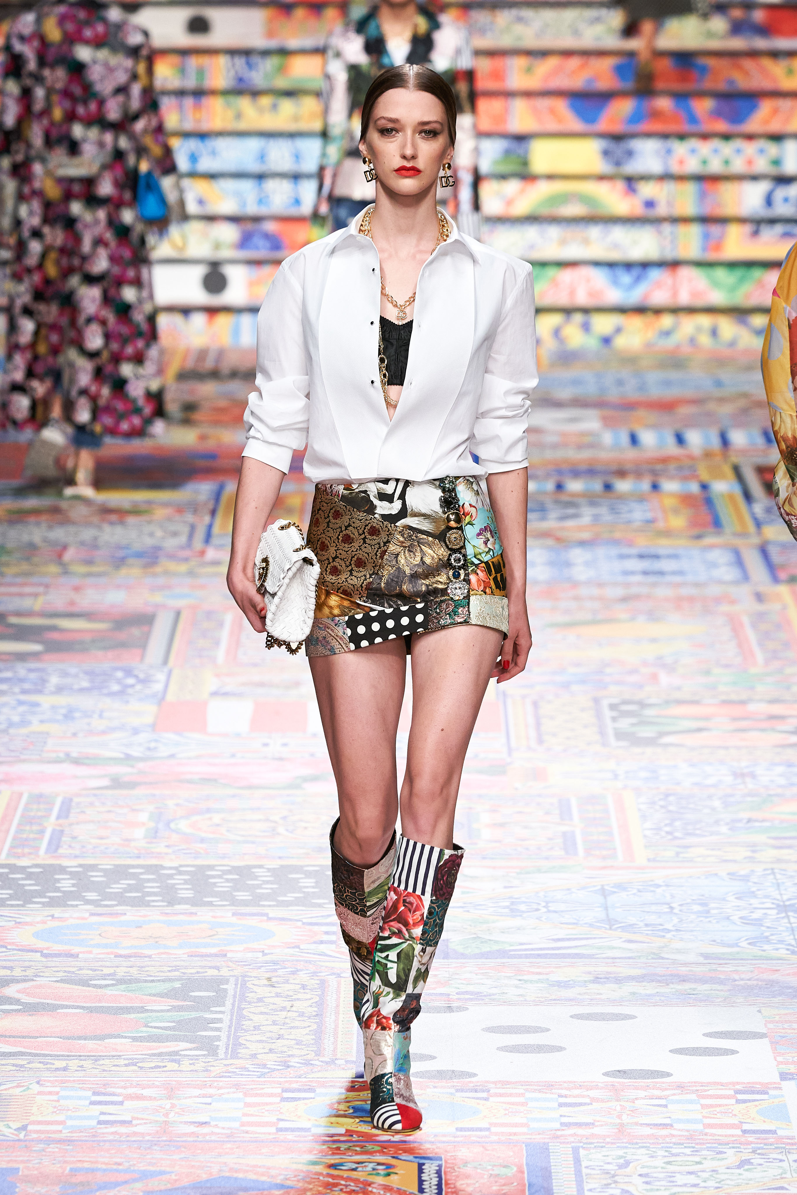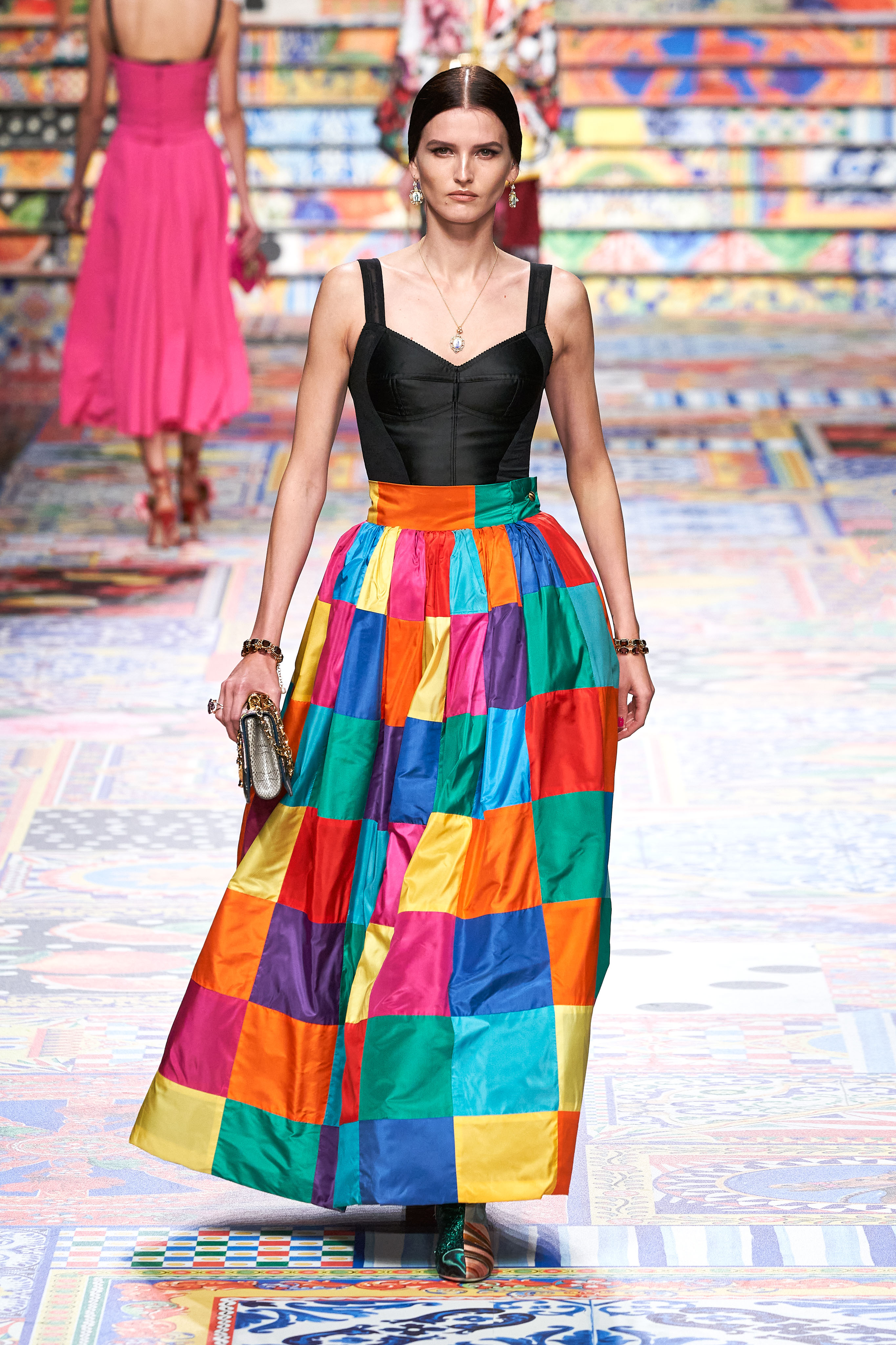Доменико Дольче и Стефано Габбана в своей работе над весенней коллекцией, так же как и другие дизайнеры, размышляли над родной землей, домом и необходимостью находить баланс во время пандемии — как внутренний, так и производственный. Так, вся коллекция создана из текстильных остатков прошлых сезонов, а костюмы-тройки, плащи, юбки и даже джинсы выполнены в технике пэчворк.