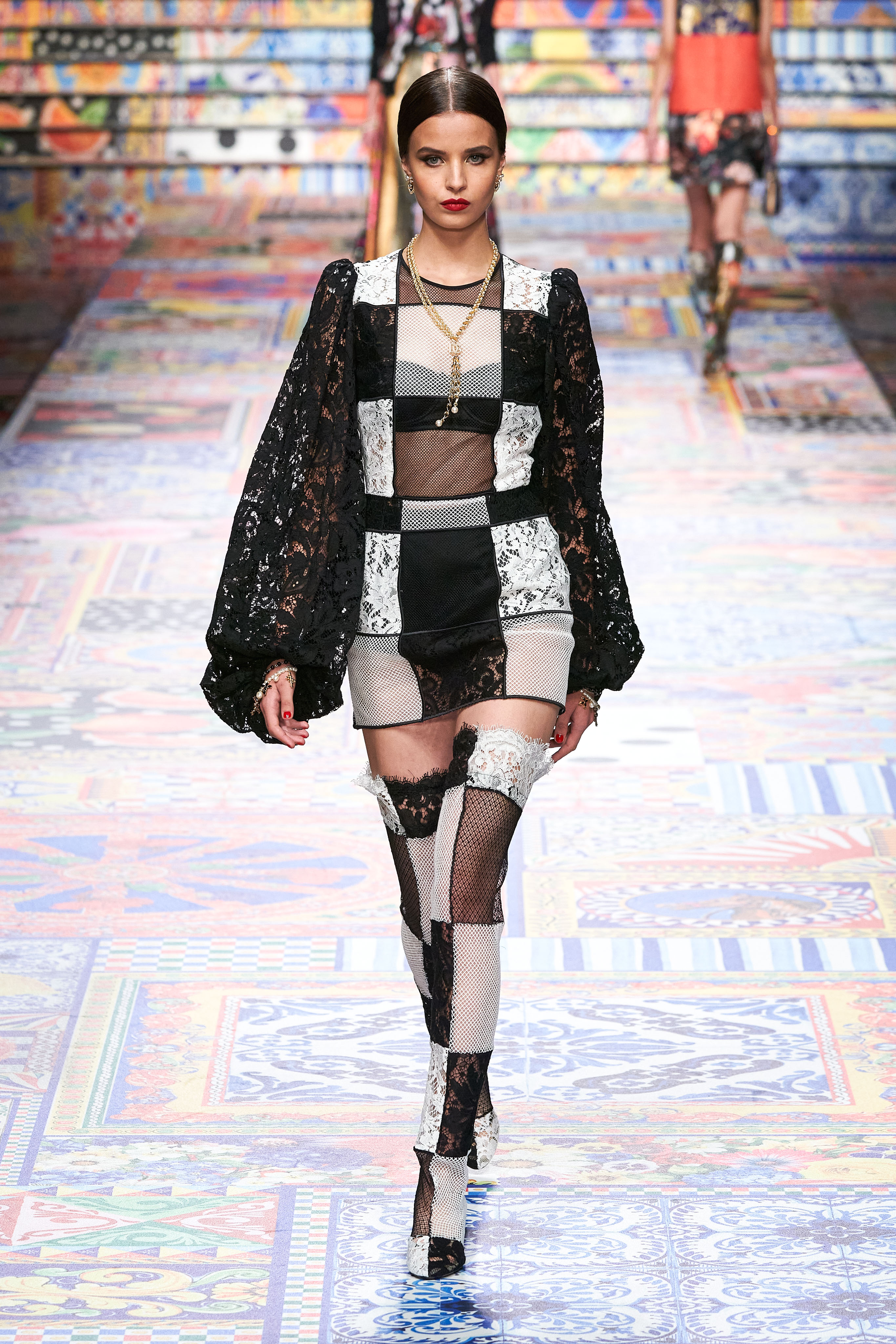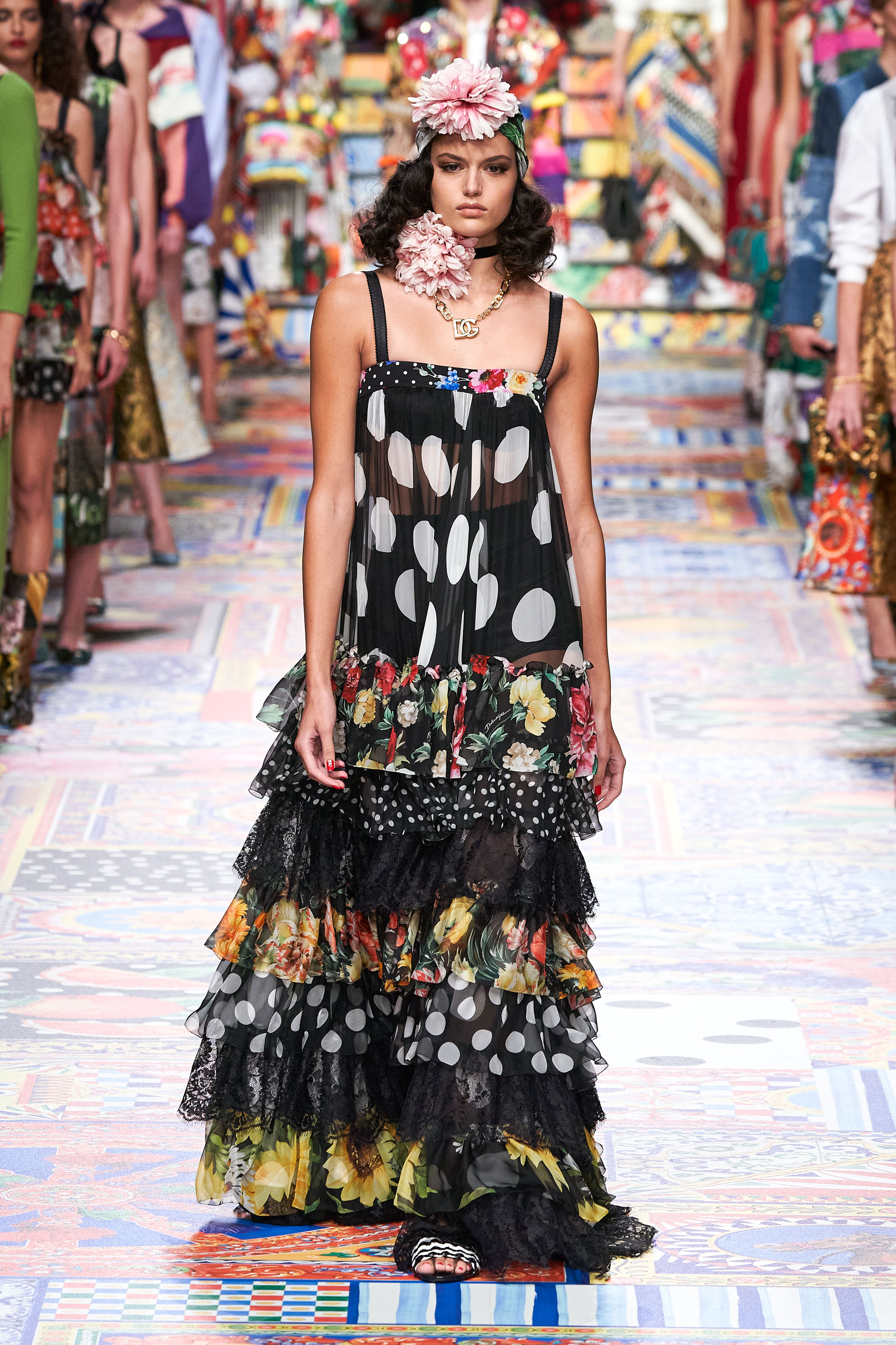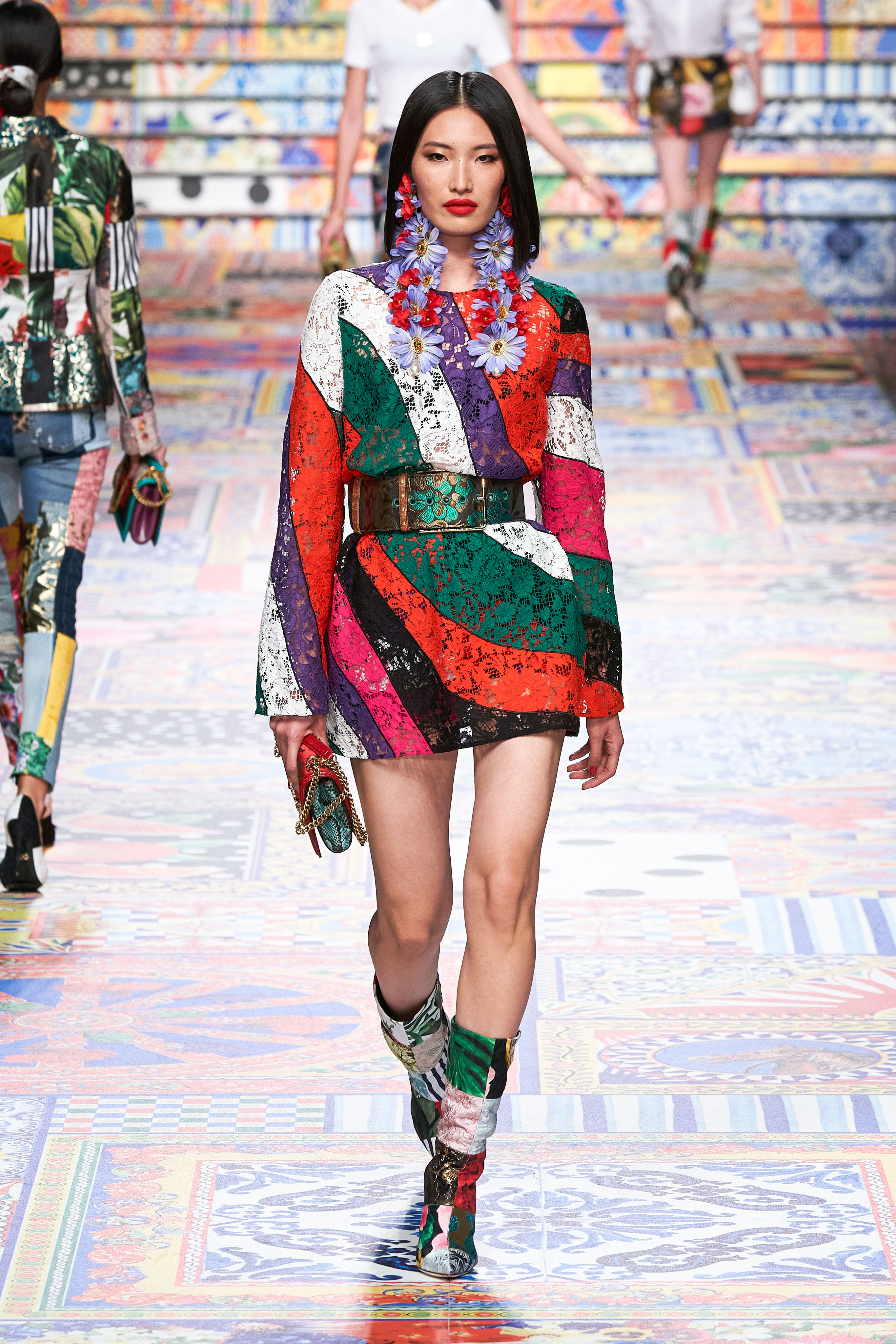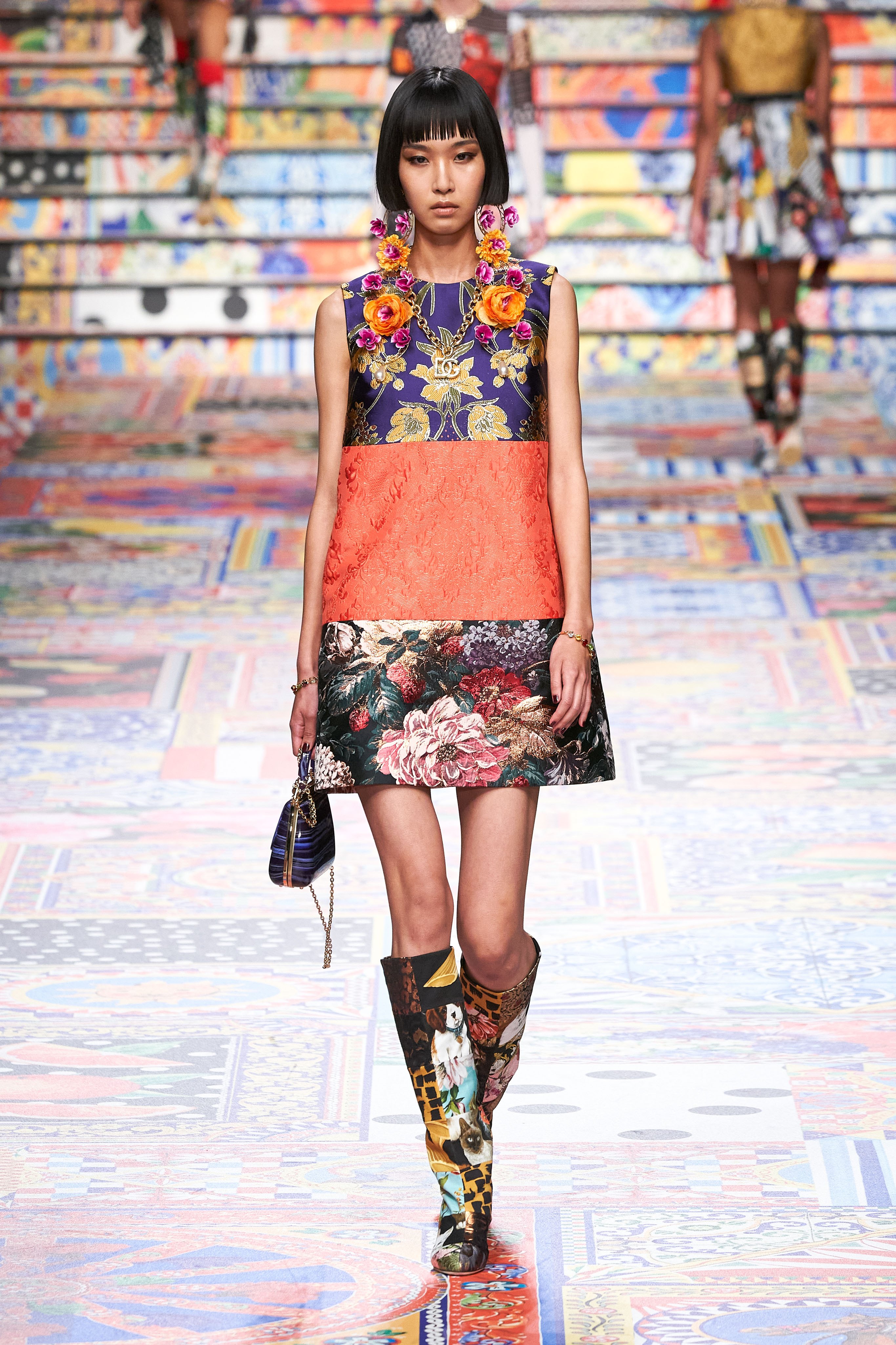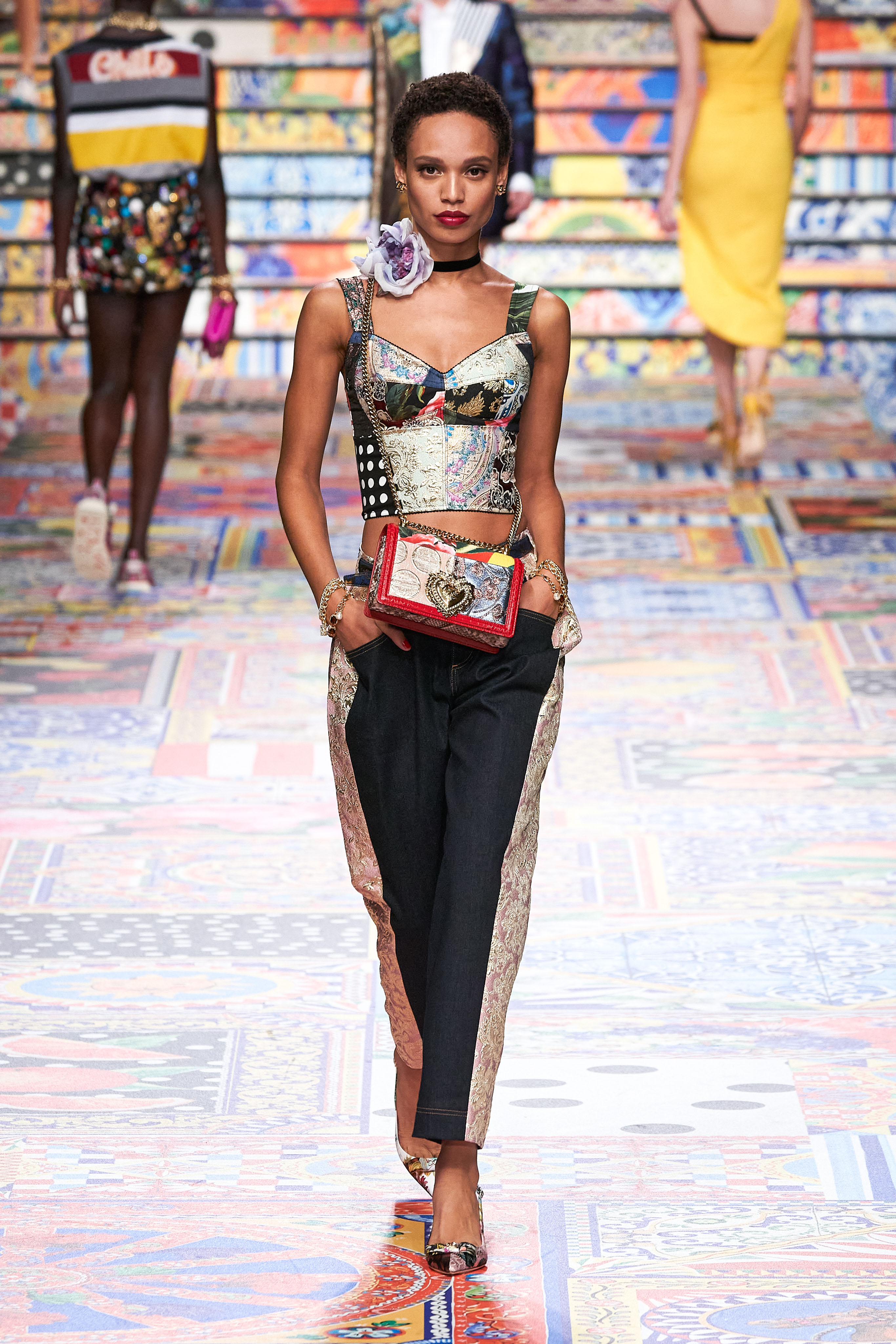 Доменико Дольче и Стефано Габбана в своей работе над весенней коллекцией, так же как и другие дизайнеры, размышляли над родной землей, домом и необходимостью находить баланс во время пандемии — как внутренний, так и производственный. Так, вся коллекция создана из текстильных остатков прошлых сезонов, а костюмы-тройки, плащи, юбки и даже джинсы выполнены в технике пэчворк.