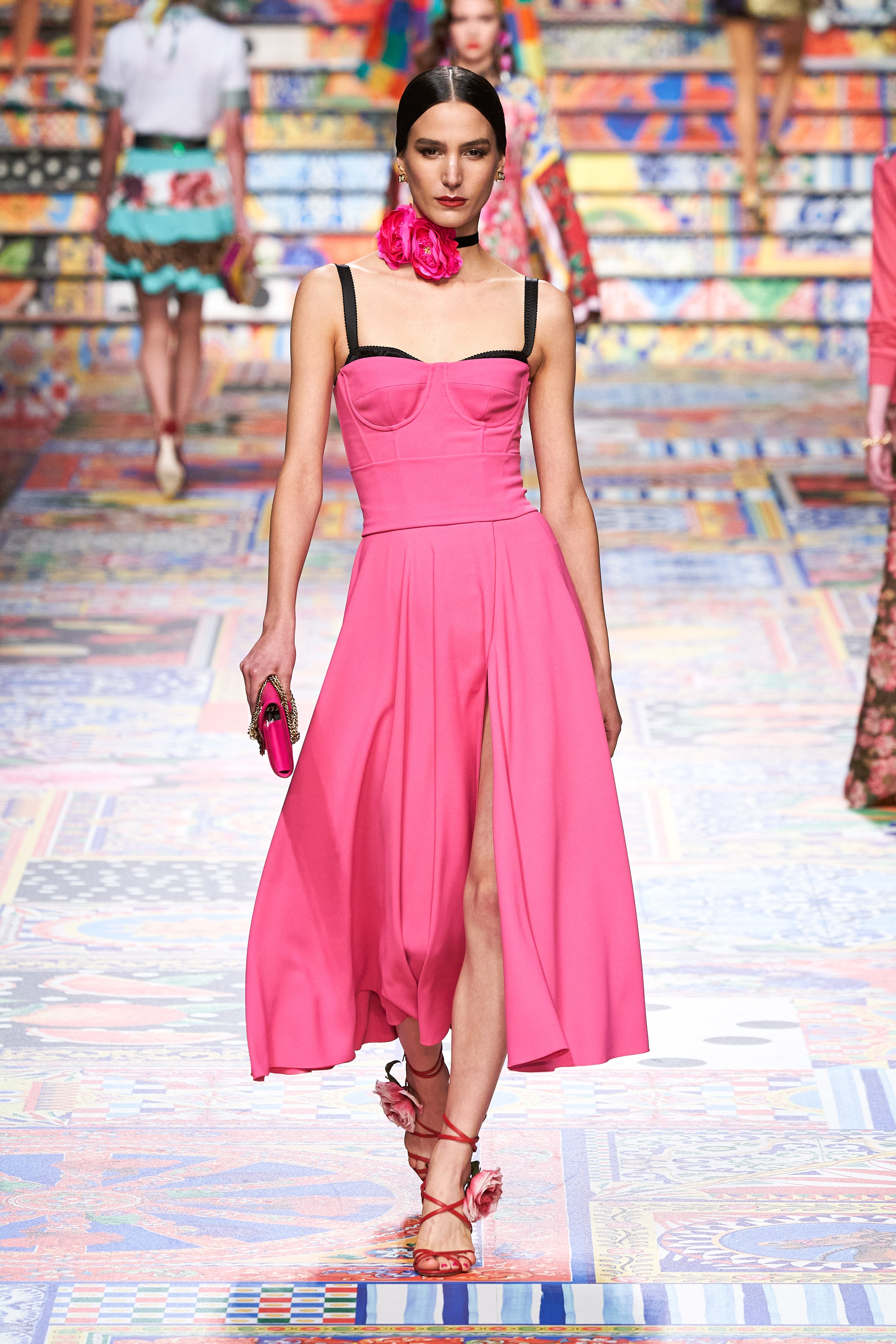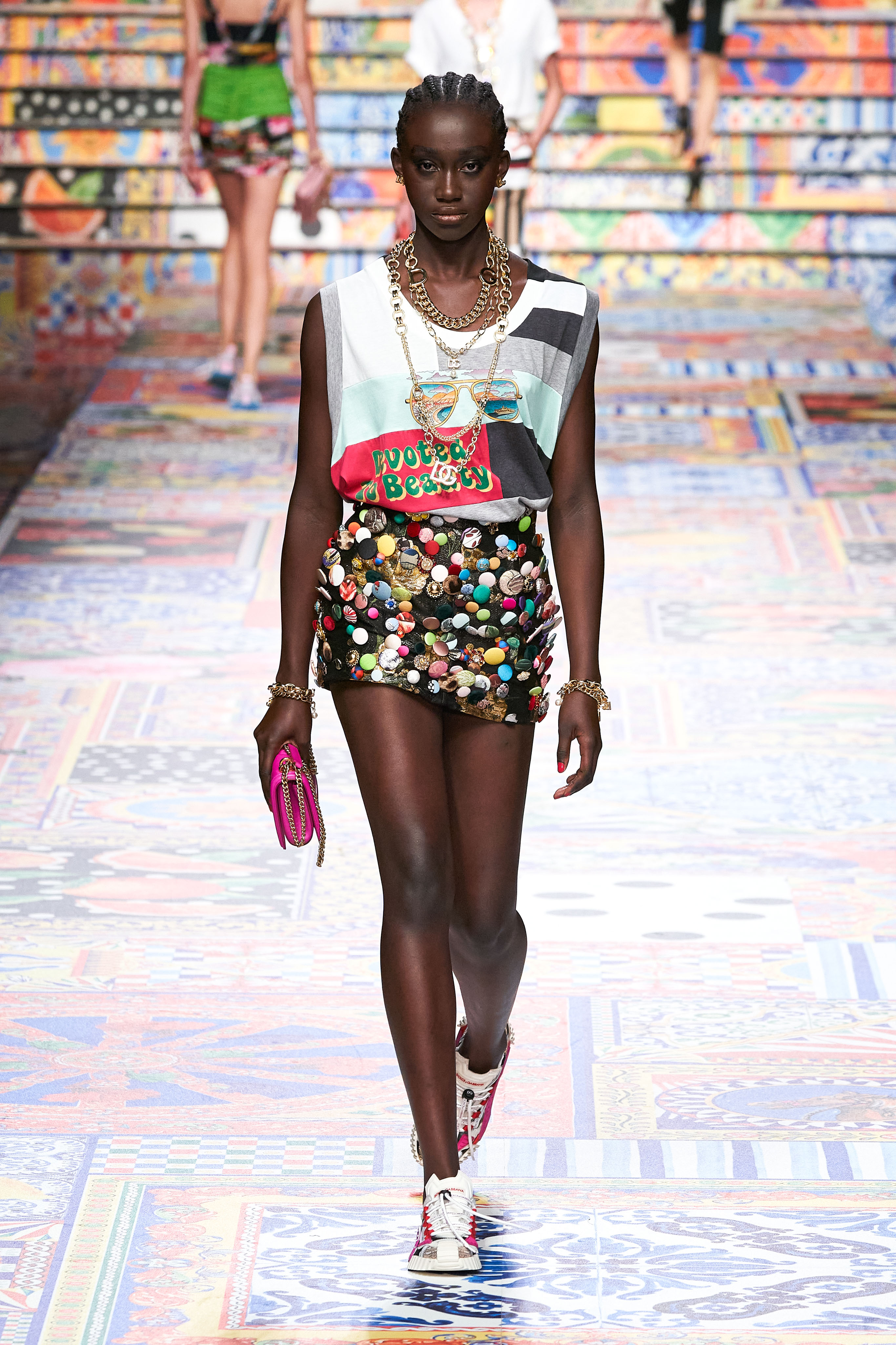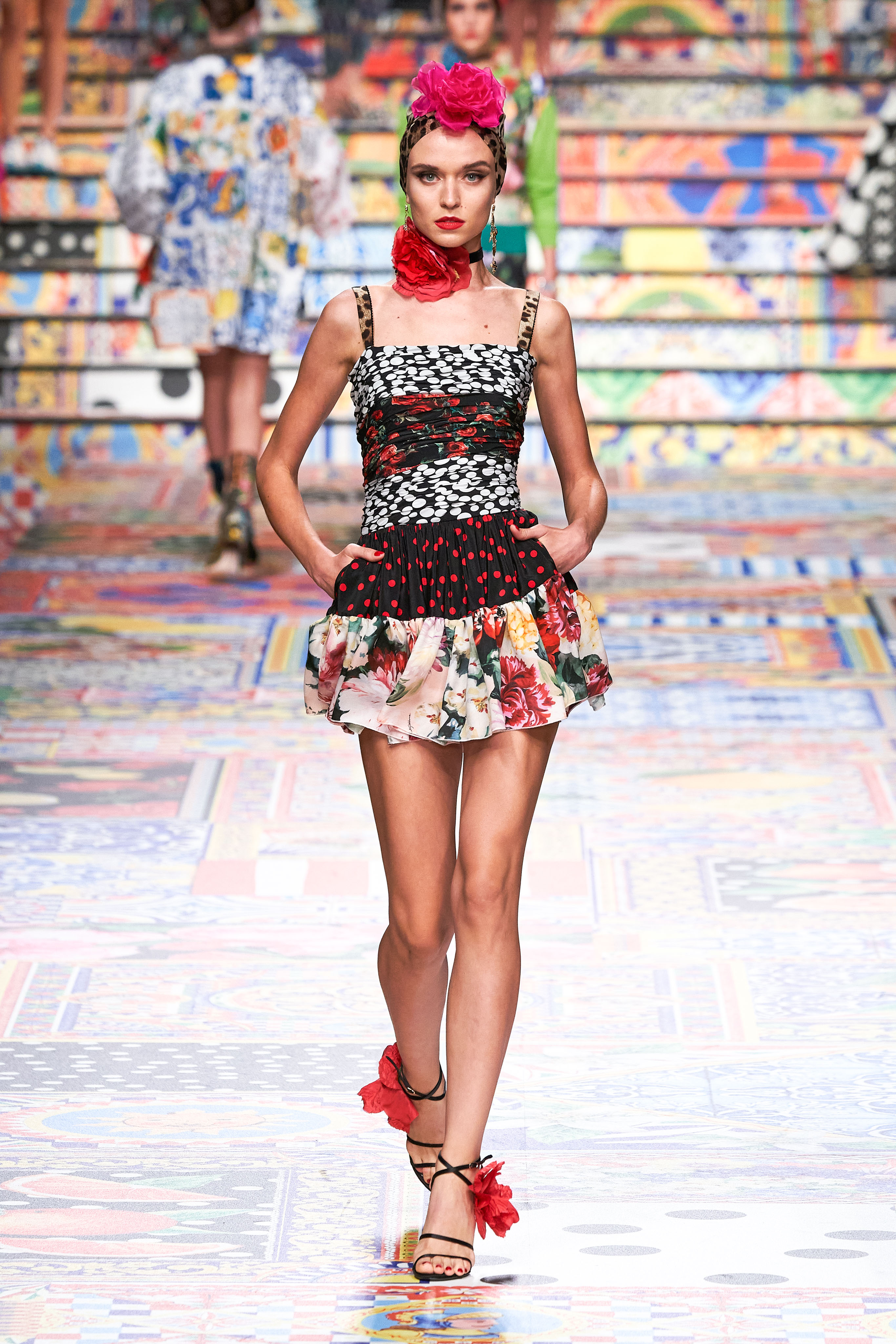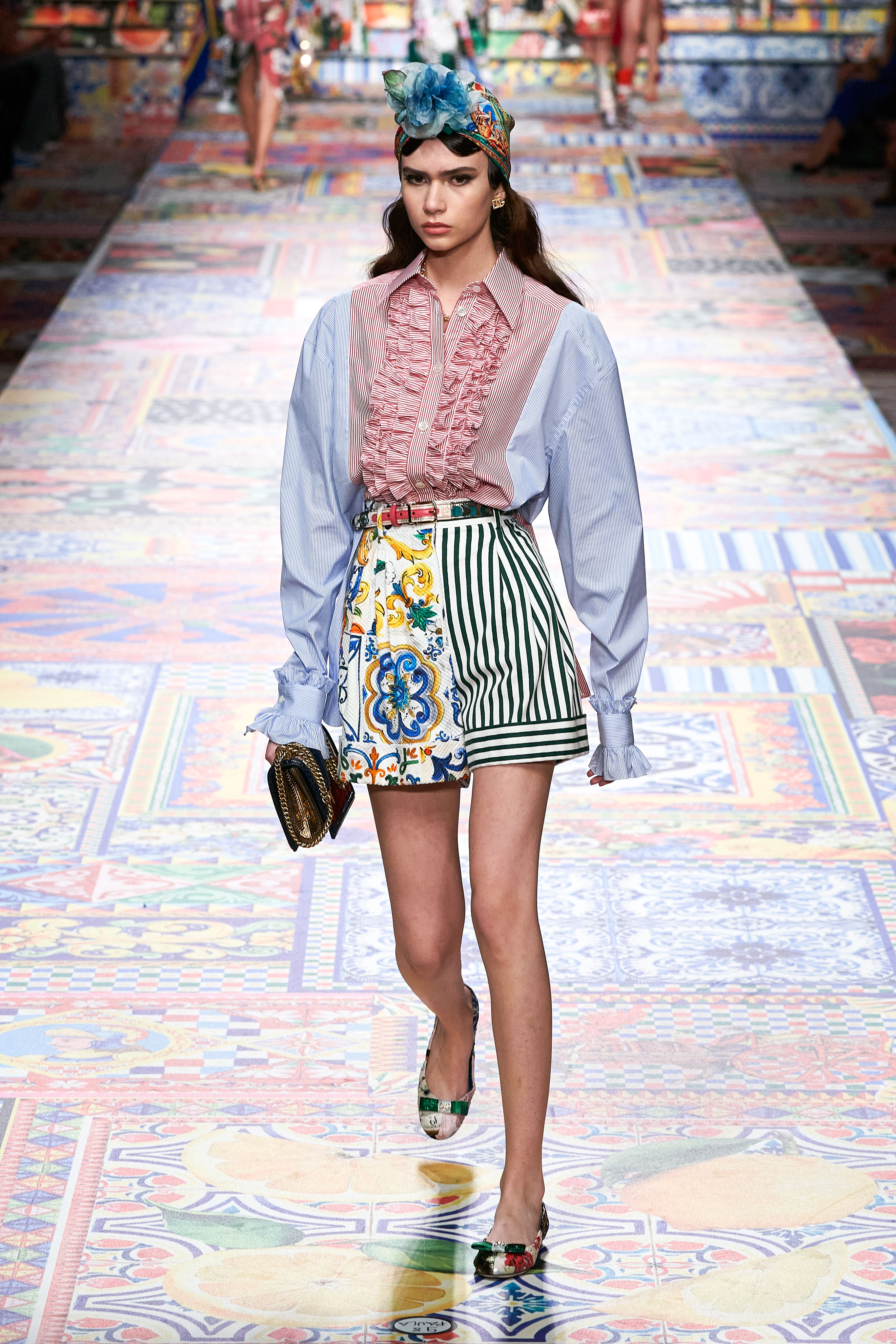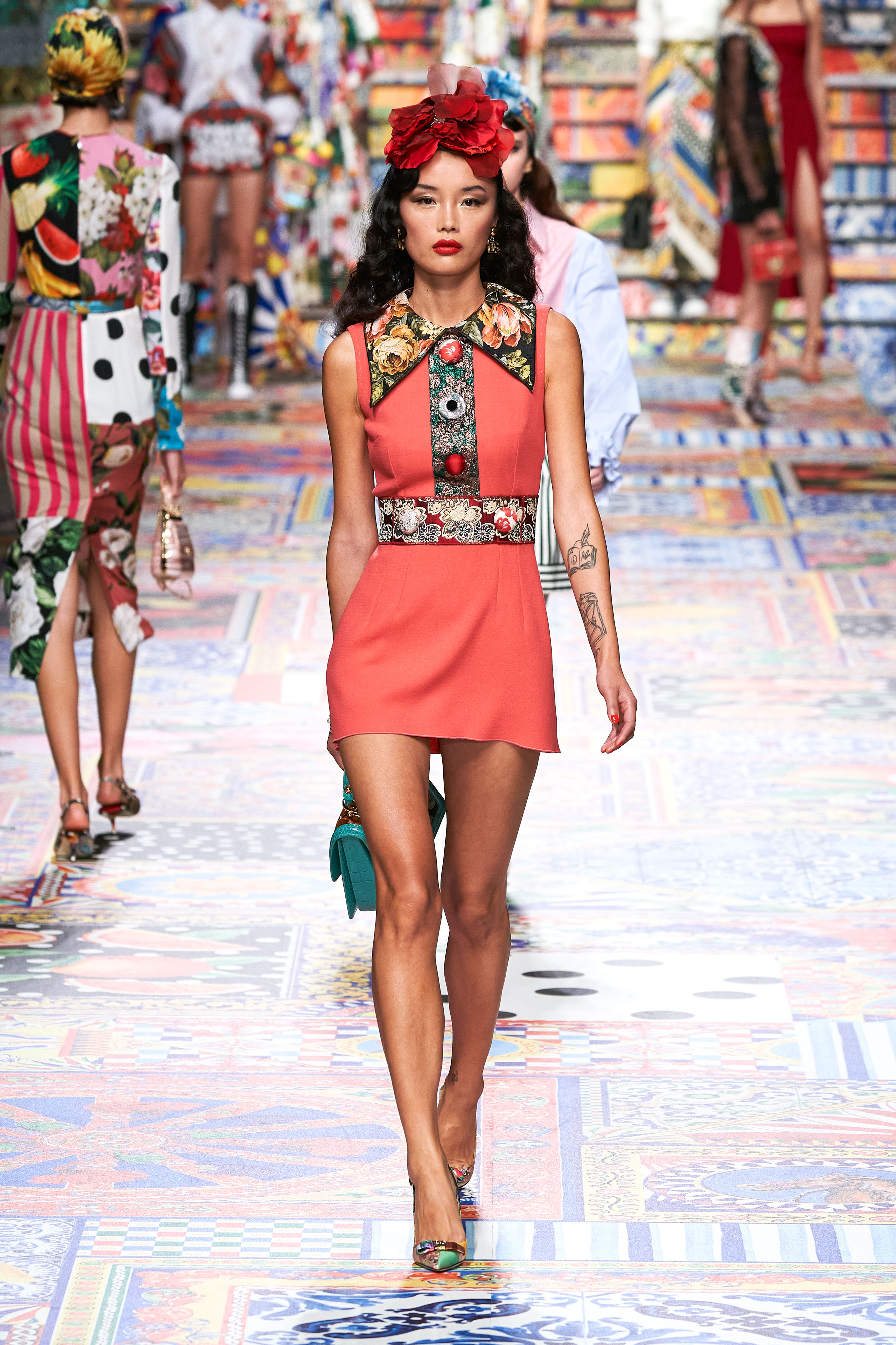 Доменико Дольче и Стефано Габбана в своей работе над весенней коллекцией, так же как и другие дизайнеры, размышляли над родной землей, домом и необходимостью находить баланс во время пандемии — как внутренний, так и производственный. Так, вся коллекция создана из текстильных остатков прошлых сезонов, а костюмы-тройки, плащи, юбки и даже джинсы выполнены в технике пэчворк.