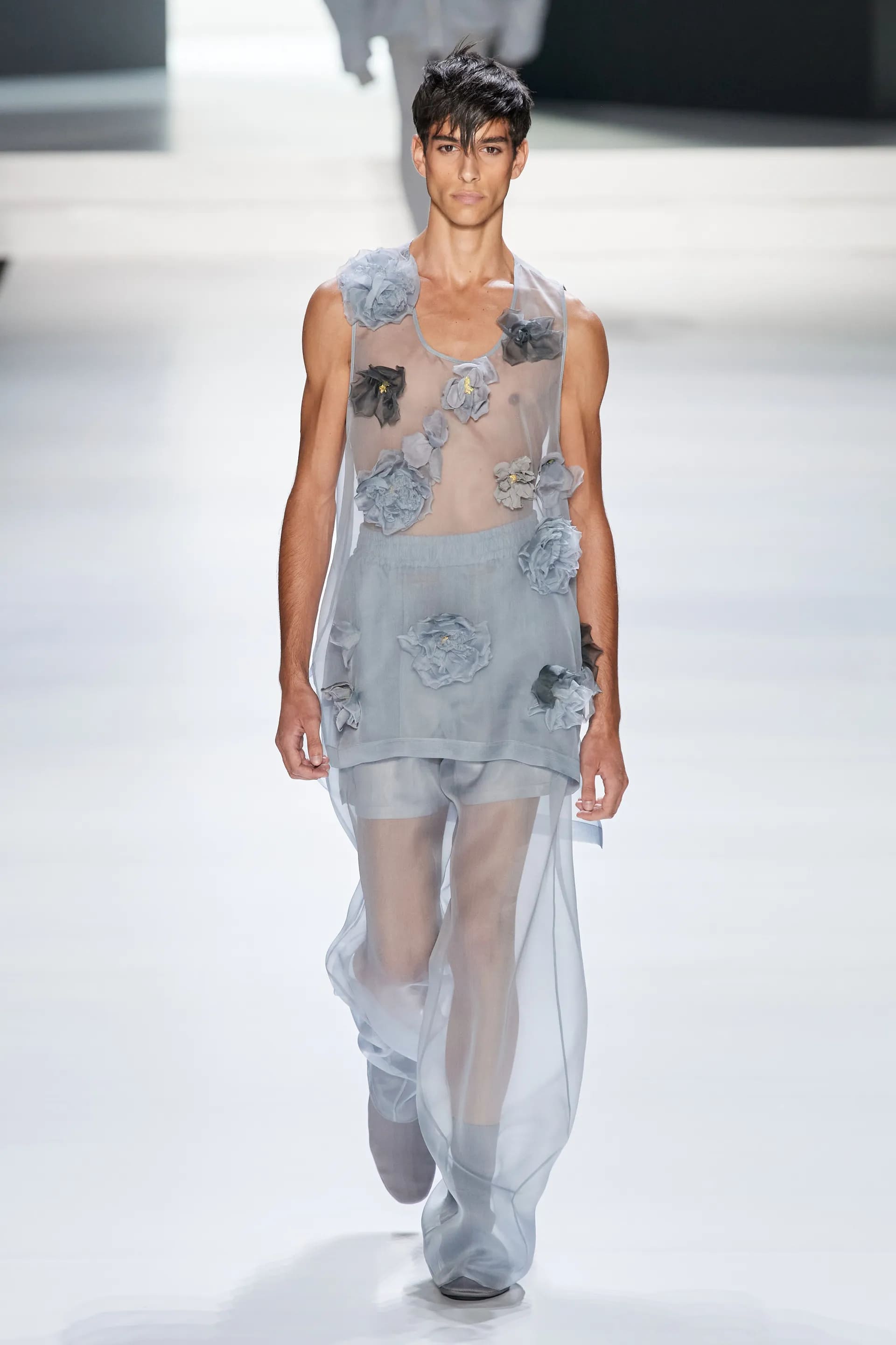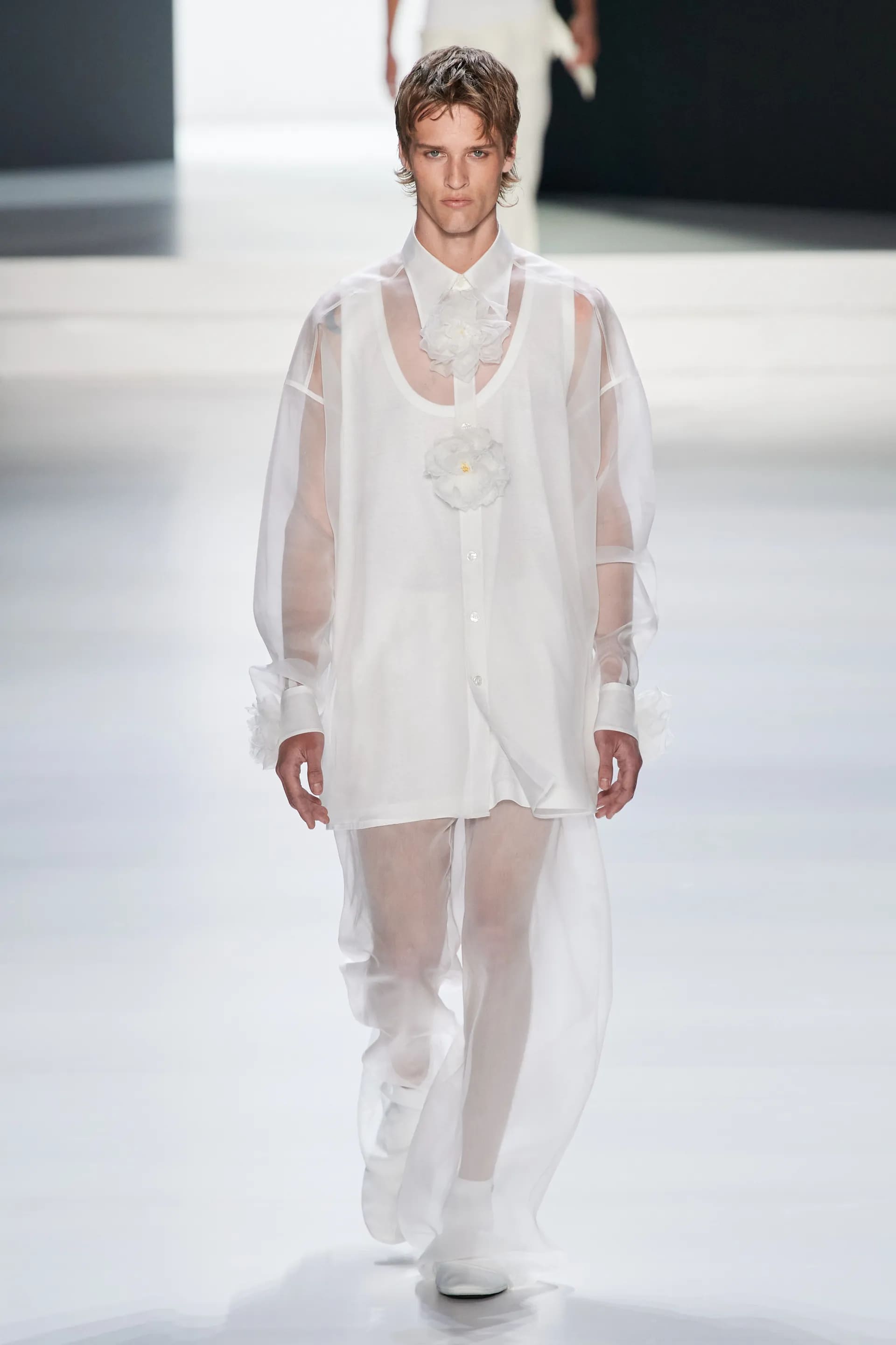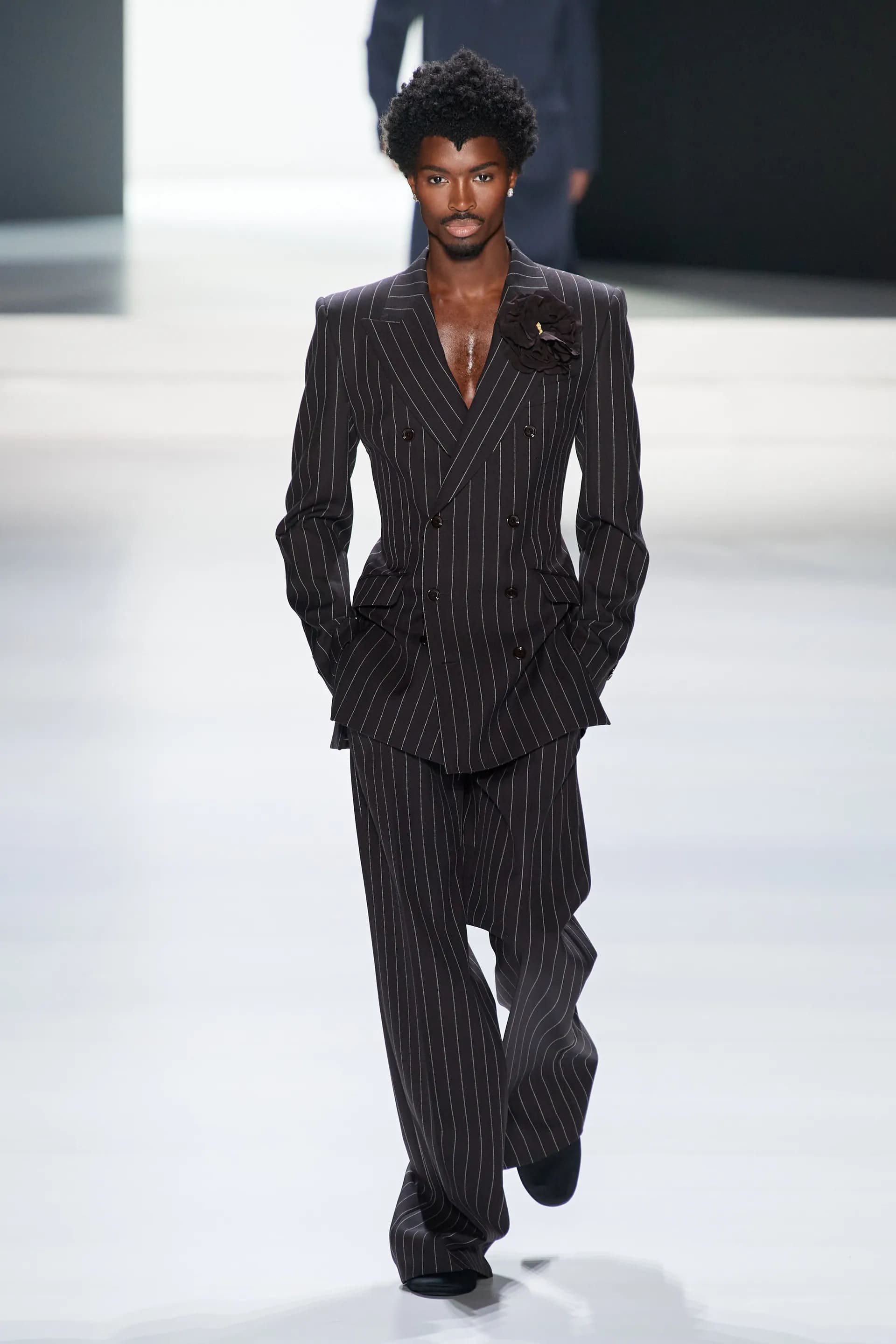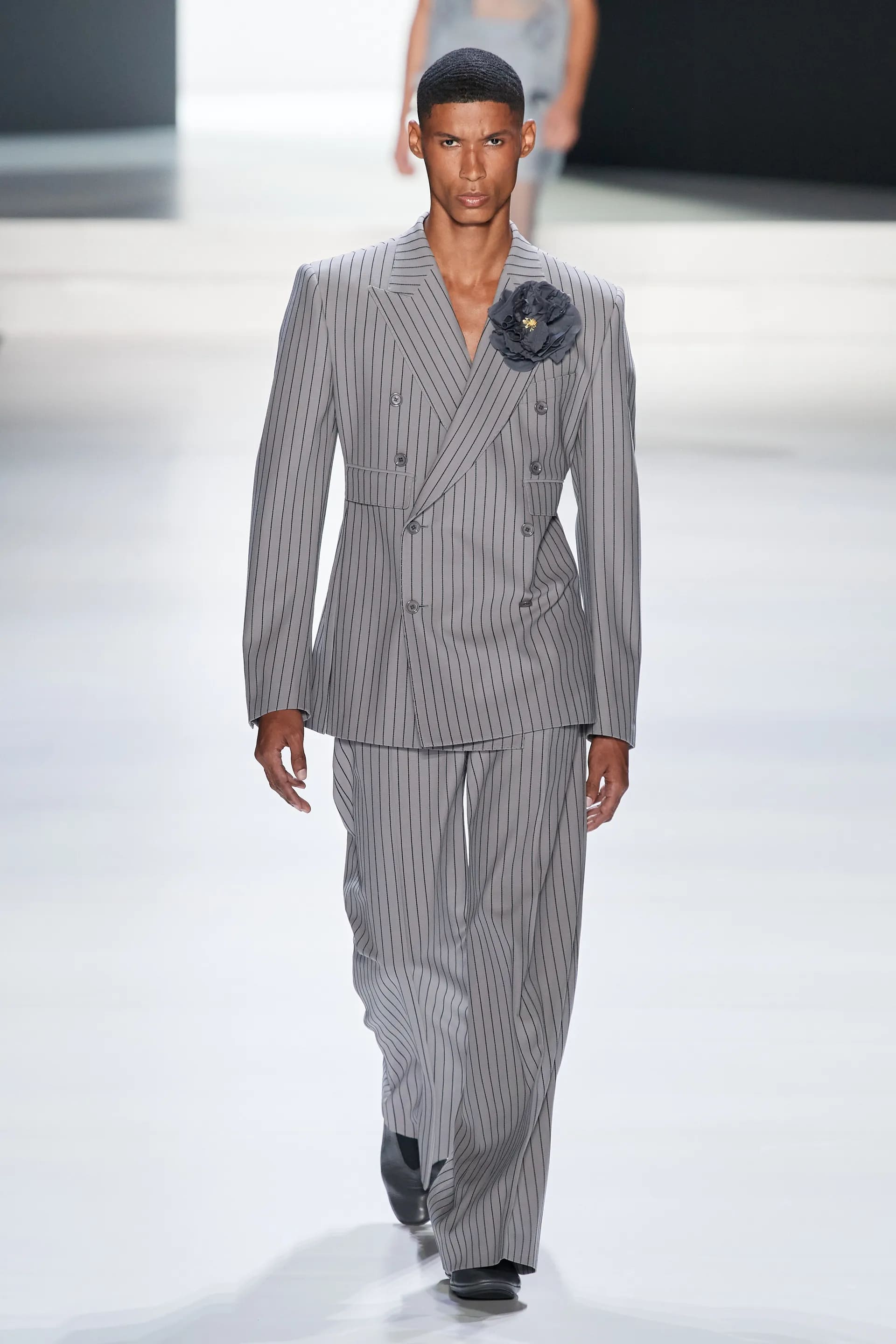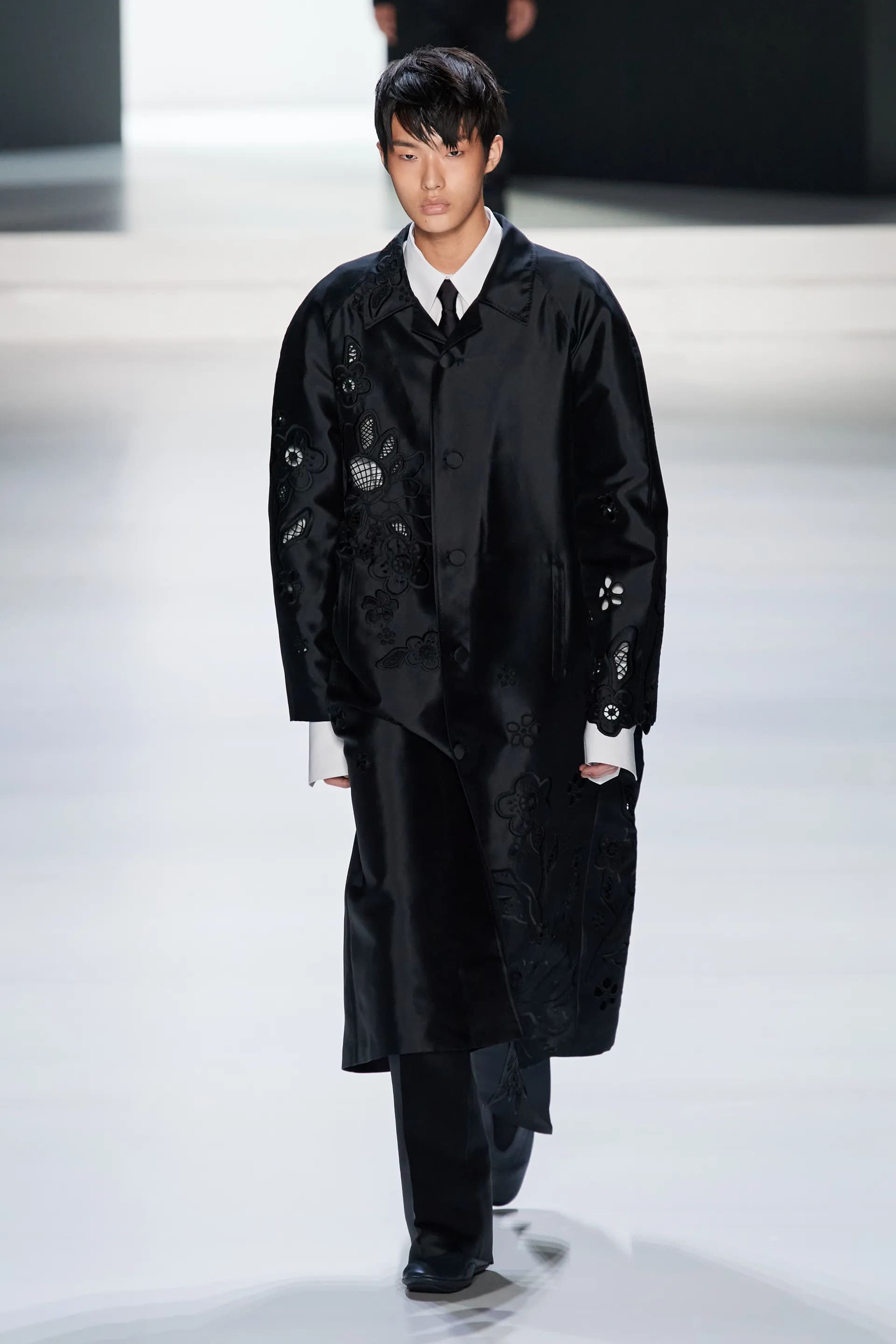 Під центральний саундтрек Anyma — The Answer на подіумі з’явилися ансамблі, які підкреслюють чоловічий силует структурованими об’ємами та техніками багатошаровості. Особливим акцентом стають квіти у формі вишивки, прикрас на лацканах піджаків або комірцях сорочок.