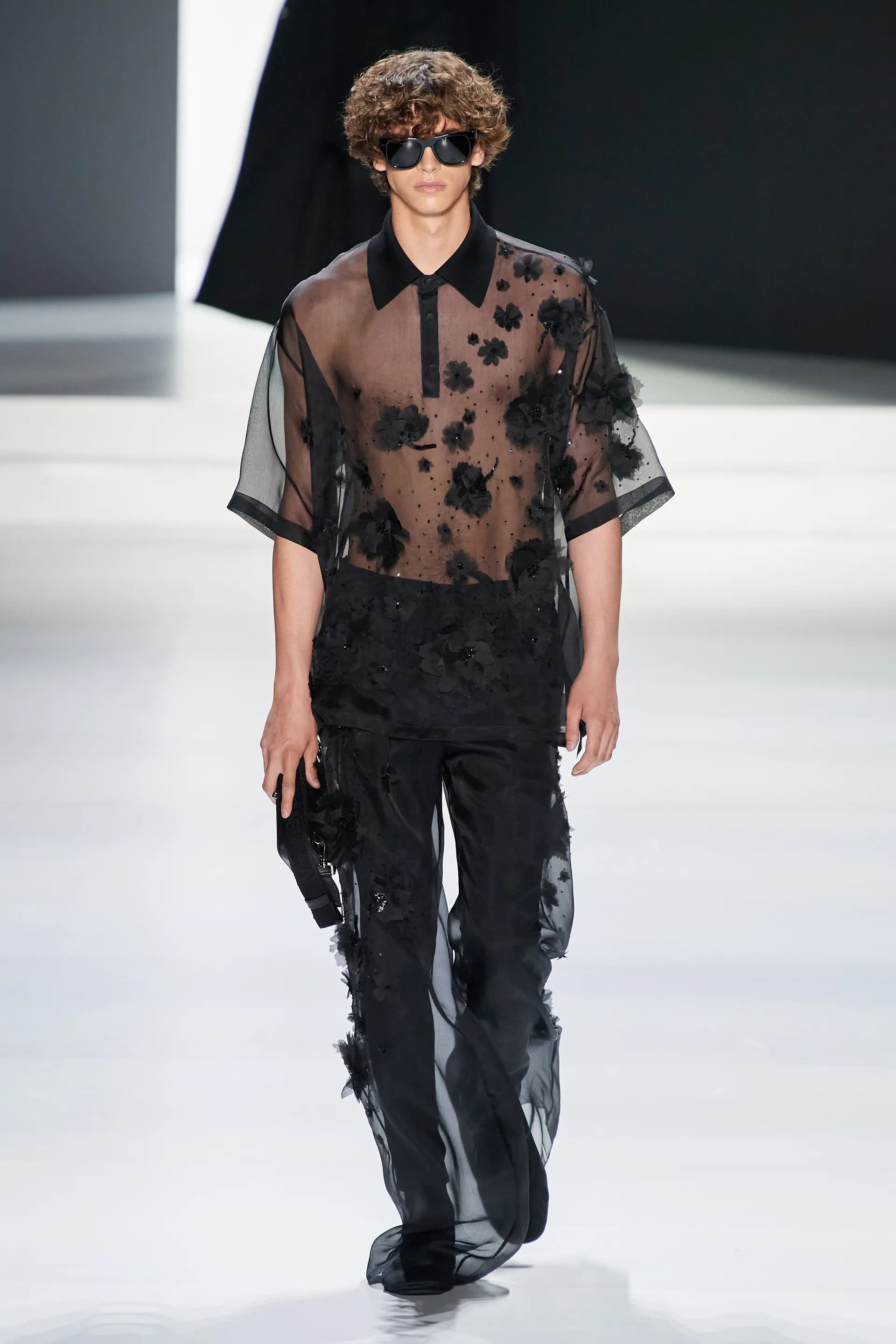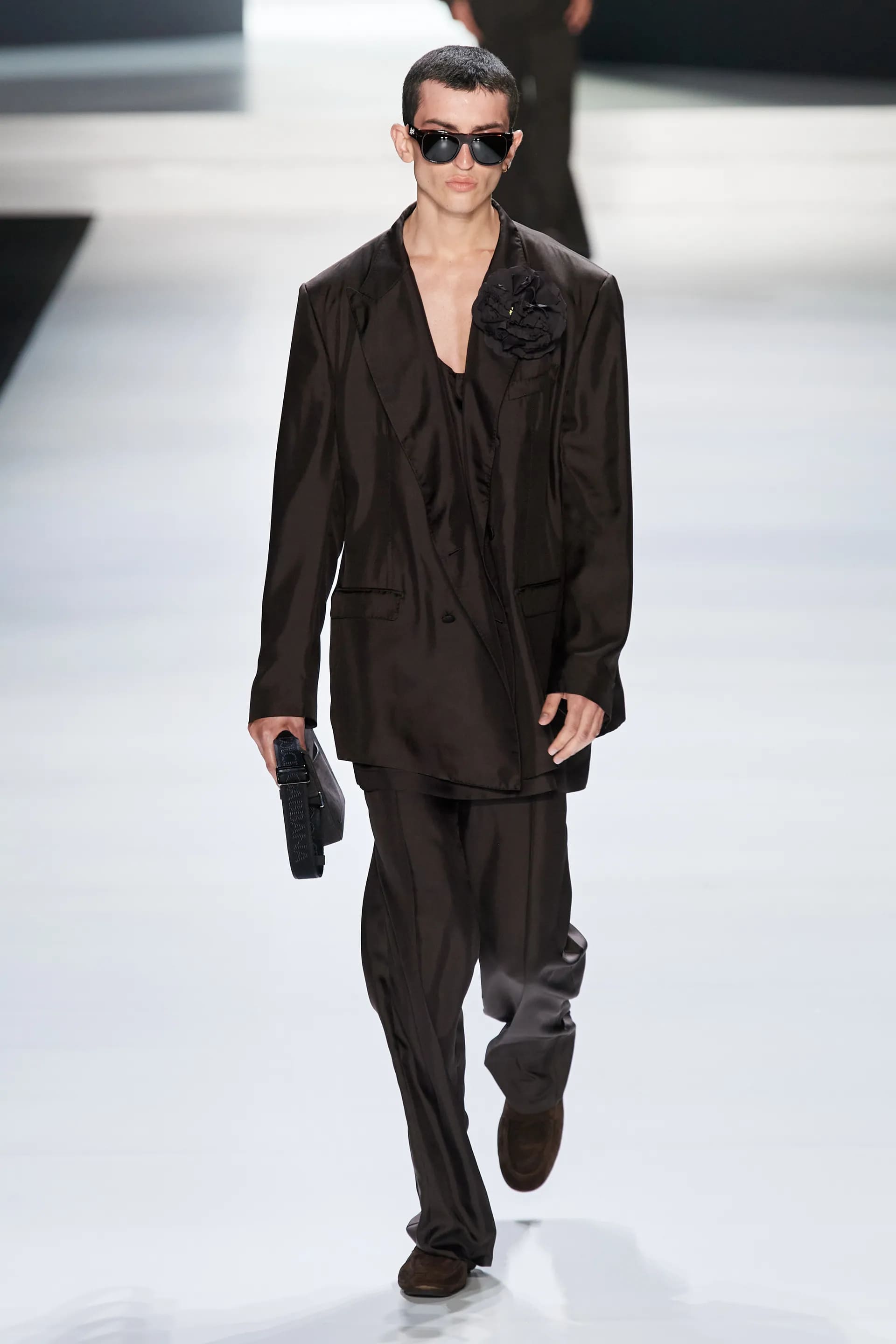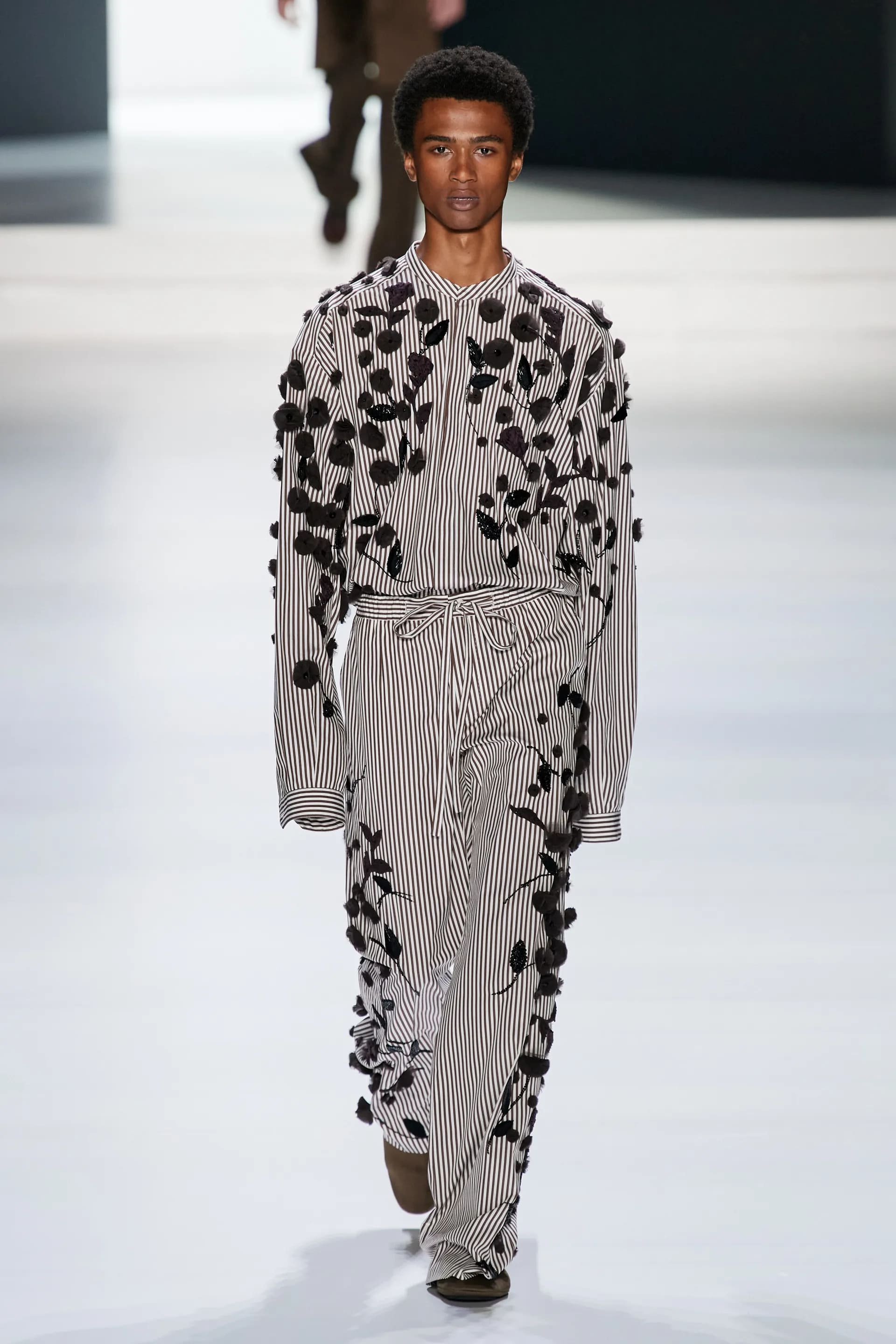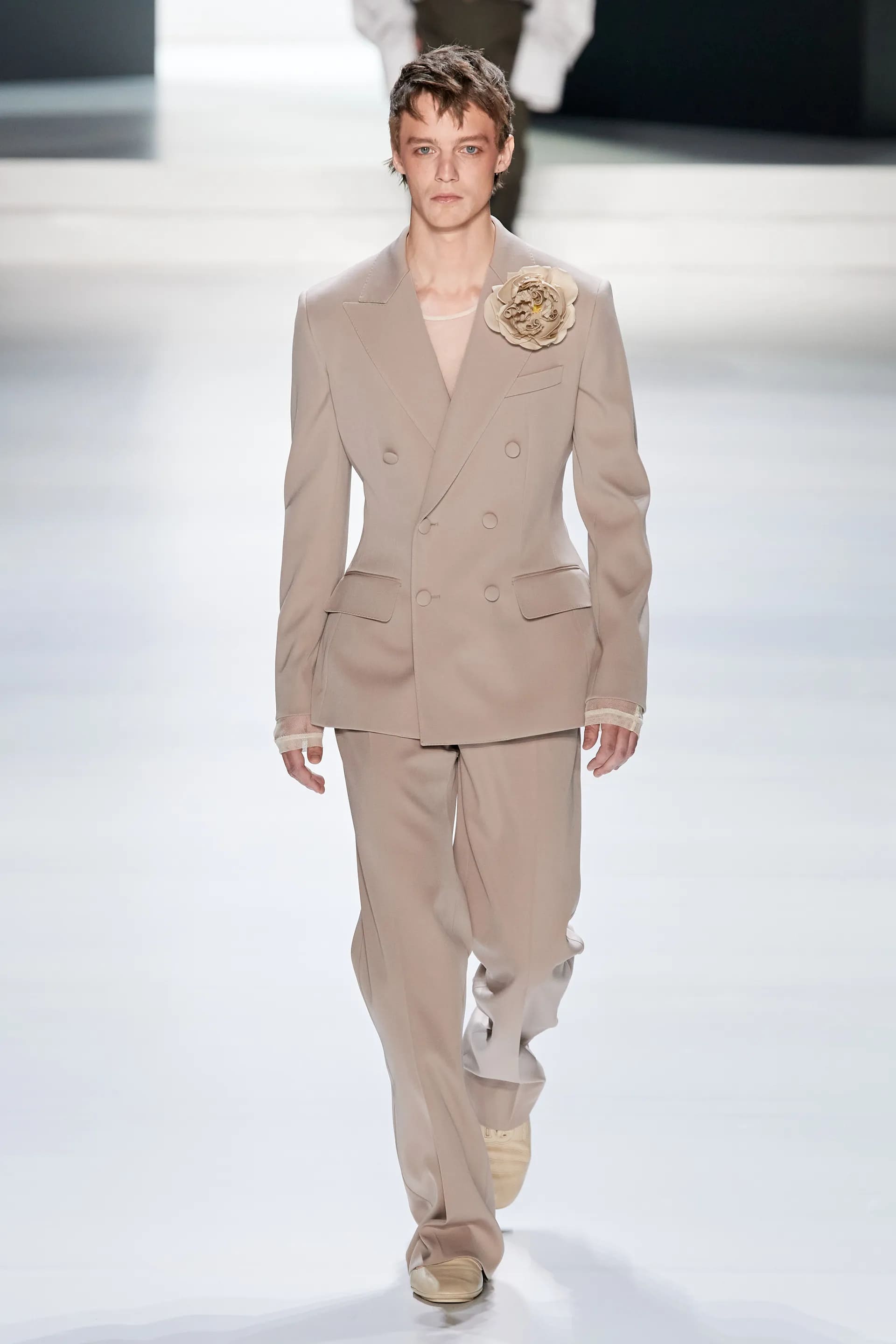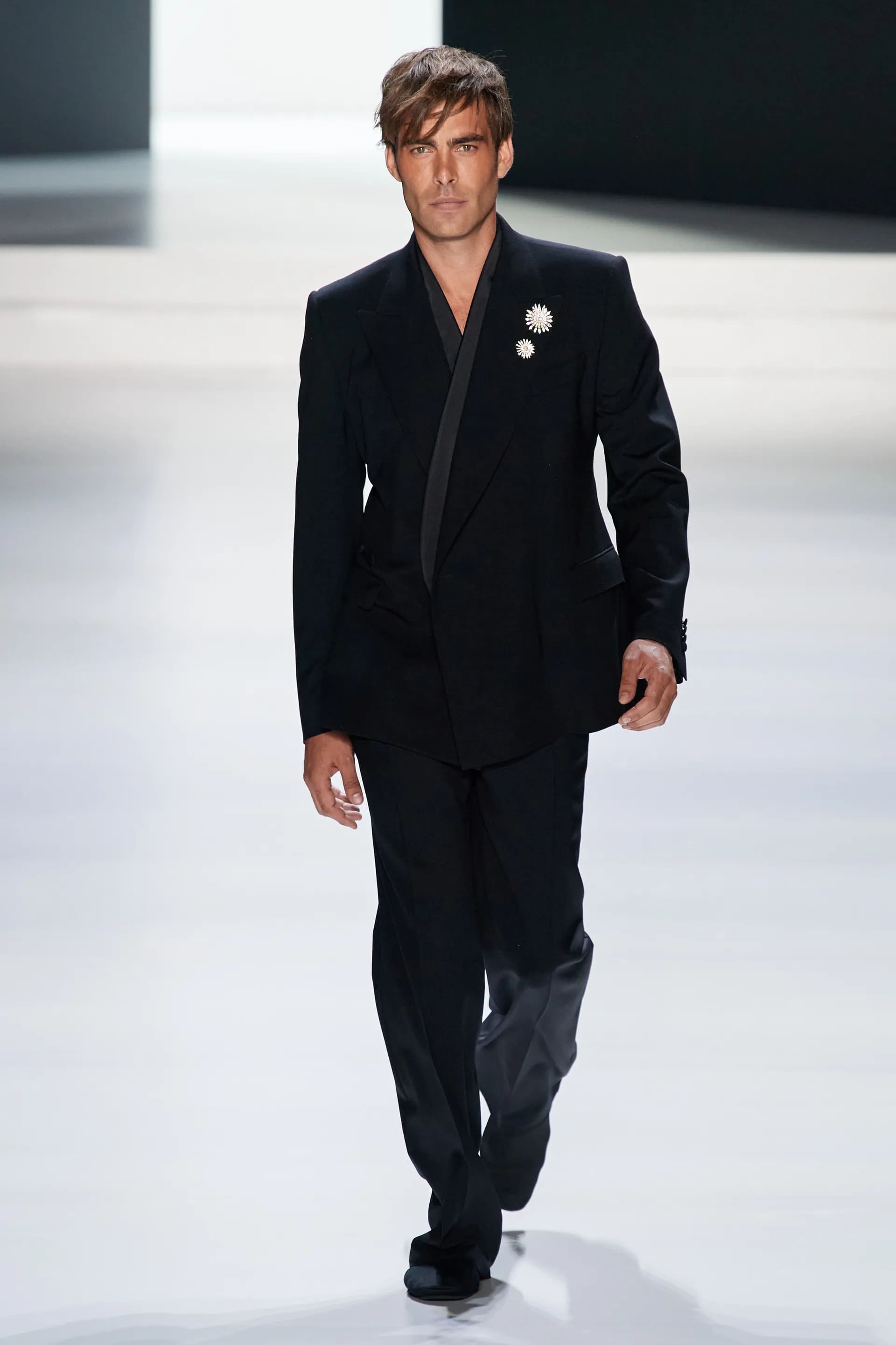 Під центральний саундтрек Anyma — The Answer на подіумі з’явилися ансамблі, які підкреслюють чоловічий силует структурованими об’ємами та техніками багатошаровості. Особливим акцентом стають квіти у формі вишивки, прикрас на лацканах піджаків або комірцях сорочок.