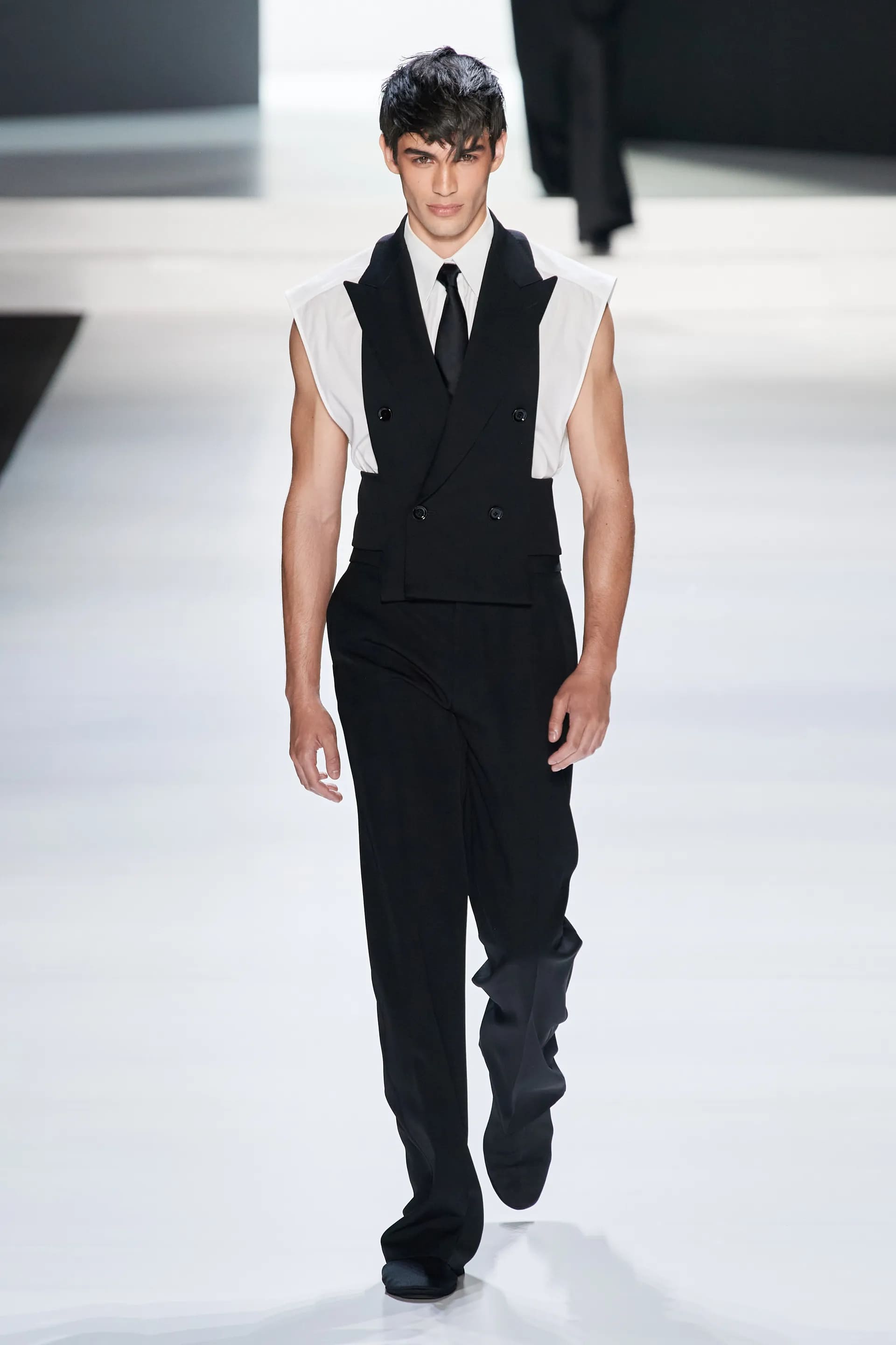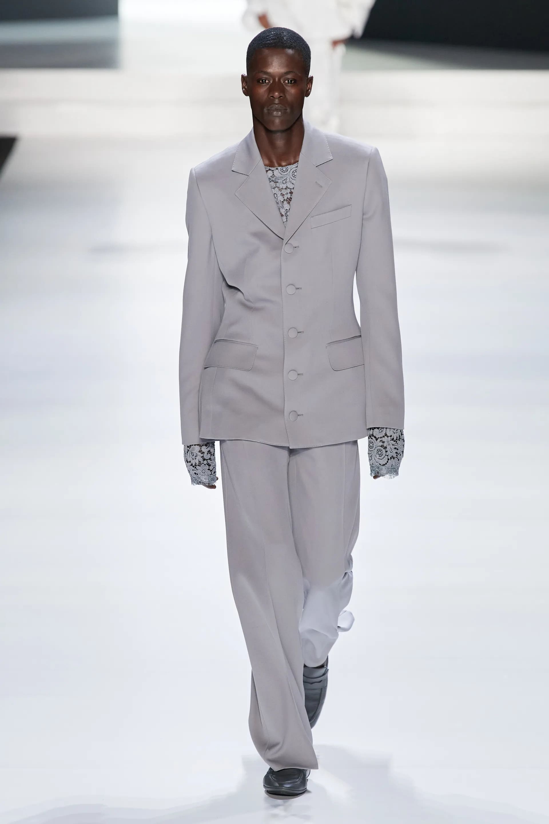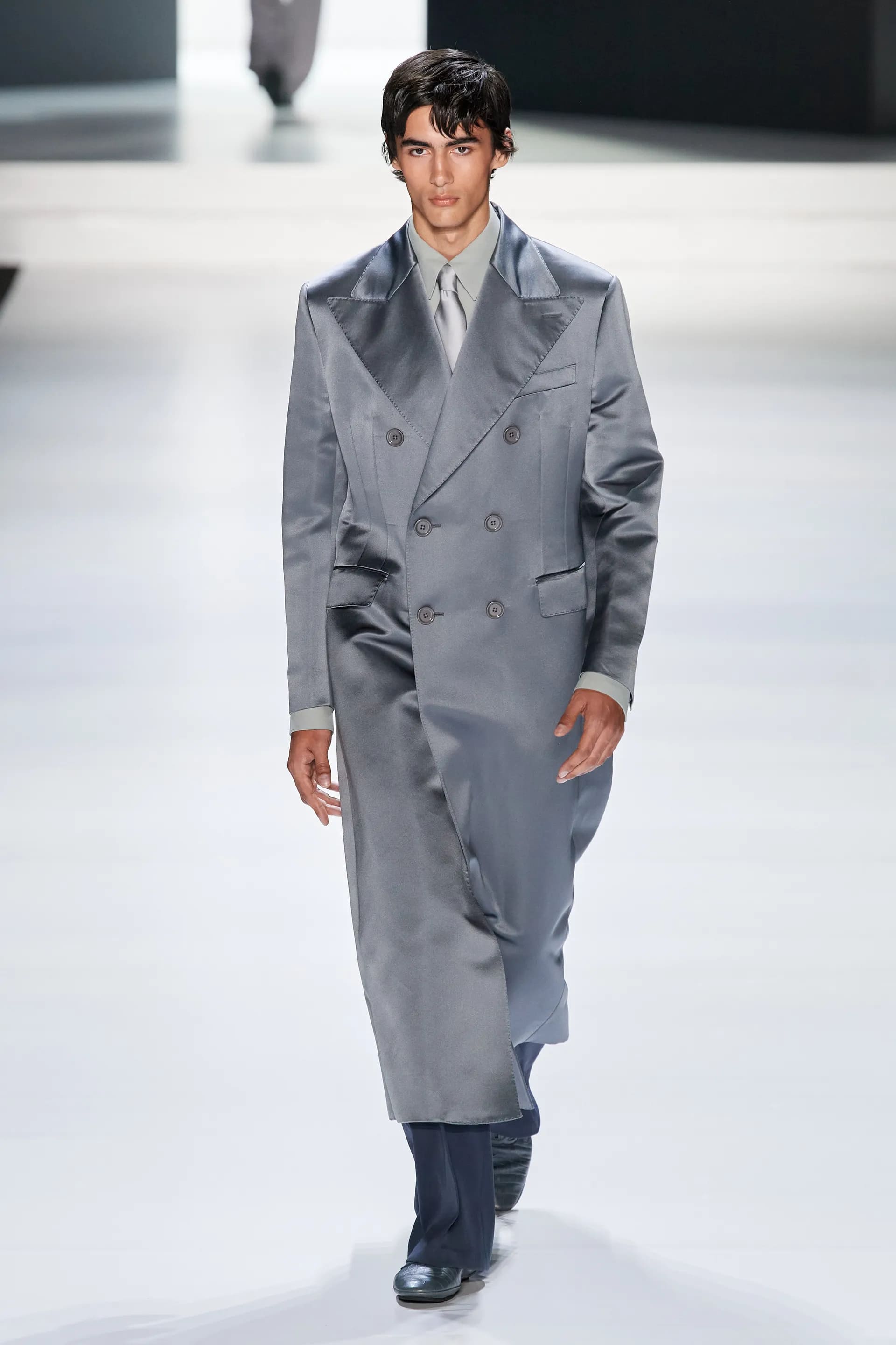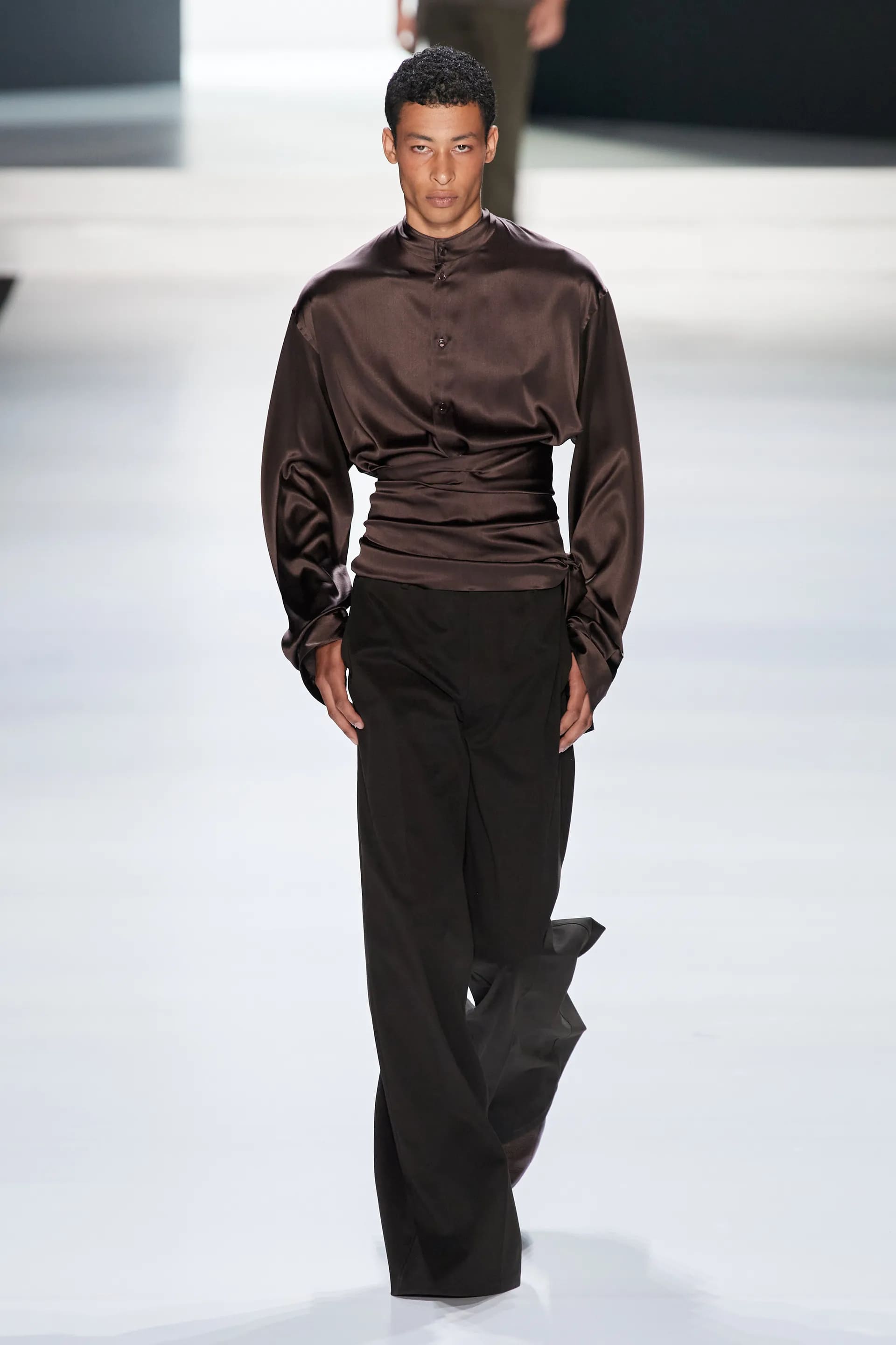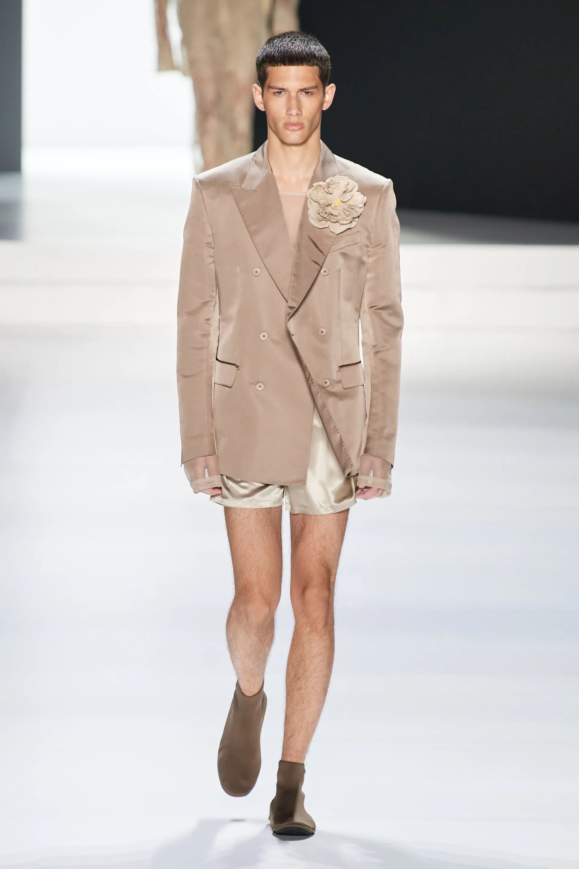 Під центральний саундтрек Anyma — The Answer на подіумі з’явилися ансамблі, які підкреслюють чоловічий силует структурованими об’ємами та техніками багатошаровості. Особливим акцентом стають квіти у формі вишивки, прикрас на лацканах піджаків або комірцях сорочок.