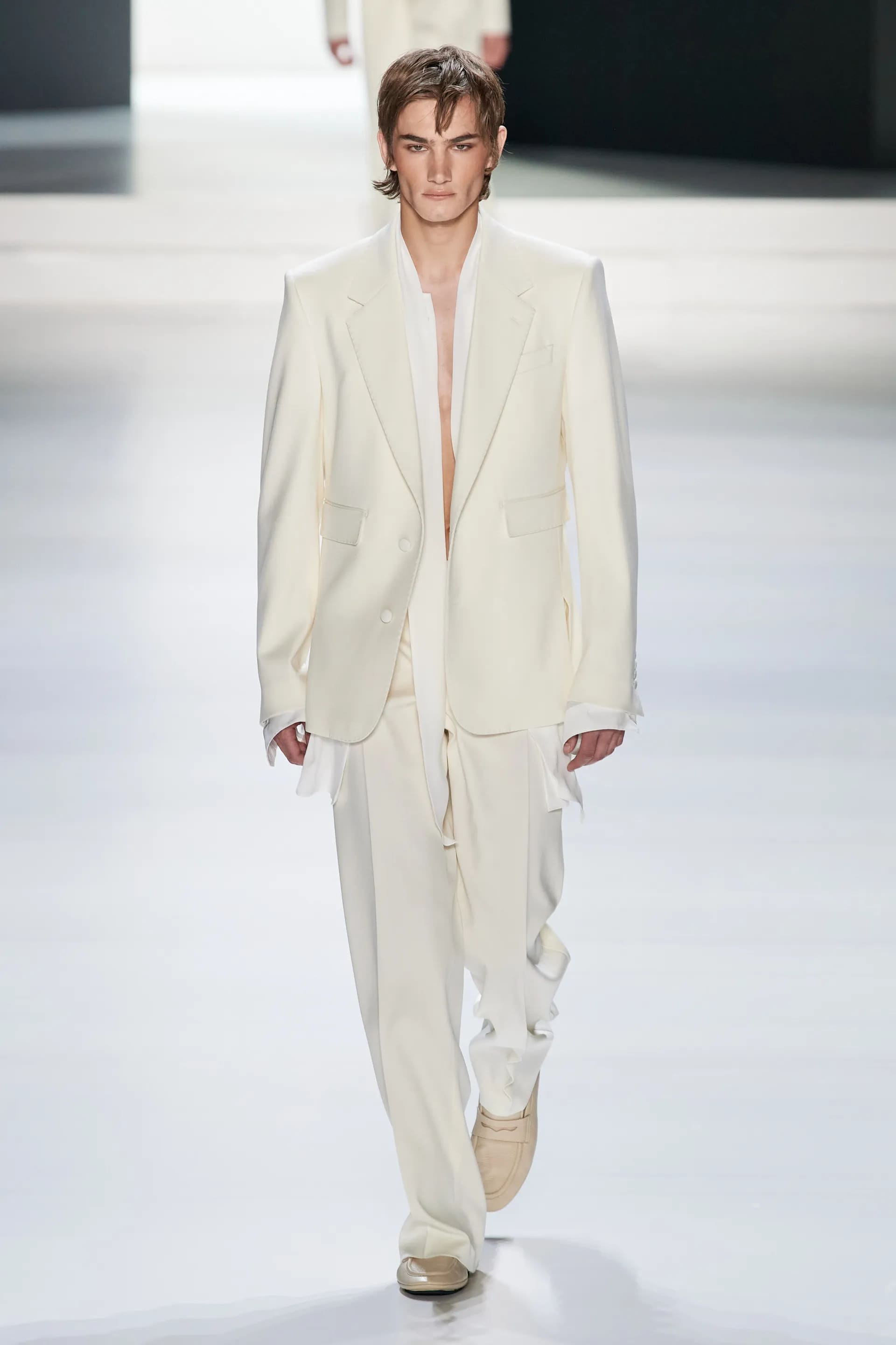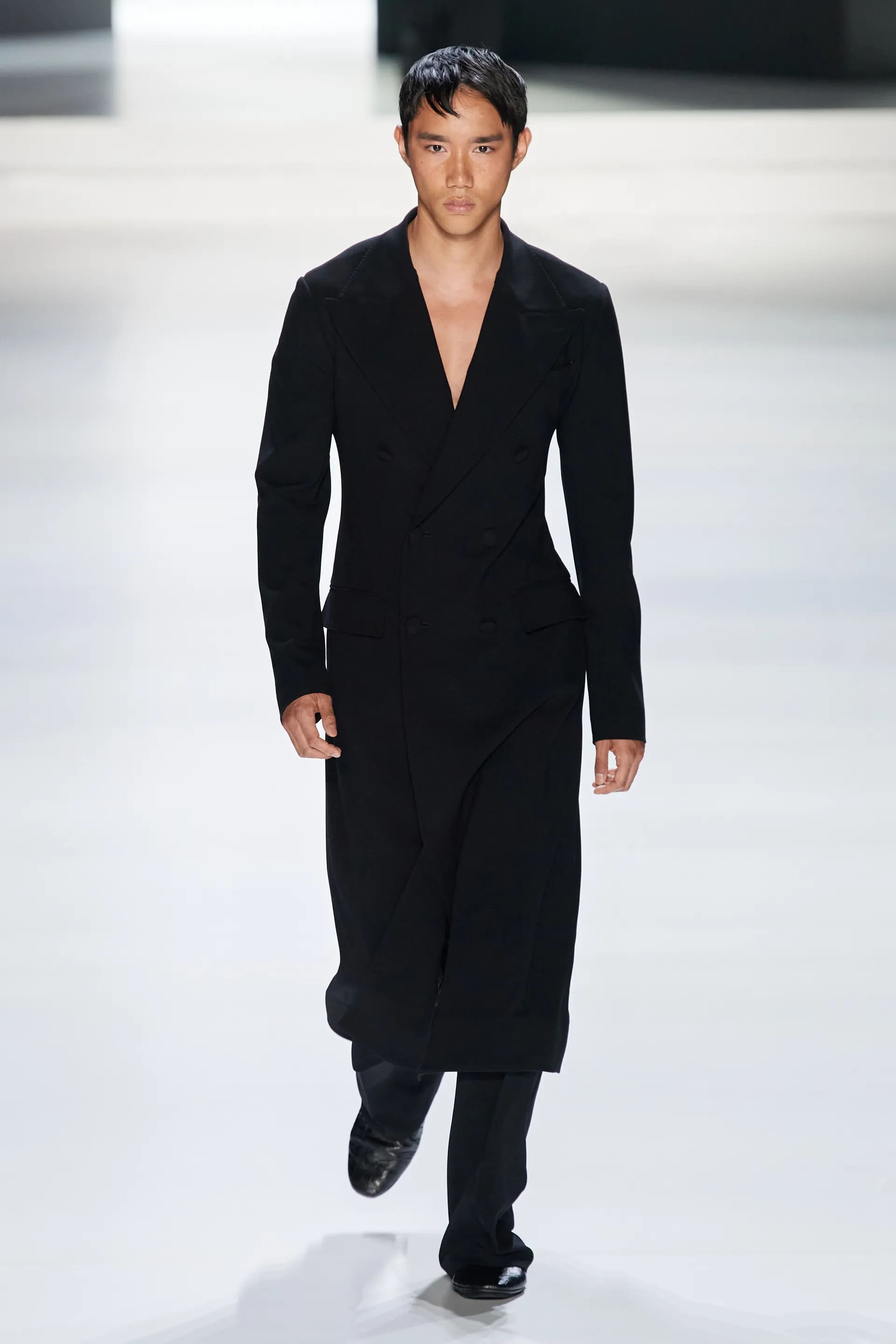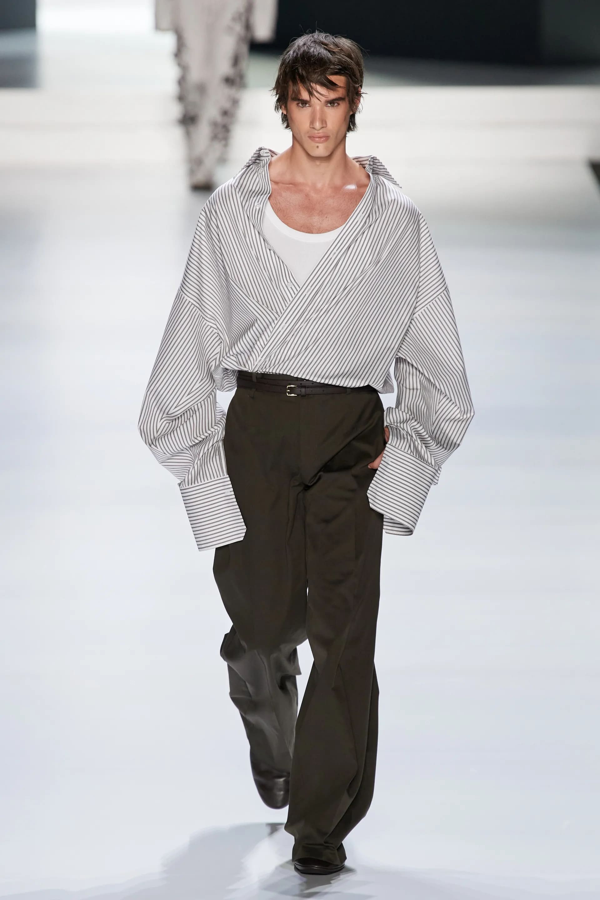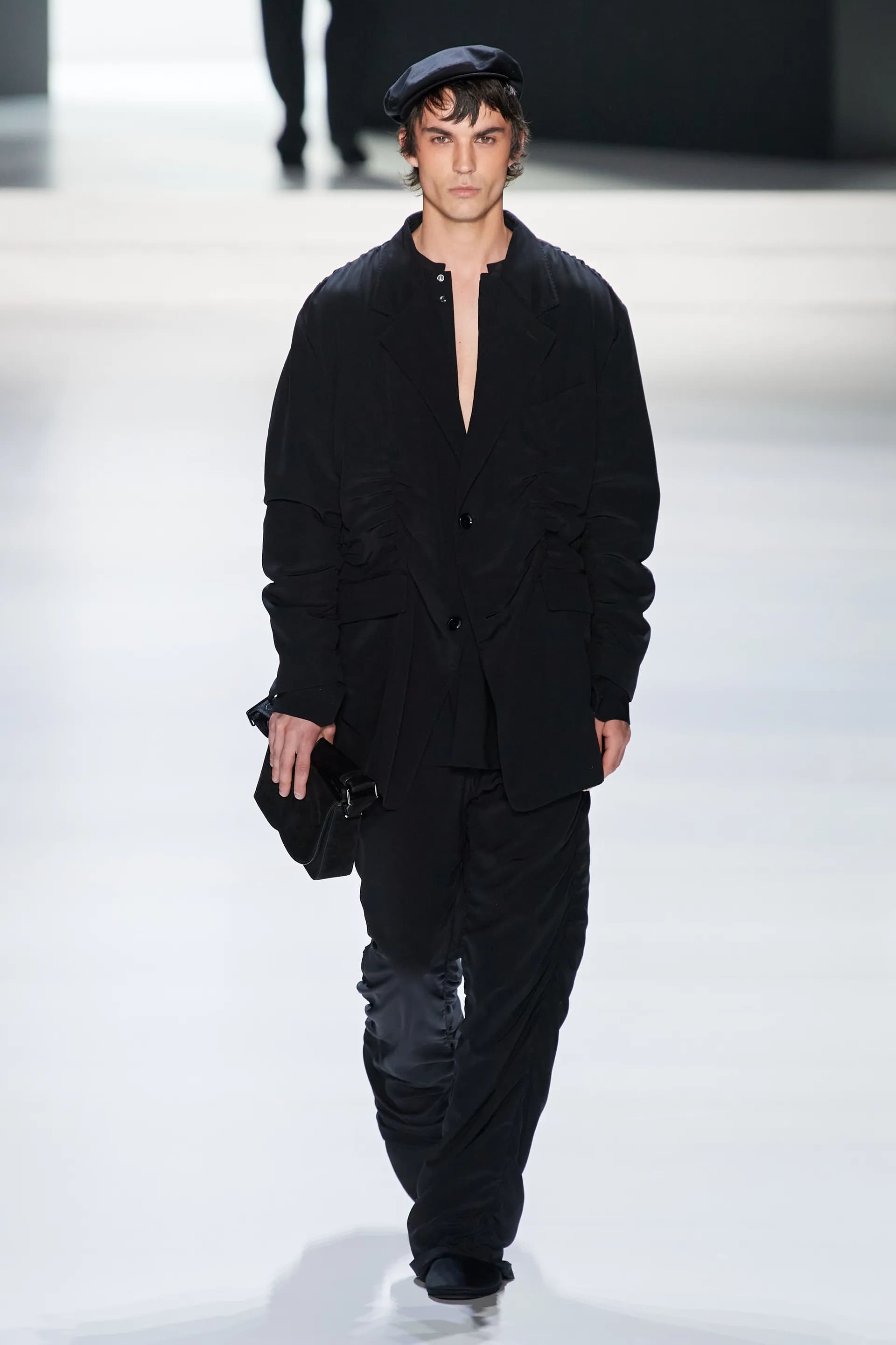 Під центральний саундтрек Anyma — The Answer на подіумі з’явилися ансамблі, які підкреслюють чоловічий силует структурованими об’ємами та техніками багатошаровості. Особливим акцентом стають квіти у формі вишивки, прикрас на лацканах піджаків або комірцях сорочок.