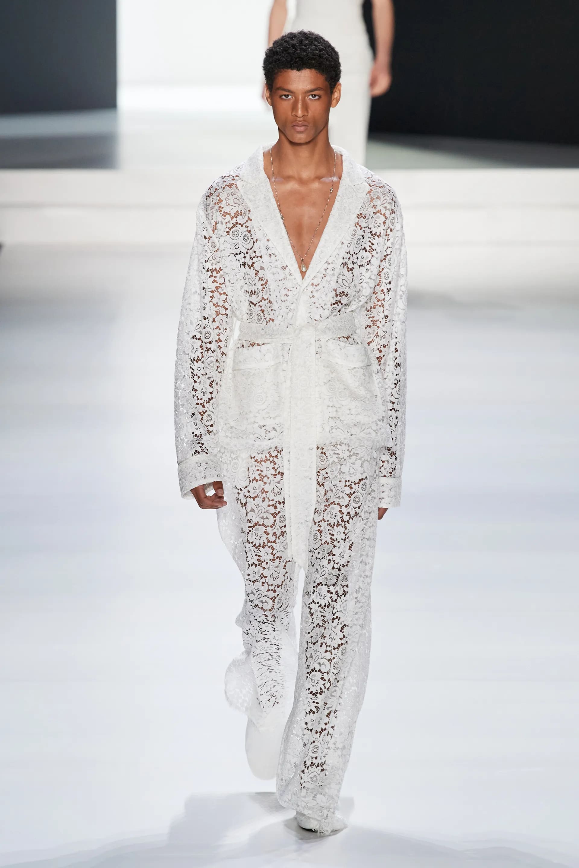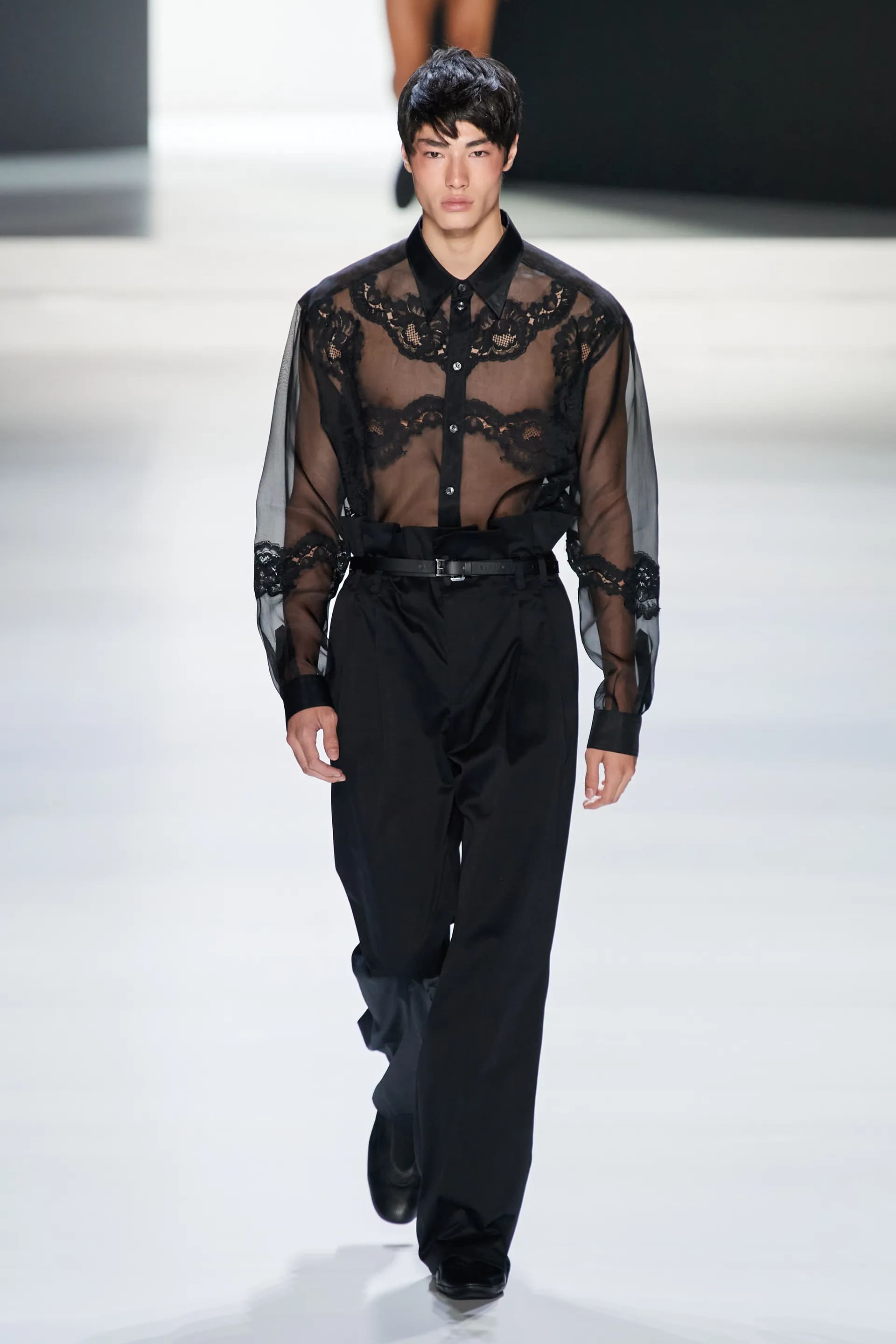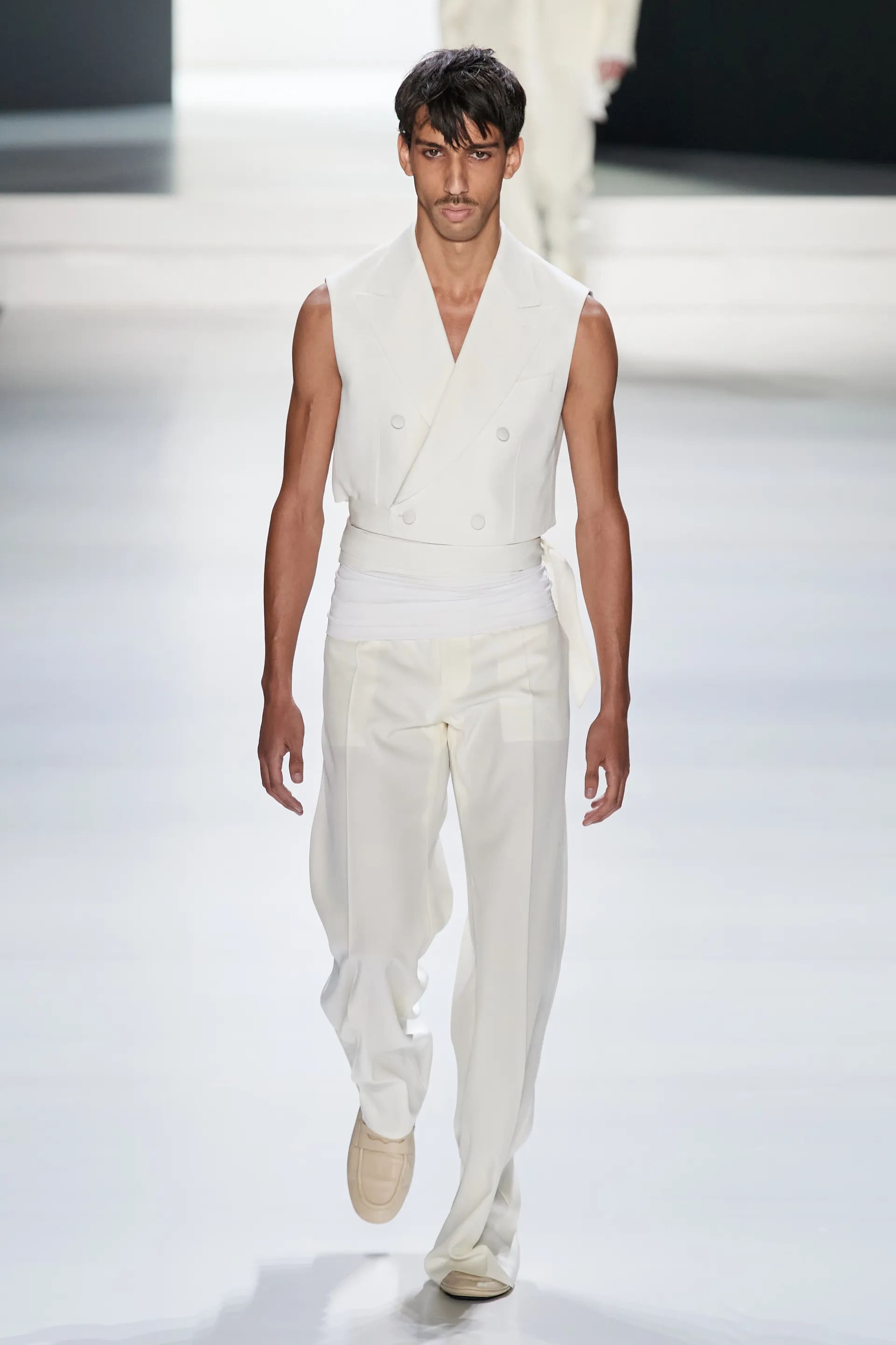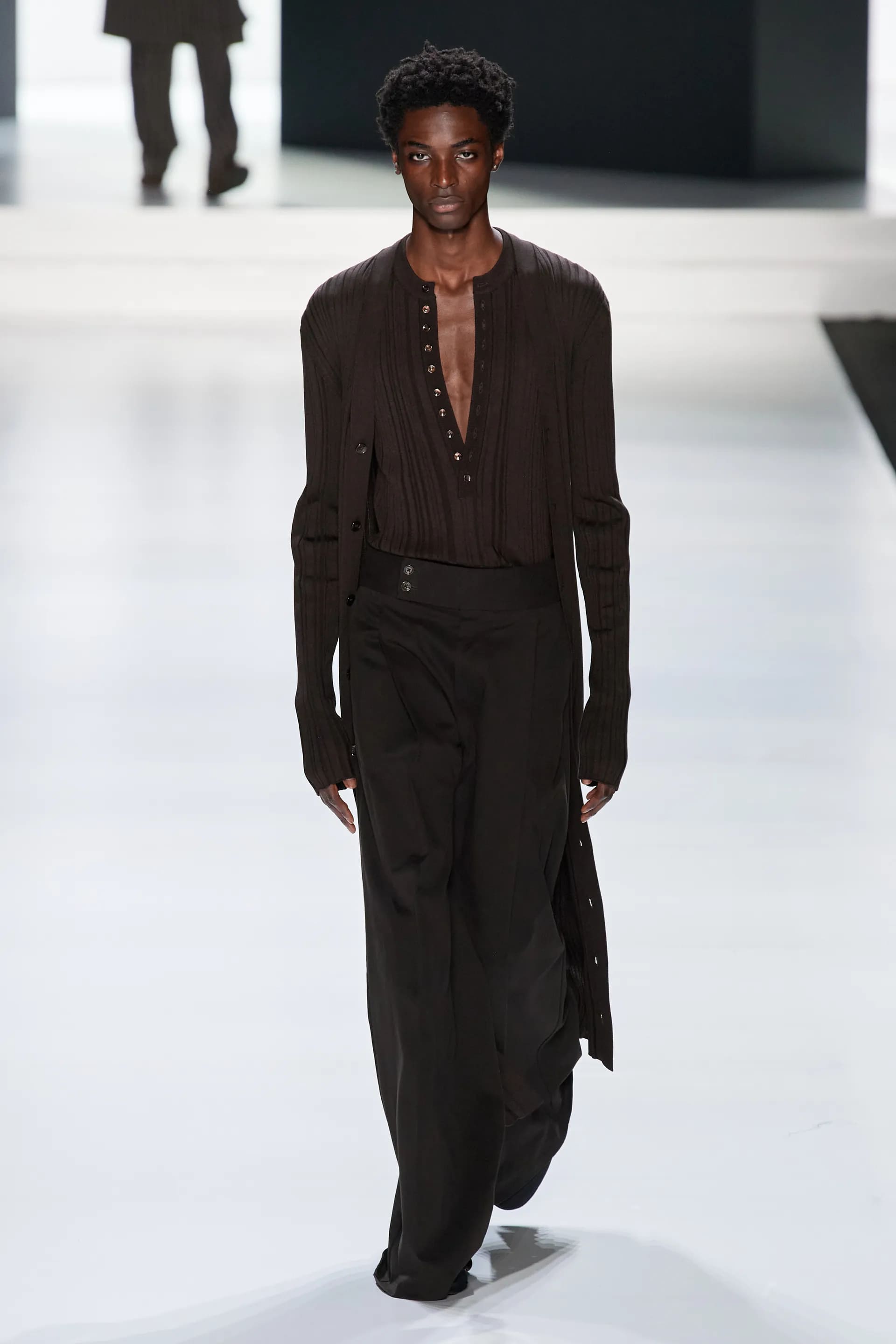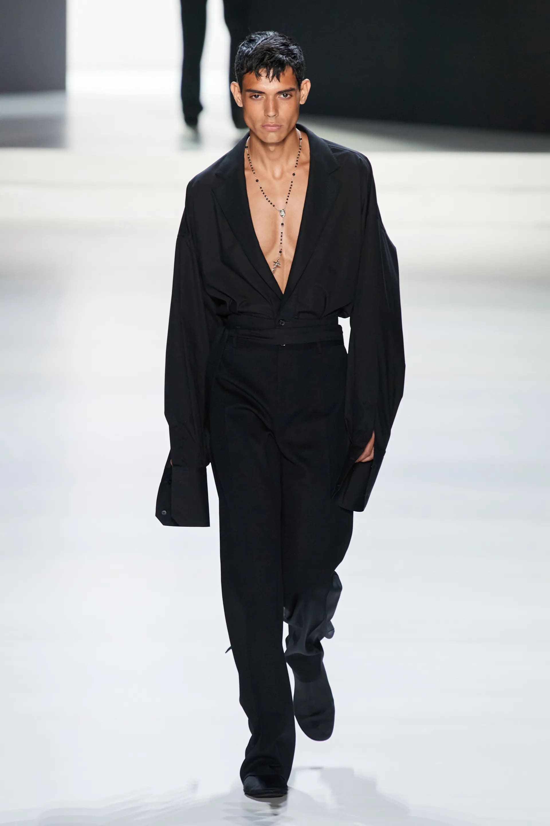 Під центральний саундтрек Anyma — The Answer на подіумі з’явилися ансамблі, які підкреслюють чоловічий силует структурованими об’ємами та техніками багатошаровості. Особливим акцентом стають квіти у формі вишивки, прикрас на лацканах піджаків або комірцях сорочок.
