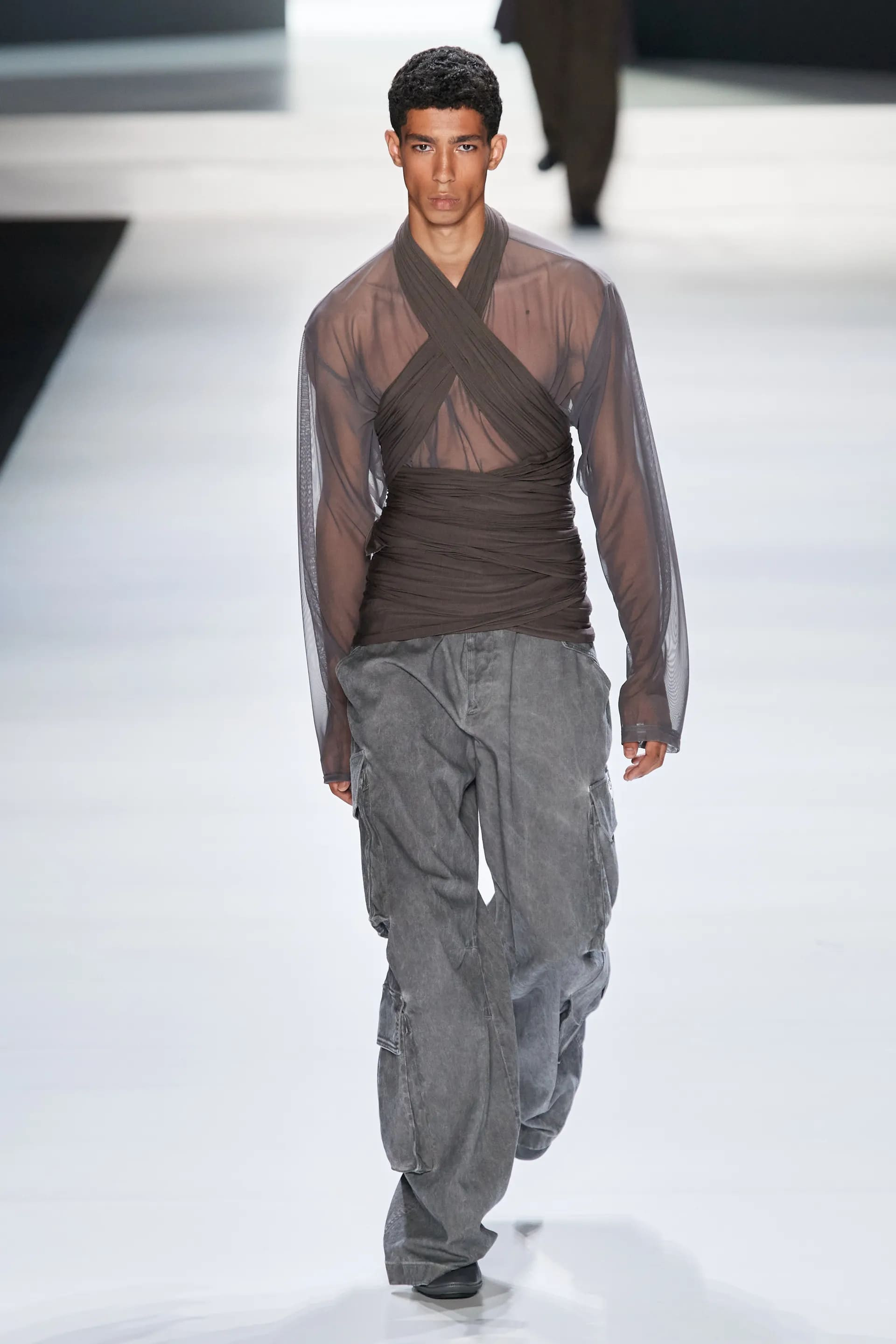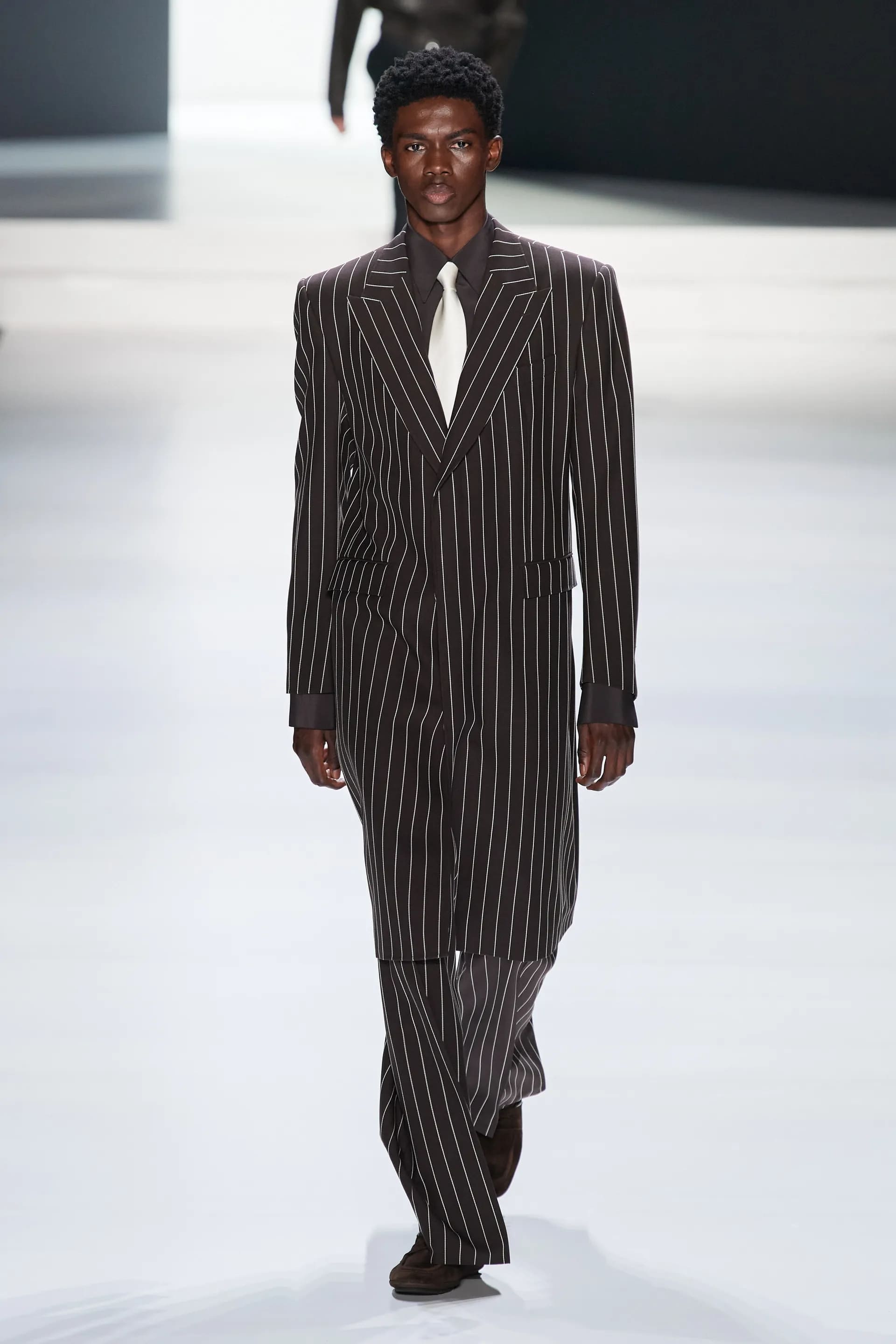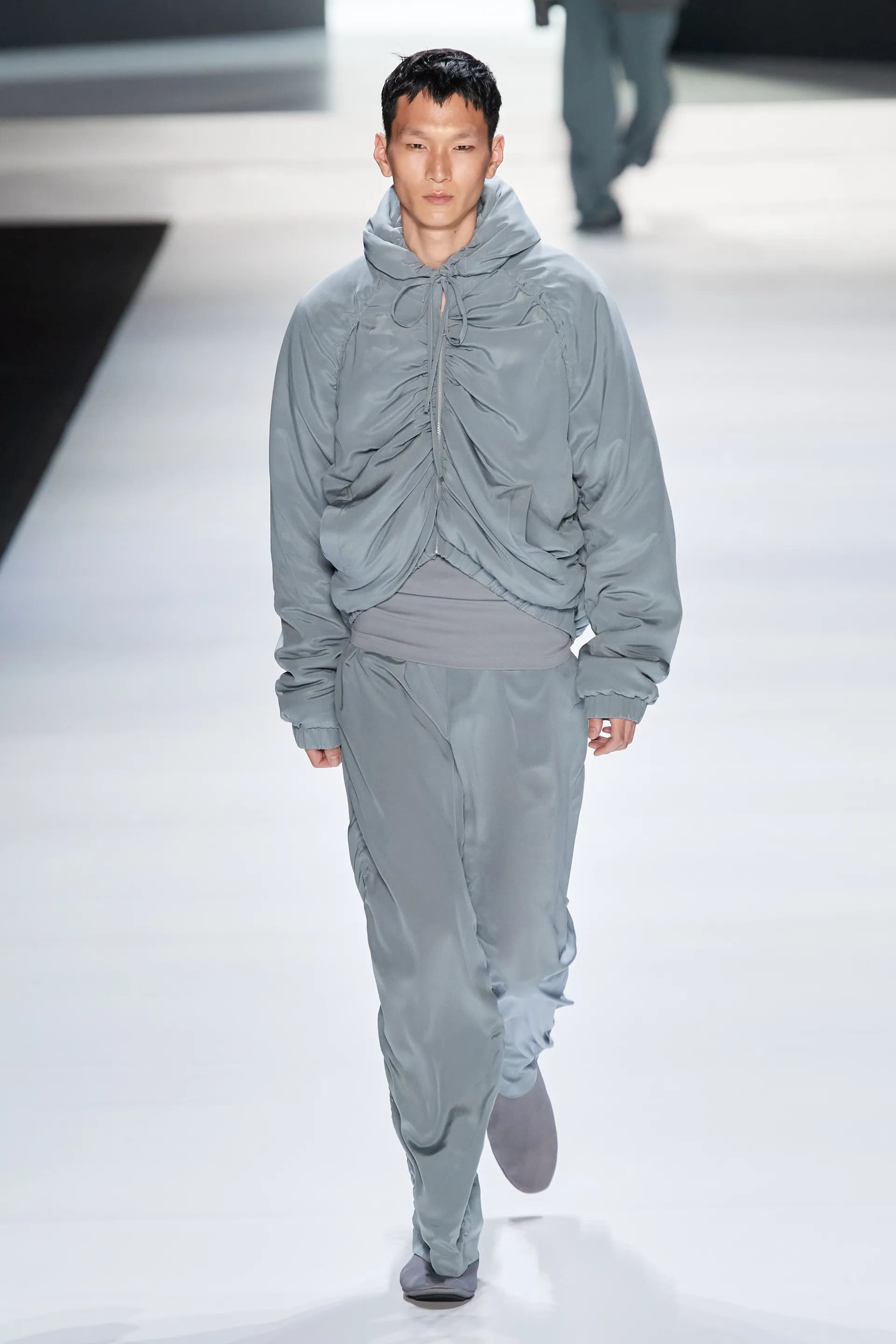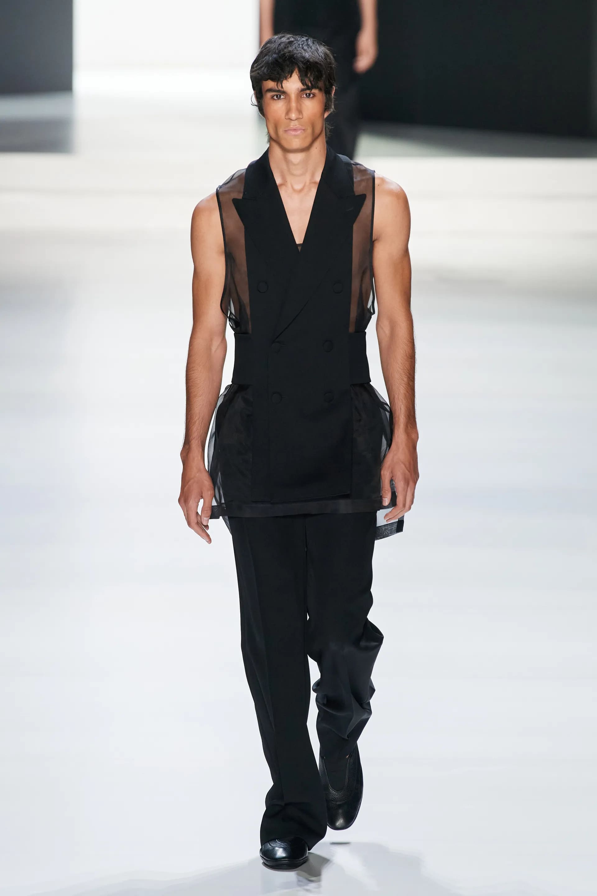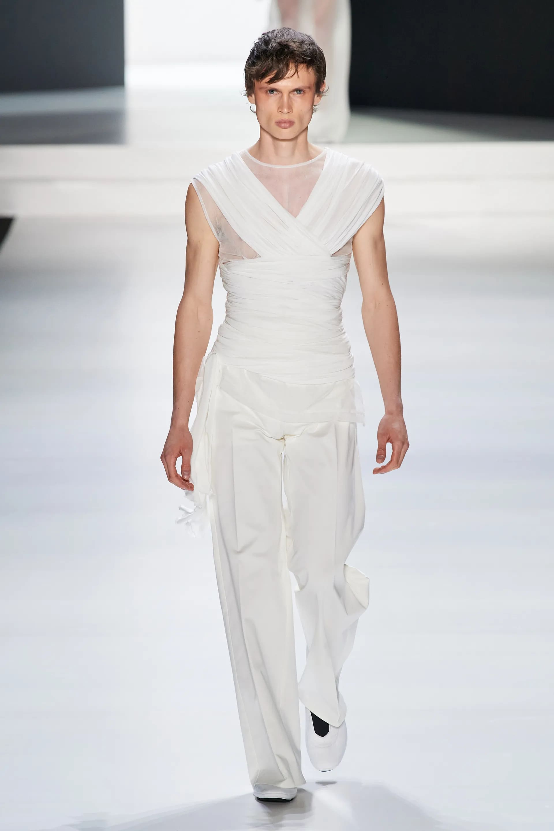 Під центральний саундтрек Anyma — The Answer на подіумі з’явилися ансамблі, які підкреслюють чоловічий силует структурованими об’ємами та техніками багатошаровості. Особливим акцентом стають квіти у формі вишивки, прикрас на лацканах піджаків або комірцях сорочок.