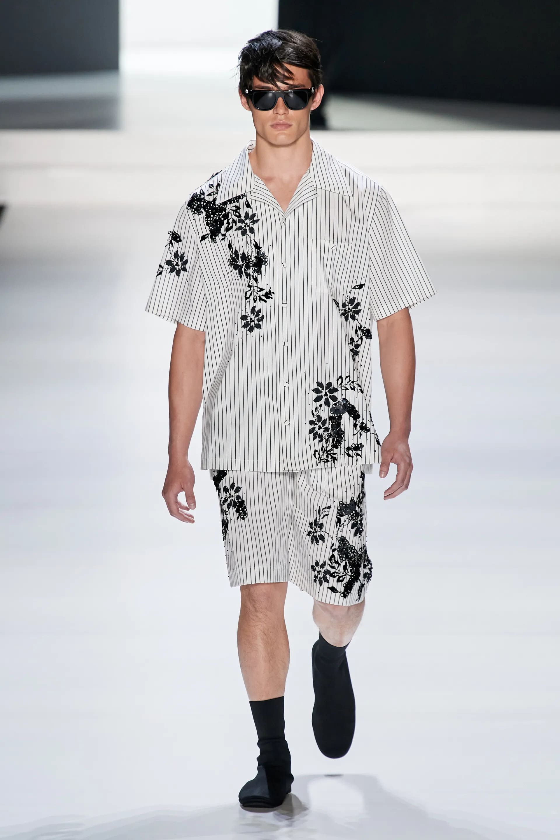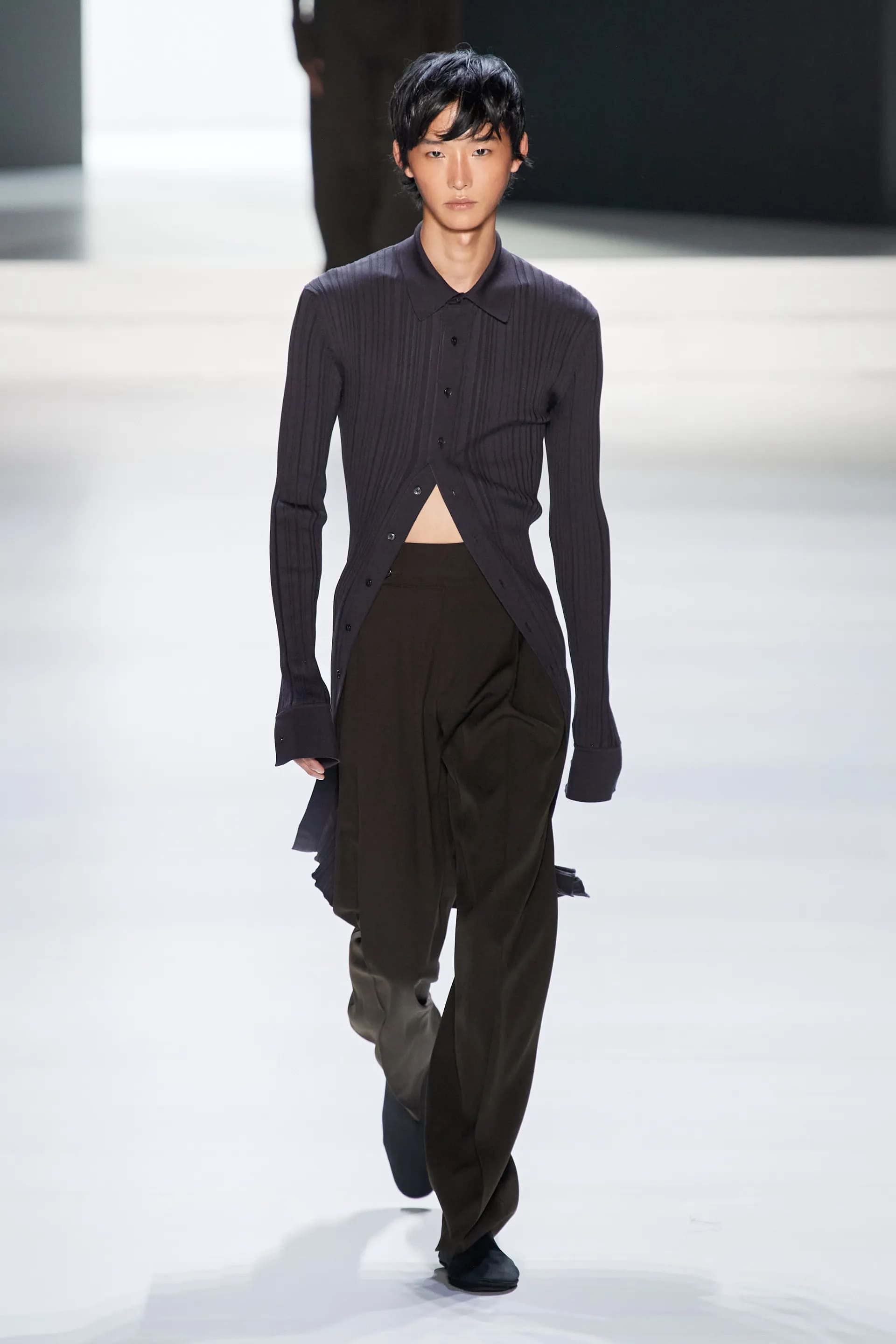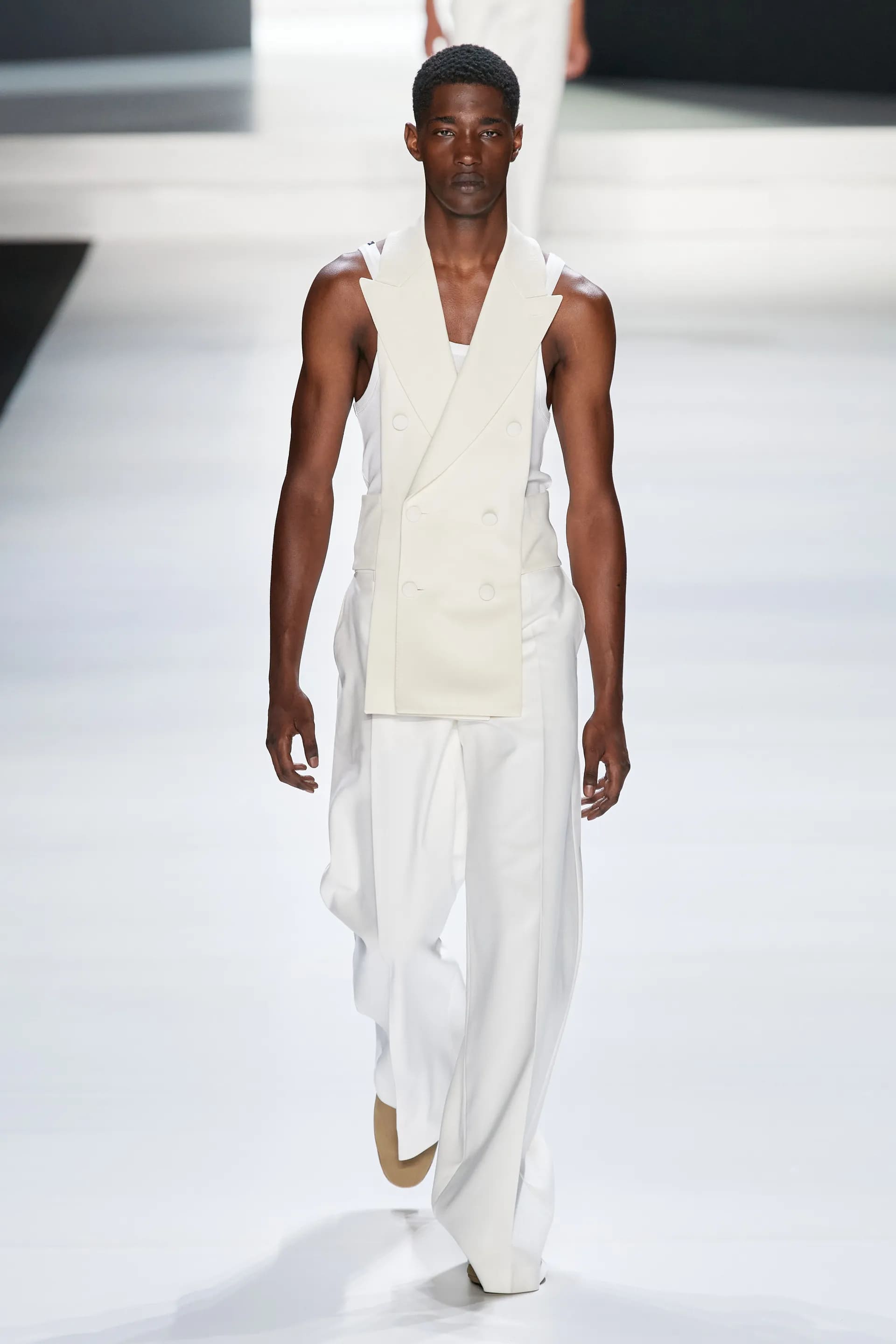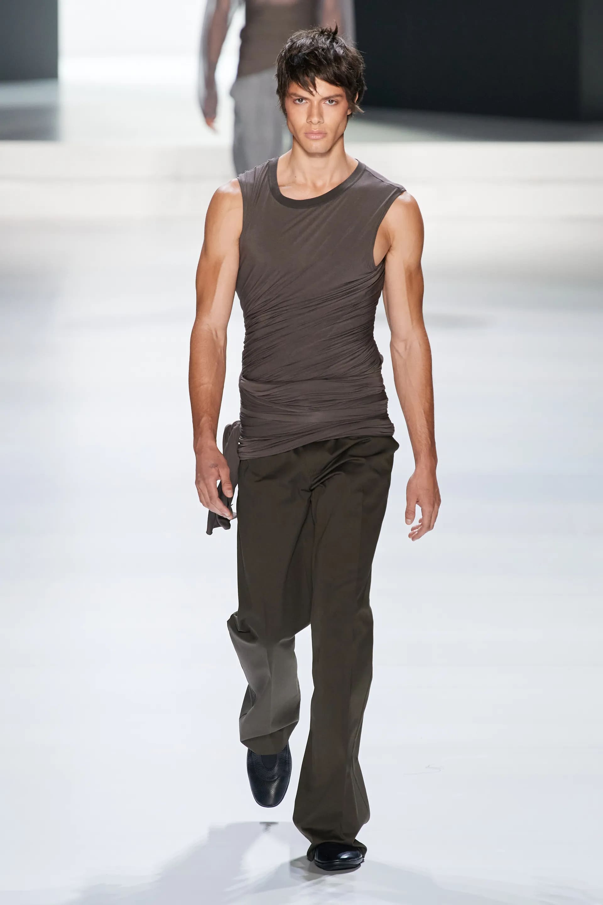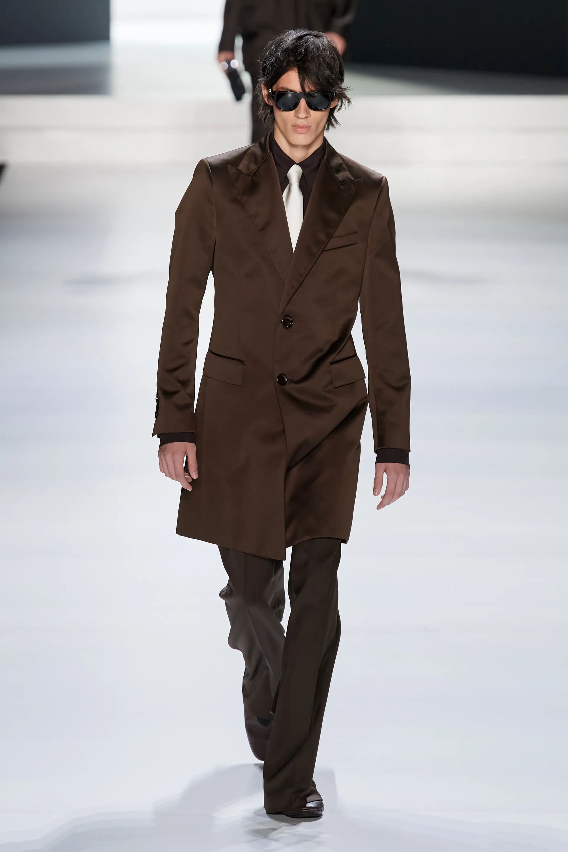 Під центральний саундтрек Anyma — The Answer на подіумі з’явилися ансамблі, які підкреслюють чоловічий силует структурованими об’ємами та техніками багатошаровості. Особливим акцентом стають квіти у формі вишивки, прикрас на лацканах піджаків або комірцях сорочок.