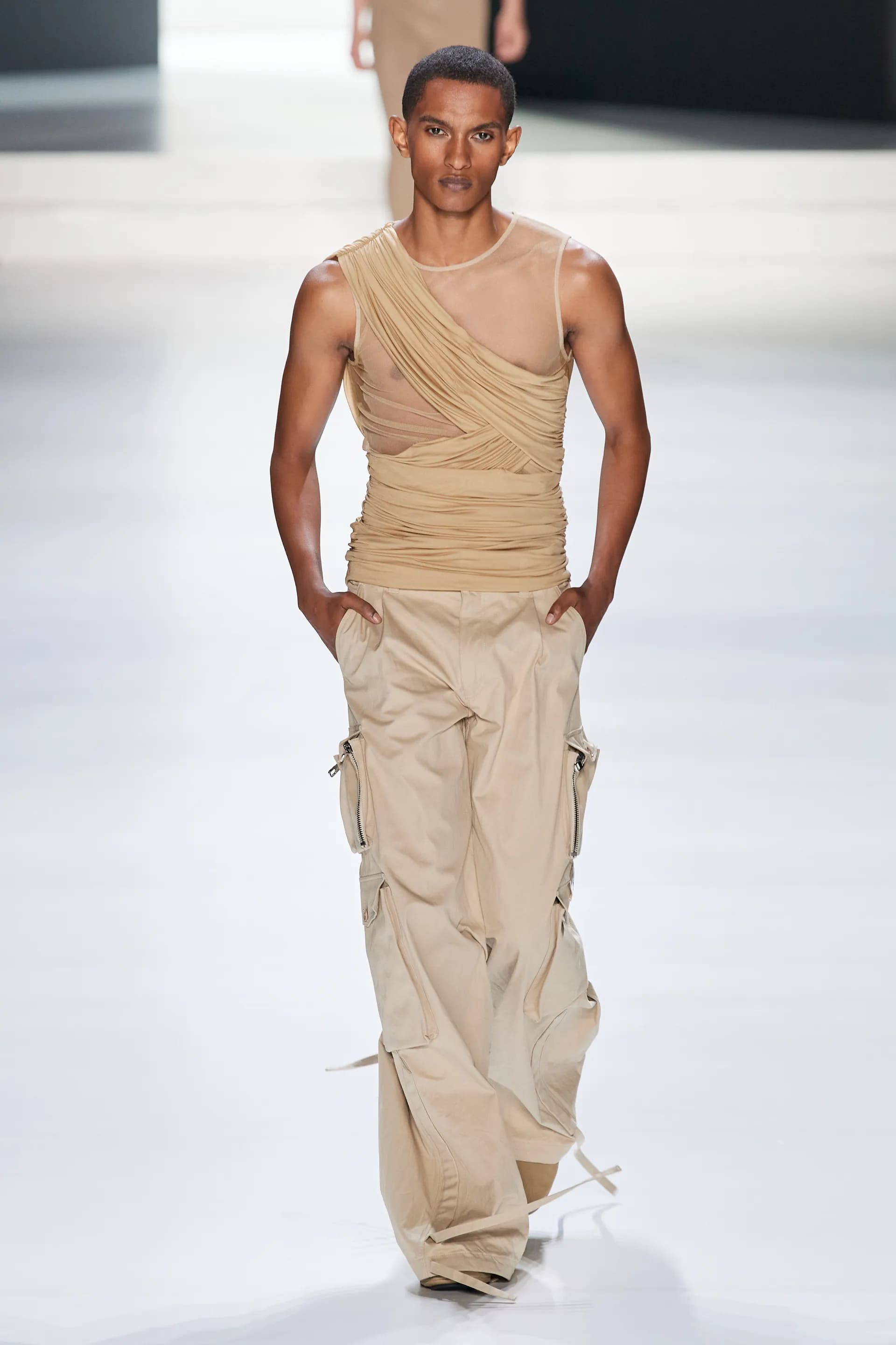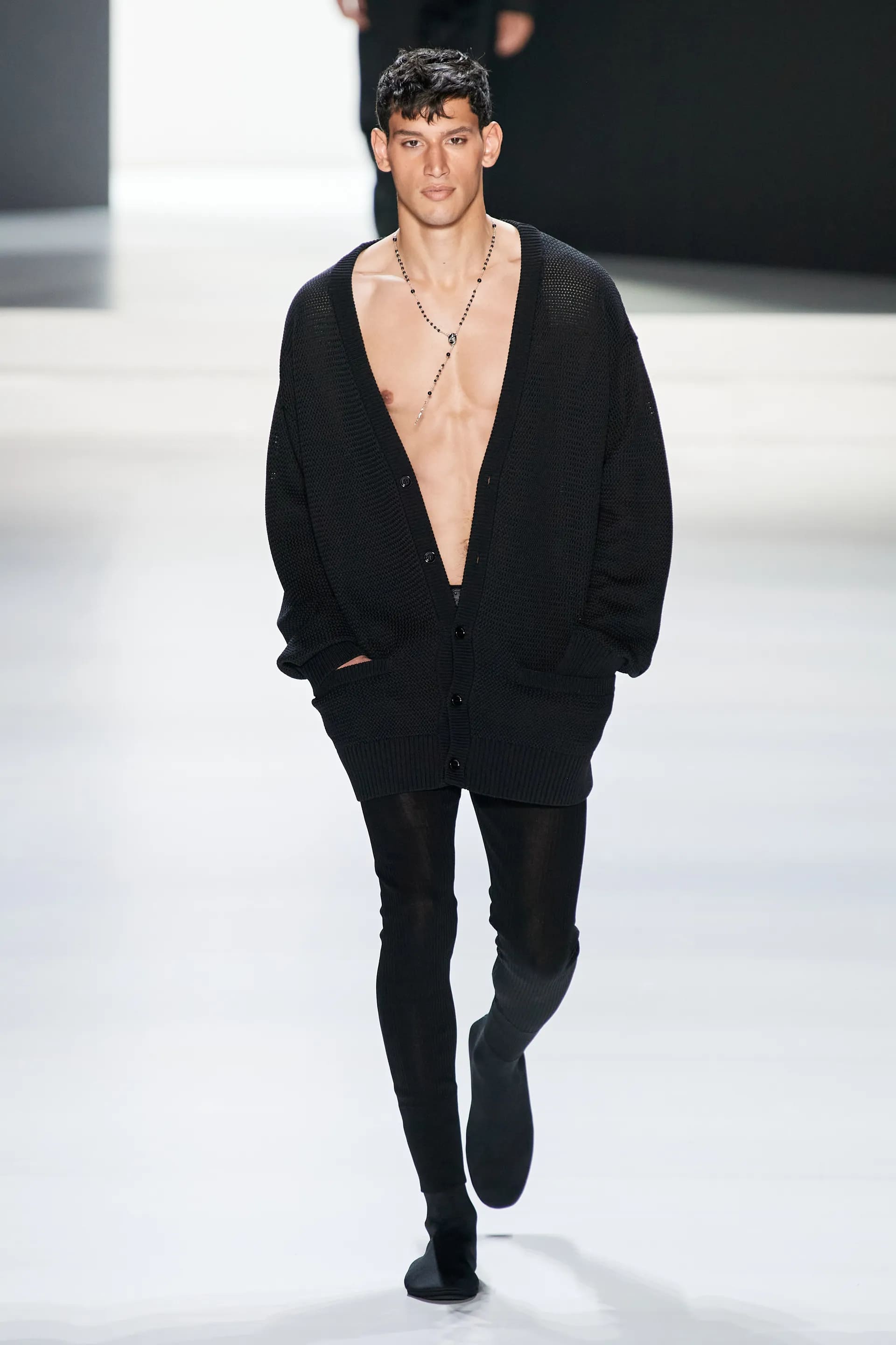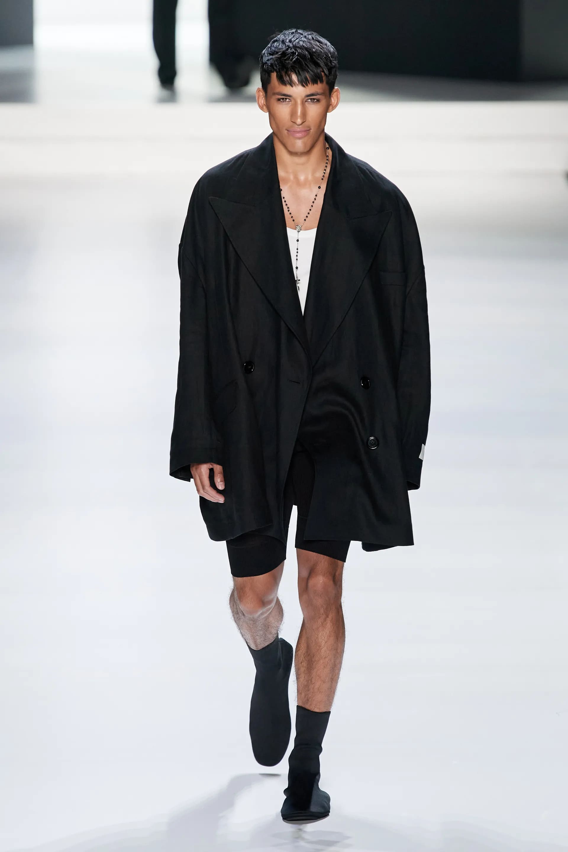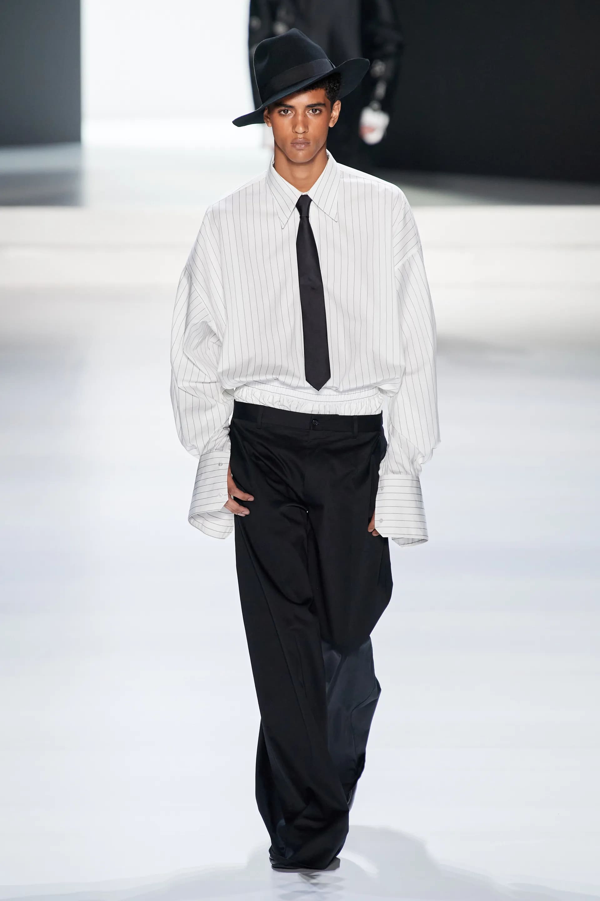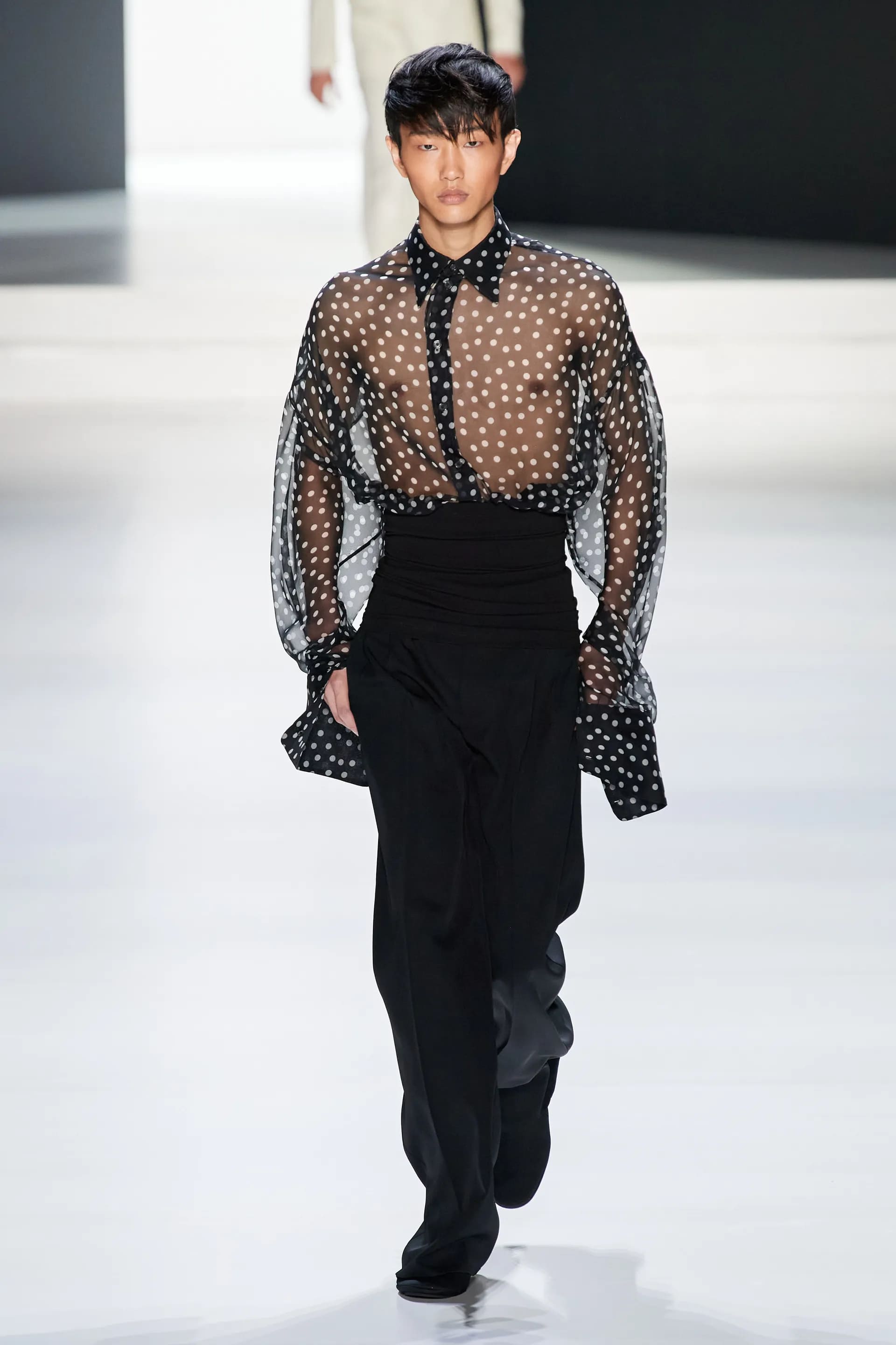Під центральний саундтрек Anyma — The Answer на подіумі з’явилися ансамблі, які підкреслюють чоловічий силует структурованими об’ємами та техніками багатошаровості. Особливим акцентом стають квіти у формі вишивки, прикрас на лацканах піджаків або комірцях сорочок.