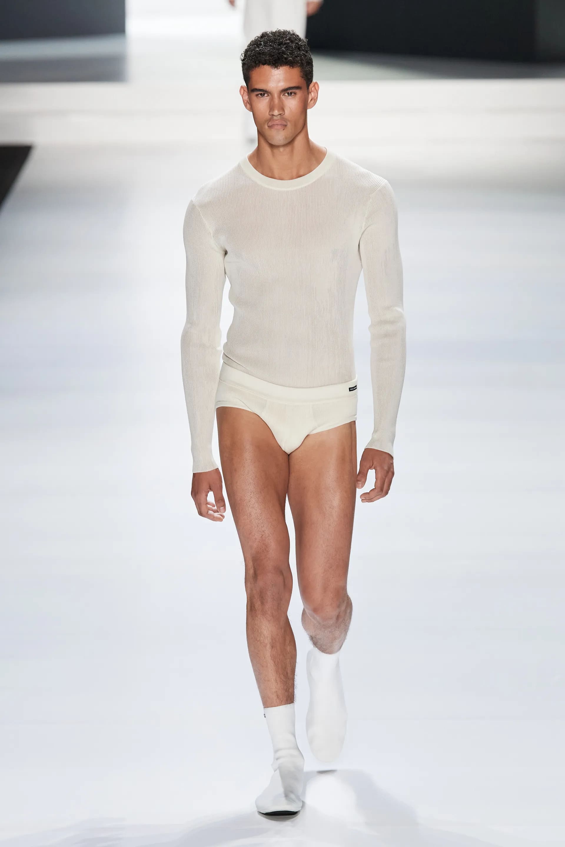 У просторій залі гостями шоу Dolce & Gabbana весна-літо 2024 стали амбасадор бренду та K-pop зірка Дойон, Machine Gun Kelly та італійський співак Бланко.