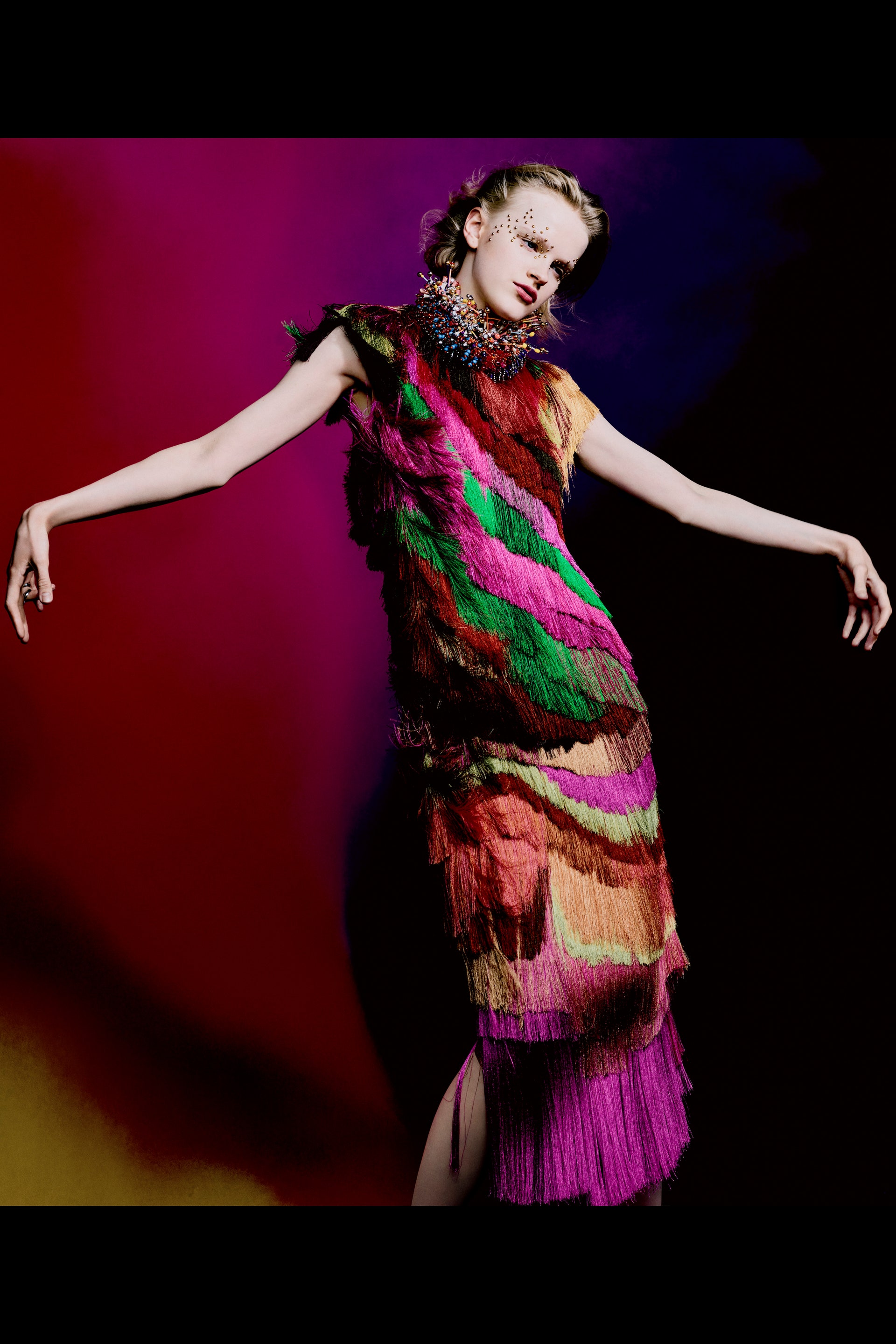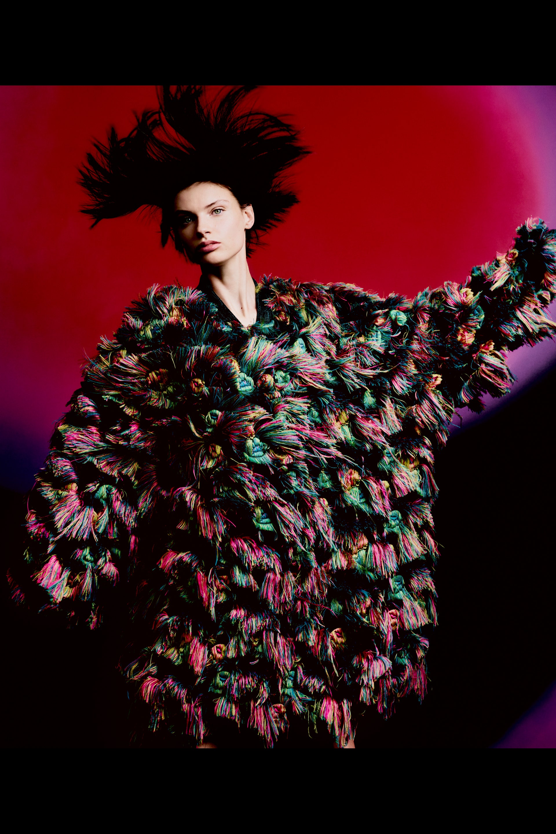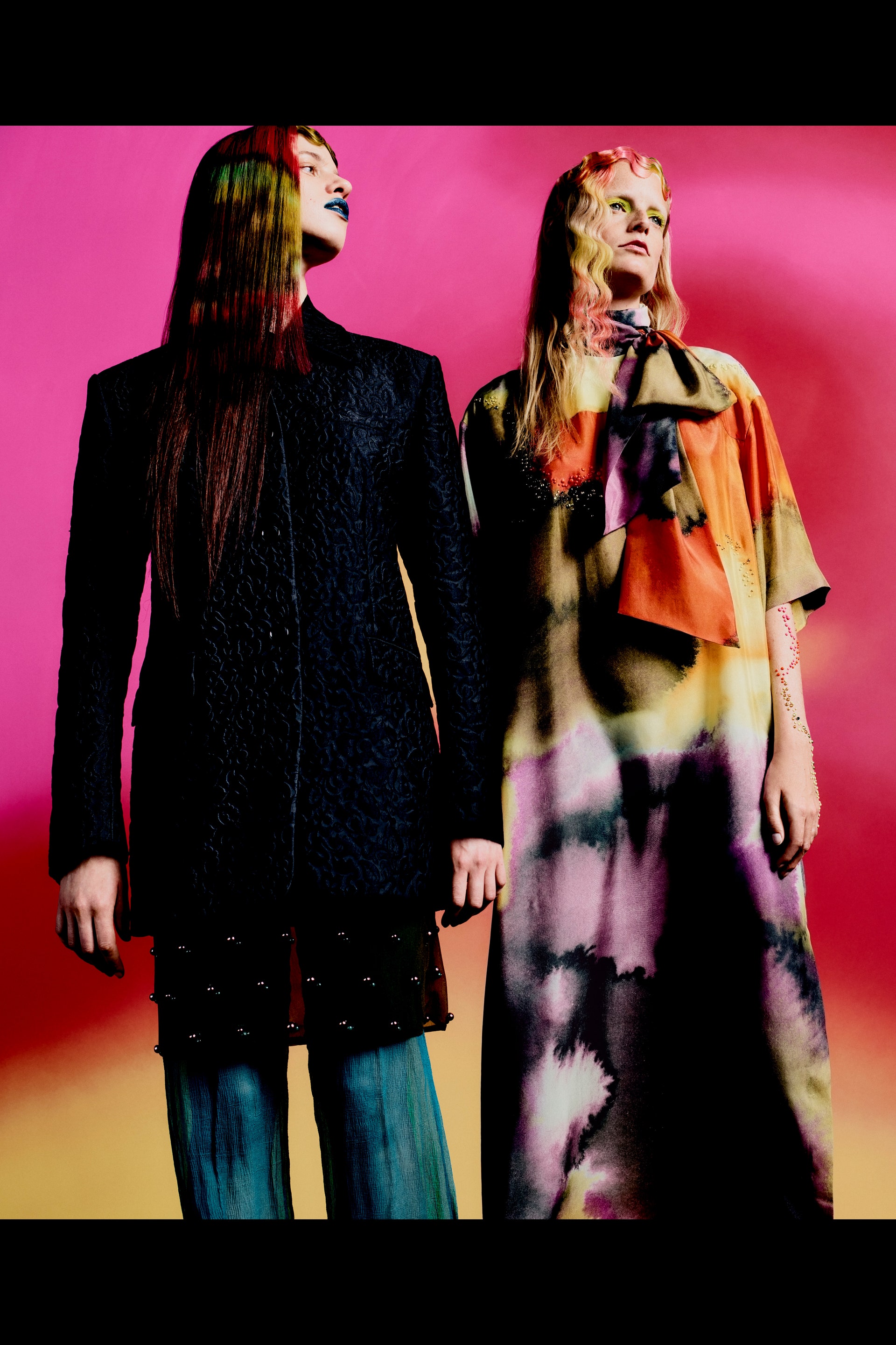 Настроение постпандемических дней охватывает всех. Желание праздника, танцев, социального сближения отражается в творчестве дизайнеров ярким, лихорадочным лейтмотивом. Дрис Ван Нотен подхватил эйфорическую волну и показал красочную весеннюю коллекцию. На создание роскошных пальто с принтами в виде фейерверков, пестрых комбинезонов с бахромой и усыпанных цветными кристаллами платьев и джинсовых курток Ван Нотена вдохновила атмосфера крупнейшего танцевального фестиваля Tomorrowland, проходившего в Бельгии. В коллекции есть и смокинг ручной работы, и юбки знаменитой фактуры "попкорн", и пушистые вещи, созданные путем наслоения нескольких рядов нитей и пряжи. Знаковый пигментированный принт на этих вещах выглядит теперь еще более живописно, чем прежде.
