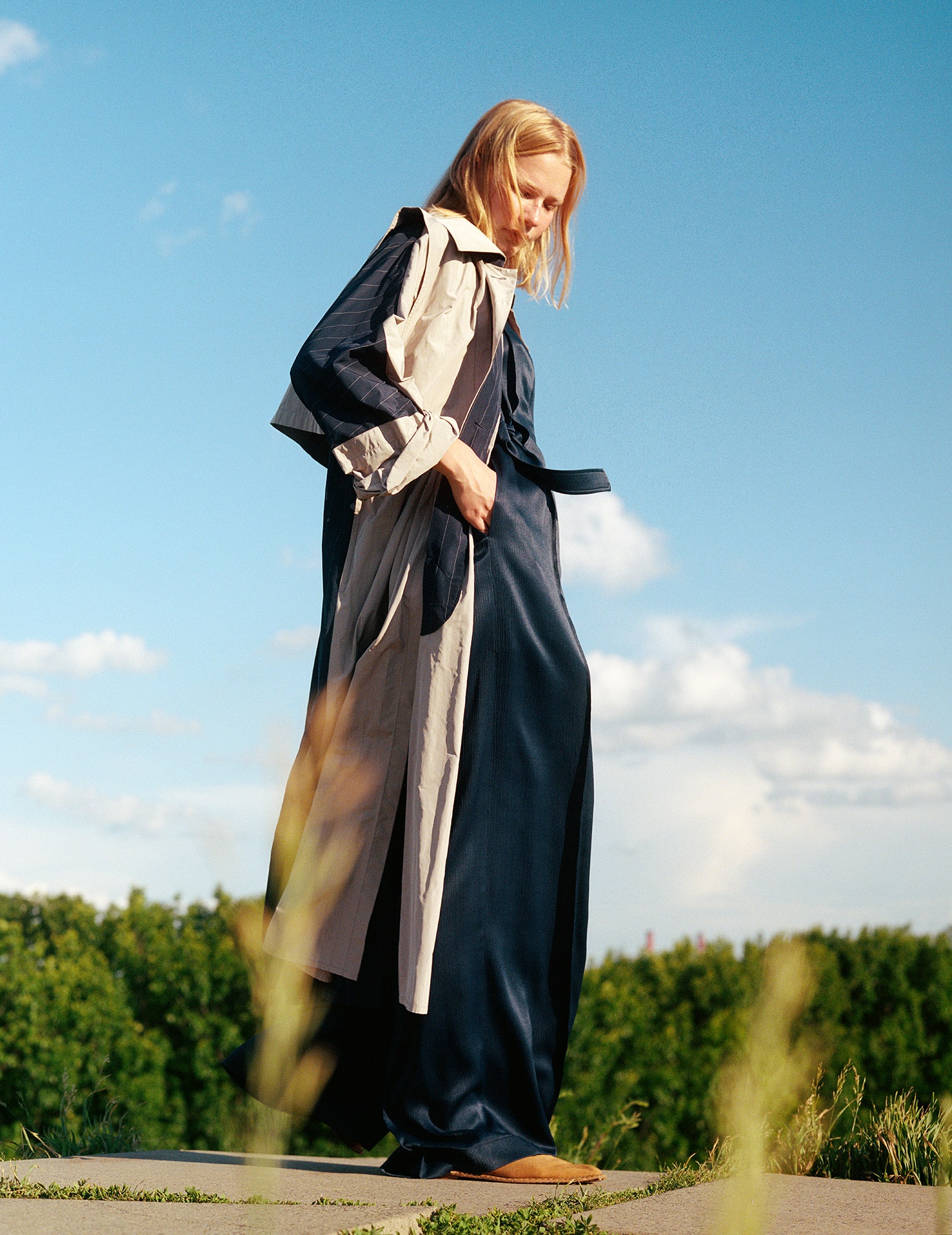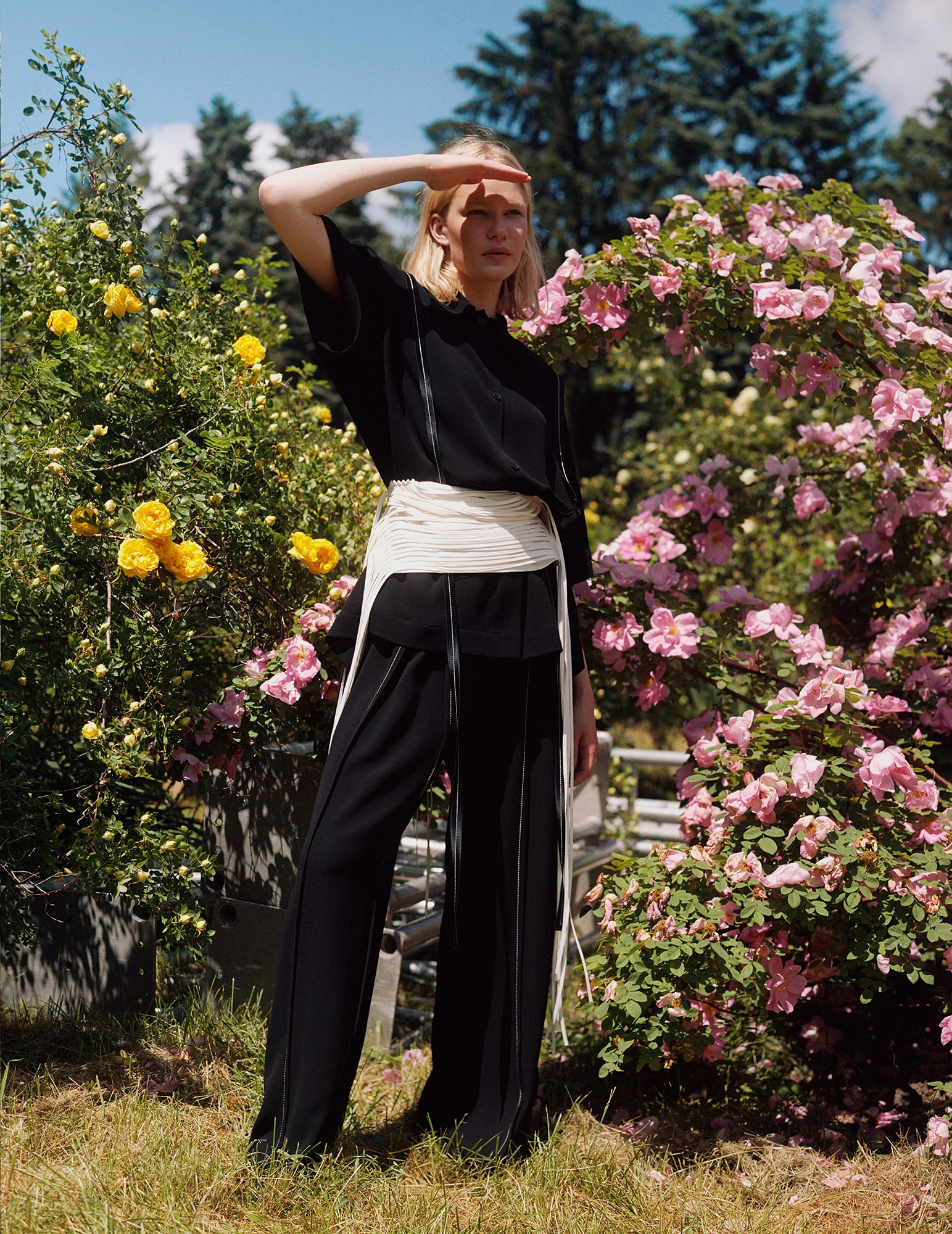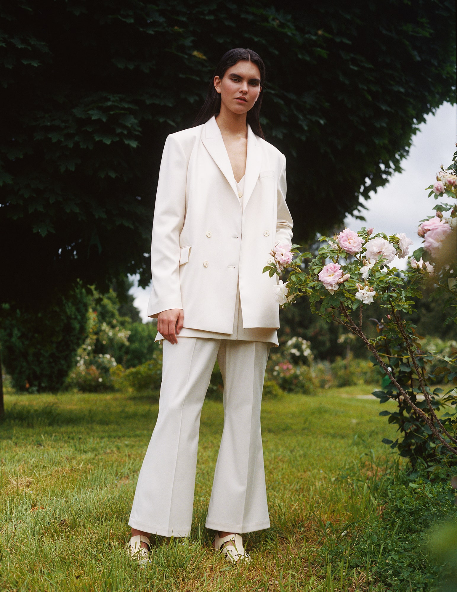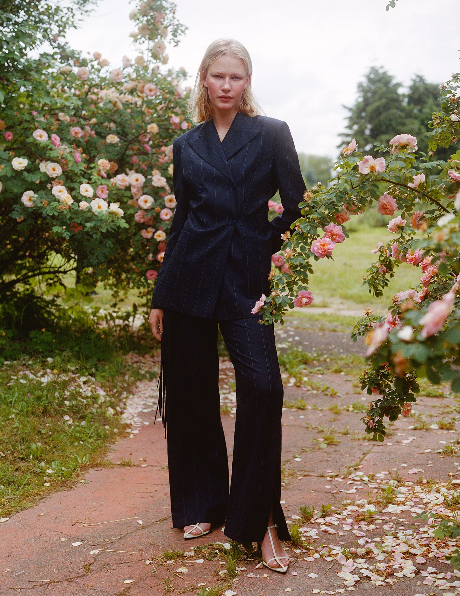 Duality акцентируют внимание на классических единицах гардероба: идеально скроенном костюме, льняной рубашке оверсайз, широких брюках, юбках и платьях летящих силуэтов, декоративных топах. Среди источников вдохновения коллекции – гардероб актрисы Кэтрин Хепберн.