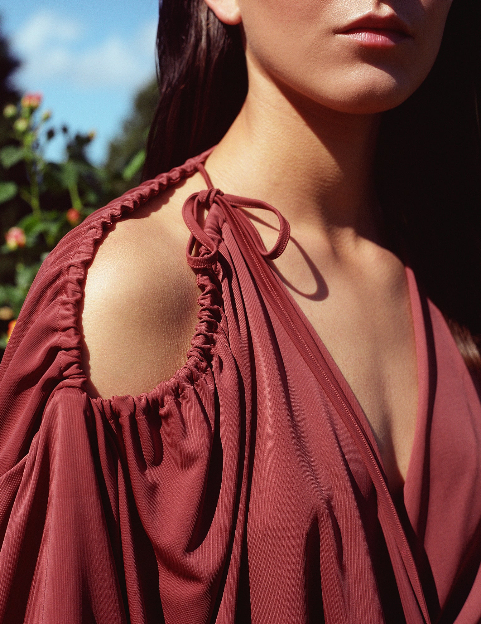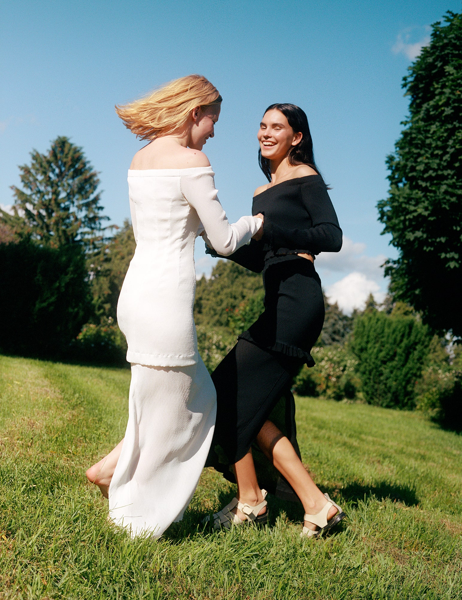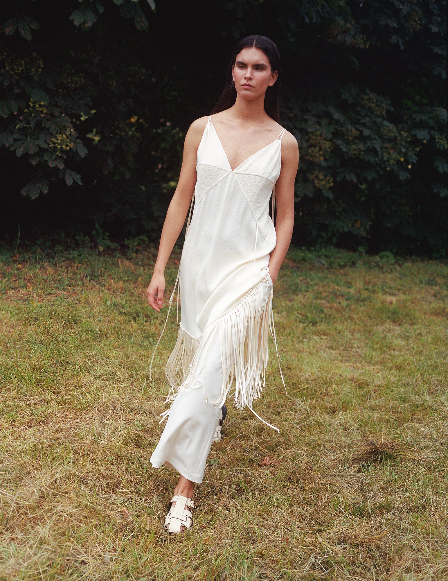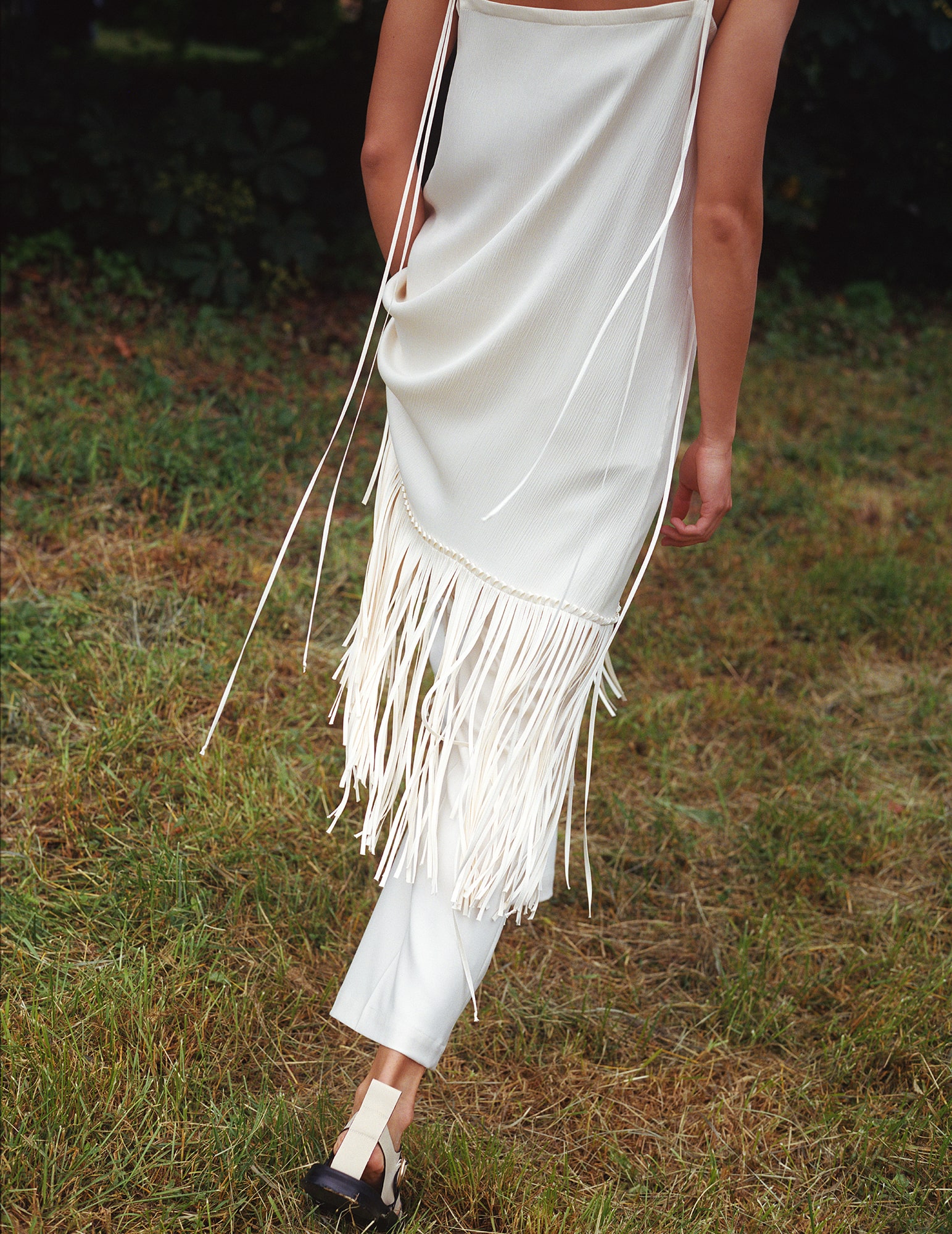 Duality акцентируют внимание на классических единицах гардероба: идеально скроенном костюме, льняной рубашке оверсайз, широких брюках, юбках и платьях летящих силуэтов, декоративных топах. Среди источников вдохновения коллекции – гардероб актрисы Кэтрин Хепберн.