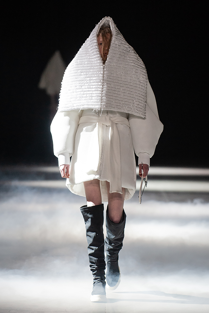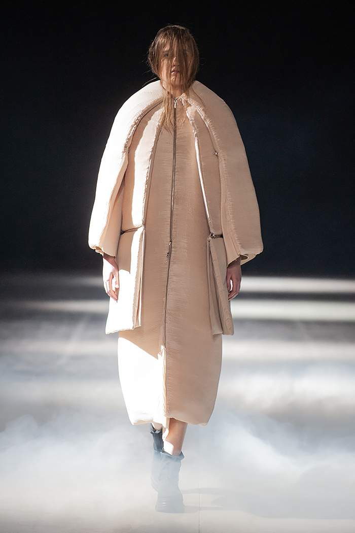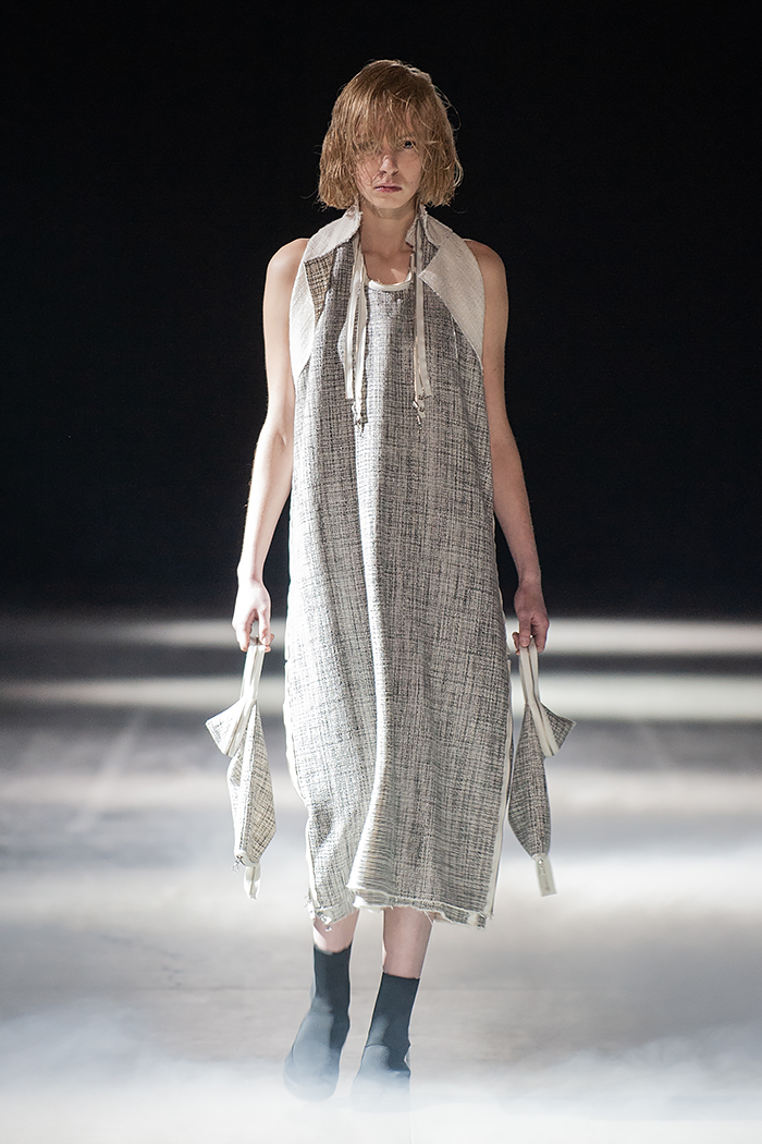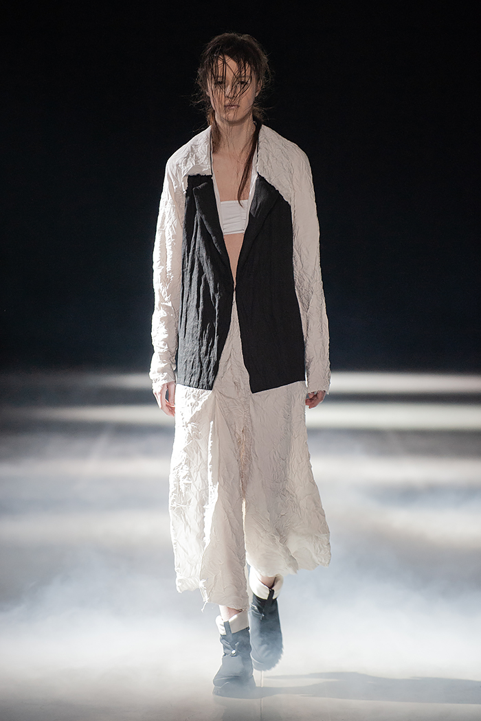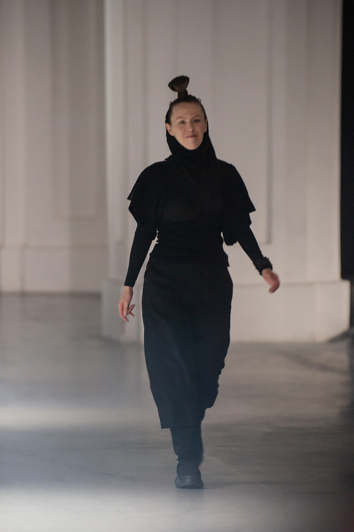 В рамках Украинской недели моды состоялся перформативный показ бренда Dzhus. Коллекция дизайнера Ирины Джус традиционно состояла из вещей-трансформеров, однако на этот раз подчиненных метамодерному лейтмотиву дуальности. Буквально, трансформация вещей происходила благодаря расслоению их, в результате которого изнанка становилась логическим продолжением верха. Это продемонстрирвоала сама дизайнер, выйдя на подиум и "преобразовав" наряды моделей. в коллекцию вошли платья-коконы, которые раскрываются подобно бутонам цветков, костюмы из жатого льна и хлопка, знаковые дял бренда плиссированные вещи и пальто-пуховики.