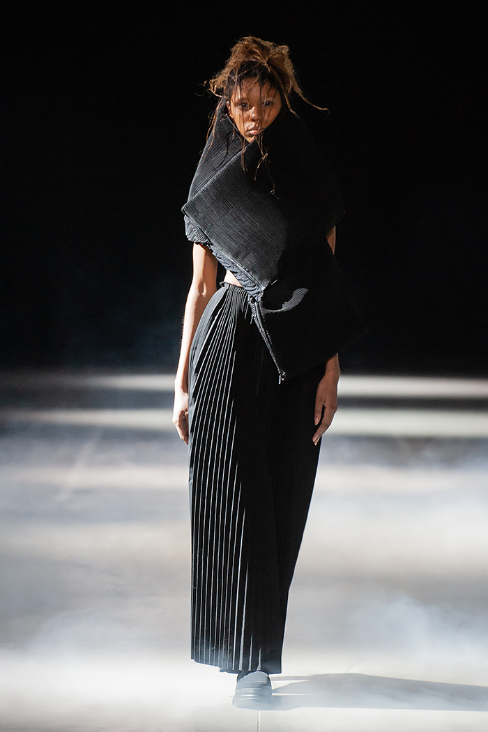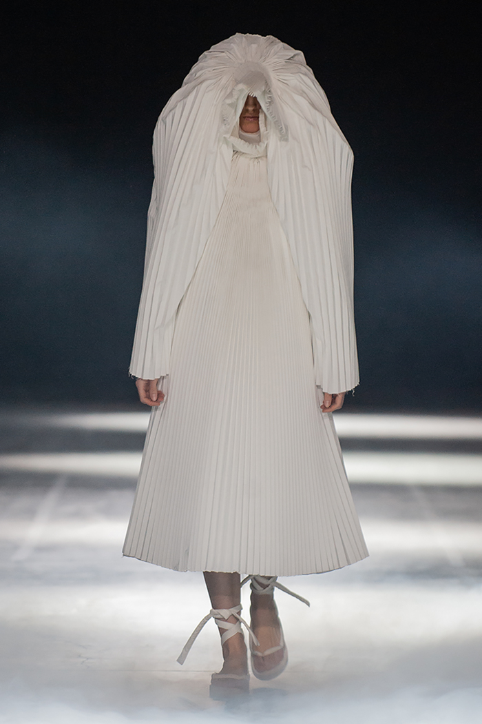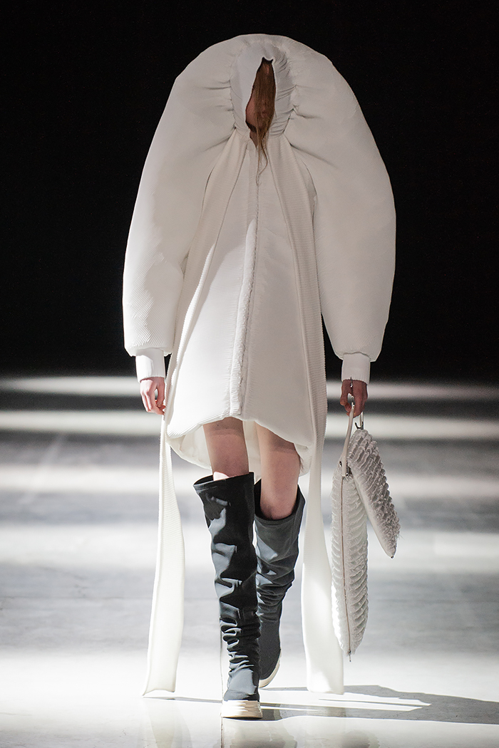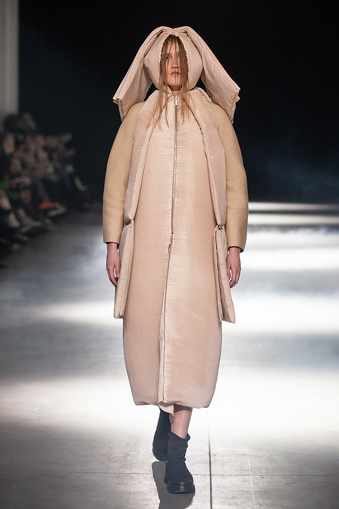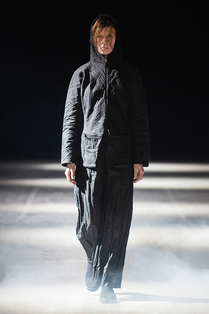 В рамках Украинской недели моды состоялся перформативный показ бренда Dzhus. Коллекция дизайнера Ирины Джус традиционно состояла из вещей-трансформеров, однако на этот раз подчиненных метамодерному лейтмотиву дуальности. Буквально, трансформация вещей происходила благодаря расслоению их, в результате которого изнанка становилась логическим продолжением верха. Это продемонстрирвоала сама дизайнер, выйдя на подиум и "преобразовав" наряды моделей. в коллекцию вошли платья-коконы, которые раскрываются подобно бутонам цветков, костюмы из жатого льна и хлопка, знаковые дял бренда плиссированные вещи и пальто-пуховики.