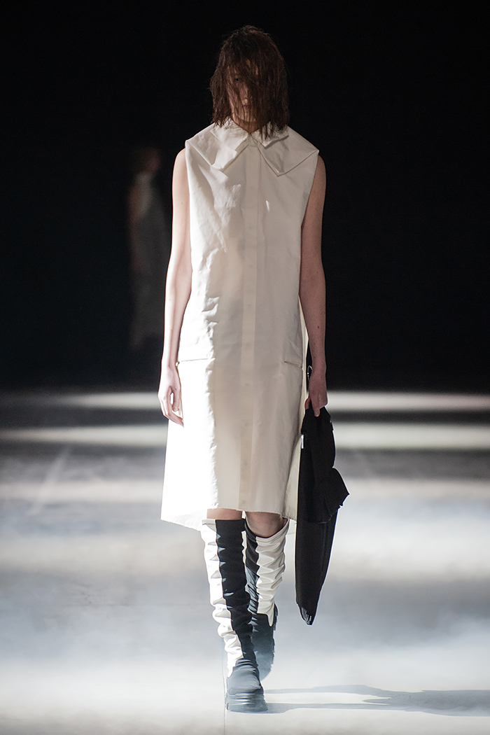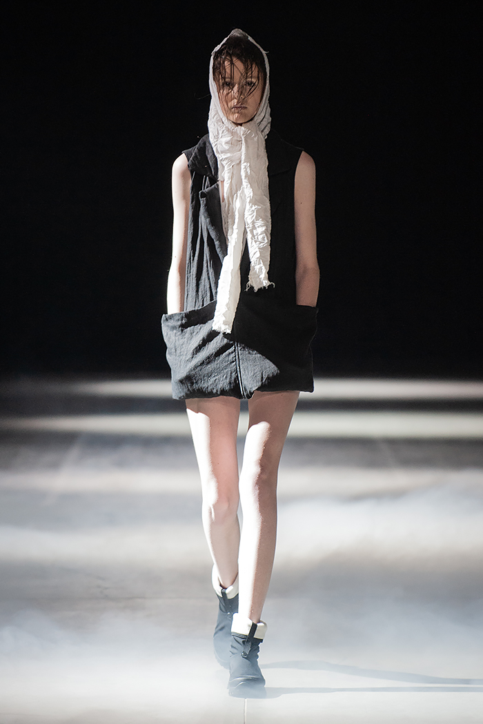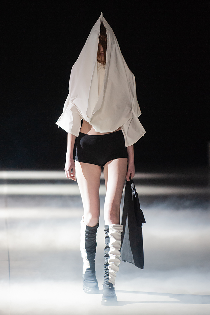 Иллюзии, скрытые смыслы и "изнаночность" нашего бытия давно являются предметами изучения для Ирины Джус и находят отражение в уникальном дизайне, который сочетает в себе унифицированность городского гардероба, футуристическую функциональность и архитектурность, а также, несомненно, ту самую выдумку, которую наш глаз всегда ищет в привычном, и, в случае Dzhus находит. Музыку и саунд-дизайн для шоу создавал американский эксперименталньый композитор и вокалист EIYBRA.