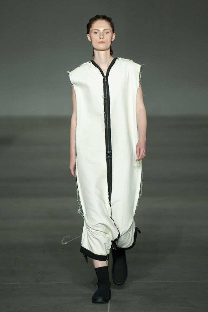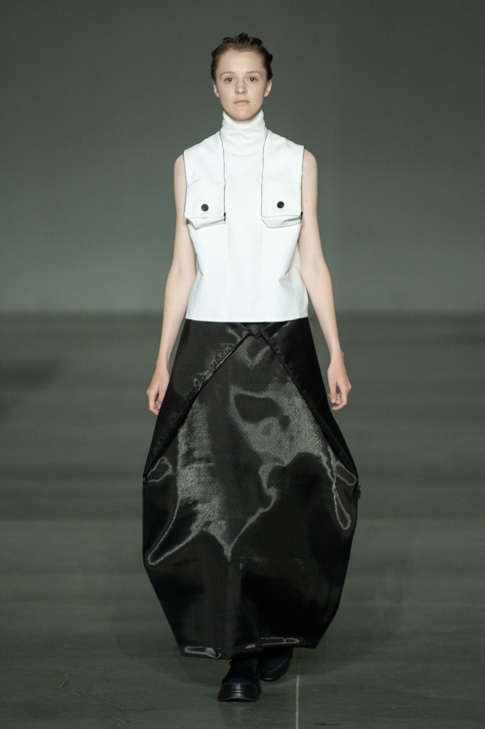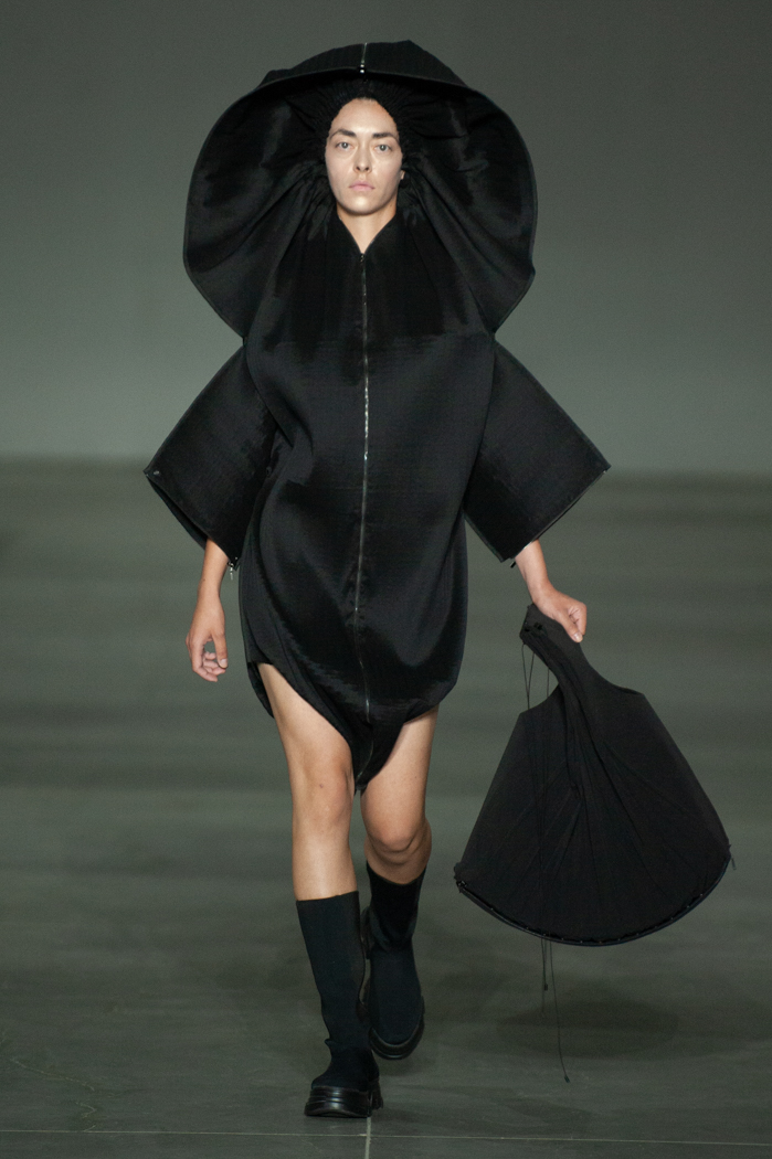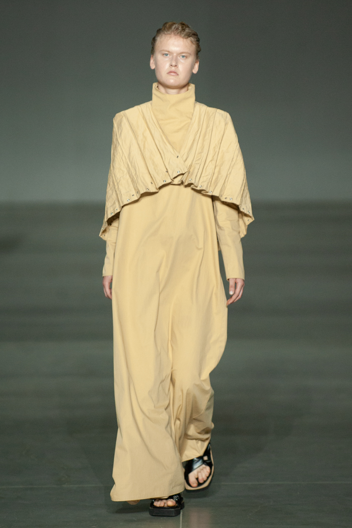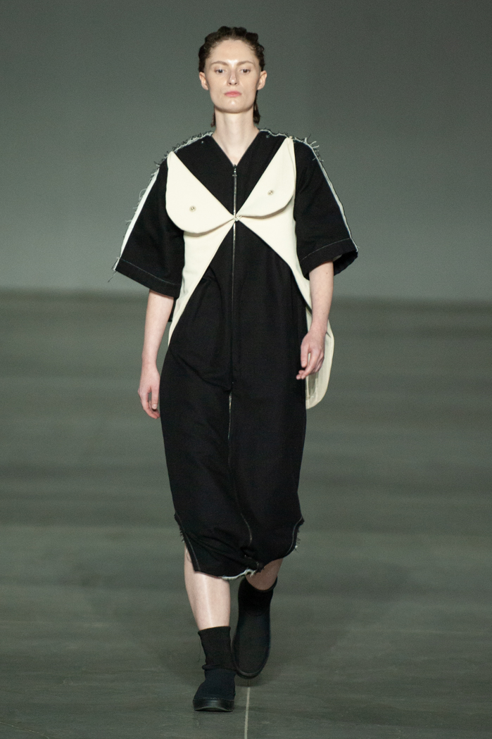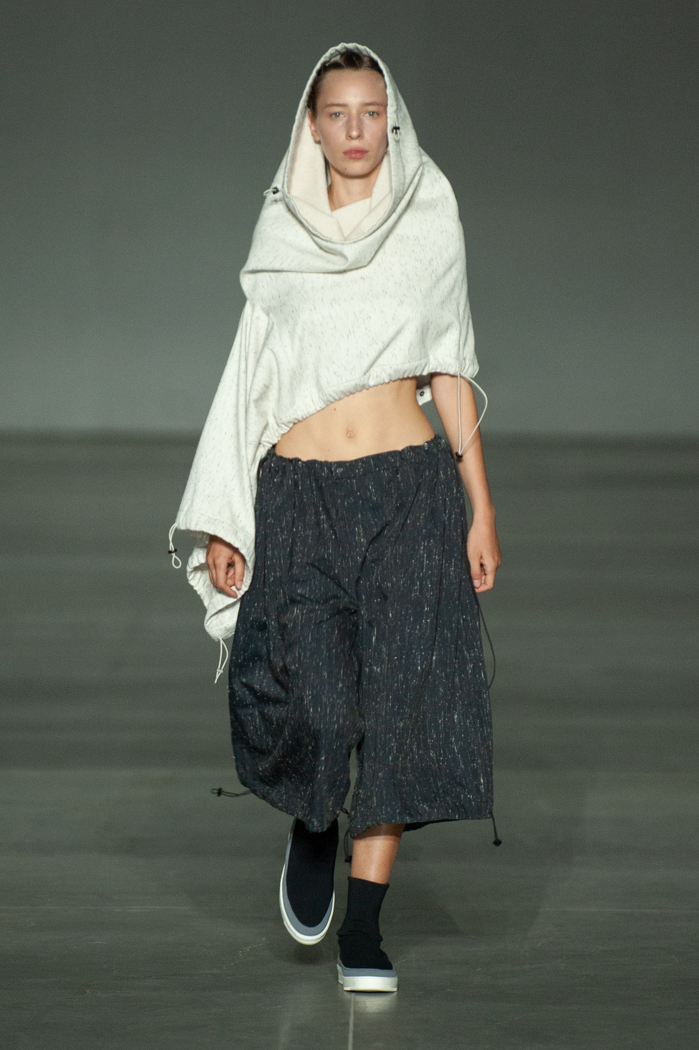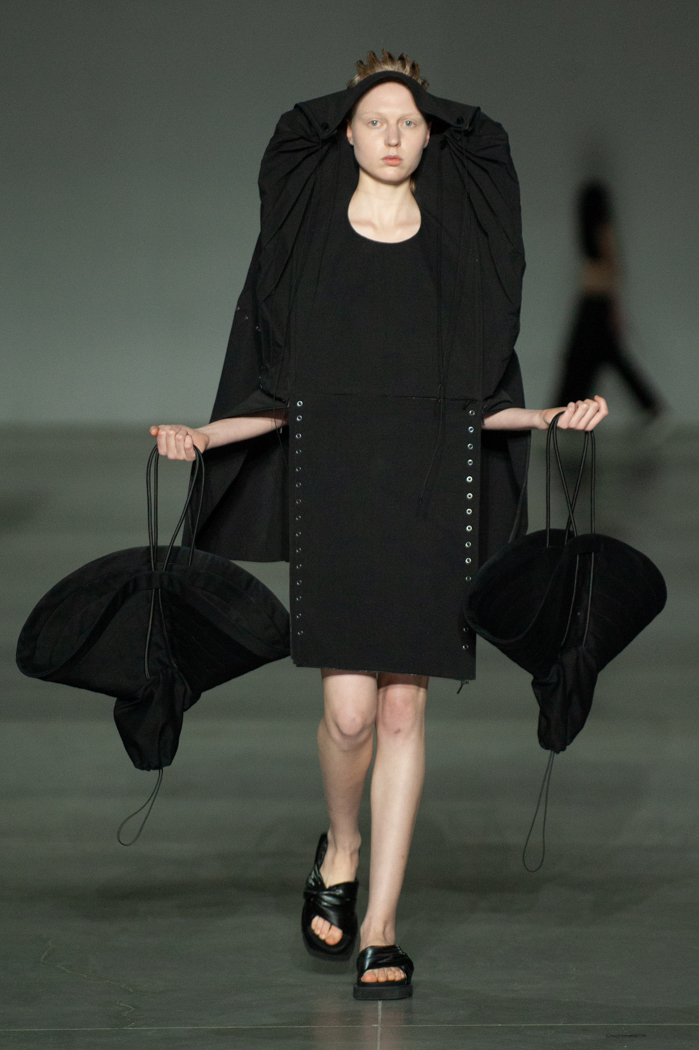 Дизайнер продолжает создавать вещи-трансформеры — например сумки, которые легко становятся головными уборами, шорты превращаются в элегантный топ, а брюки оверсайз — в вечернее платье. Из юбки и вовсе можно сделать сумку-шопер. Согласно задумке дизайнера, подвижный и трансформируемый гардероб предназначен для тех, кто живет полными эмоциями и подвержен как прокрастинации и эскапизму, так и бурным внутренним подъемам и колебаниям. Обувь для коллекции предоставлена брендом House Martin и выполнена из материалов cruelty free.
