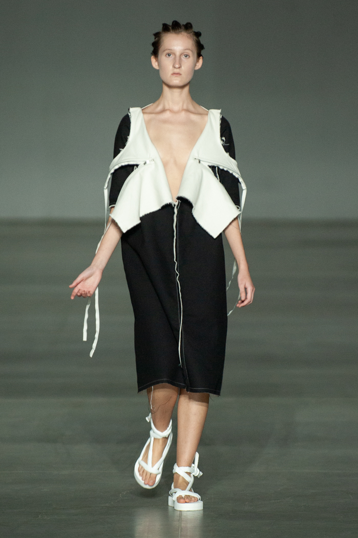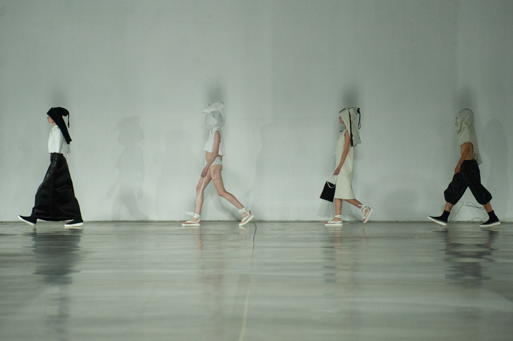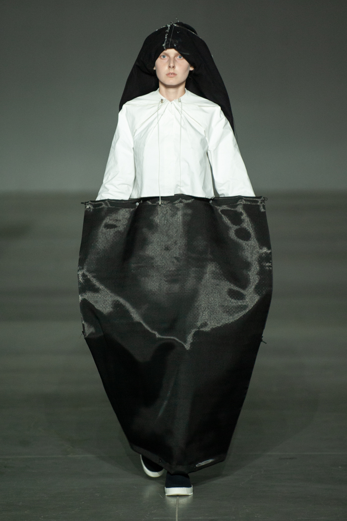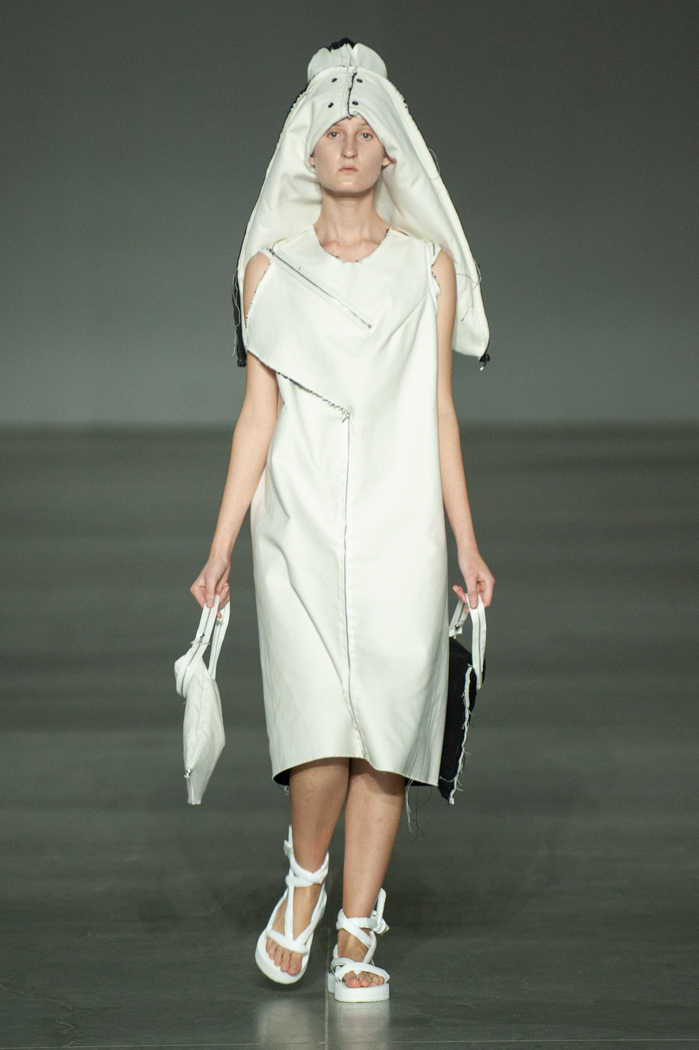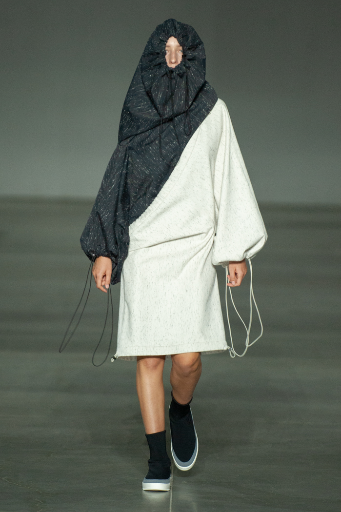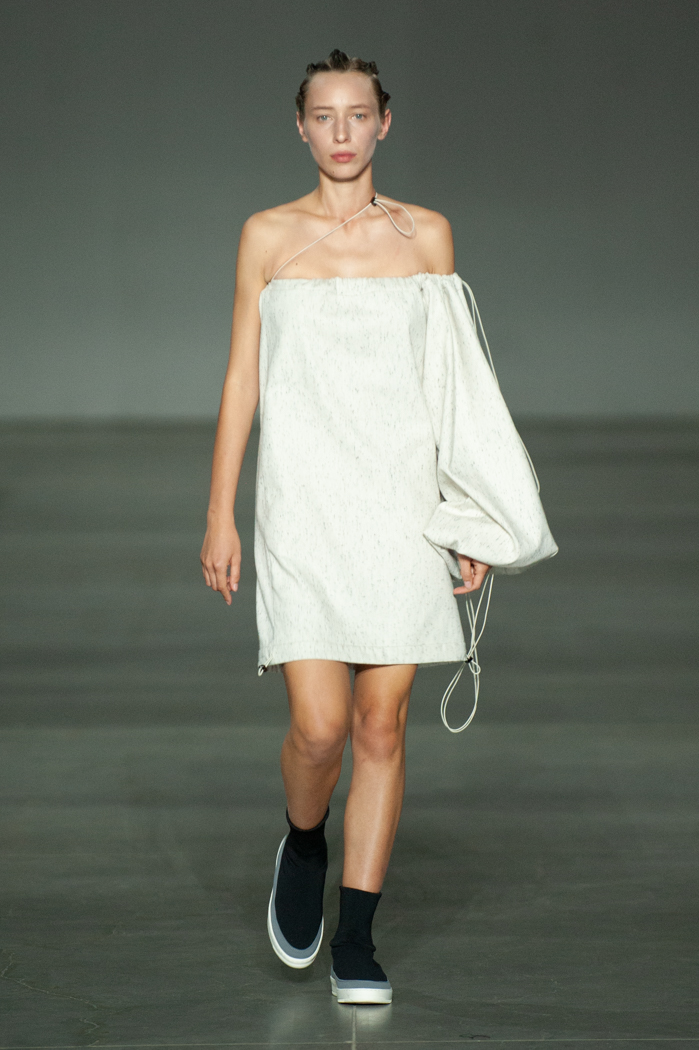 Дизайнер продолжает создавать вещи-трансформеры — например сумки, которые легко становятся головными уборами, шорты превращаются в элегантный топ, а брюки оверсайз — в вечернее платье. Из юбки и вовсе можно сделать сумку-шопер. Согласно задумке дизайнера, подвижный и трансформируемый гардероб предназначен для тех, кто живет полными эмоциями и подвержен как прокрастинации и эскапизму, так и бурным внутренним подъемам и колебаниям. Обувь для коллекции предоставлена брендом House Martin и выполнена из материалов cruelty free.