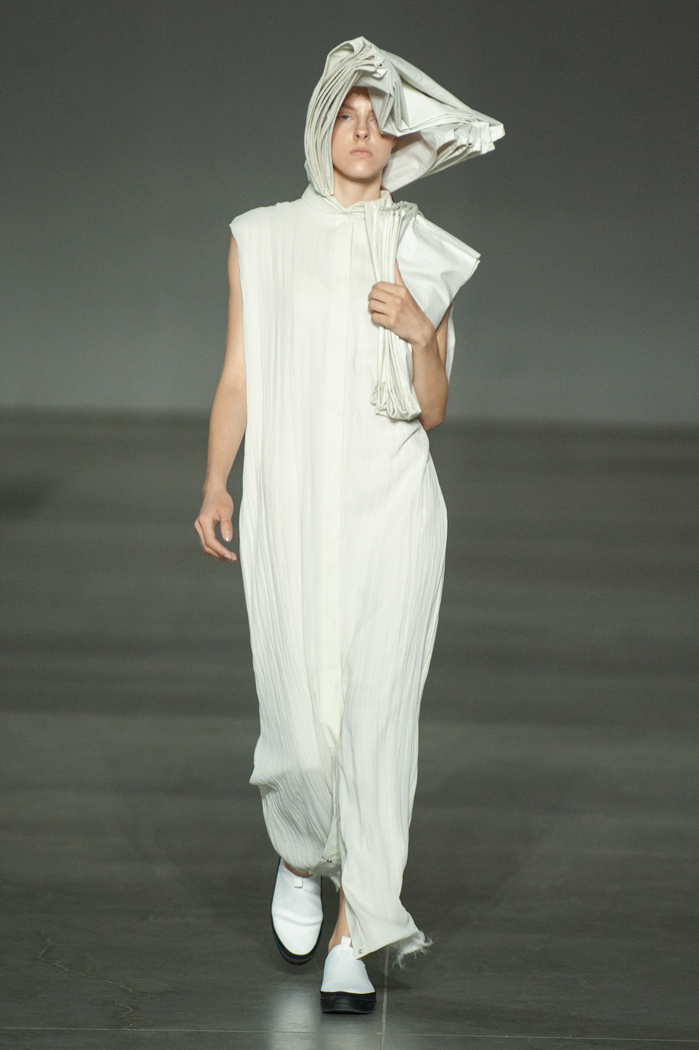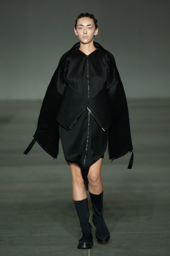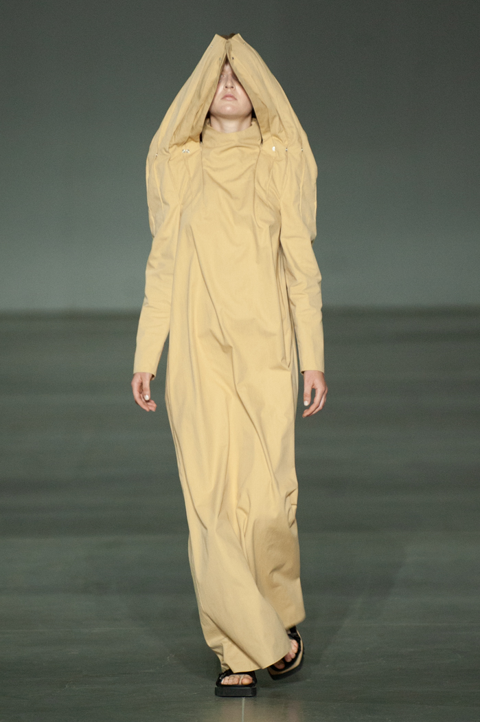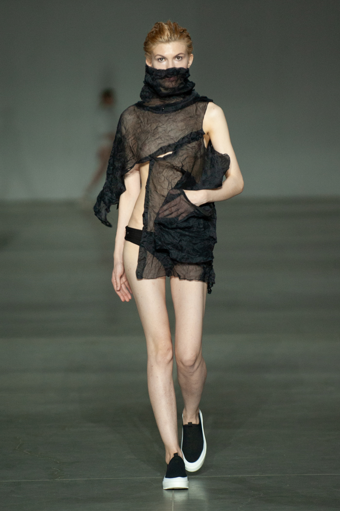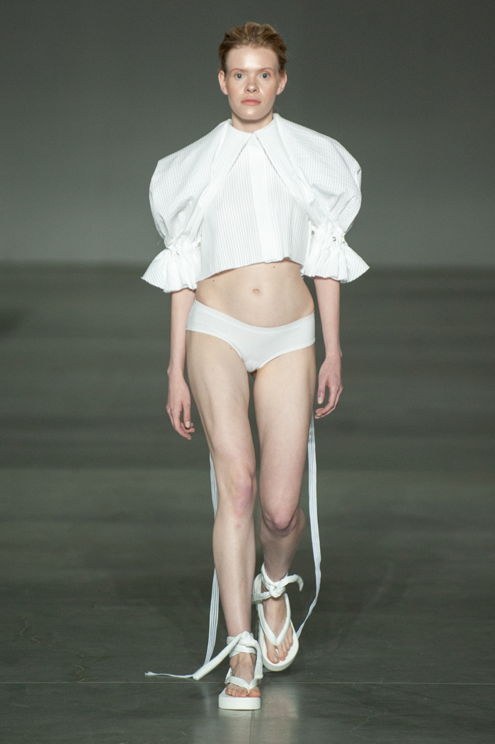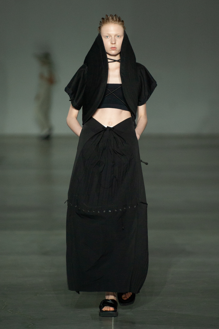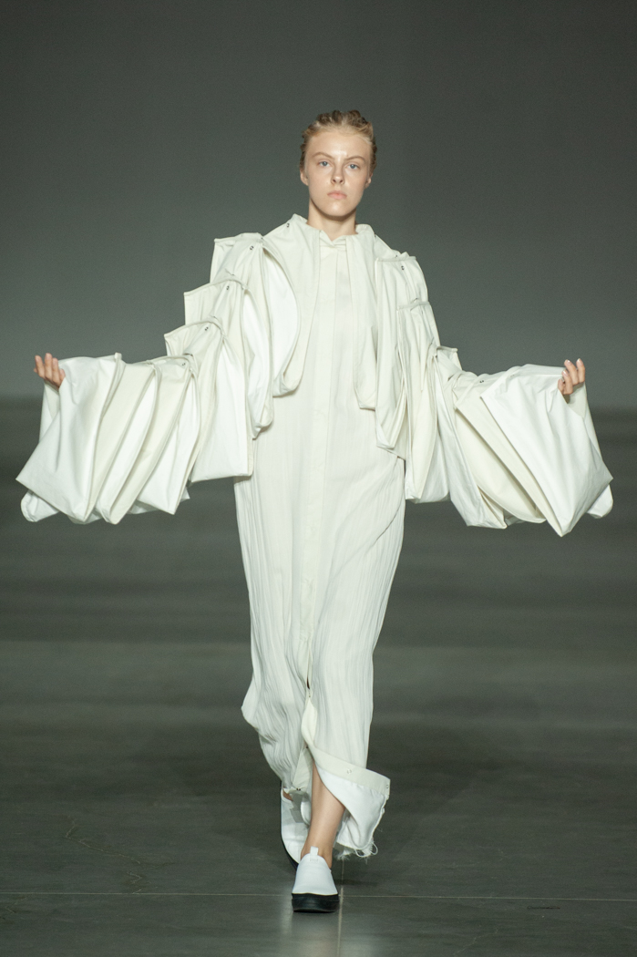 Дизайнер продолжает создавать вещи-трансформеры — например сумки, которые легко становятся головными уборами, шорты превращаются в элегантный топ, а брюки оверсайз — в вечернее платье. Из юбки и вовсе можно сделать сумку-шопер. Согласно задумке дизайнера, подвижный и трансформируемый гардероб предназначен для тех, кто живет полными эмоциями и подвержен как прокрастинации и эскапизму, так и бурным внутренним подъемам и колебаниям. Обувь для коллекции предоставлена брендом House Martin и выполнена из материалов cruelty free.