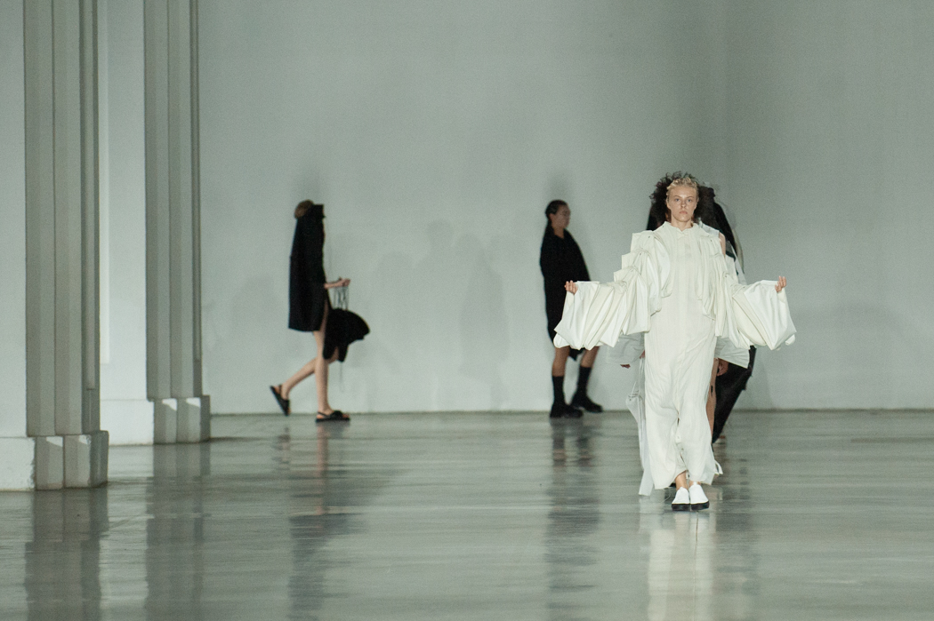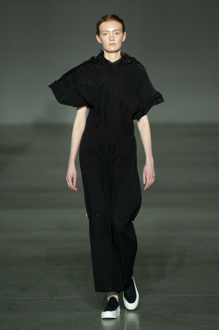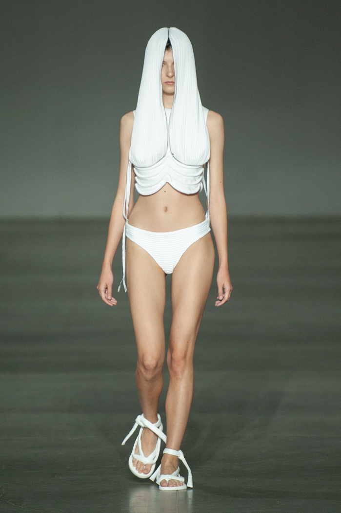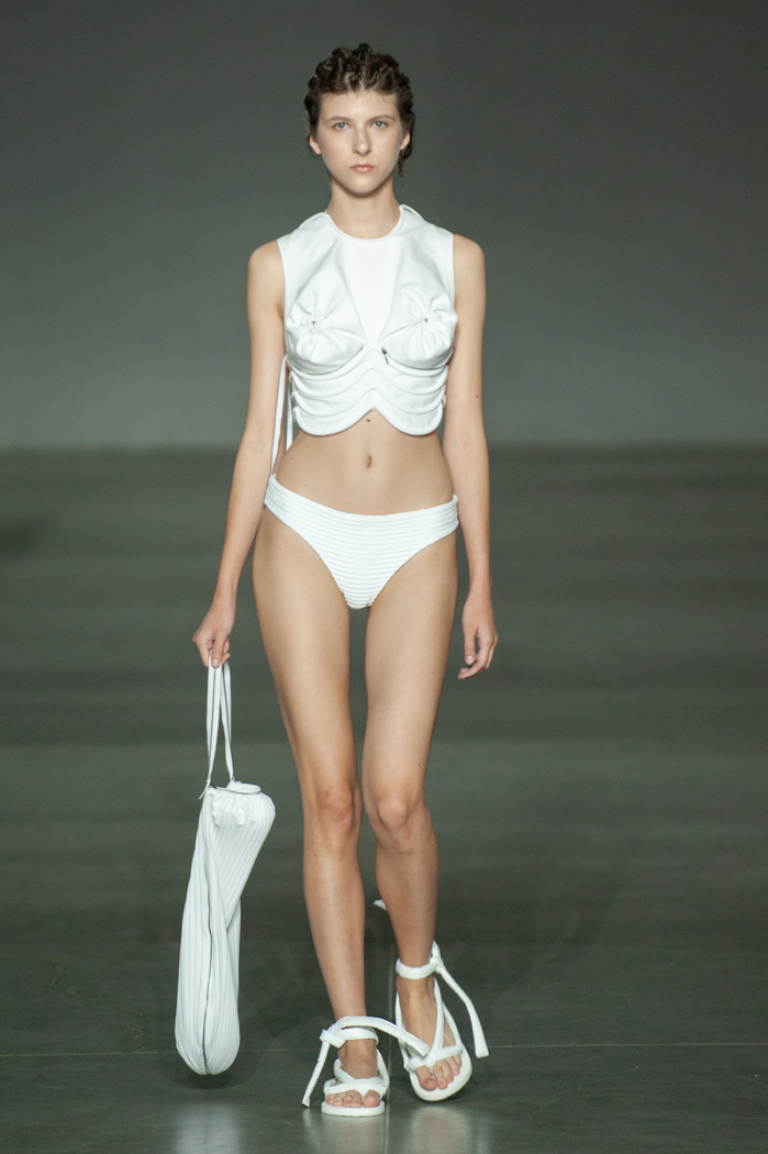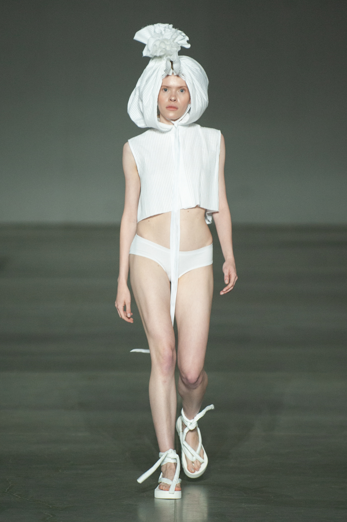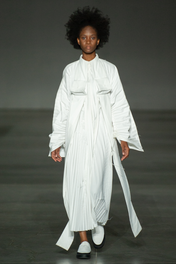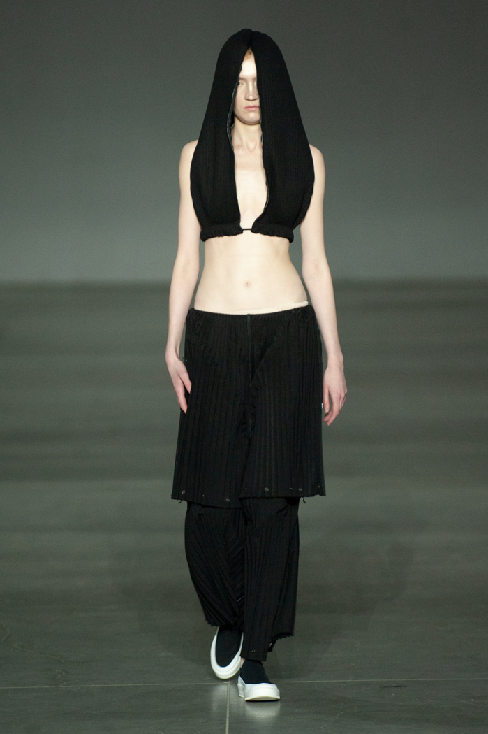 Дизайнер продолжает создавать вещи-трансформеры — например сумки, которые легко становятся головными уборами, шорты превращаются в элегантный топ, а брюки оверсайз — в вечернее платье. Из юбки и вовсе можно сделать сумку-шопер. Согласно задумке дизайнера, подвижный и трансформируемый гардероб предназначен для тех, кто живет полными эмоциями и подвержен как прокрастинации и эскапизму, так и бурным внутренним подъемам и колебаниям. Обувь для коллекции предоставлена брендом House Martin и выполнена из материалов cruelty free.