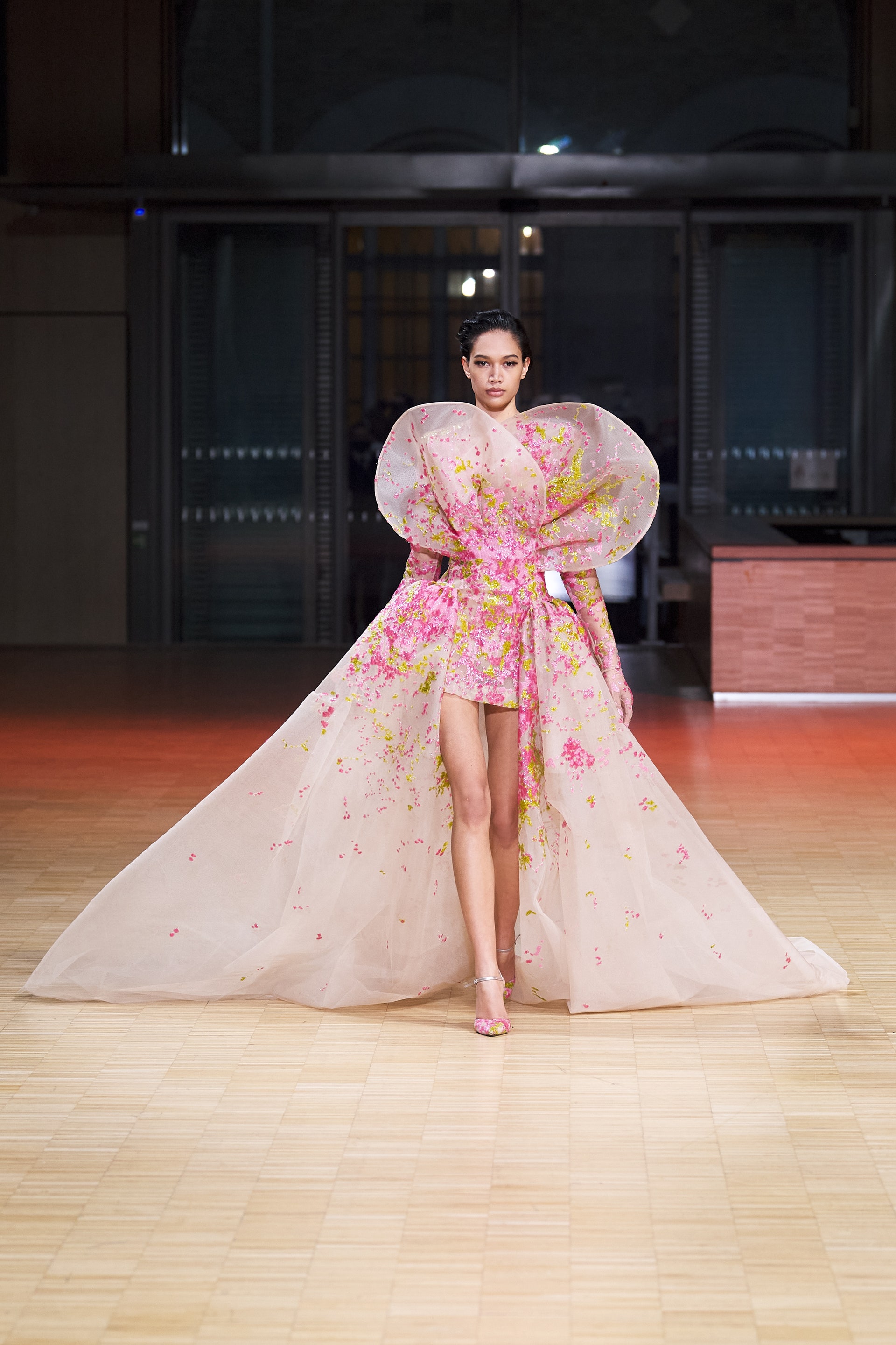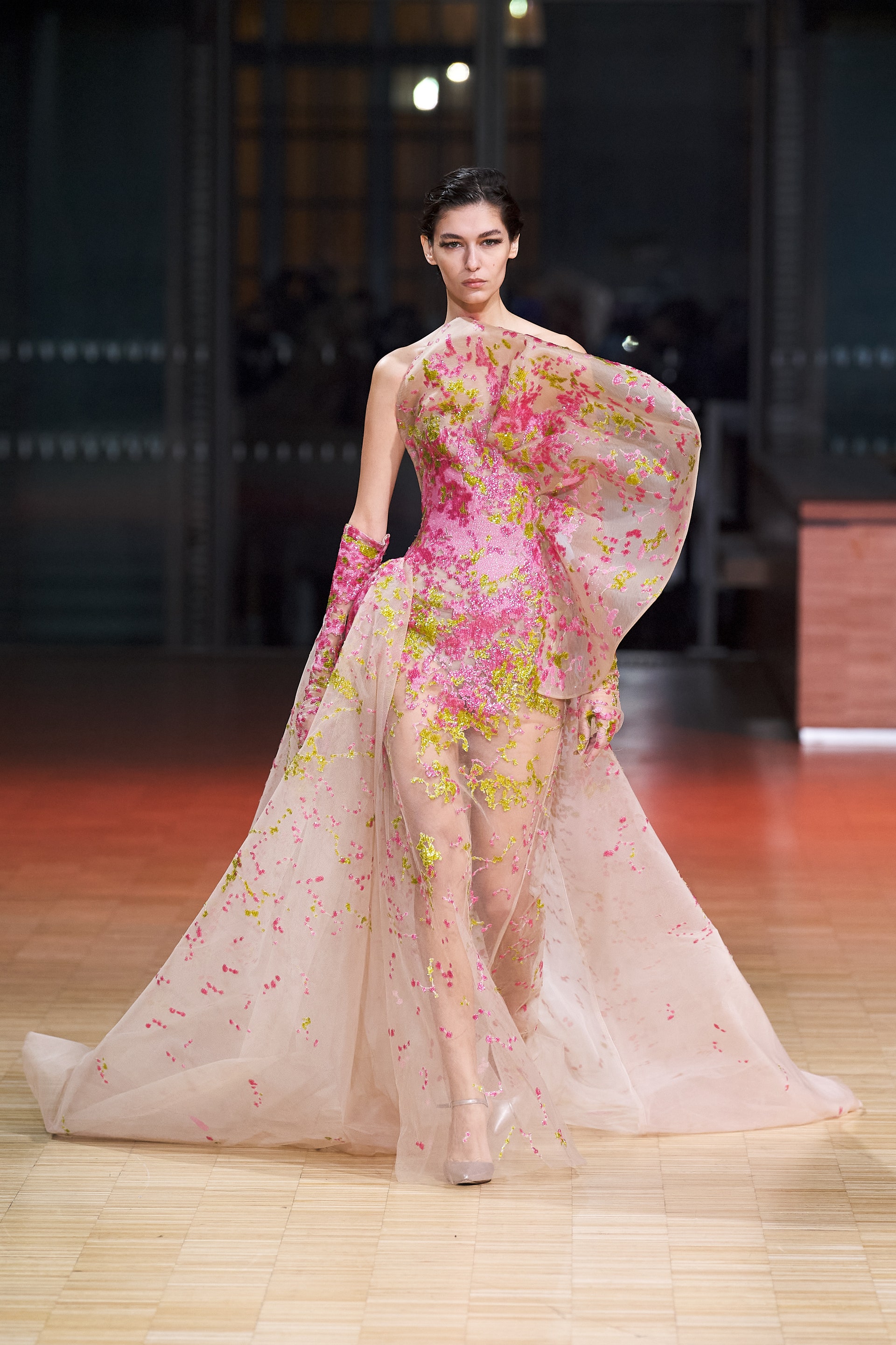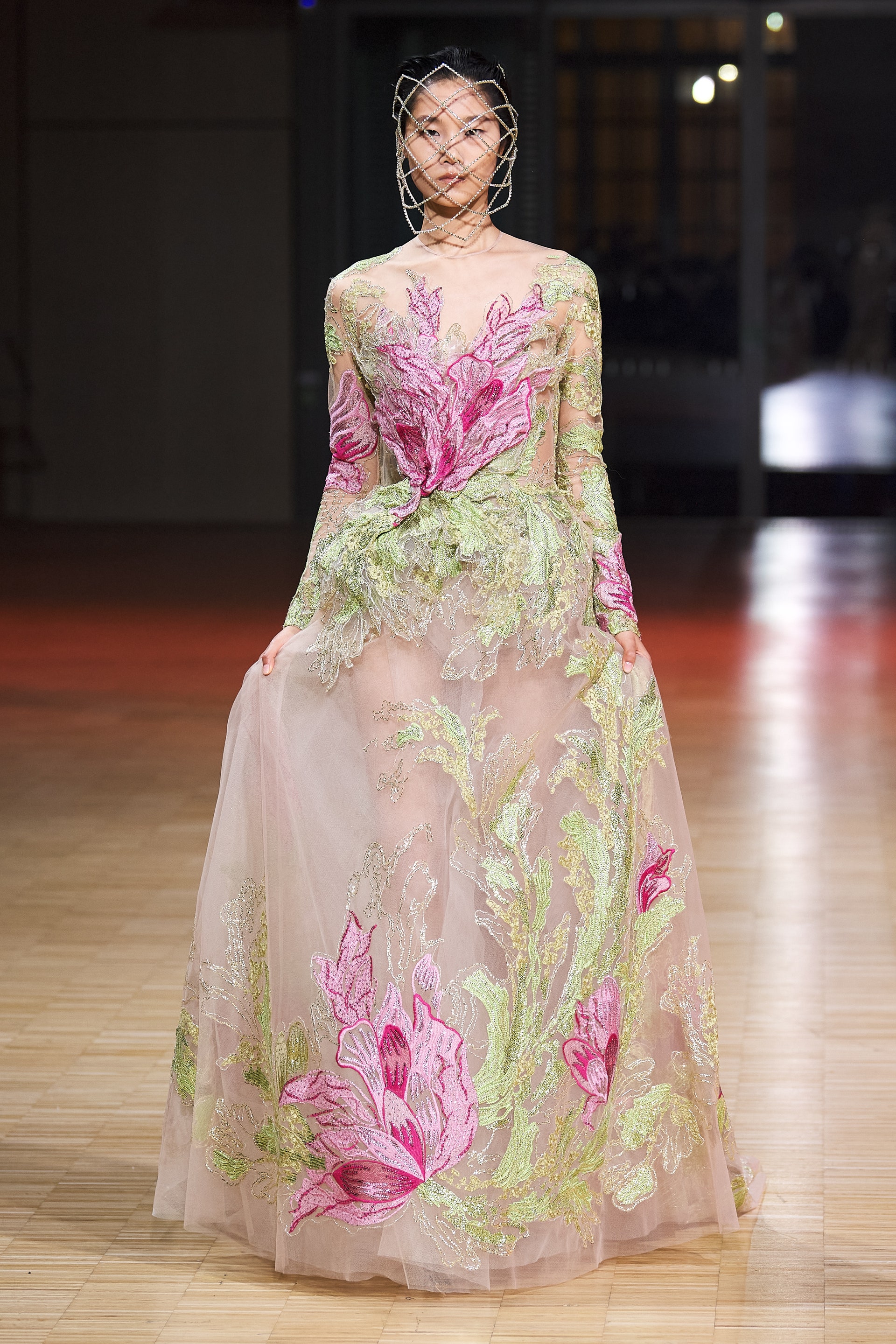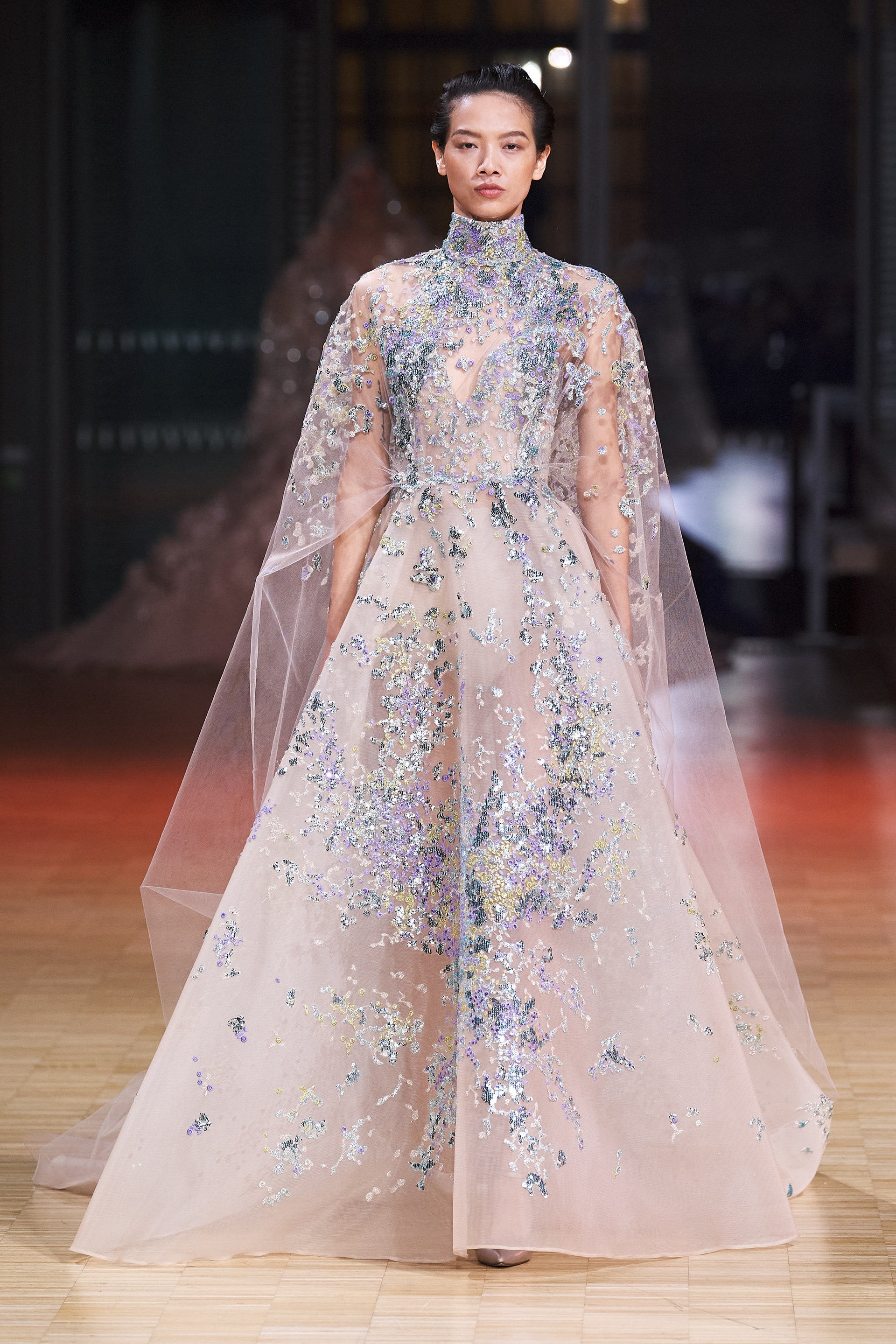 Ливанский дизайнер Эли Сааб впервые за два года вновь провел оффлайн-показ. Кажется логичным, что и заглавной темой весенней коллекции от-кутюр Эли Сааб выбрал радость, праздник и беспечность. Это выражено в легкомысленном и оптимистичном декоре из перьев, бисера и страз, однако настоящее буйство жизни и красок дизайнер заключил в скульптурных платьях из молочной органзы, расшитых мириадами цветочных аппликаций, — кажется, будто сама весна в образах моделей шоу расцвела на парижском подиуме.